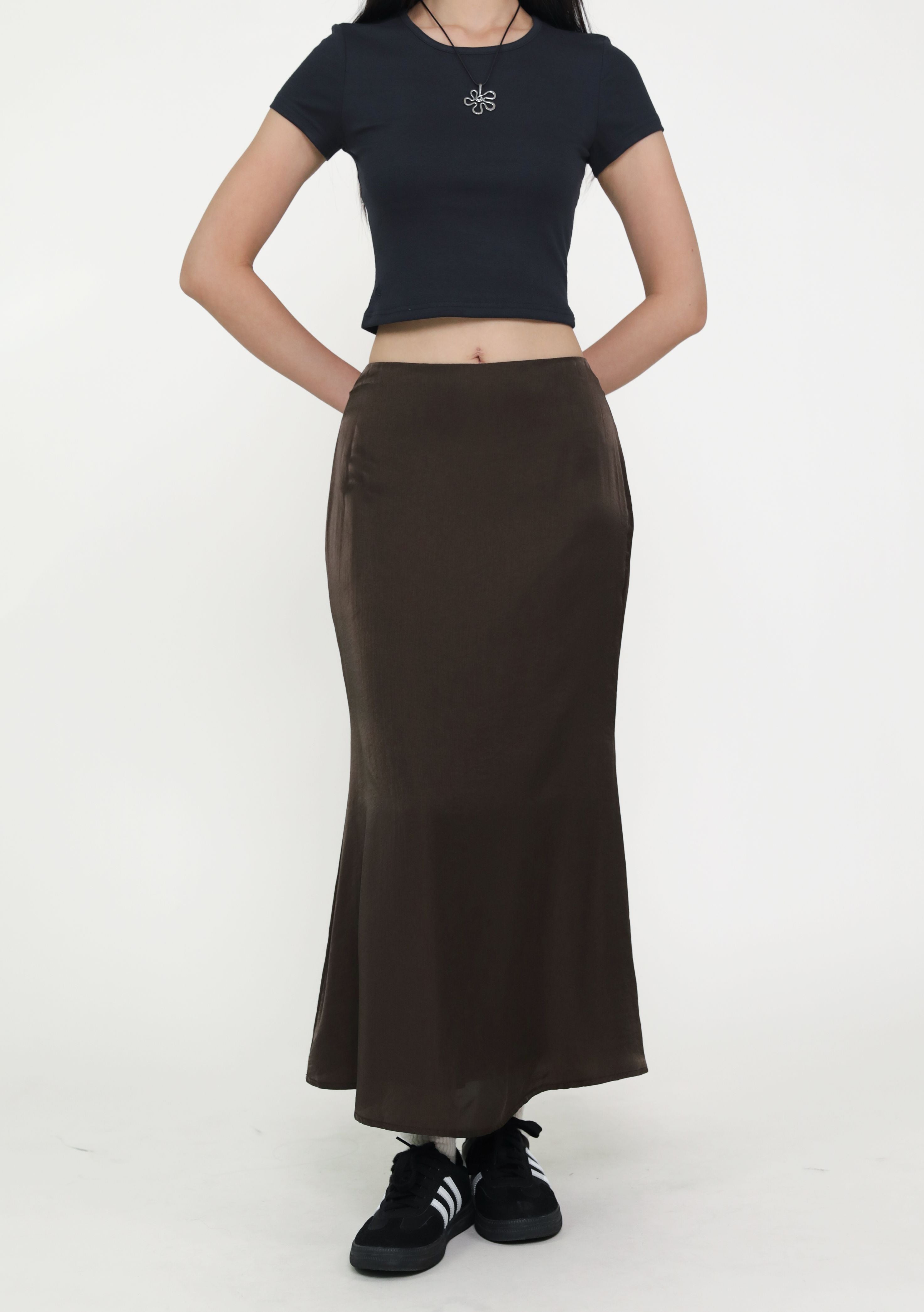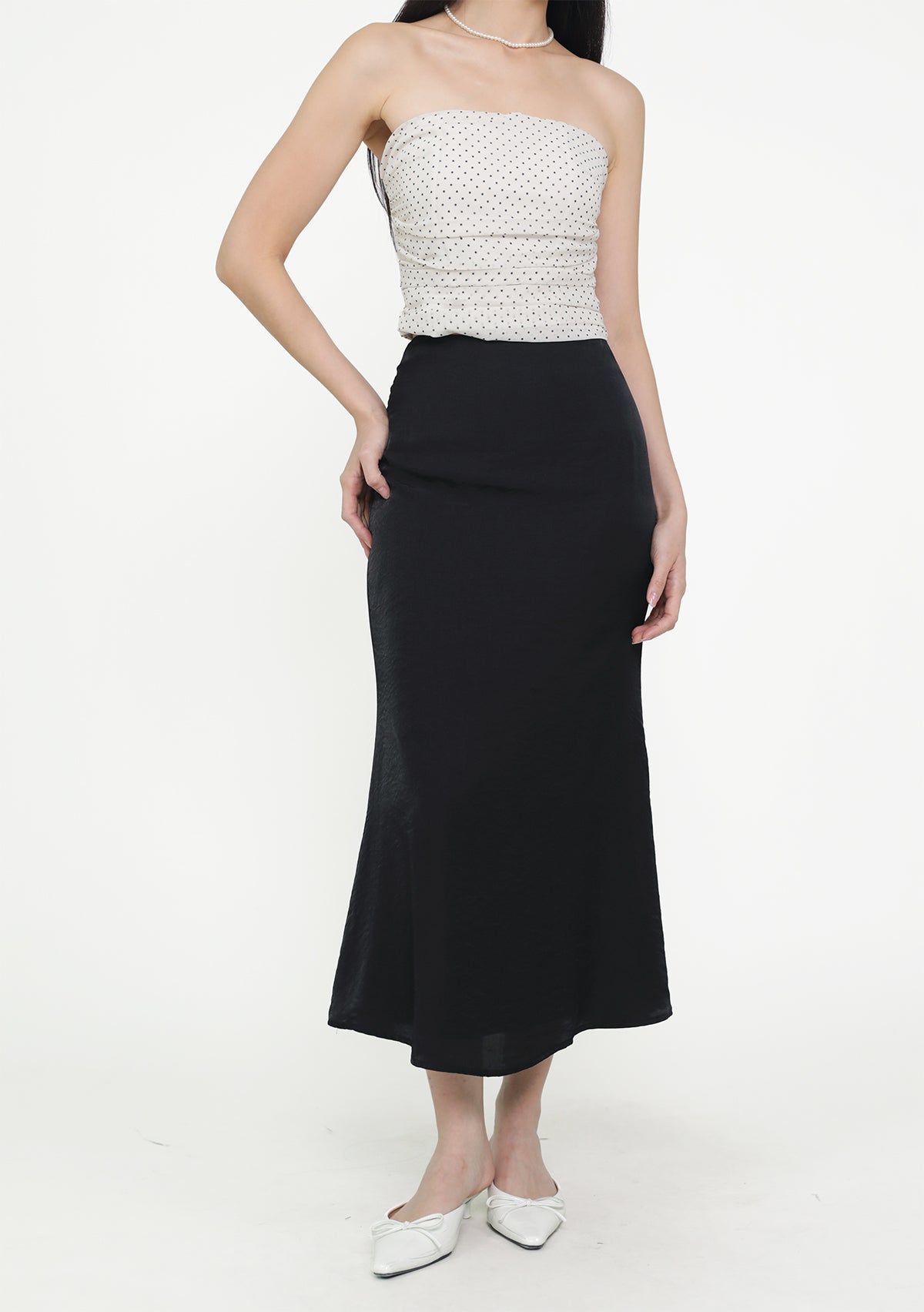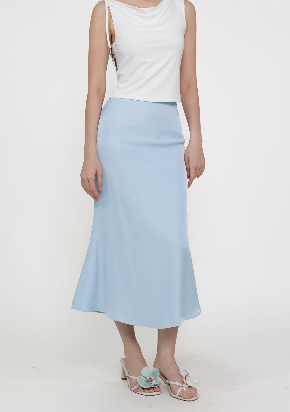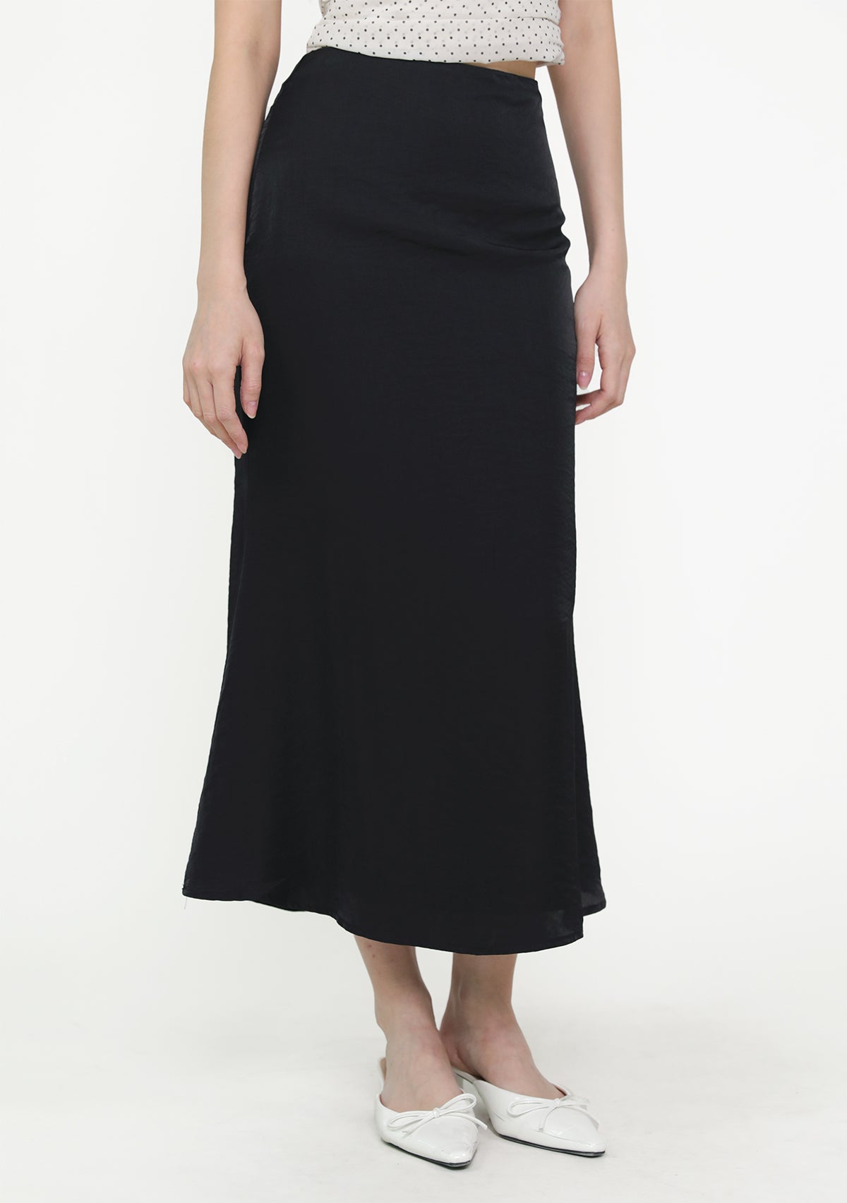 Designed with a bias cut that forms a gentle mermaid hem, this midi skirt moves beautifully with every step. Its lightweight fabric drapes softly for a flattering, feminine silhouette that transitions effortlessly from day to night.