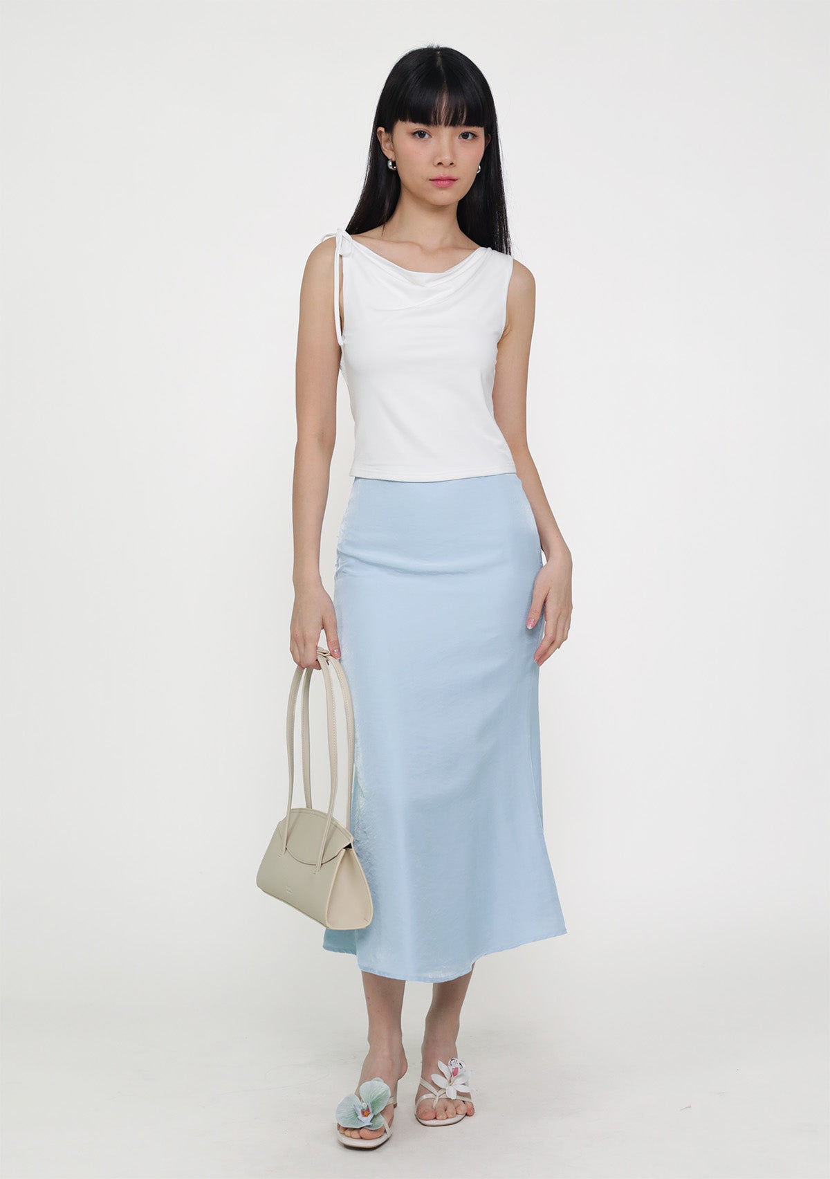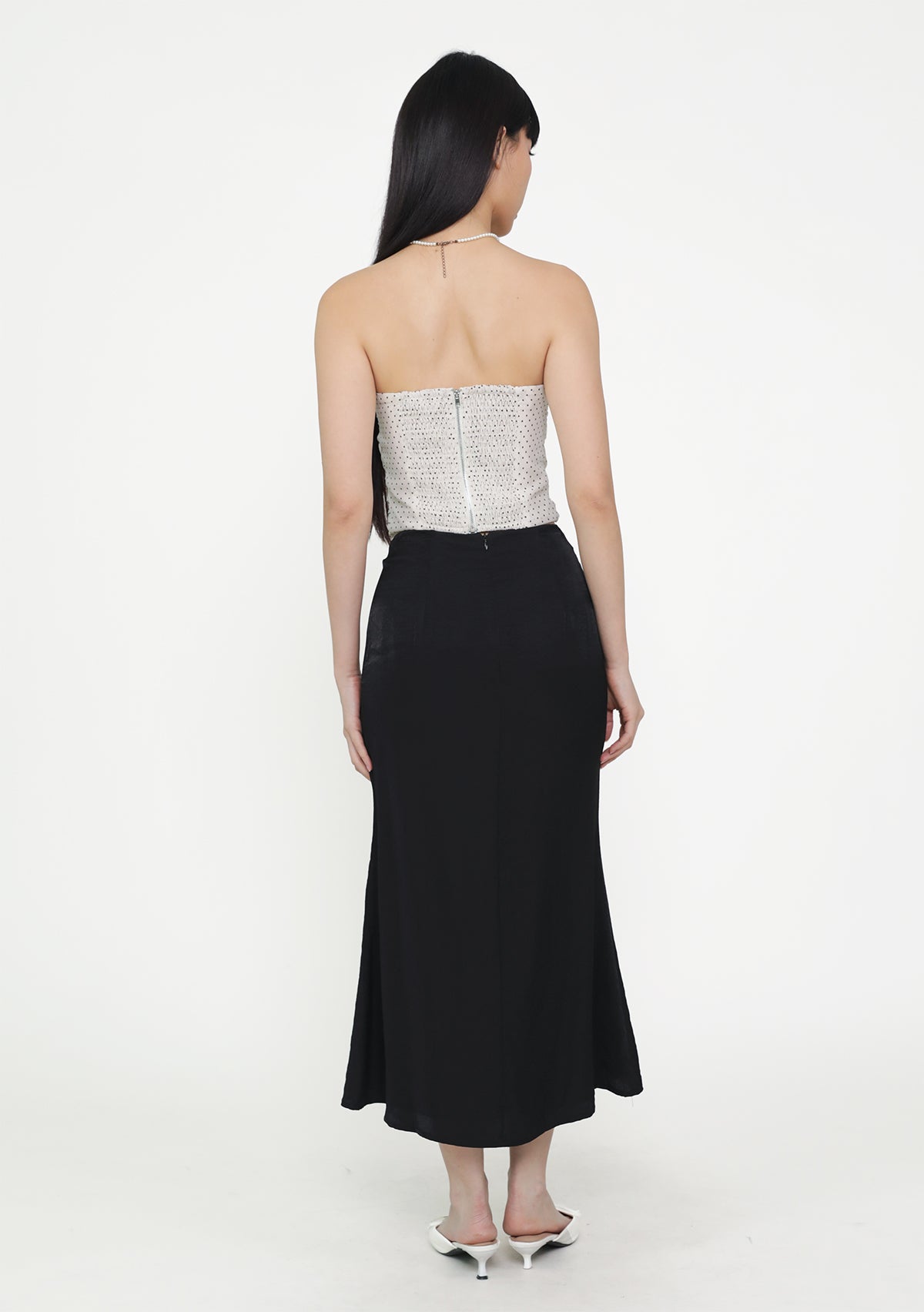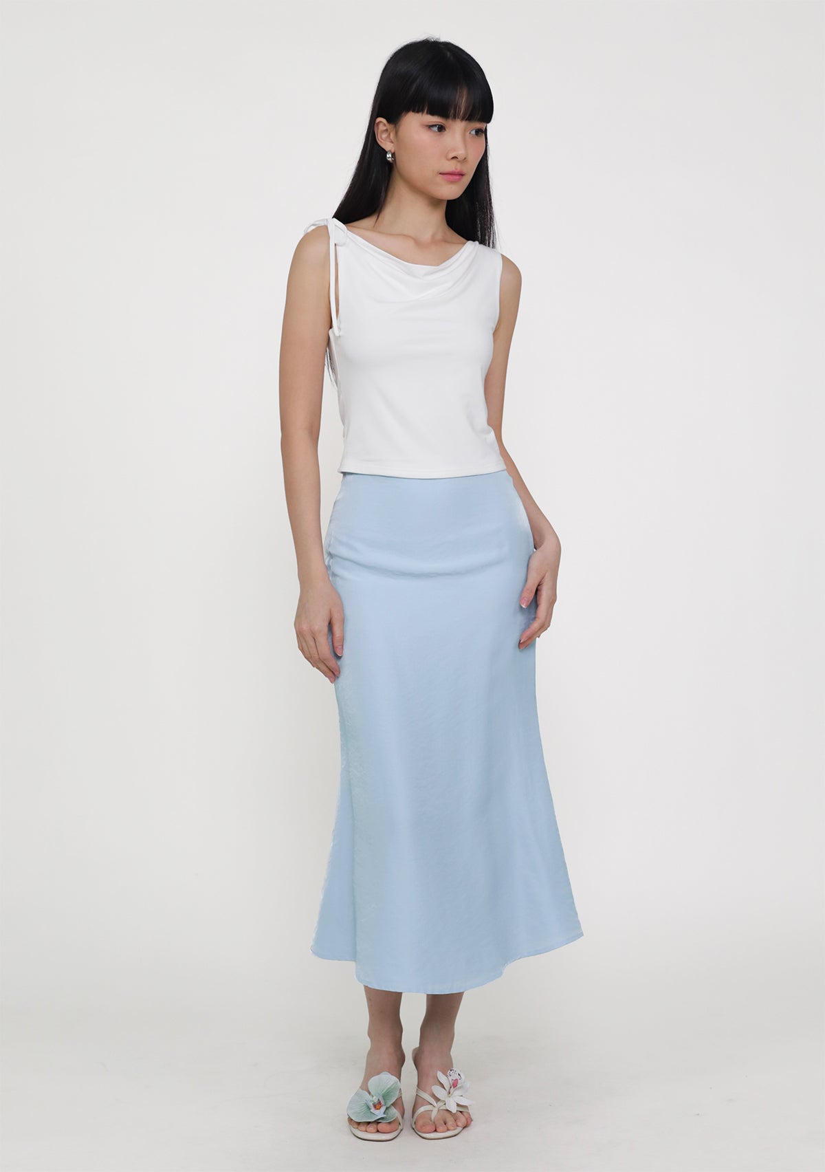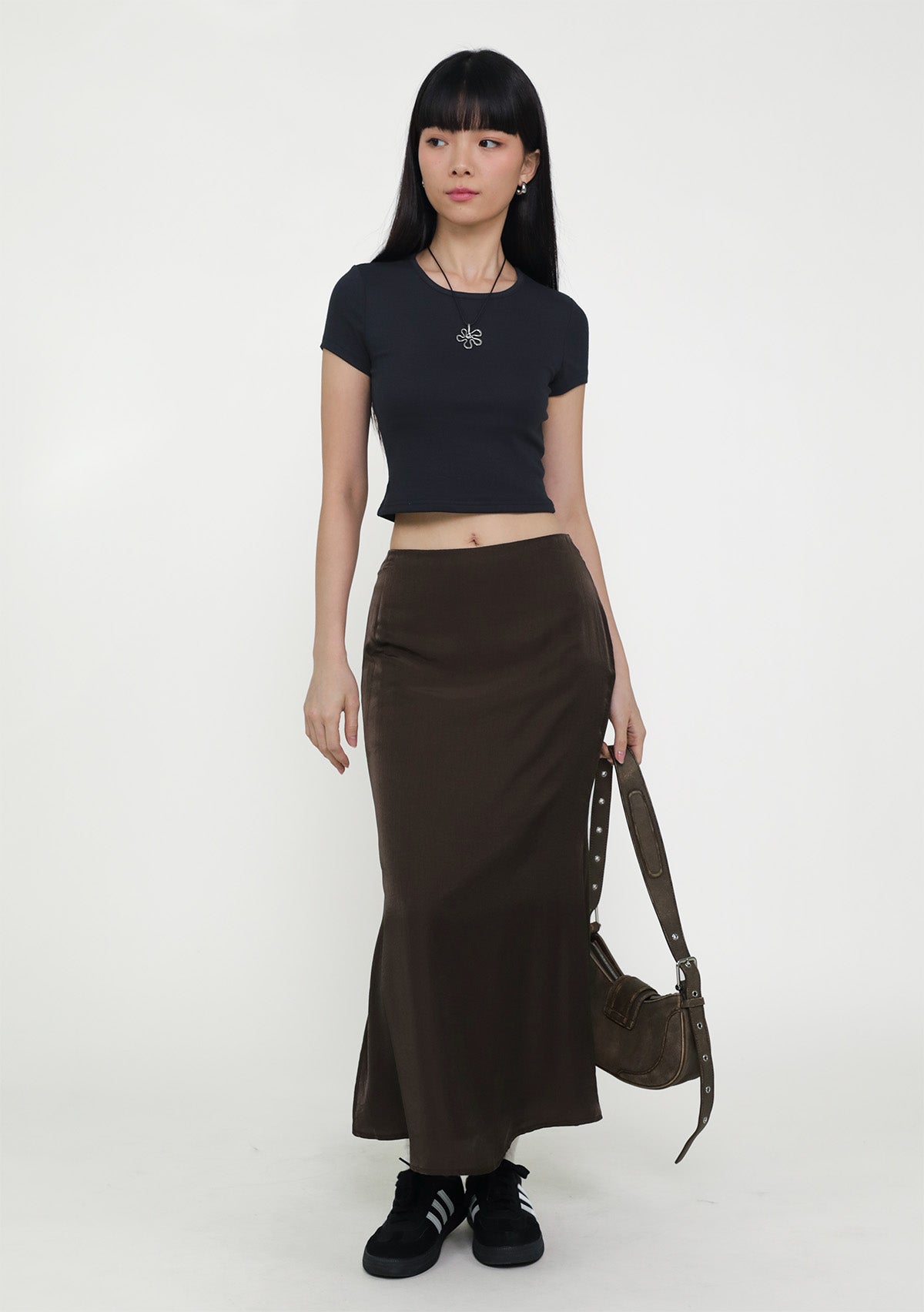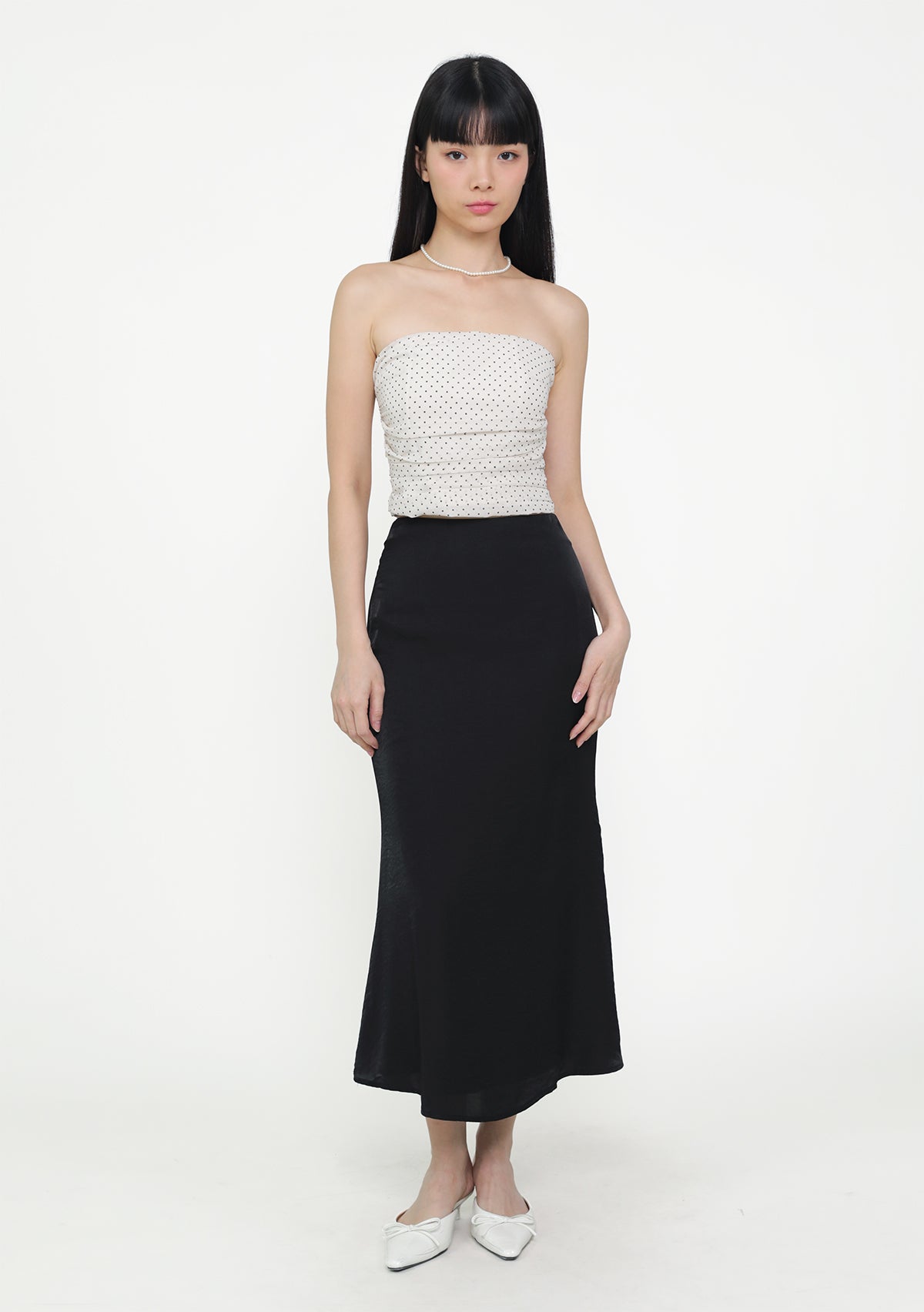 Designed with a bias cut that forms a gentle mermaid hem, this midi skirt moves beautifully with every step. Its lightweight fabric drapes softly for a flattering, feminine silhouette that transitions effortlessly from day to night.