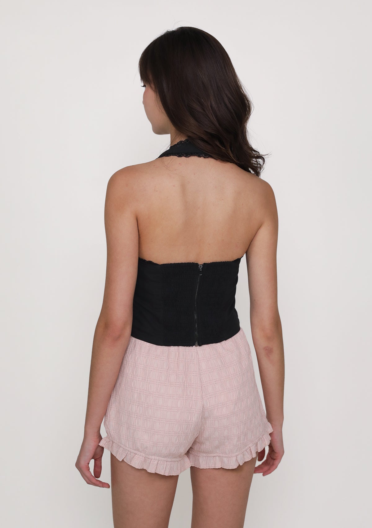 Scarlett brings just the right balance of sweet and sultry. Designed with a halter neckline that flatters the shoulders and back, this top is your go-to for dressing up with ease. The lace trim adds a soft, romantic touch, while the smocked back ensures a snug, comfortable fit that still moves with you.