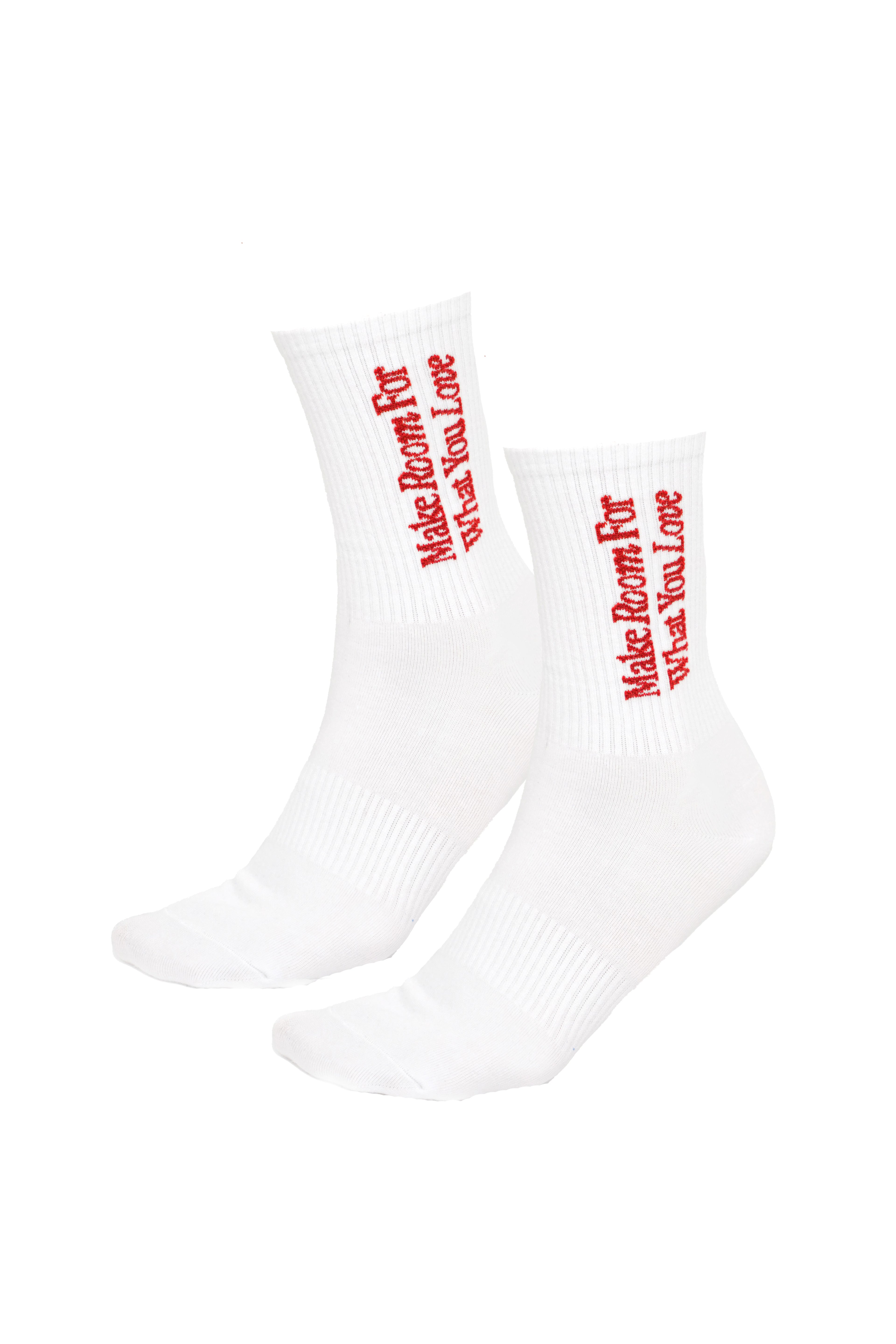 A gentle reminder with every step—Make Room For What You Love. These everyday crew socks keep it simple and comfy, featuring the signature tagline along the ankle. Perfect for pairing with sneakers or lounging at home, they’re small but meaningful additions to your daily essentials.