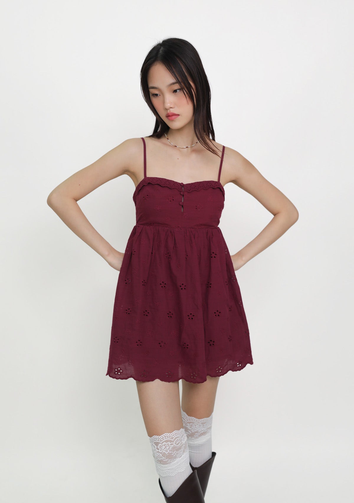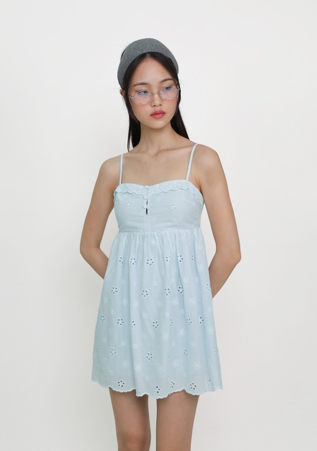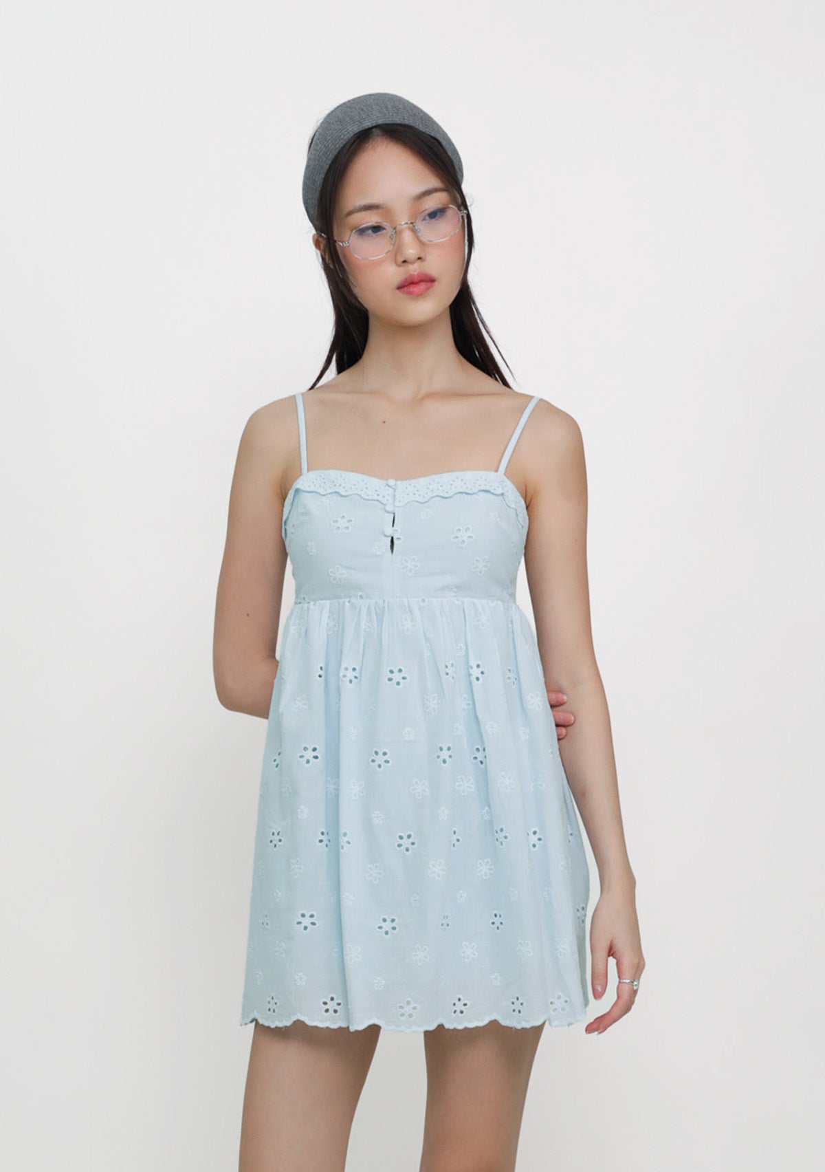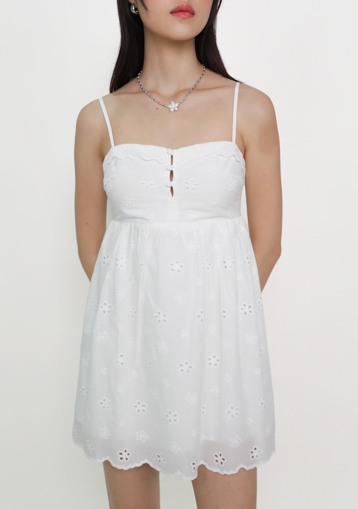 Sophia Padded Babydoll Romper is a cotton eyelet romper with a soft babydoll silhouette, designed for a feminine and effortless everyday look.