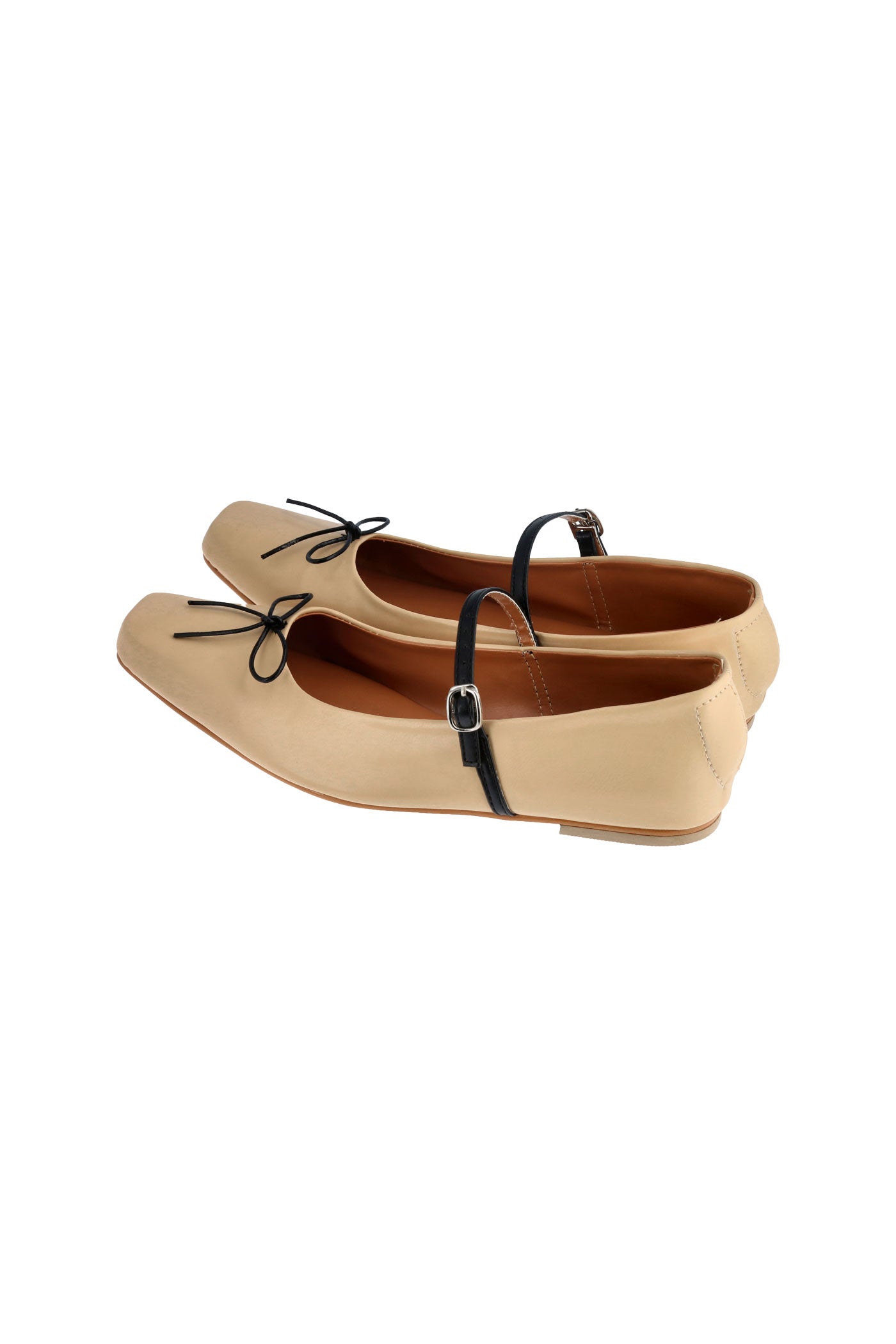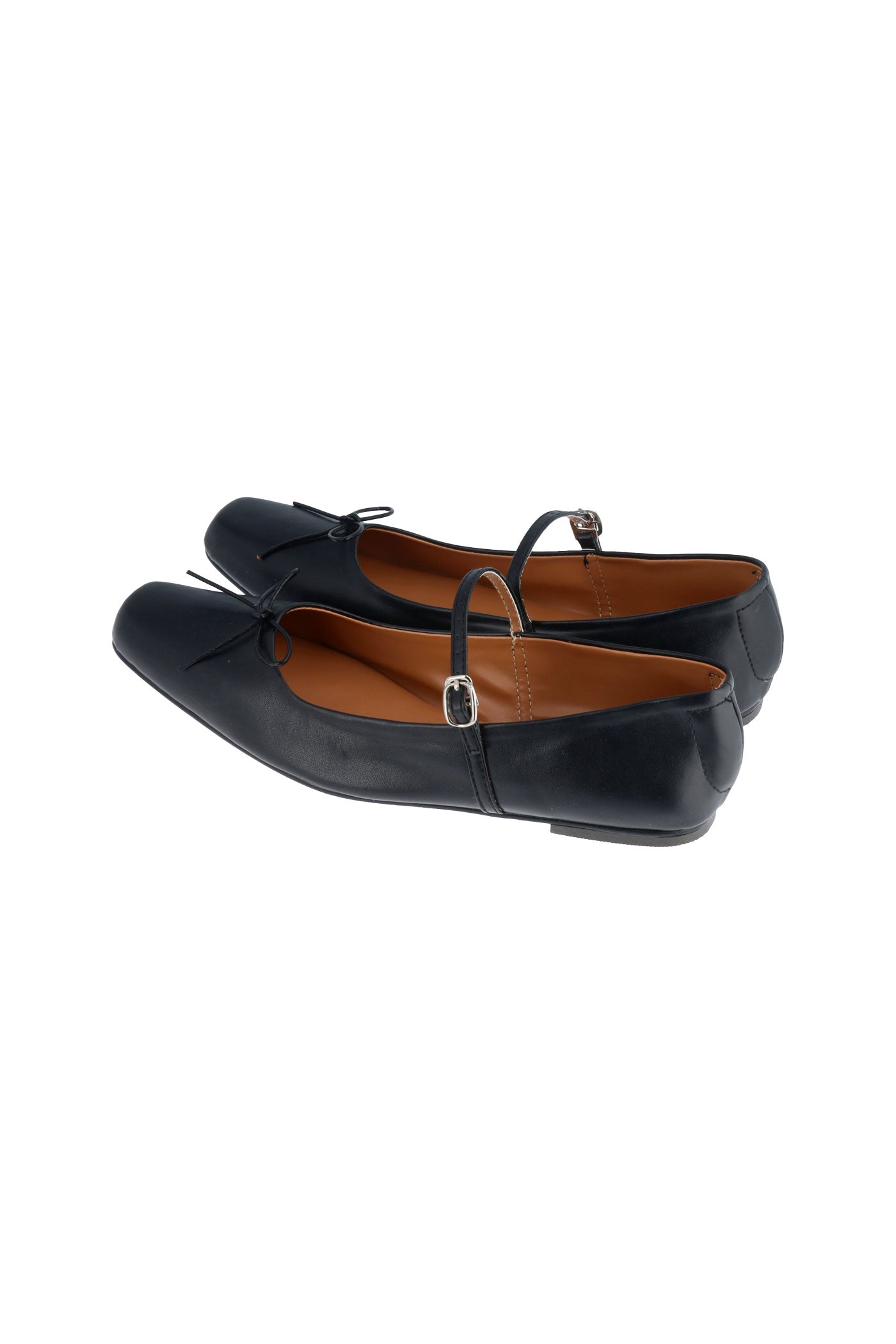 These ballet flats are made of vegan leather. They are complete with an adjustable buckle and fixed ribbon detail.