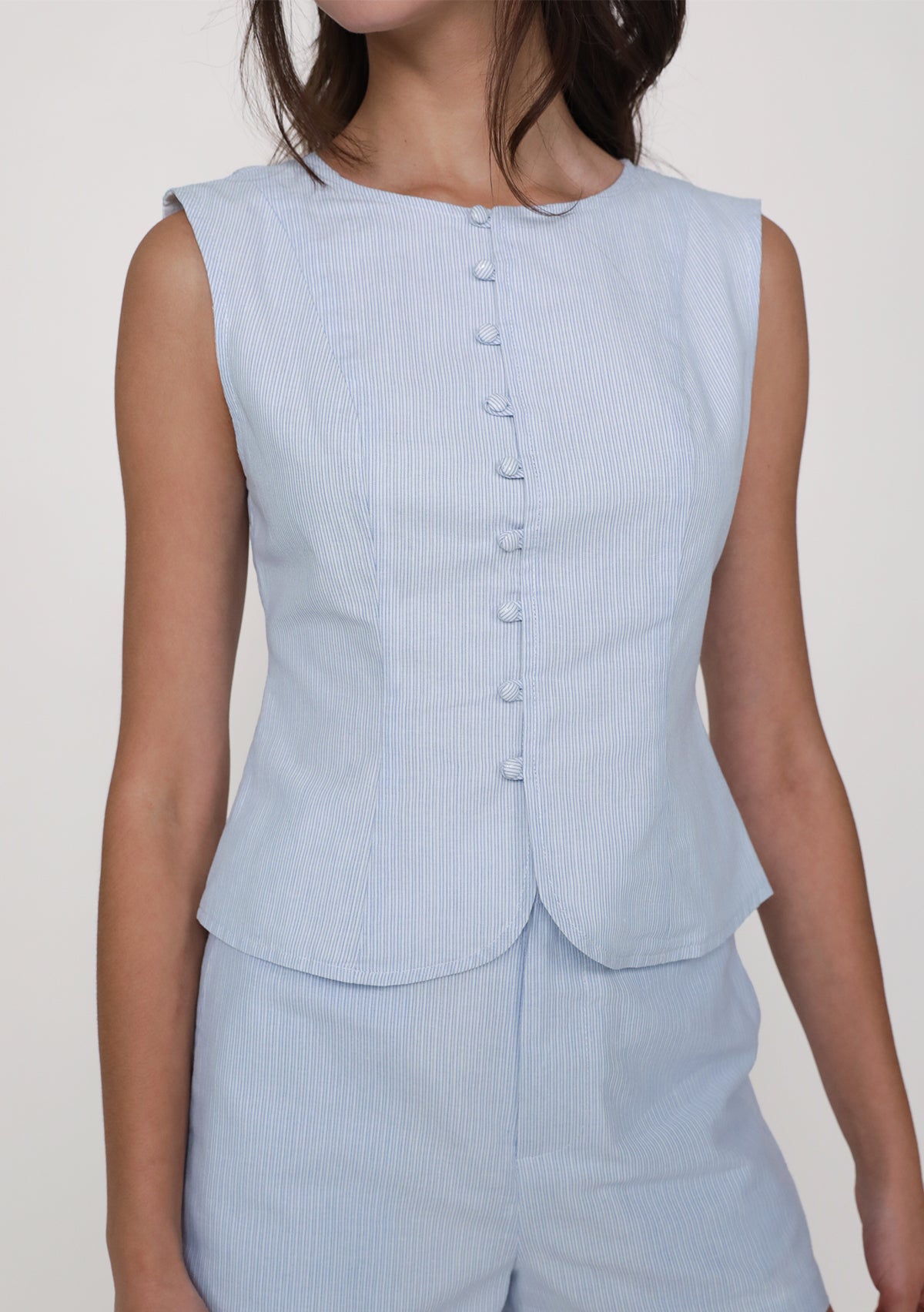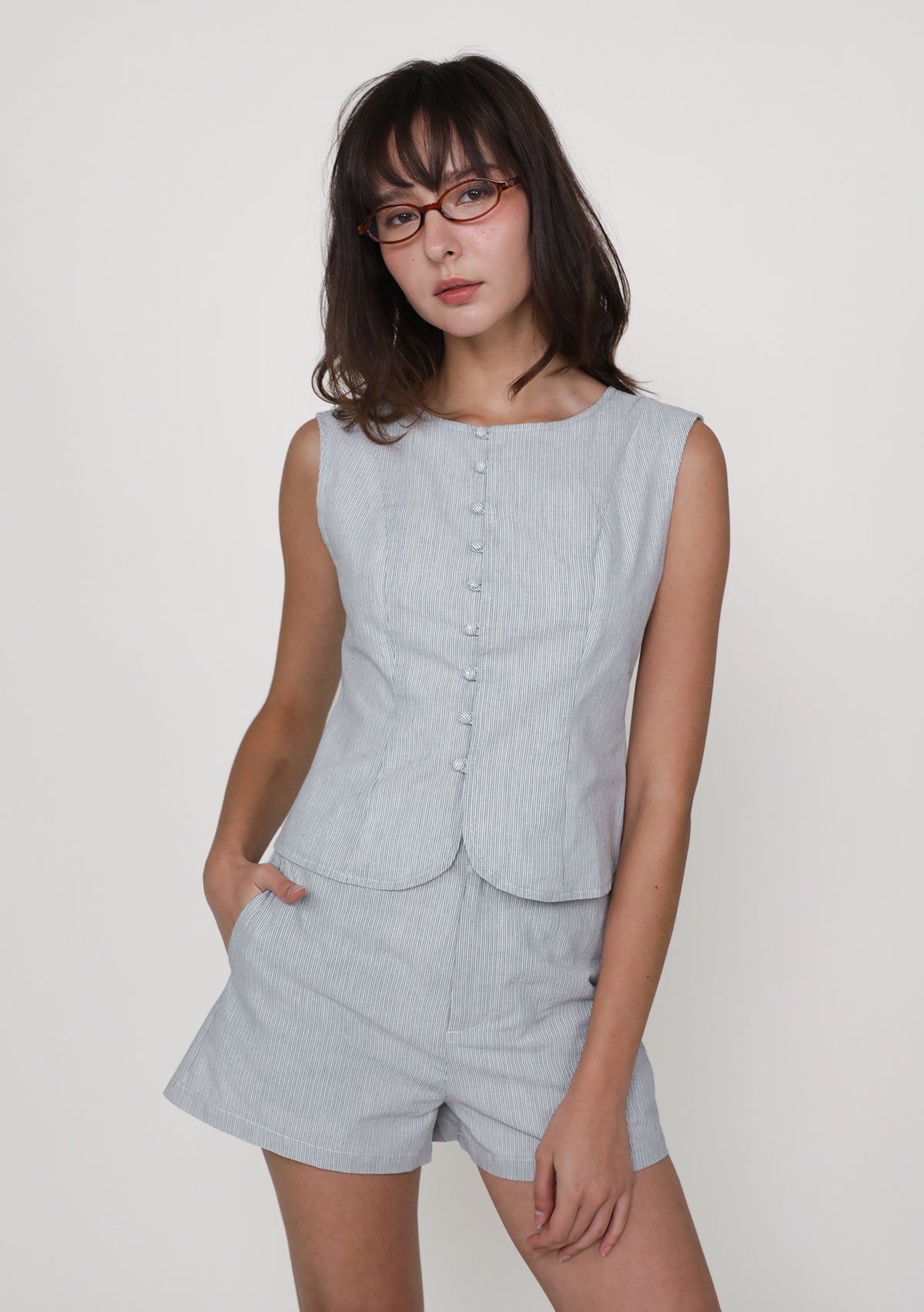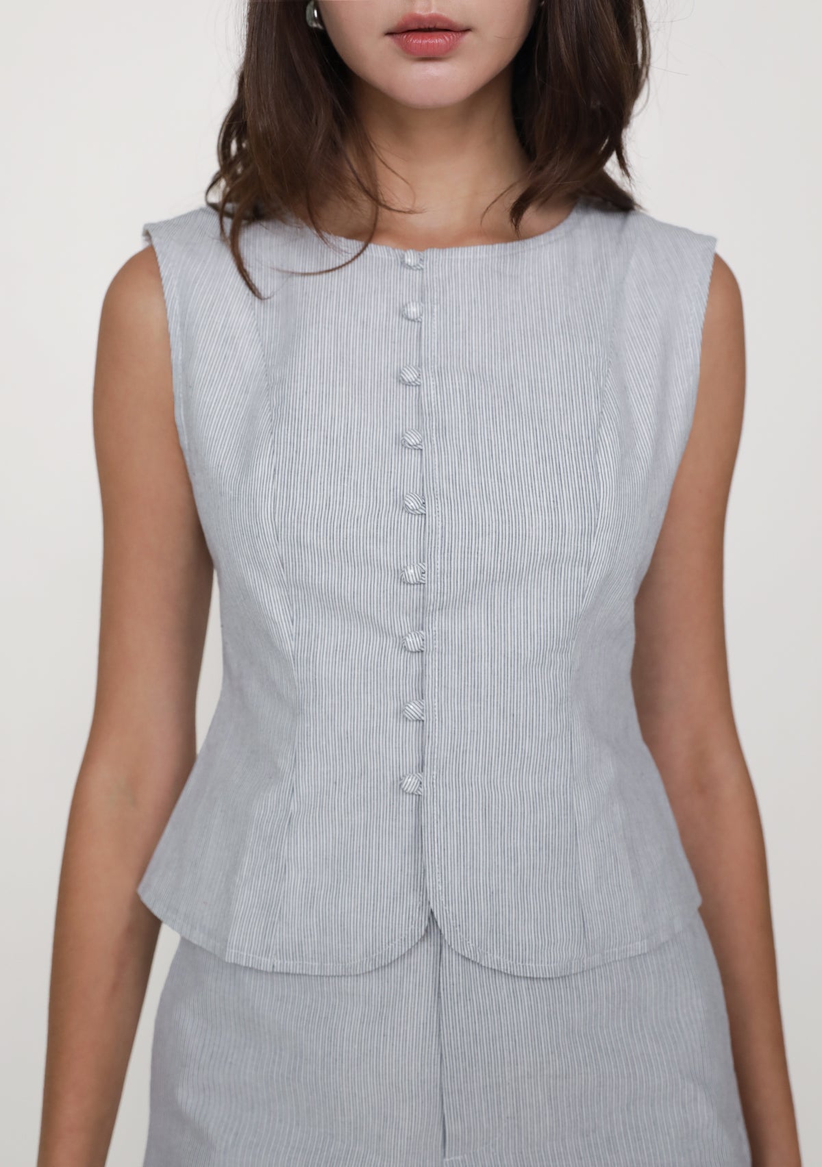 Tessa Button Top (Striped) is a cotton polyester blend top featuring front button-down detail – an elevated essential for everyday wear.