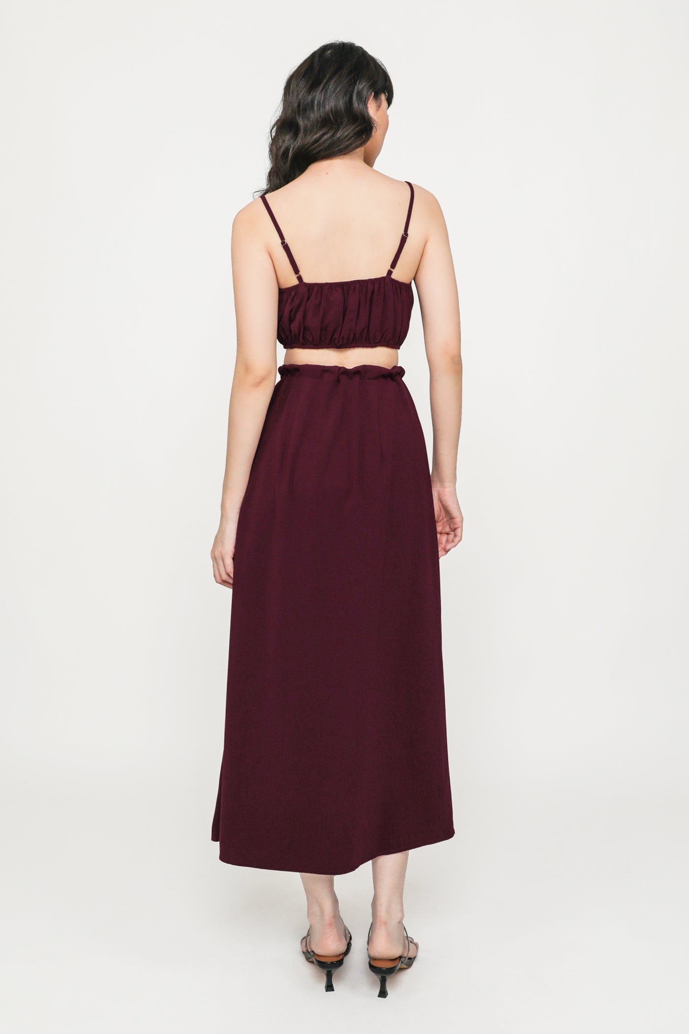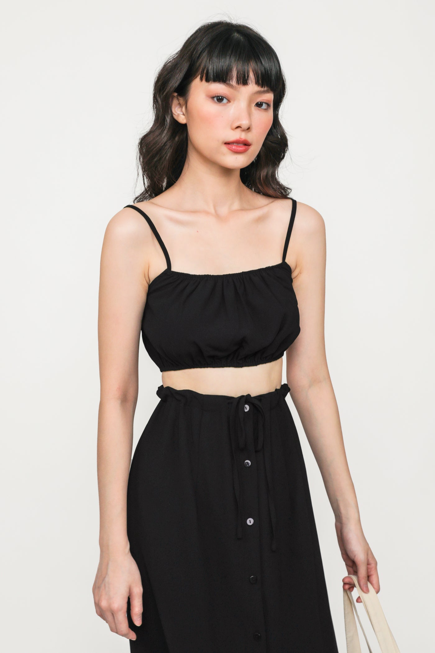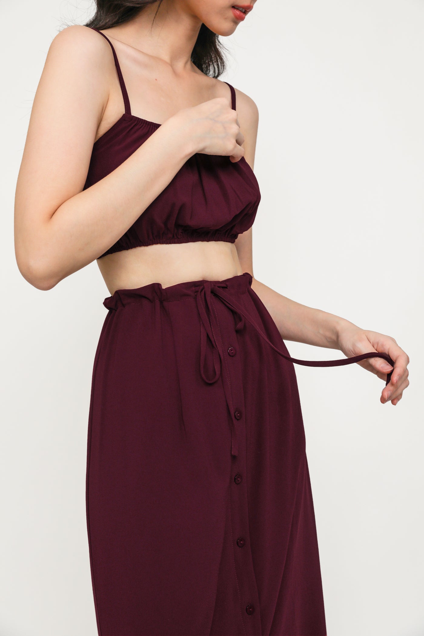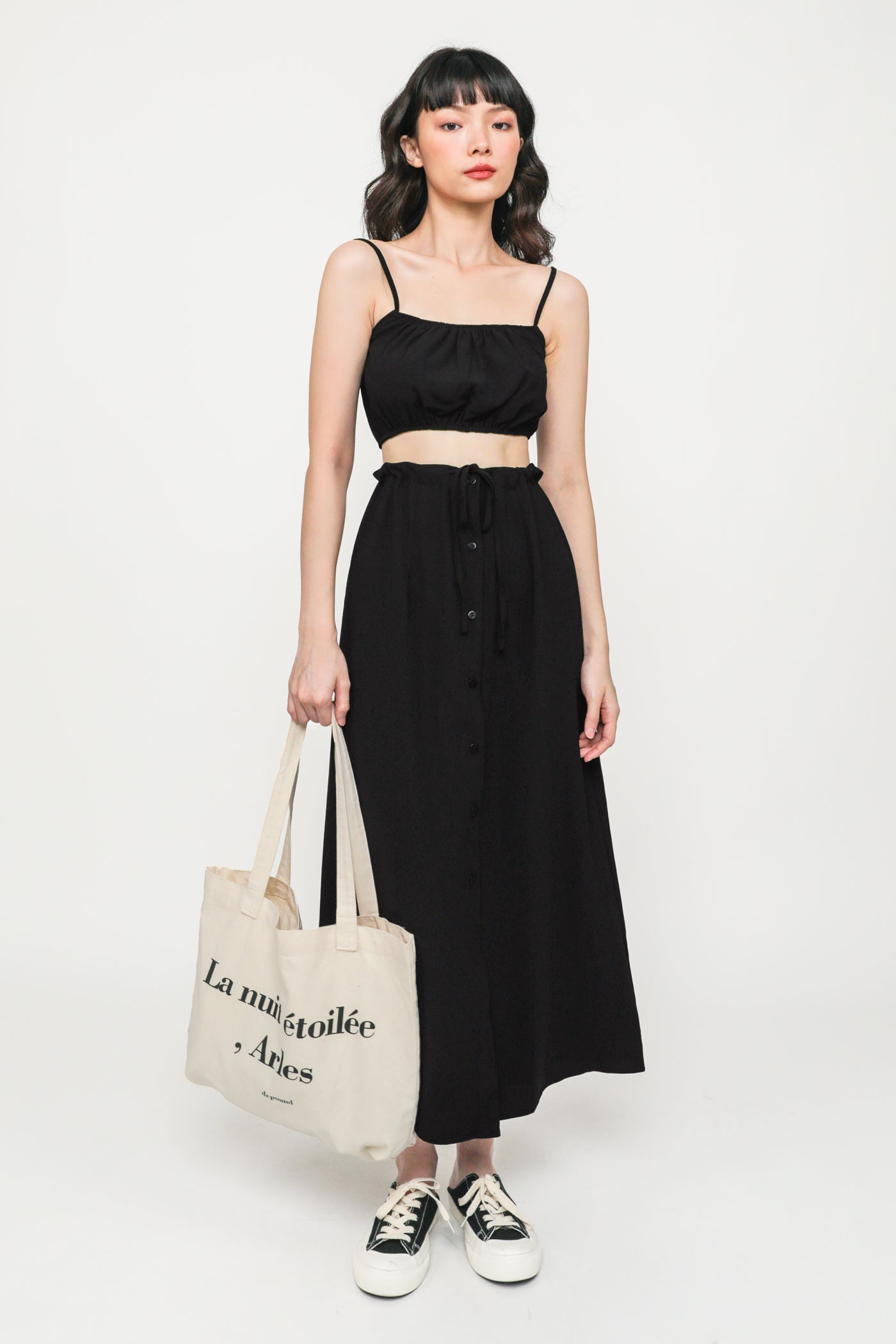 Don't underestimate the elegance of a simple midi skirt. Cody Drawstring Midi Skirt has a flowy silhouette with button details for a chic touch. This midi skirt pairs easily with your favourite basic crop top and blouses. Elevate your weekend looks by switching up your bottoms for this sleek midi skirt.