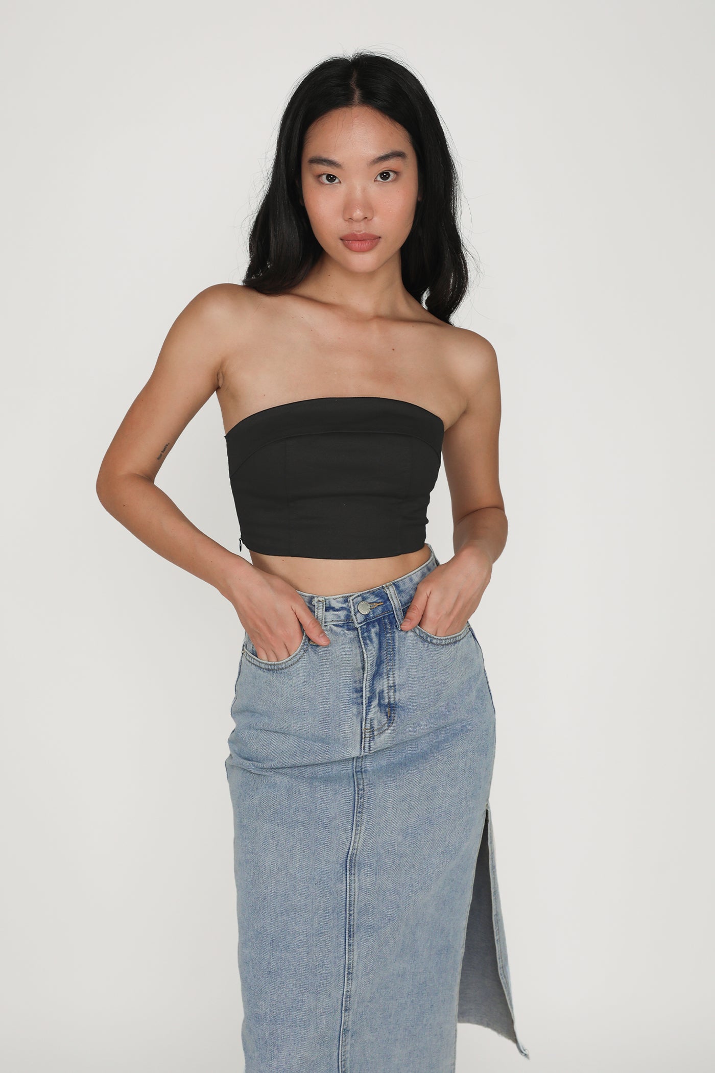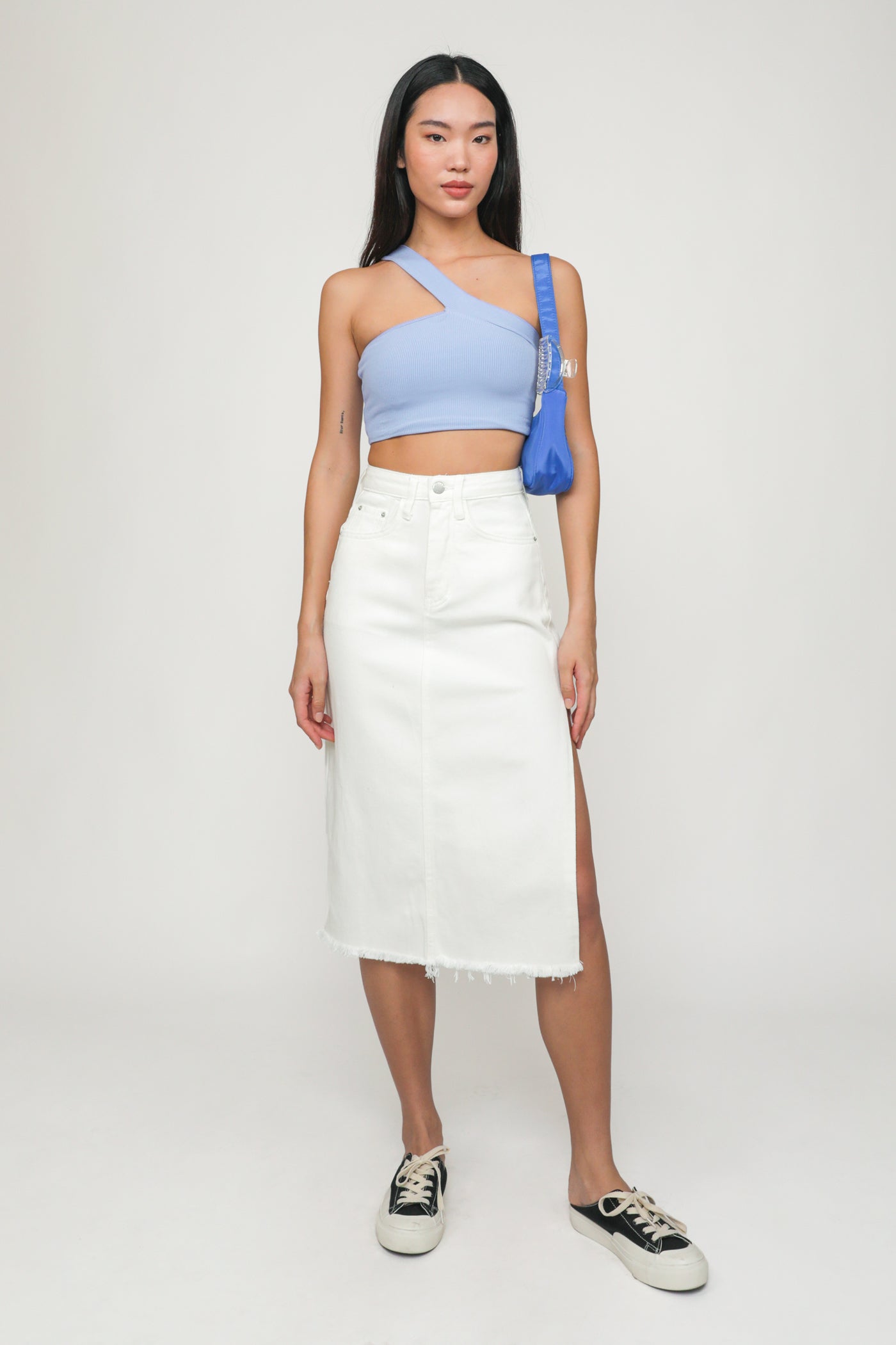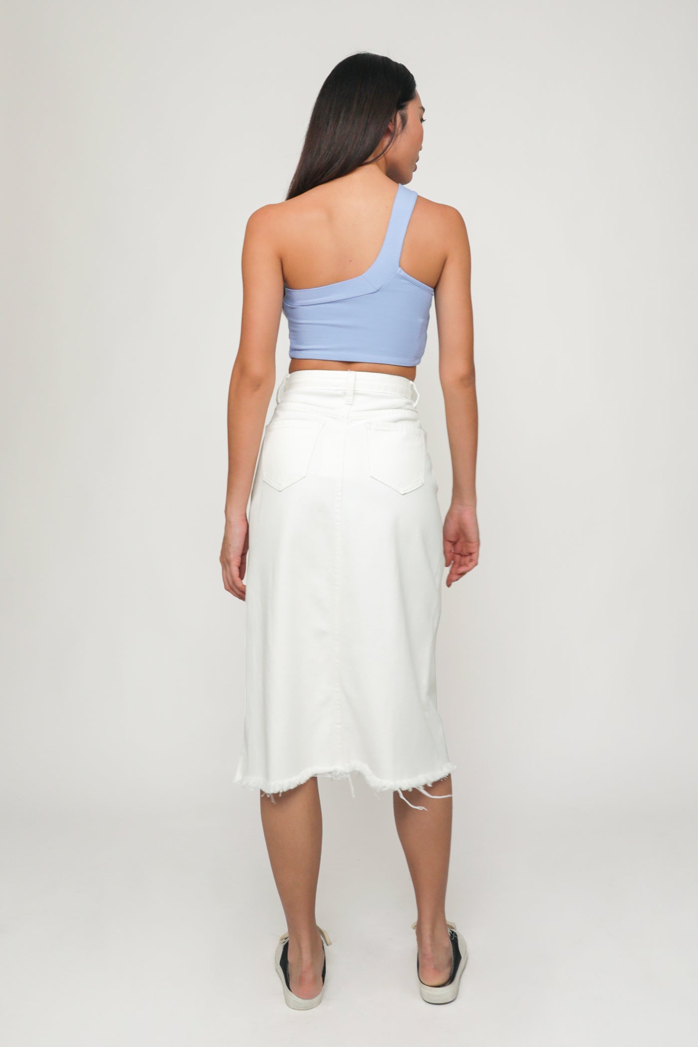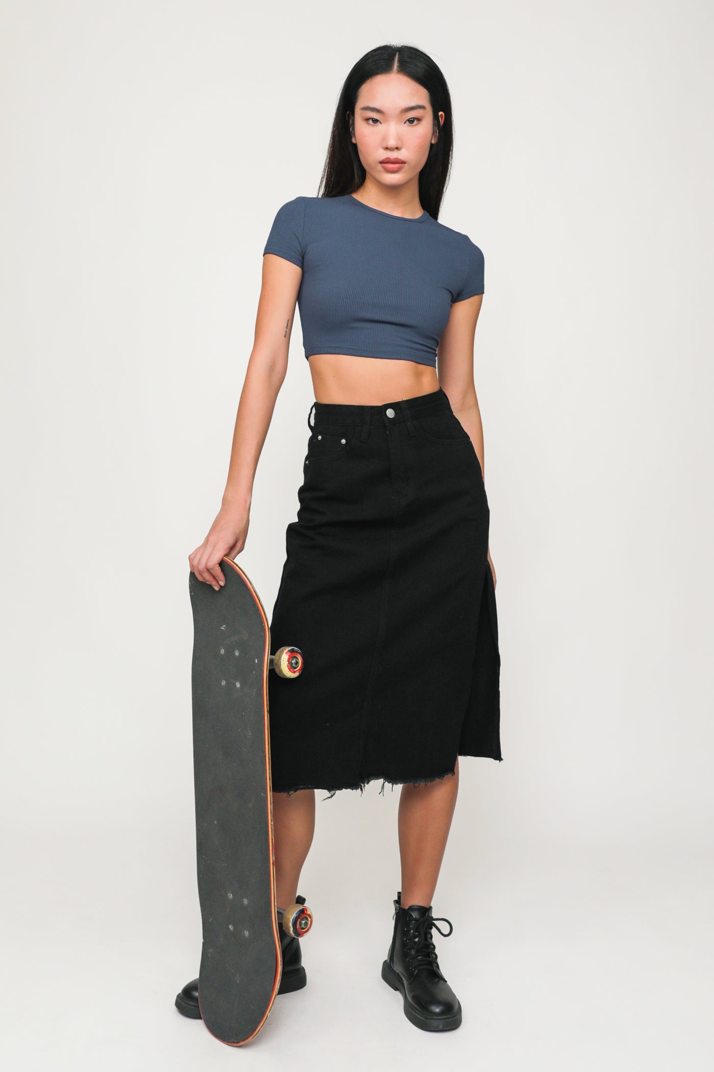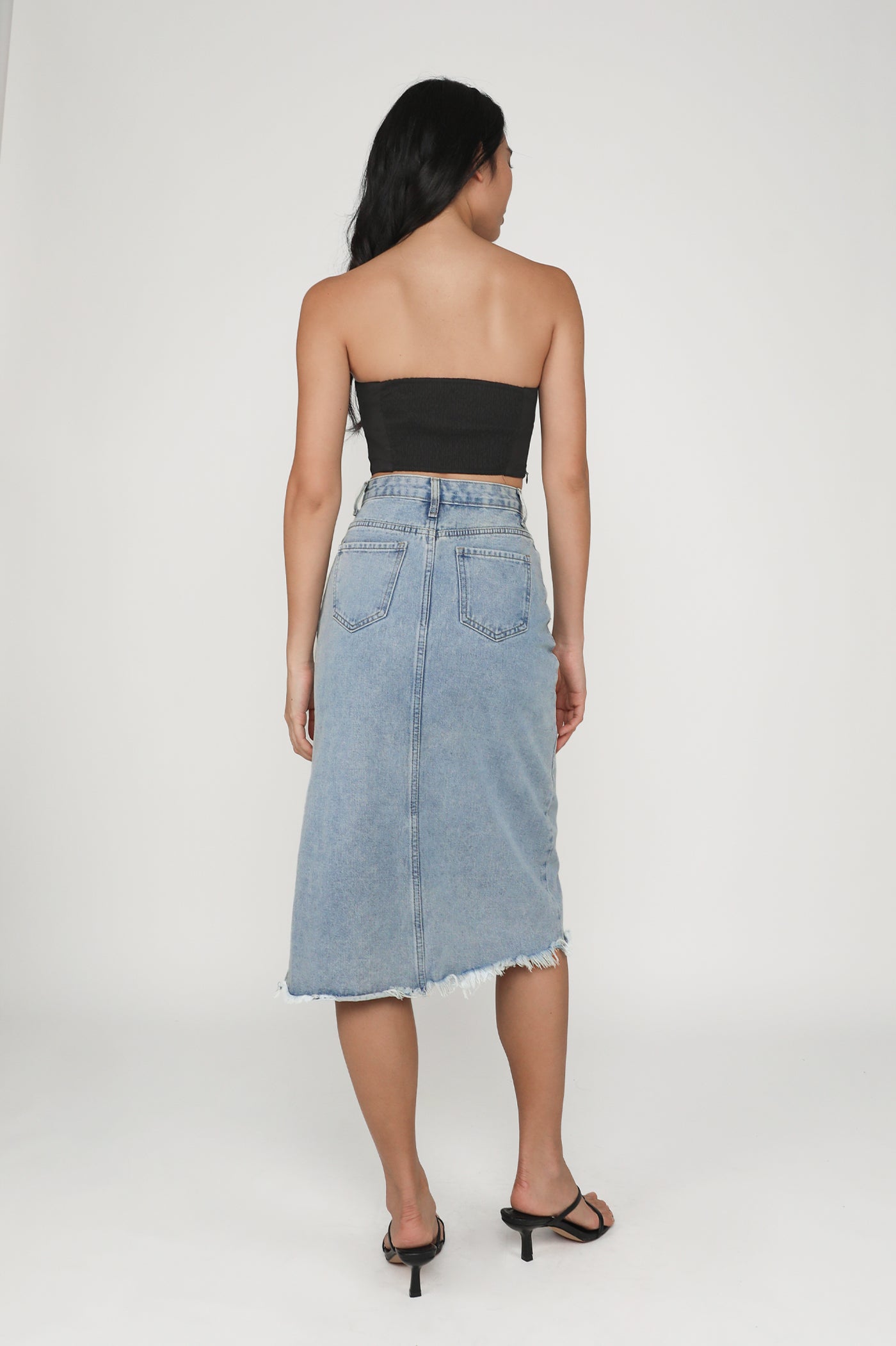 Your weekend looks are sorted with Jada. This denim midi skirt is a timeless feminine piece that effortlessly ties an outfit together. Jada's high slits on the sides also gives a chic hint to any look.
