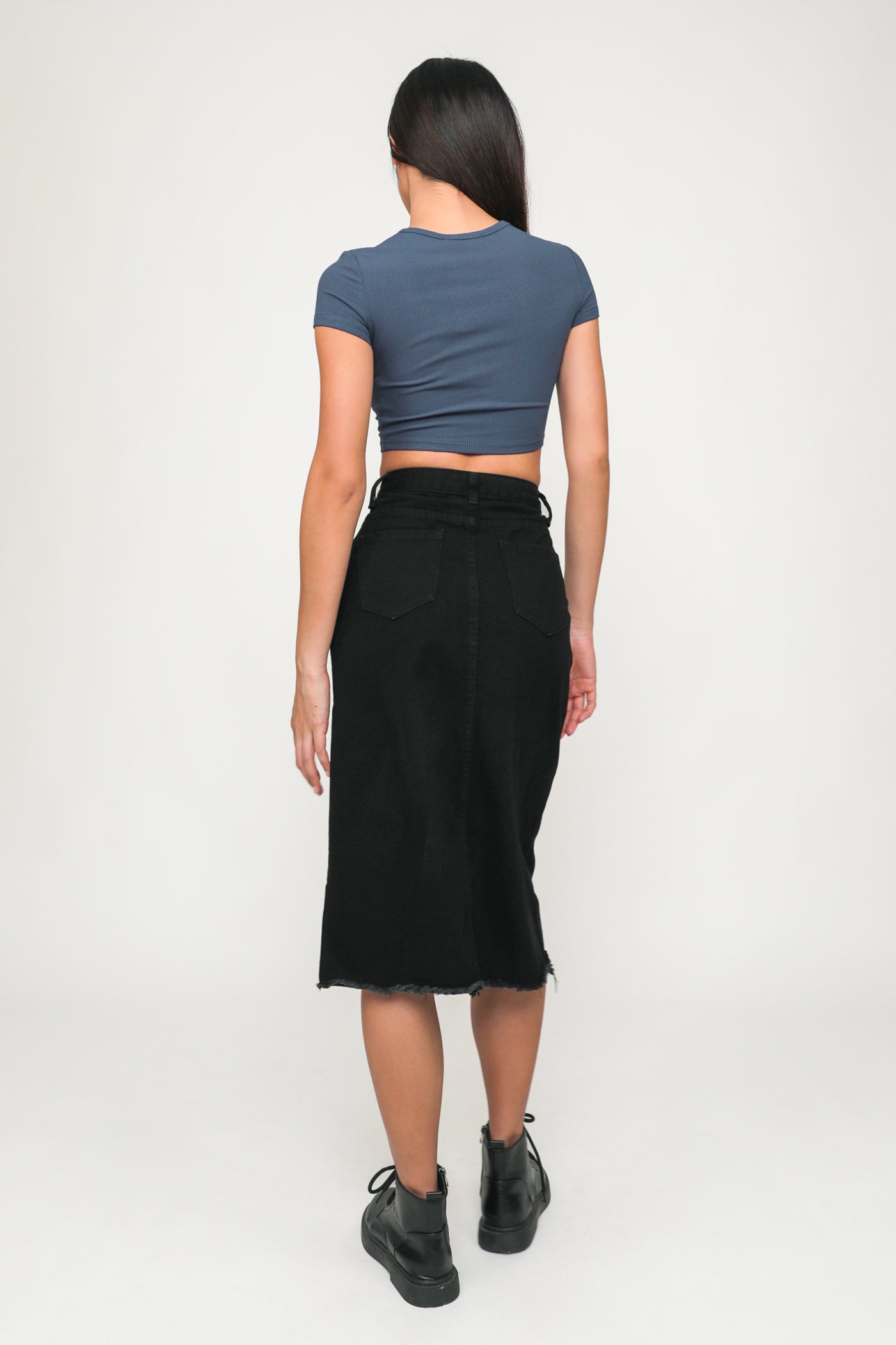 Thank you, we have now received and recorded your request to be notified should Jada High Slit Denim Midi Skirt be restocked.
