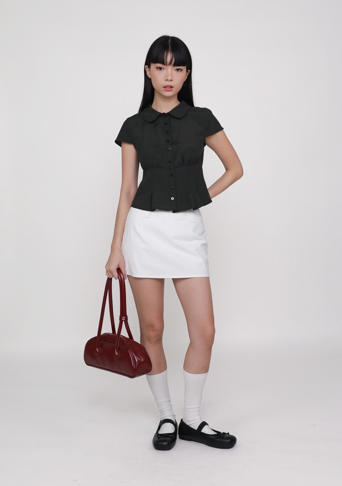 Add a little prep to your step with our Hattie Sleeve Button Blouse. Its rounded collar, front button details, and crisp inverted pleats bring smart style to the forefront, while the cap sleeves keep things sweet and breezy. Whether you’re headed to brunch or books, Hattie delivers effortless charm with every wear.