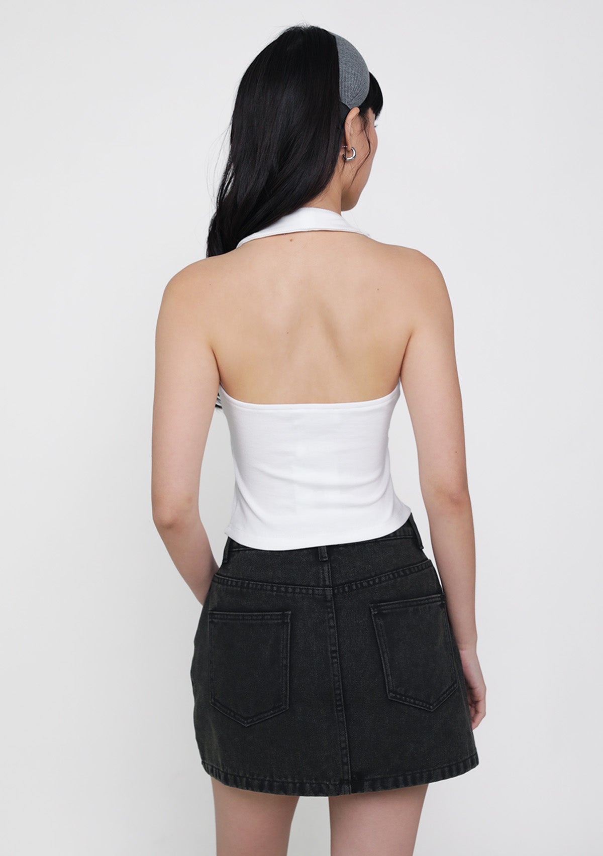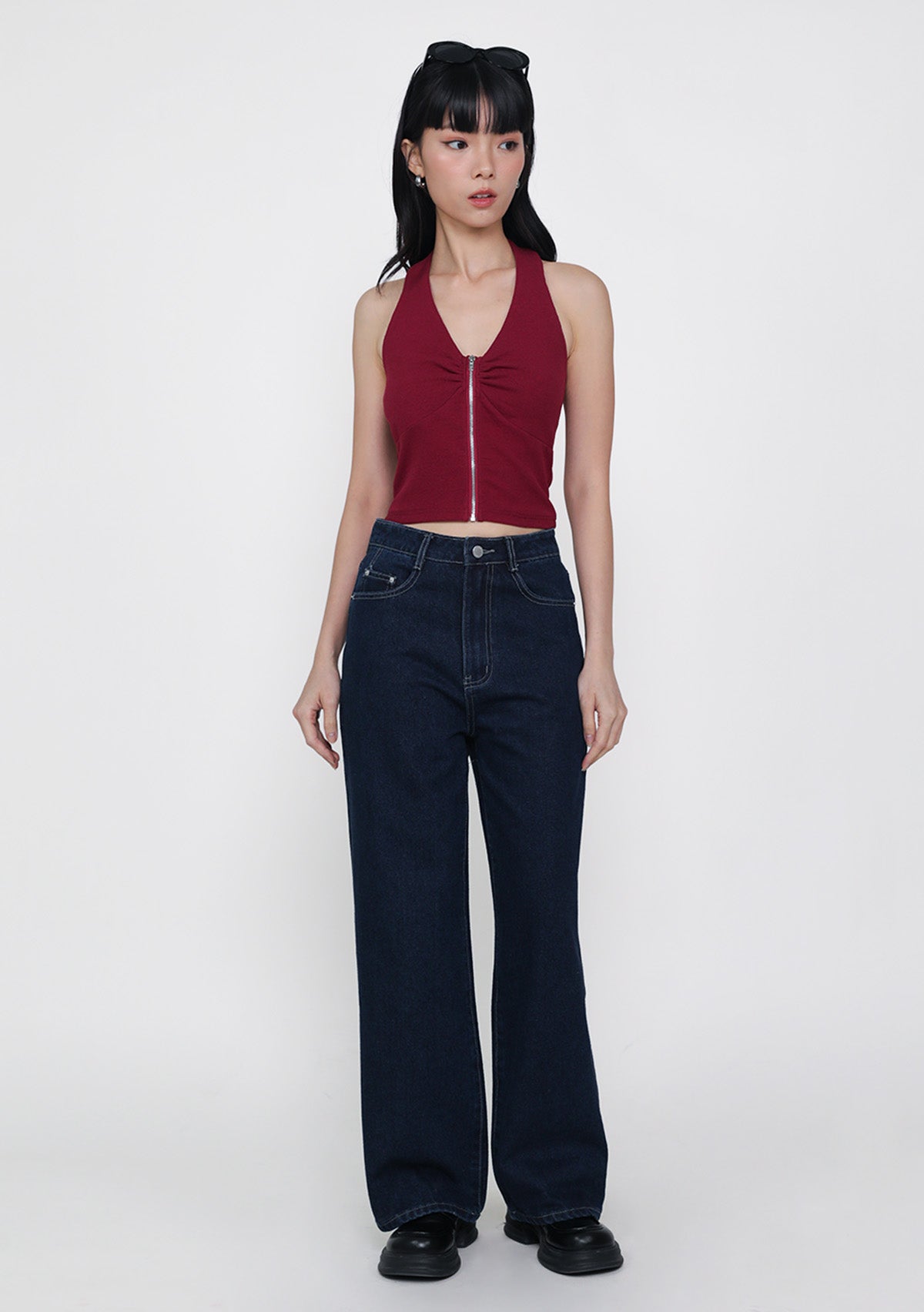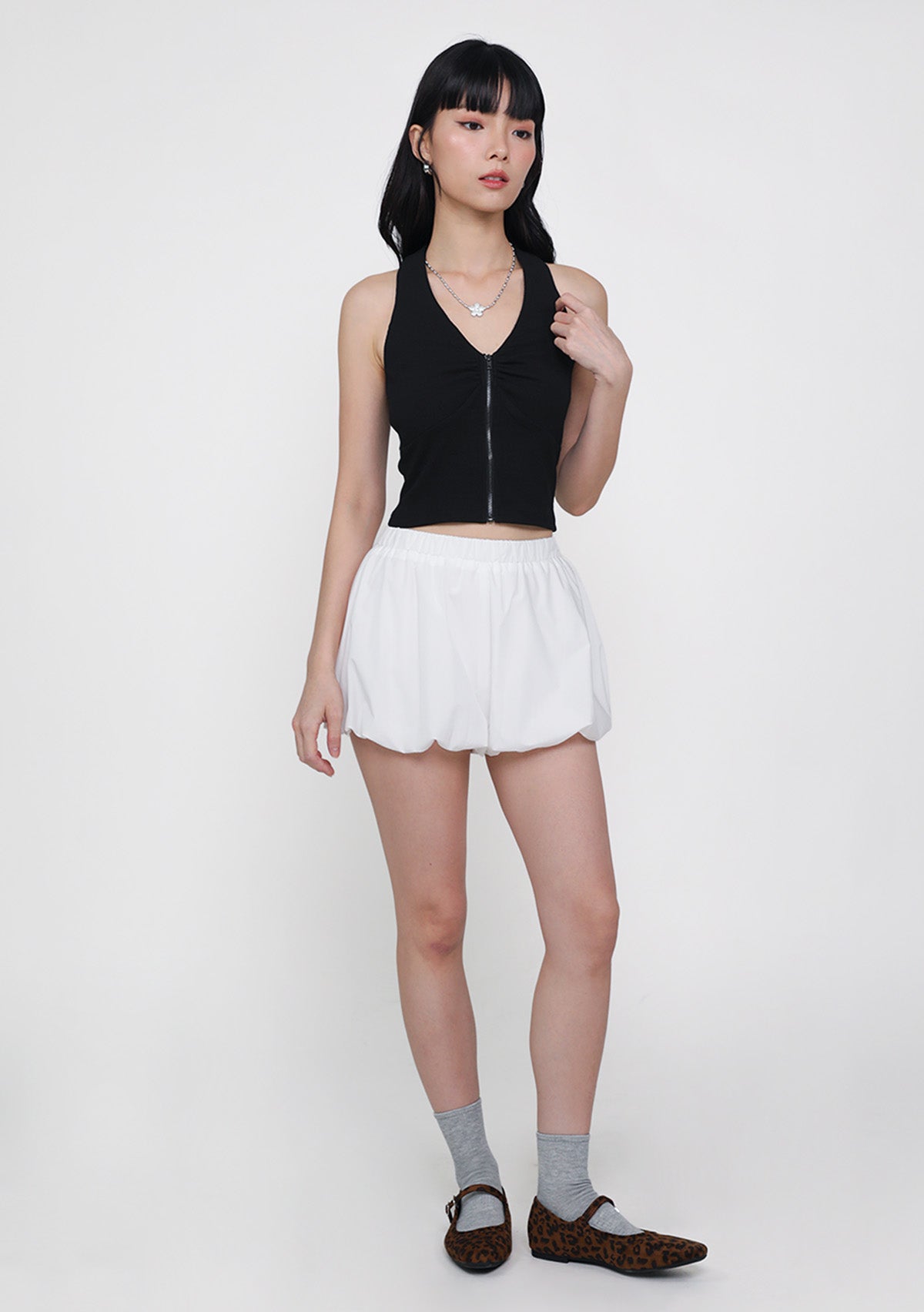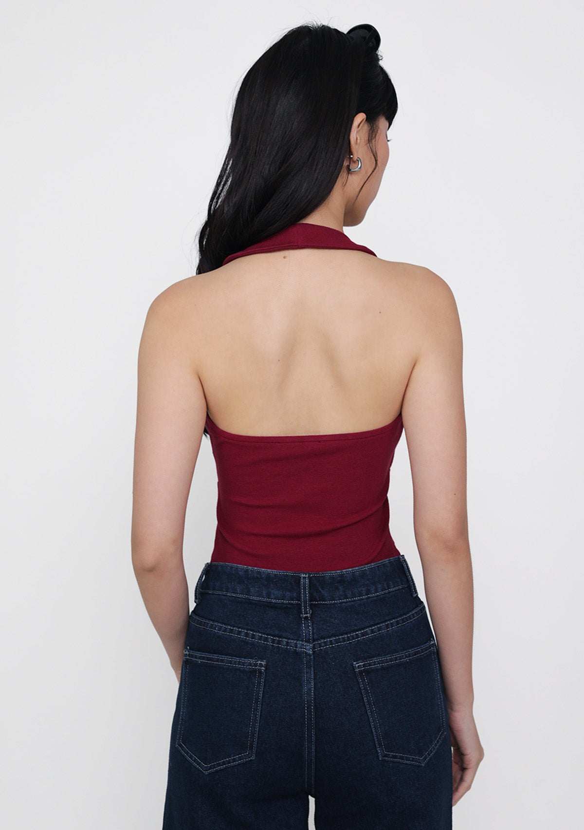 Marielle Zip Up Padded Halter Top features a sporty halter design, removable padding, and front zip—stretchy, comfortable, and effortlessly flattering.