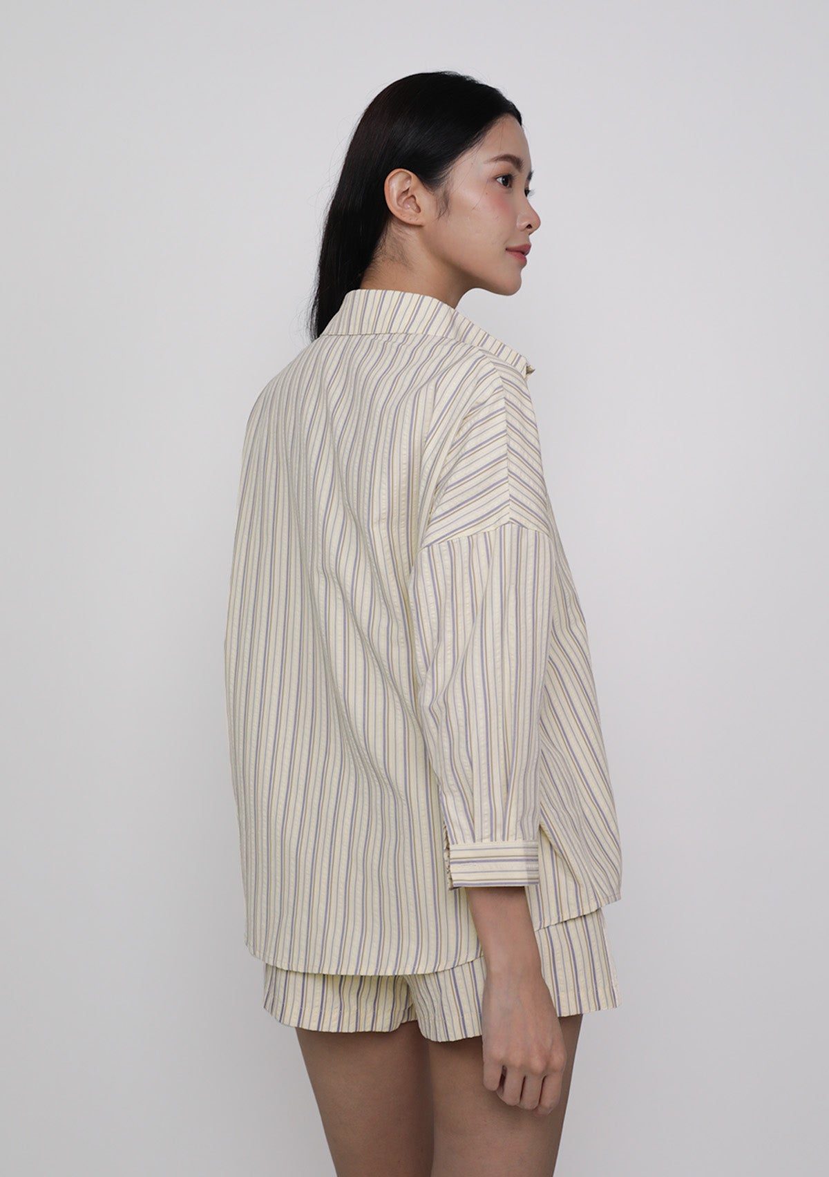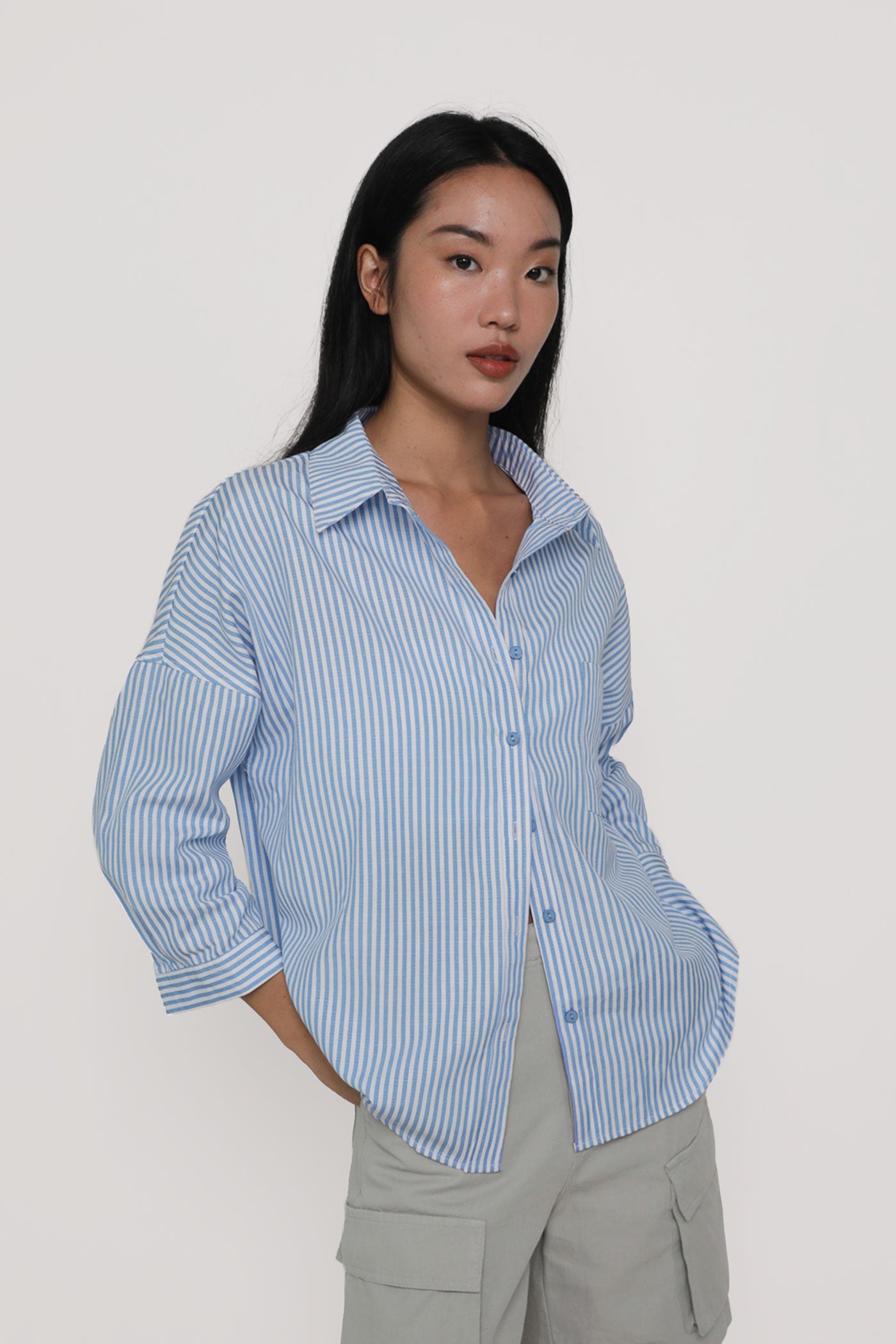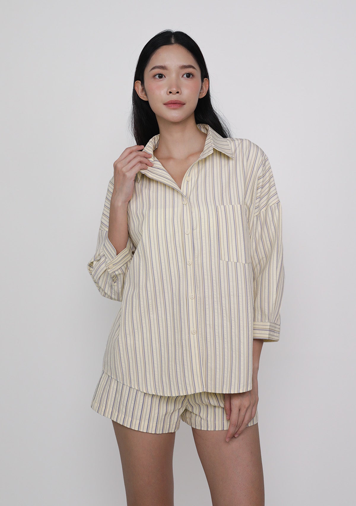 Some days call for effortless style, and the Sanford Boyfriend Shirt is here to deliver. With its textured striped fabric and relaxed silhouette, it’s a timeless staple that works for any mood—whether layered up or styled solo. The three-quarter sleeves add a touch of ease, instantly making every wear feel put together.