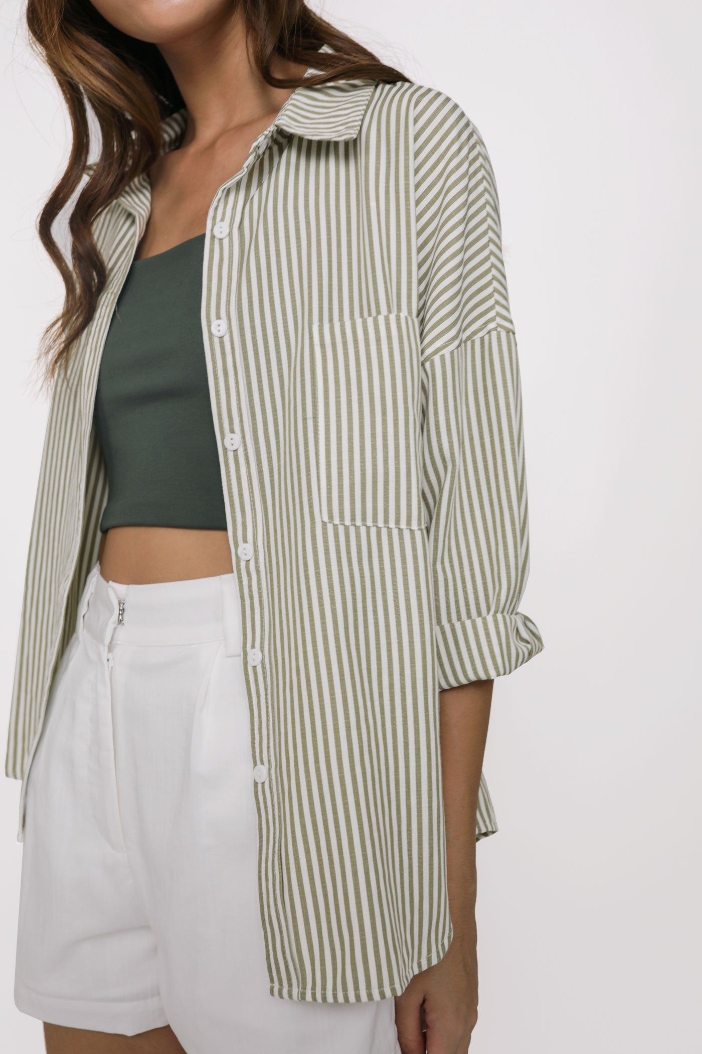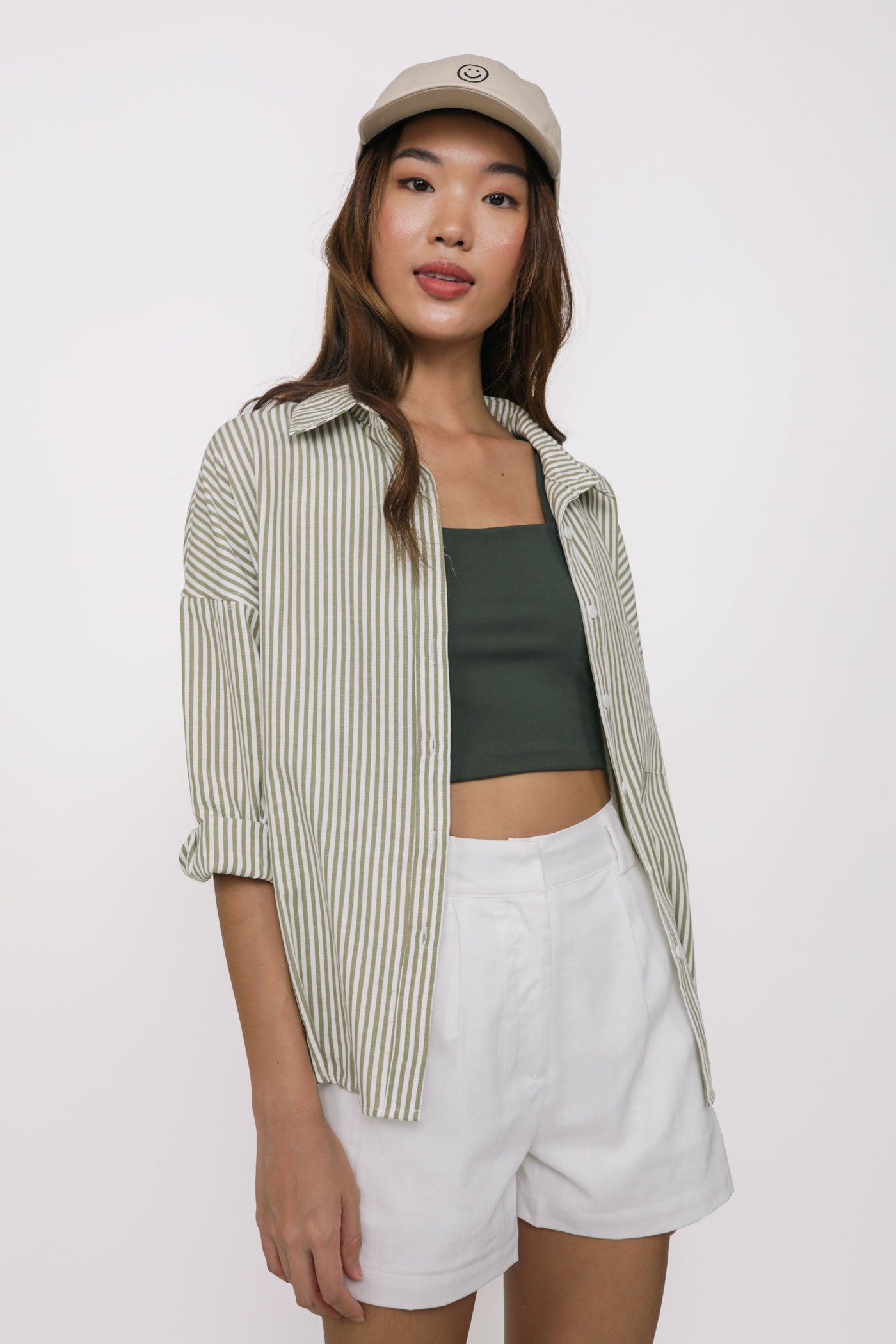Love the cutting for Sanford Boyfriend Shirt. Have a collection of multiple colours including strips one. Can TTS restock the olive color?🥹🥹🥹