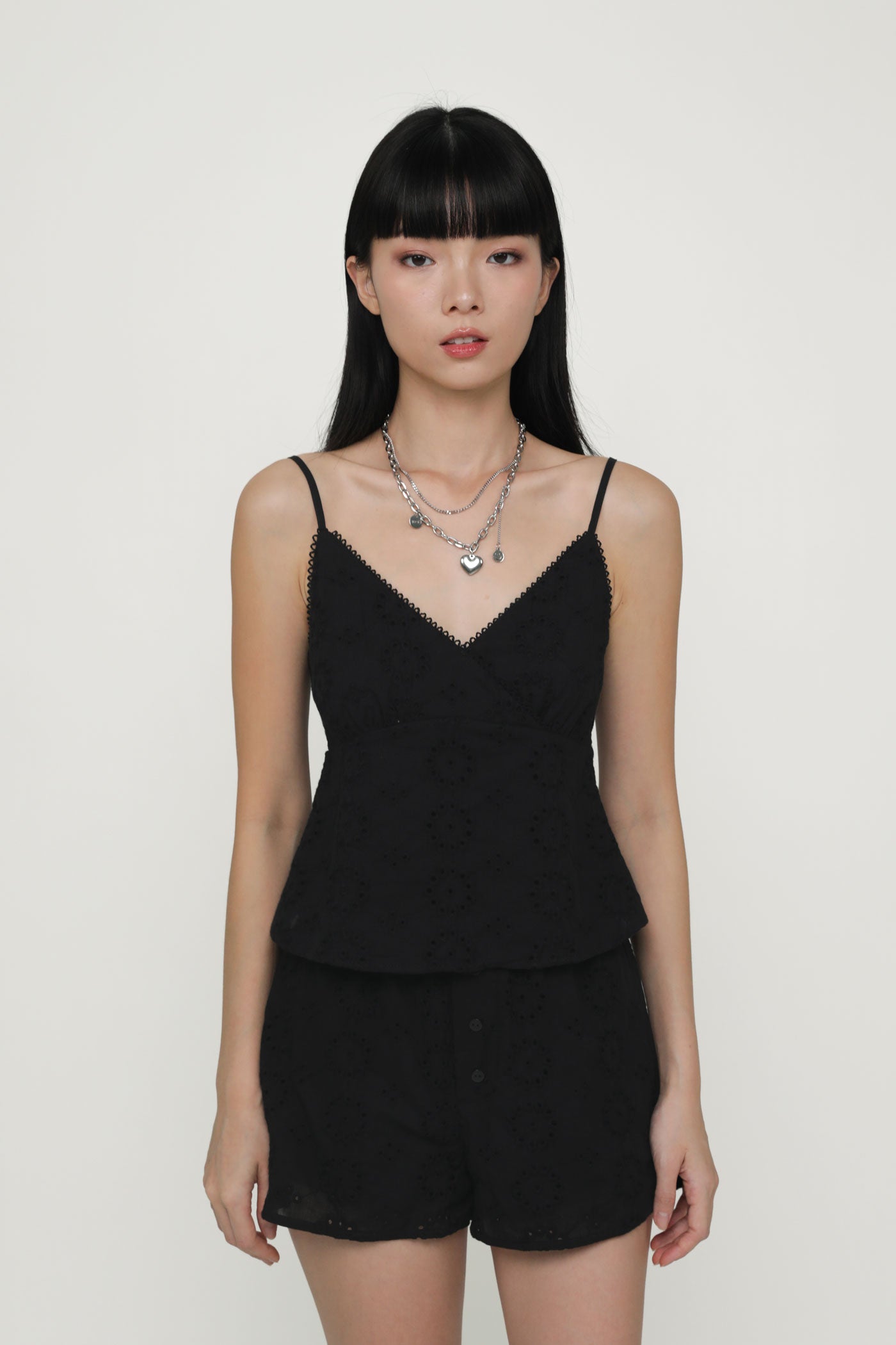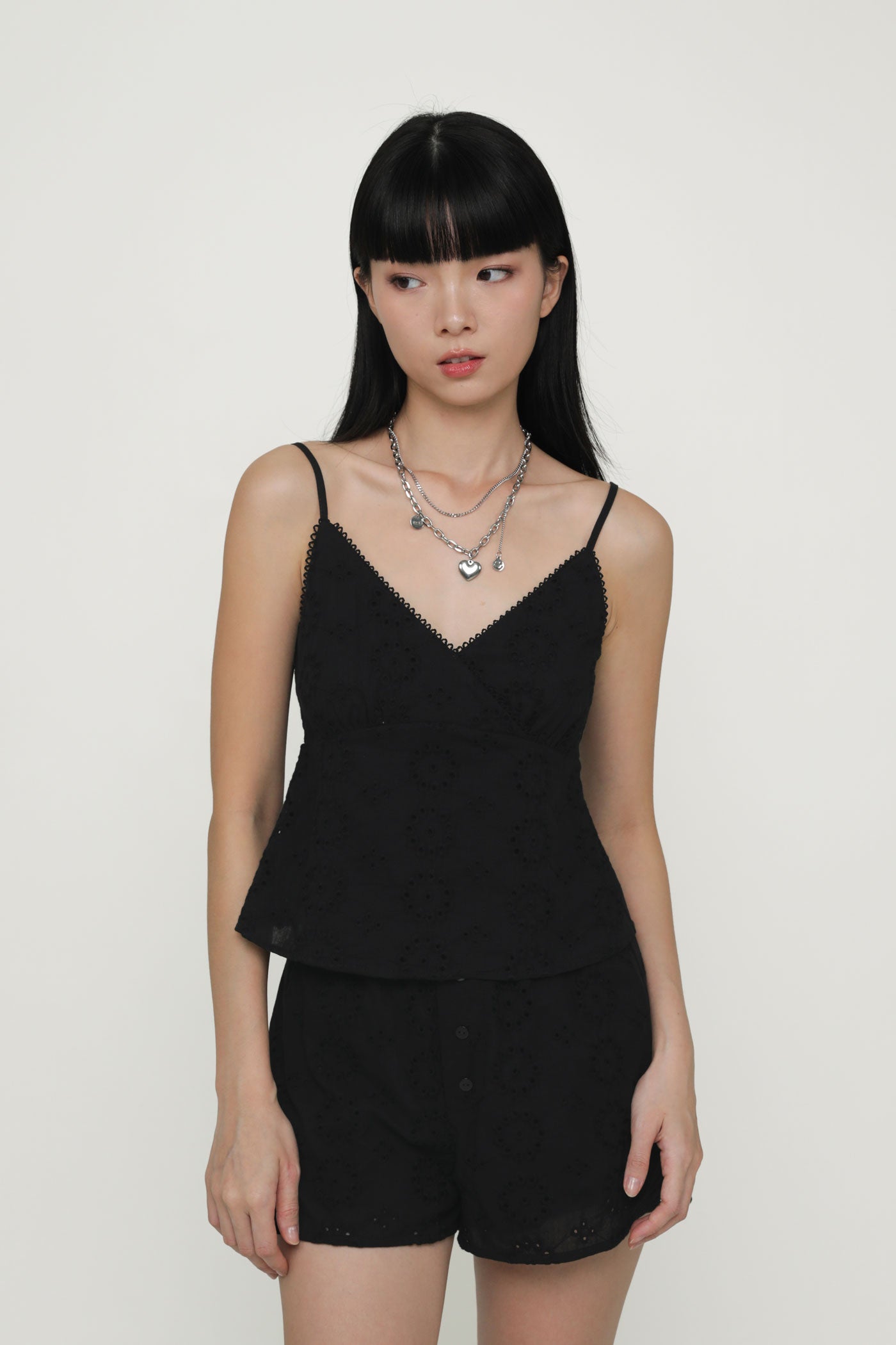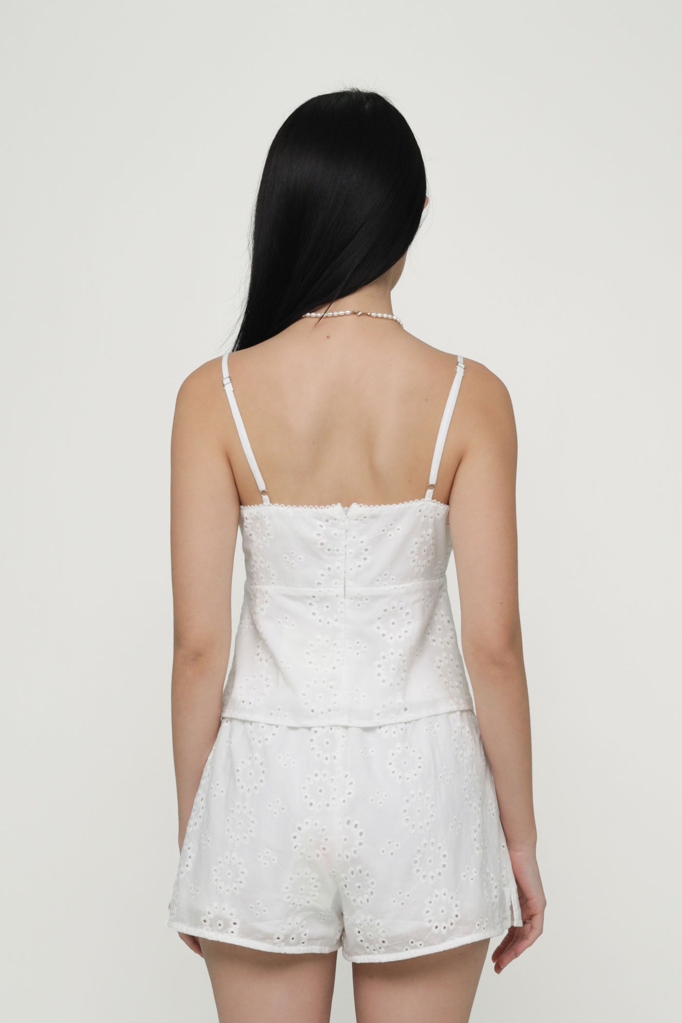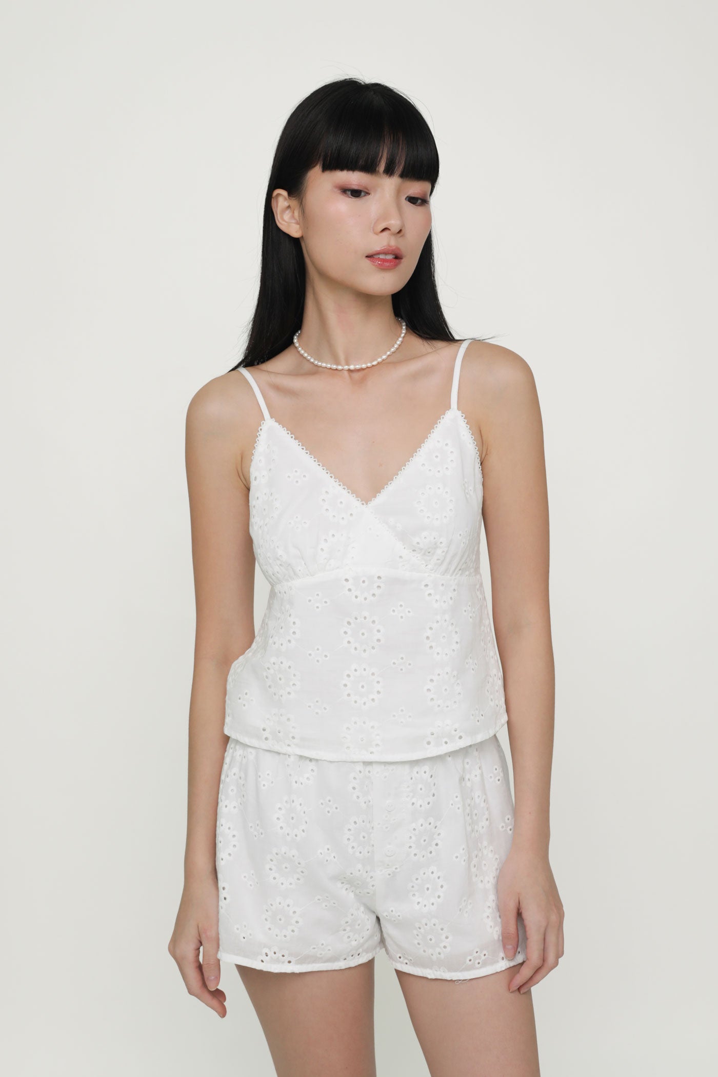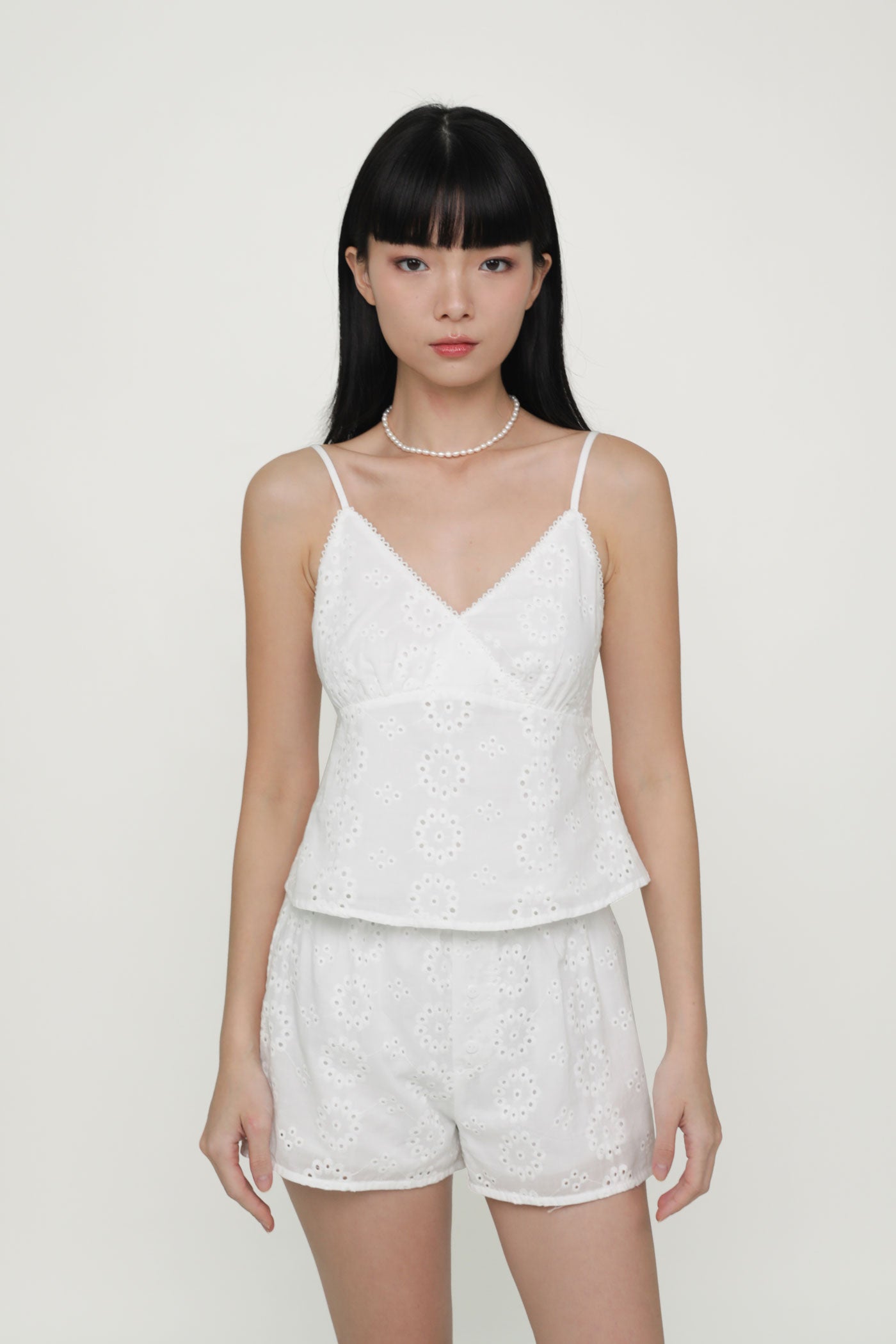 Allie Eyelet Spag Top is the ultimate blend of breezy and beautiful. With its airy, relaxed silhouette and delicate eyelet details, this spaghetti strap top is made for sun-soaked days. Whether you’re pairing it with denim shorts for a casual vibe or dressing it up as a co-ord with our Bernice Eyelet Boxer Shorts, Allie brings effortless charm to any outfit.