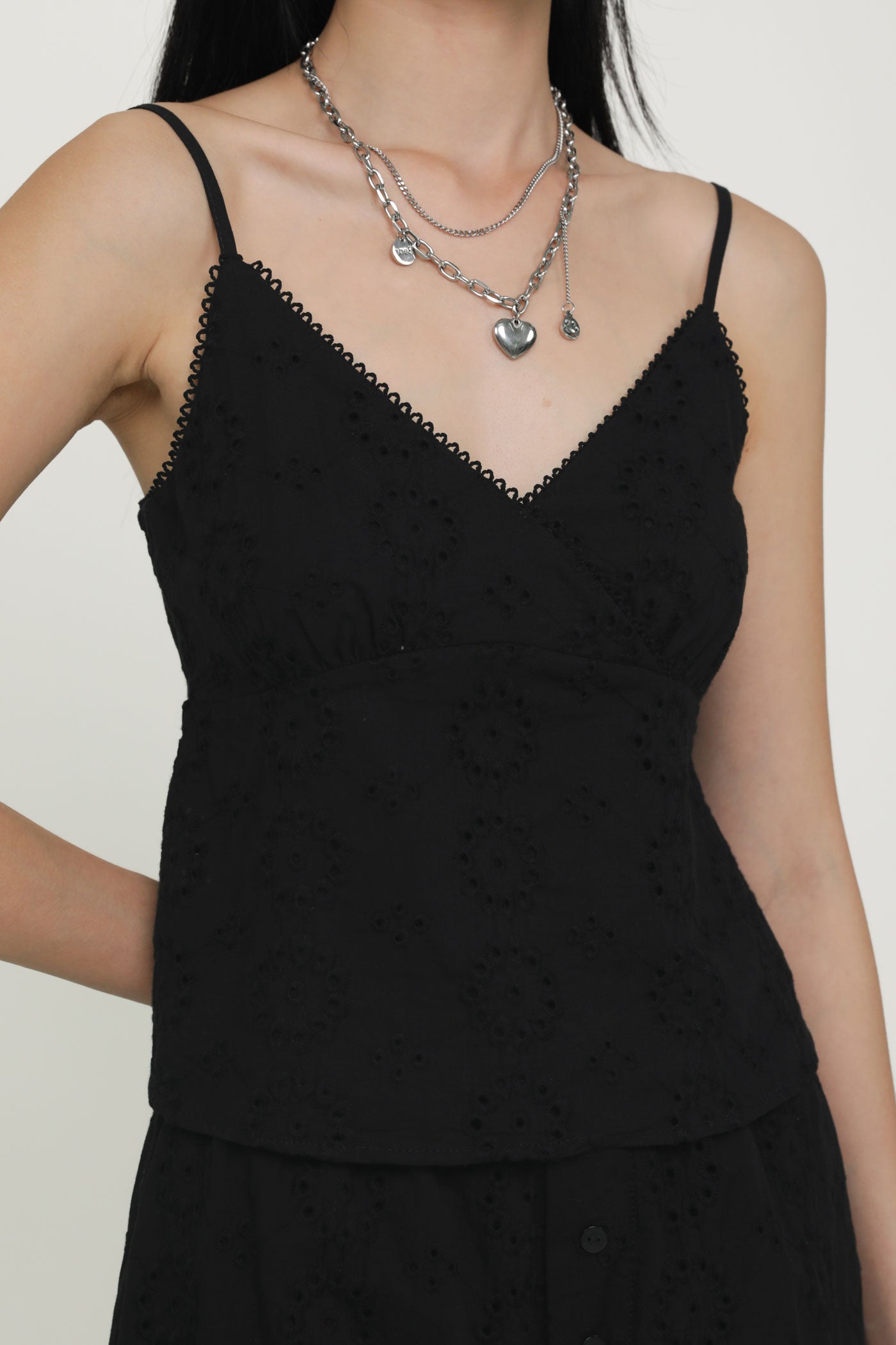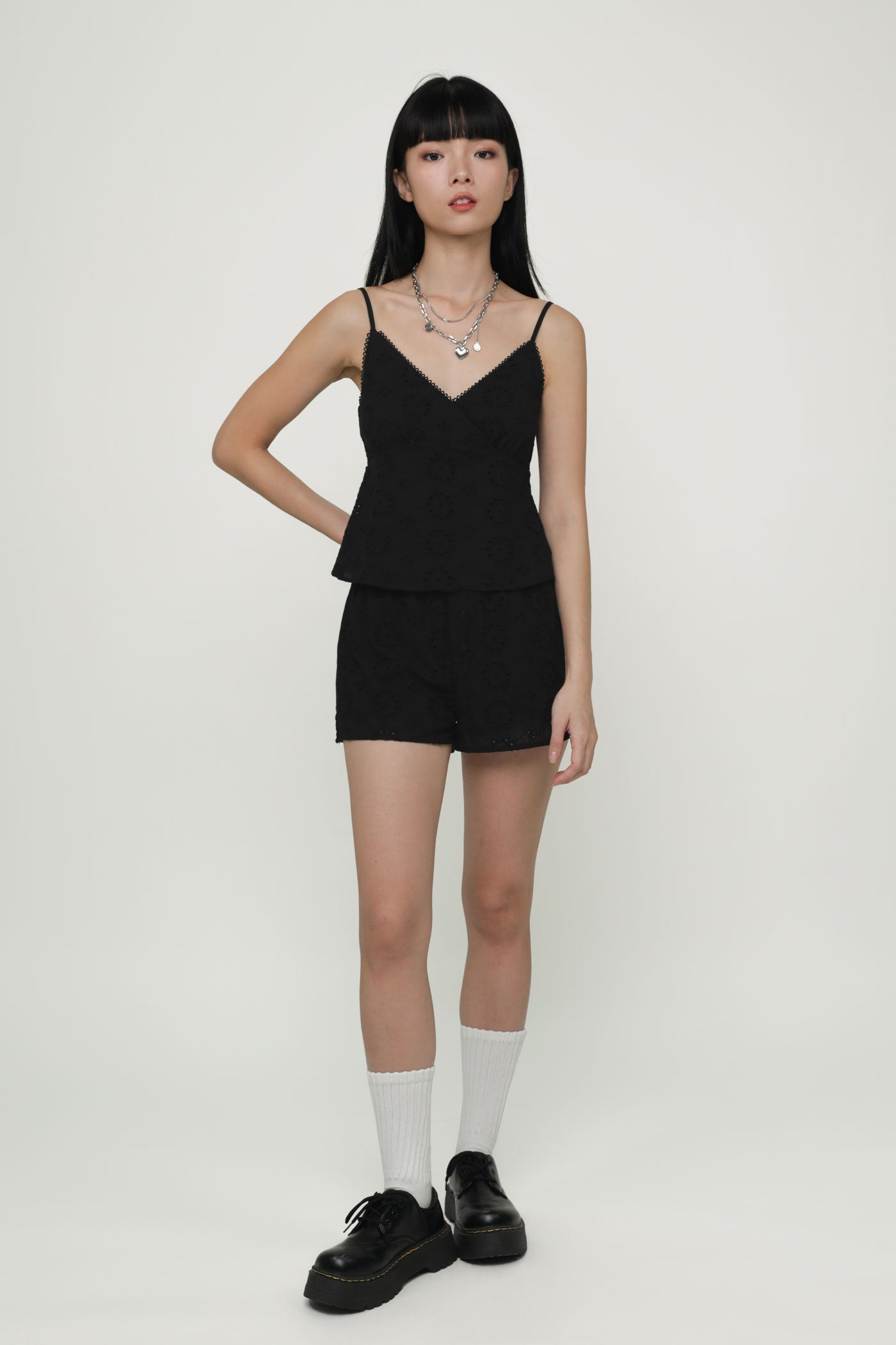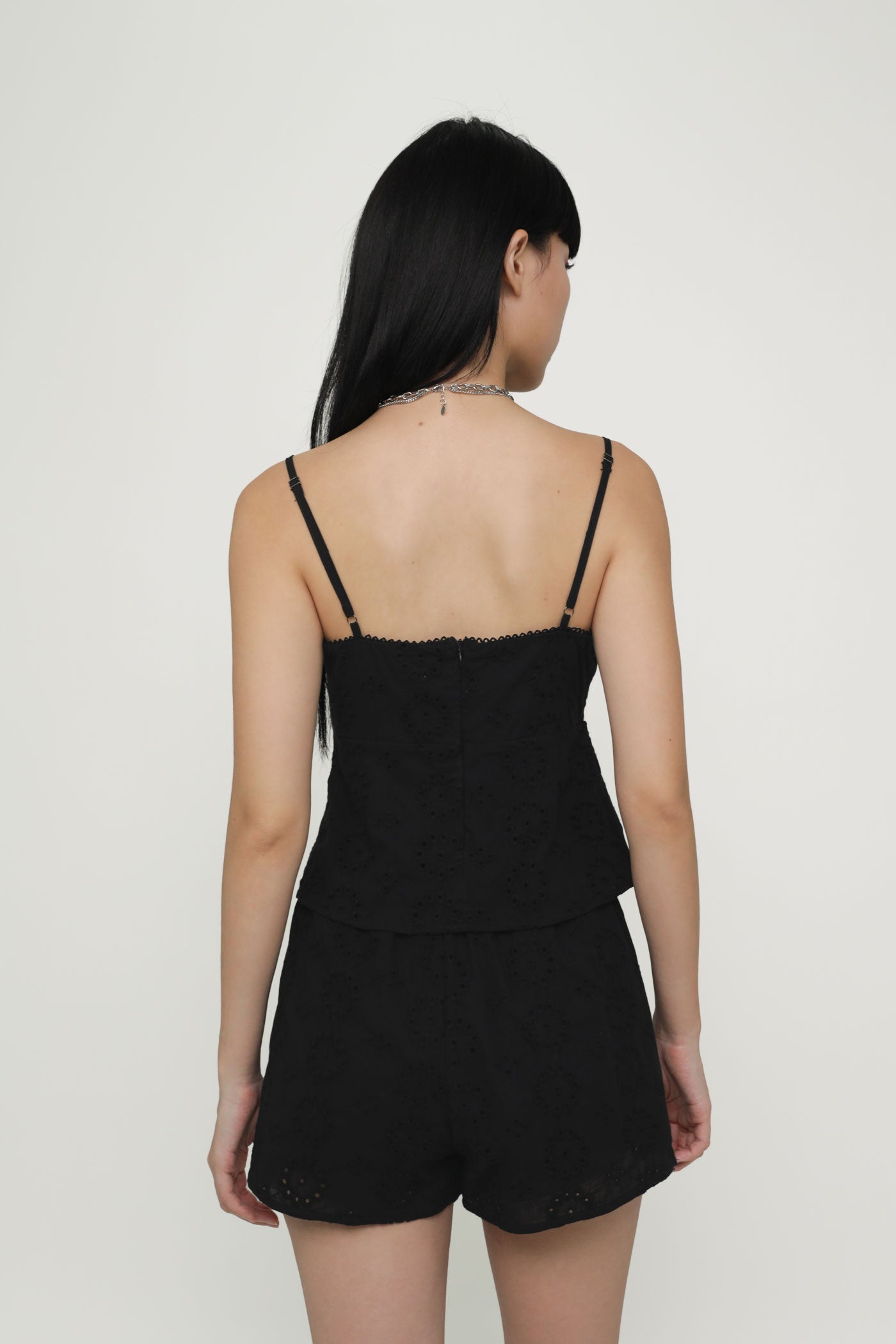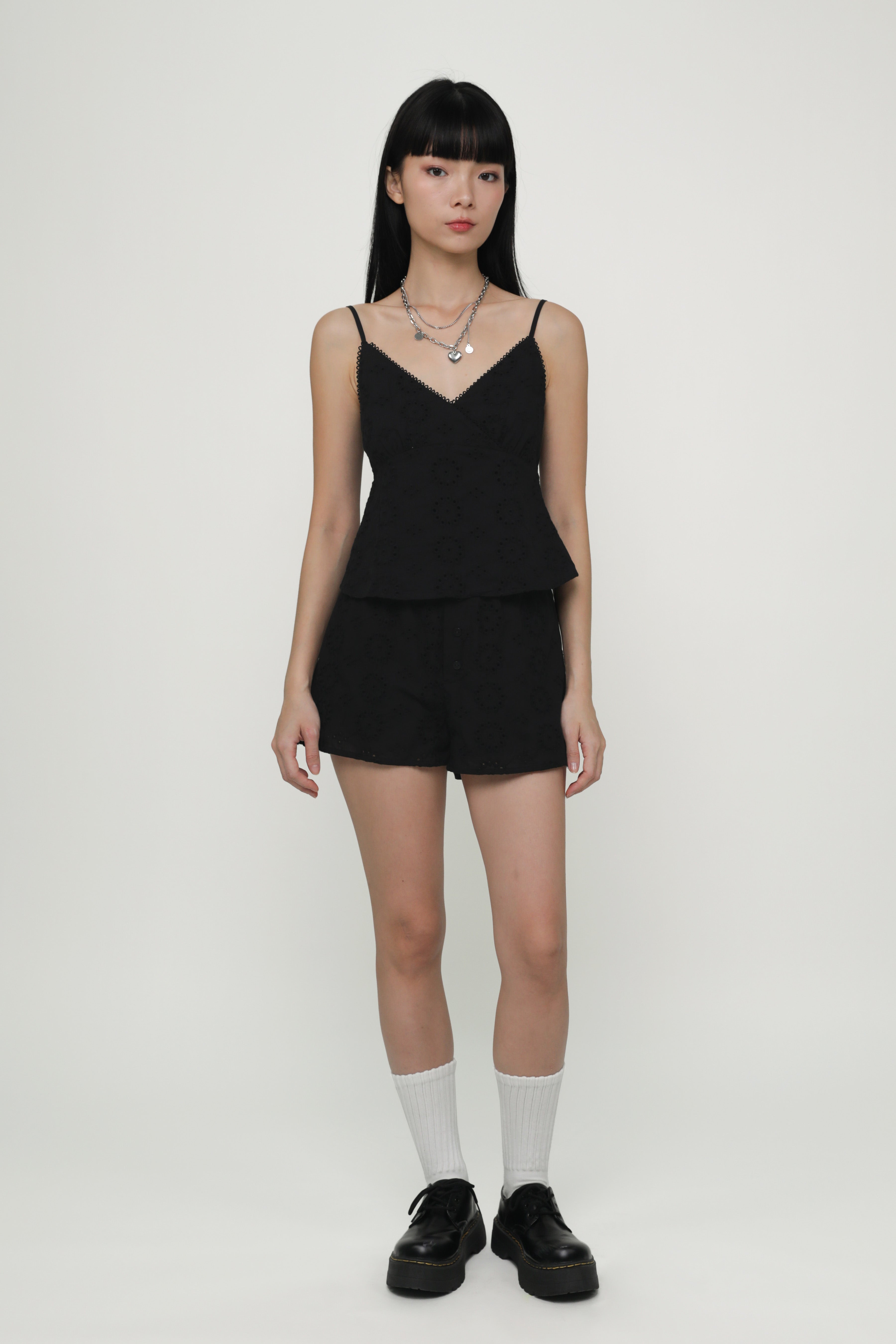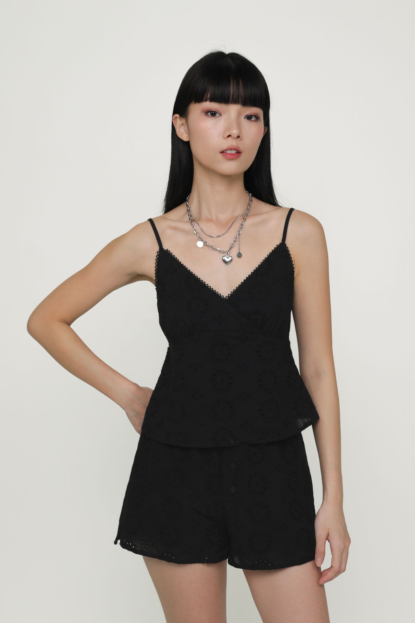 Allie Eyelet Spag Top is the ultimate blend of breezy and beautiful. With its airy, relaxed silhouette and delicate eyelet details, this spaghetti strap top is made for sun-soaked days. Whether you’re pairing it with denim shorts for a casual vibe or dressing it up as a co-ord with our Bernice Eyelet Boxer Shorts, Allie brings effortless charm to any outfit.
