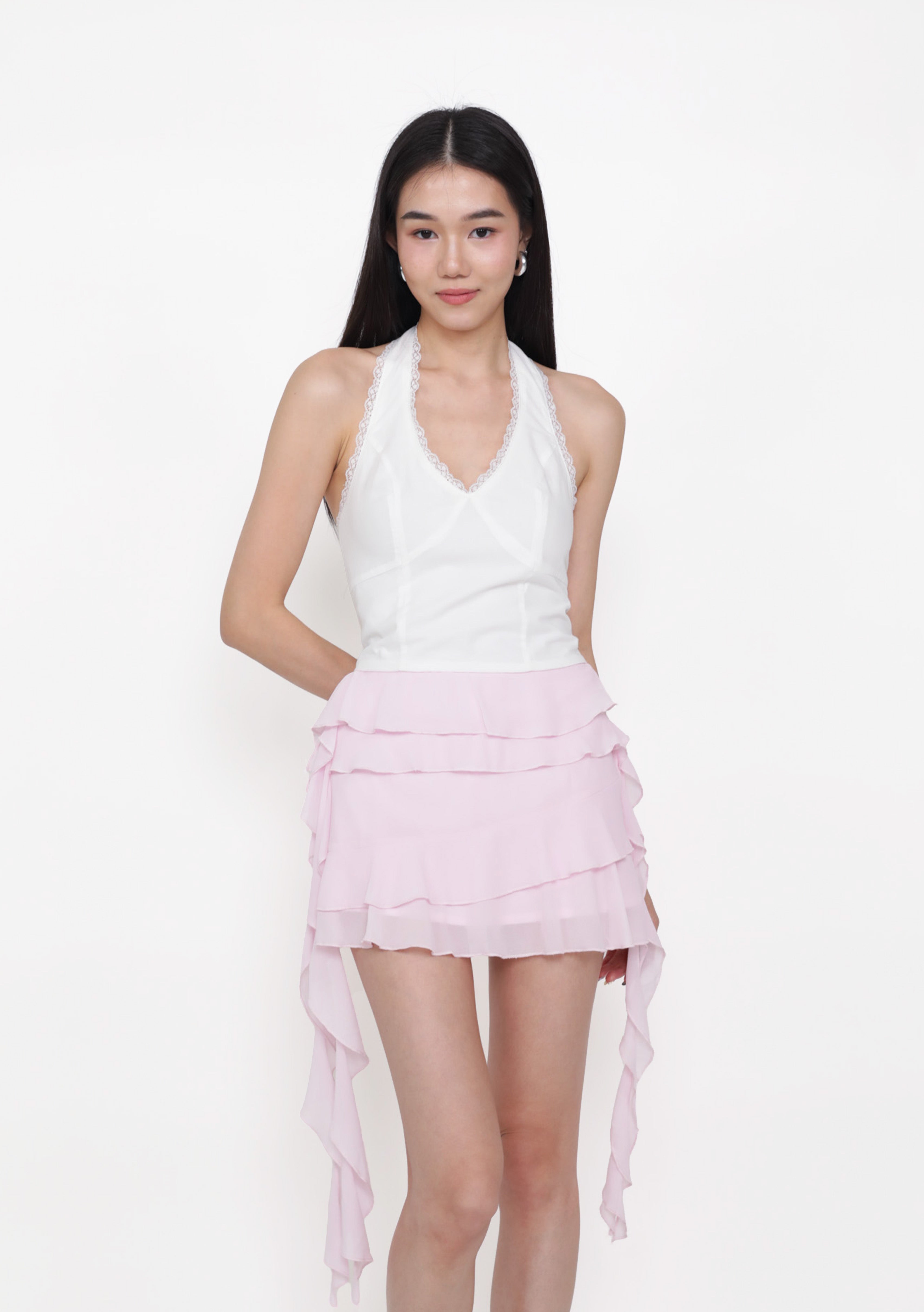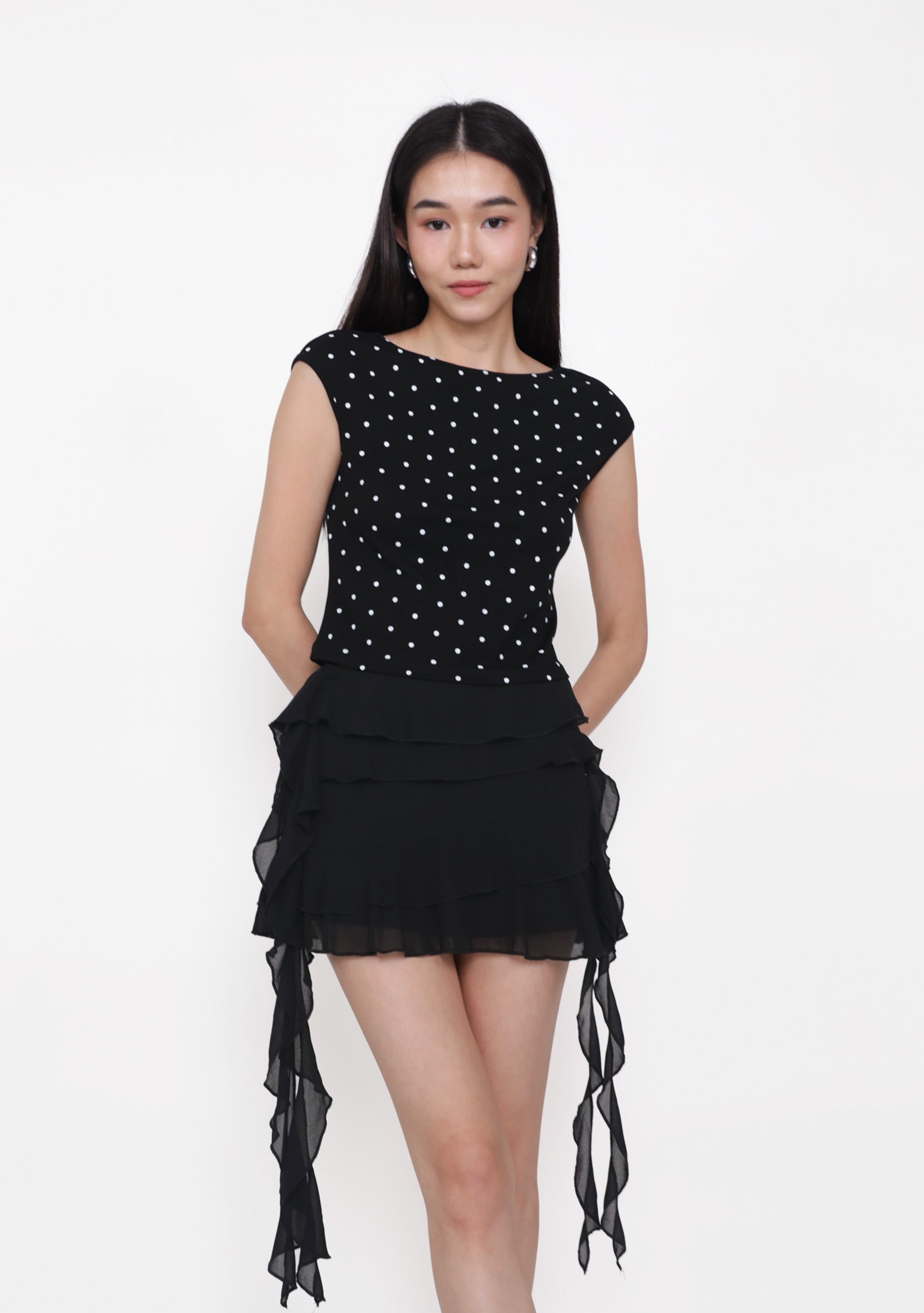 Lumy Ruffles Skorts are polyester skorts featuring playful ruffles, built-in shorts lining, and a concealed side zip for a polished finish.