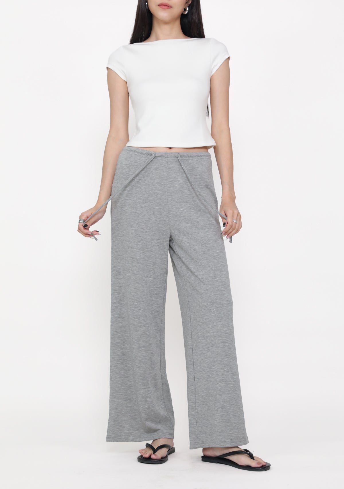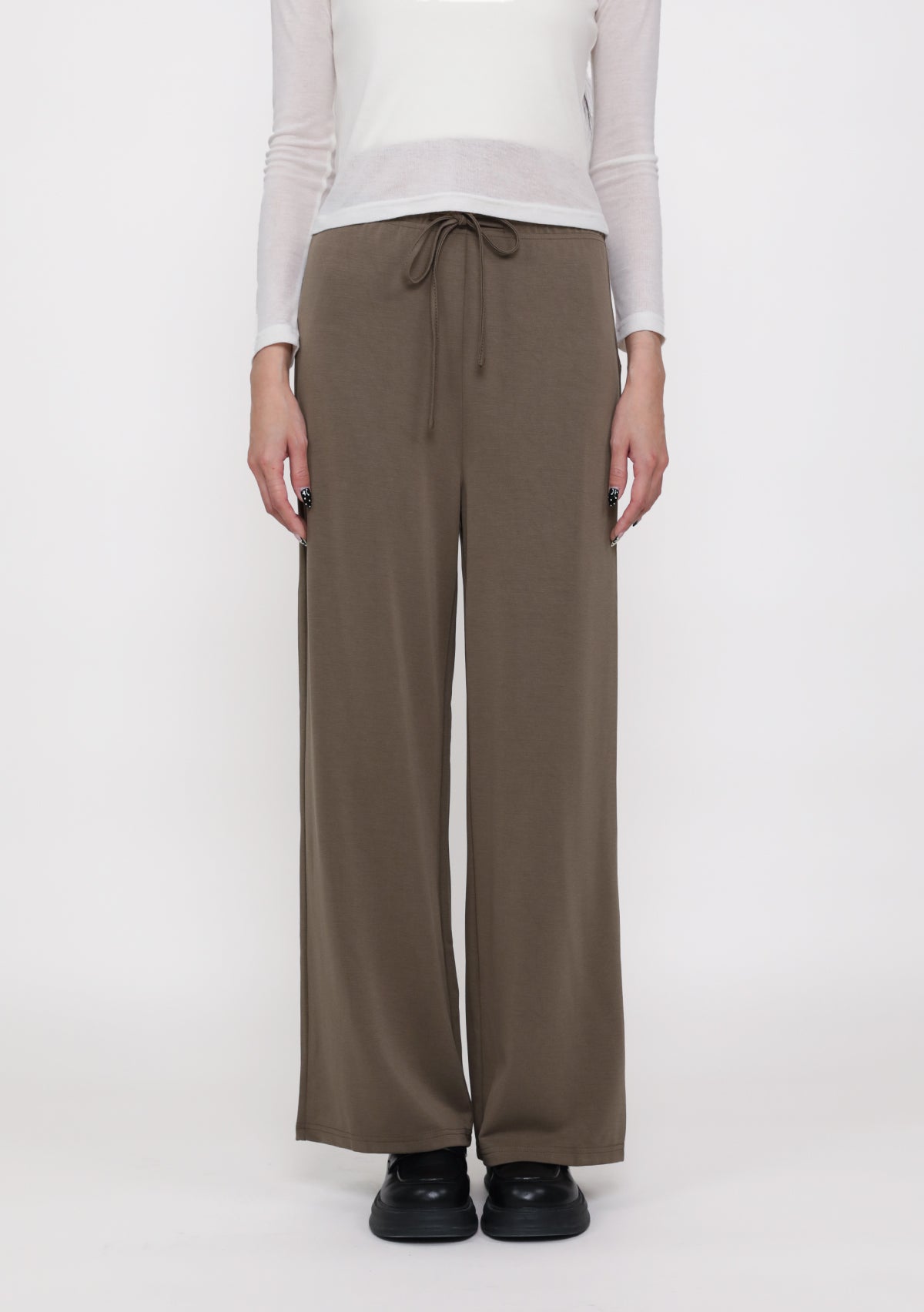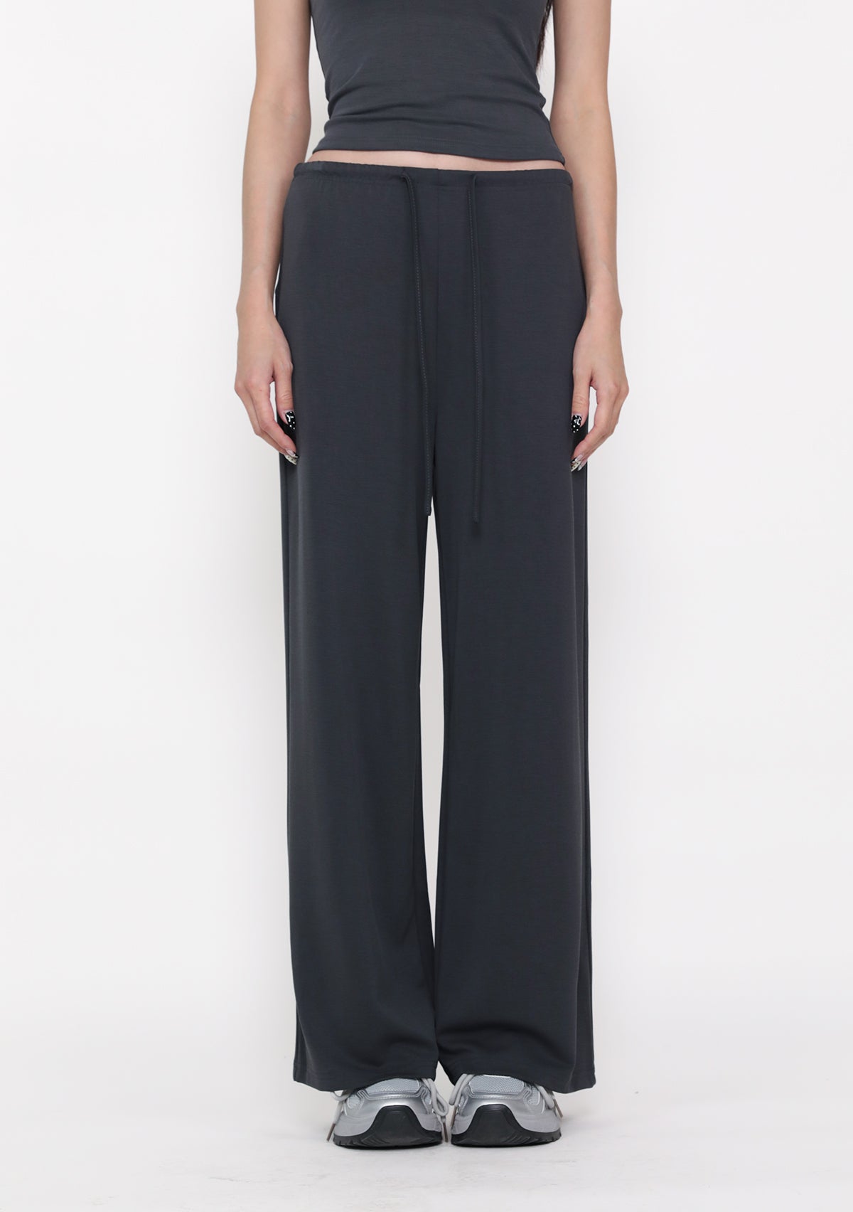 (BUTTER) Petite Eigen Basic Lounge Pants are non-lined lounge pants made from a polyester rayon spandex blend, featuring an elasticised waistband and drawstring detail.
