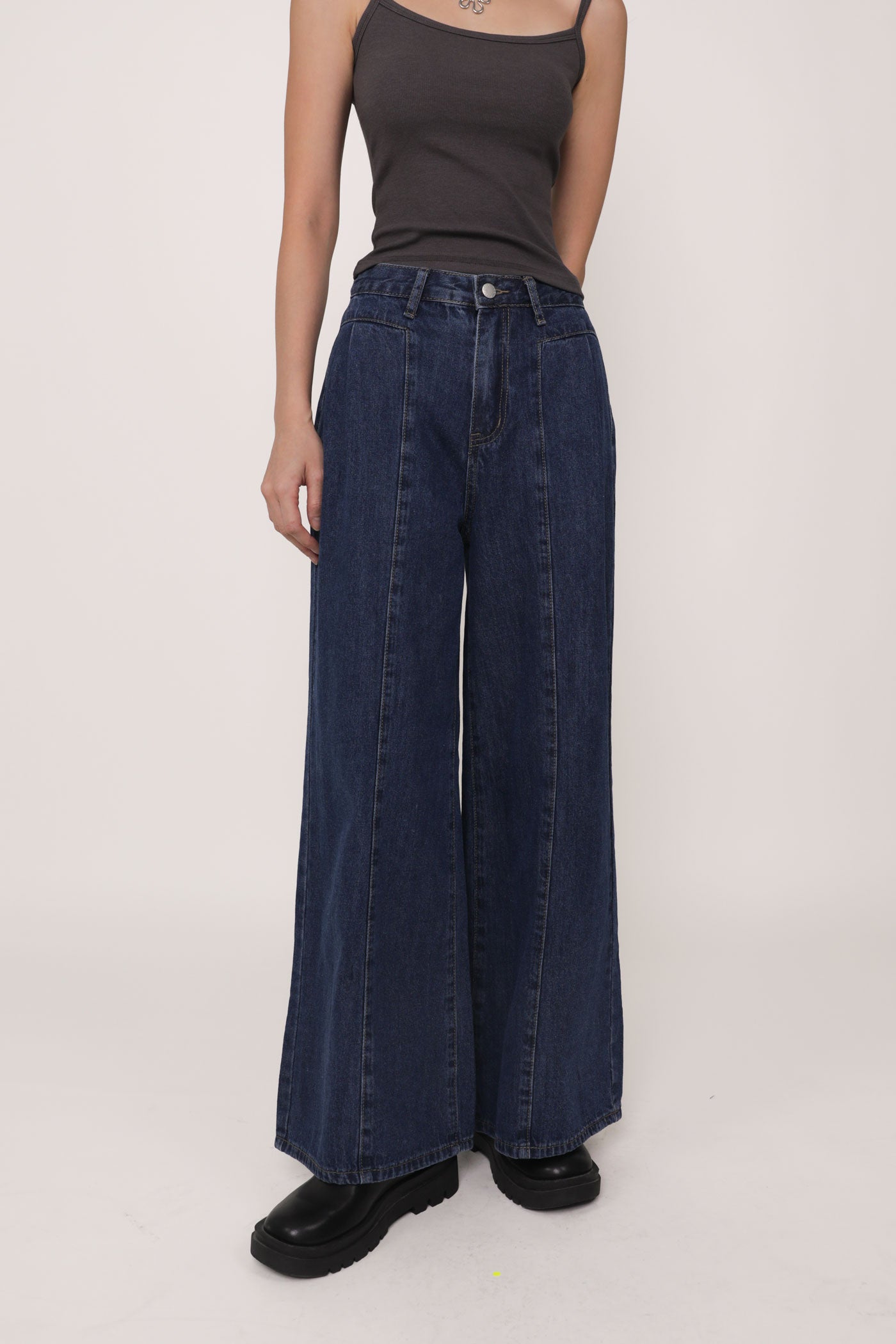 Bryton is the latest addition to your everyday denim wardrobe. Bryton Wide Leg Jeans boasts a confident and edgy personality with its wide leg style and vintage wash. Whether it's paired with a baby tee or oversized boyfriend shirts, these jeans have a versatile silhouette that complement any style of tops with ease. Level up your casual outfits with this denim statement.