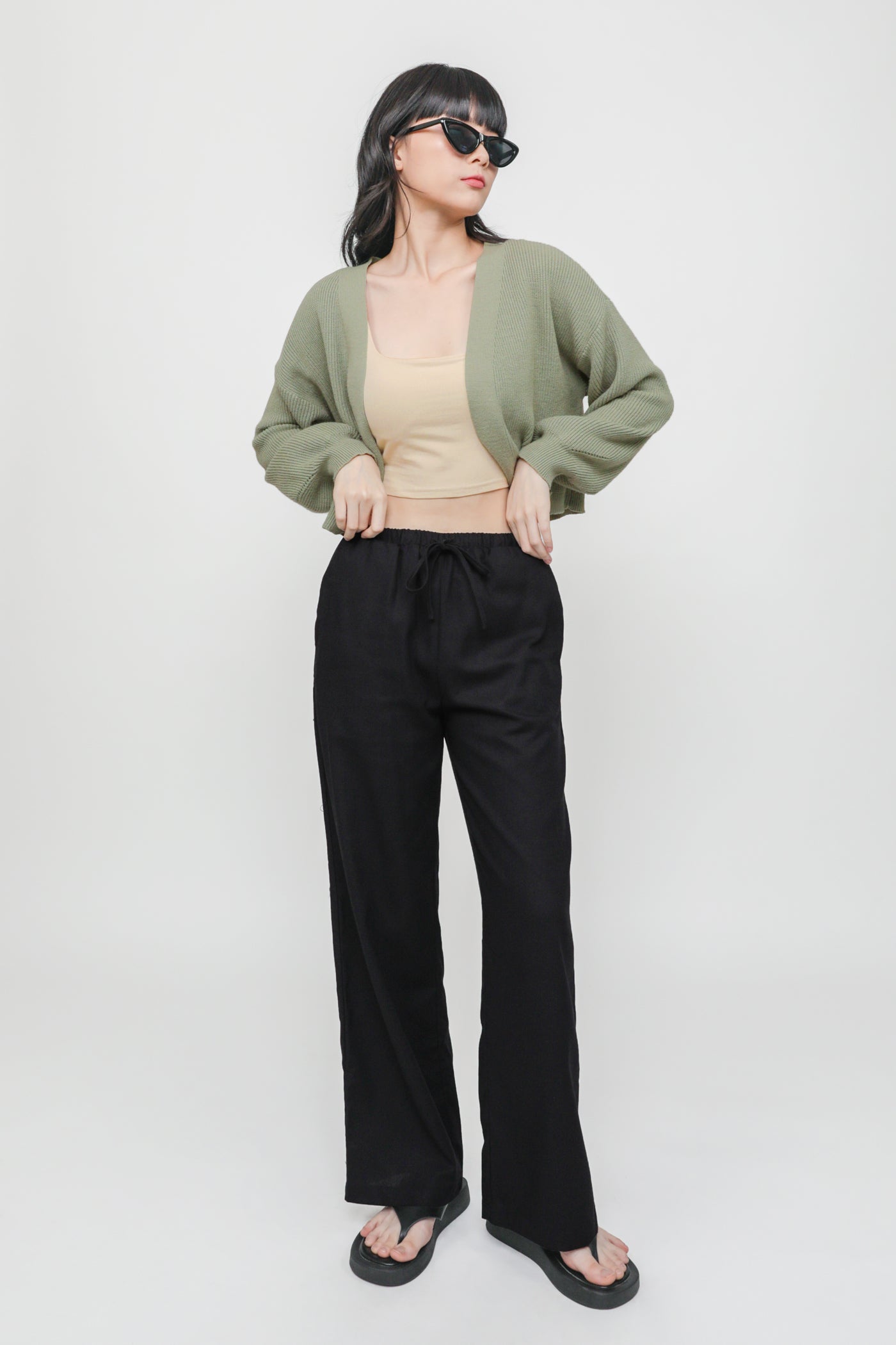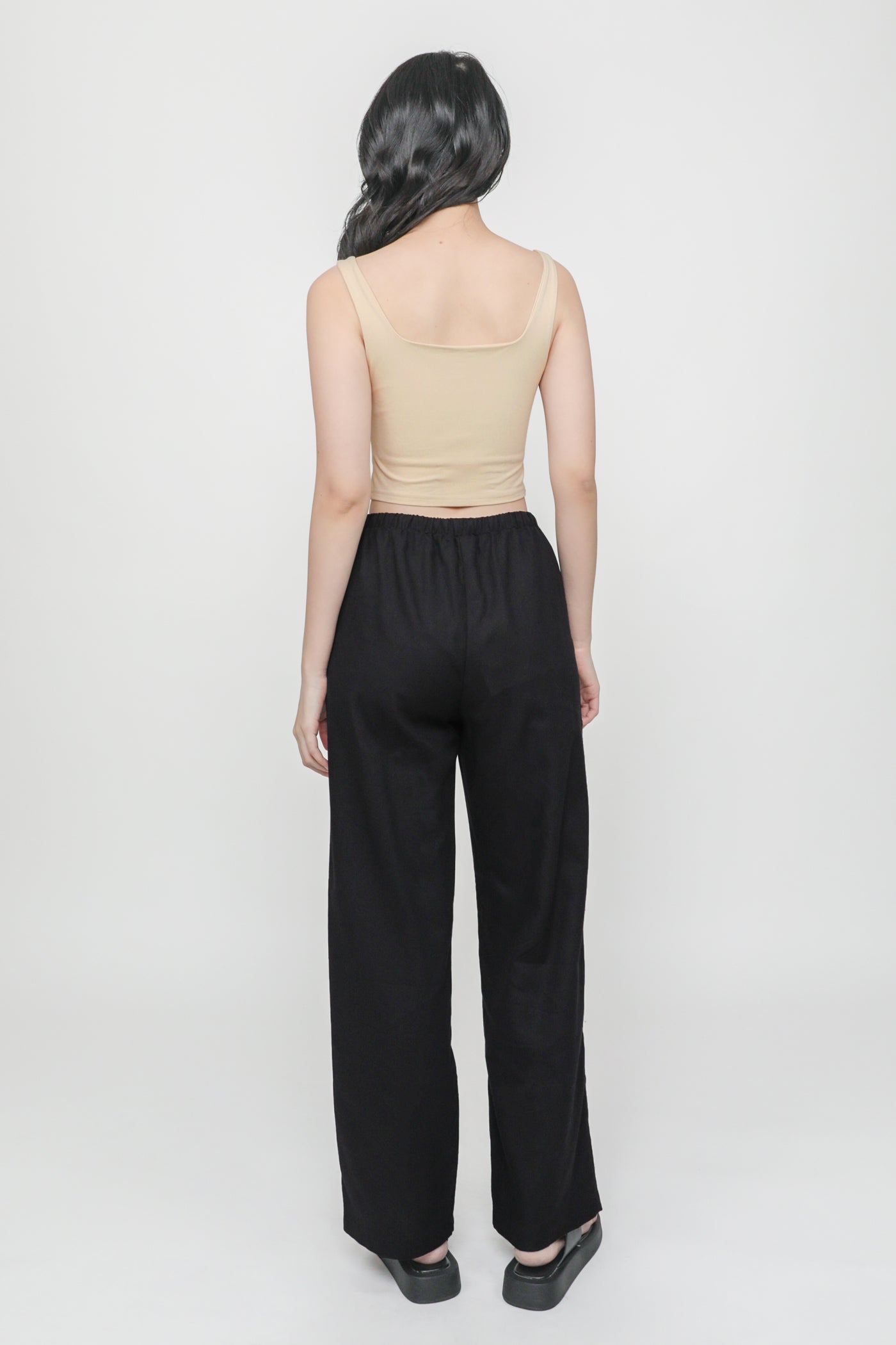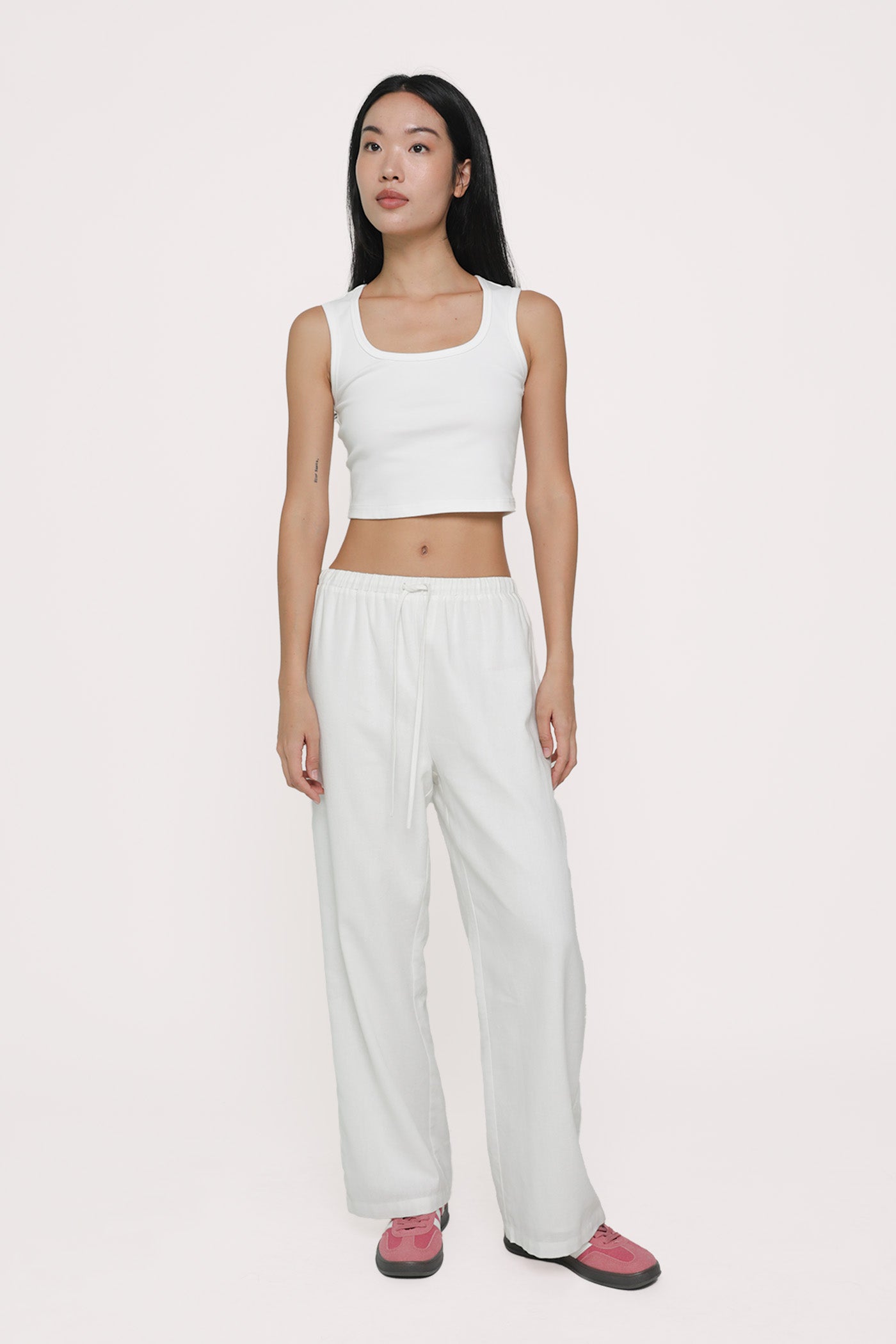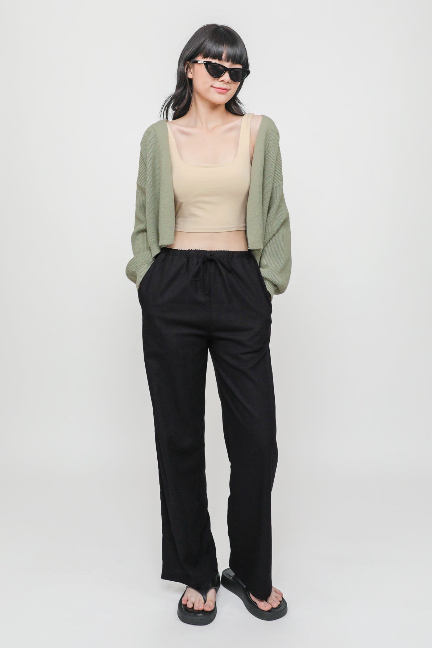 These pants are made of non lined linen material for a light and breathable fit. It is complete with functional side pockets (except White) and a drawstring at the waist.