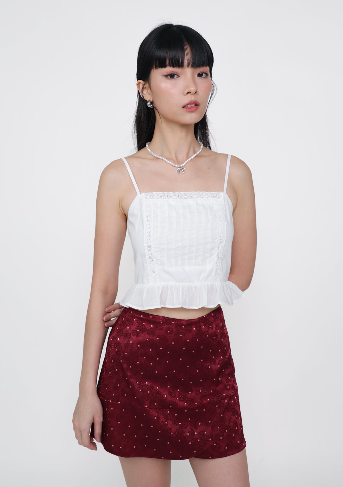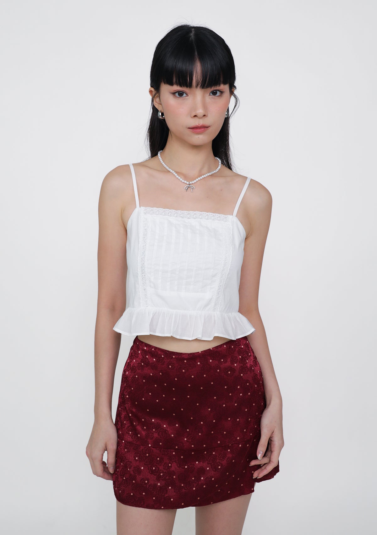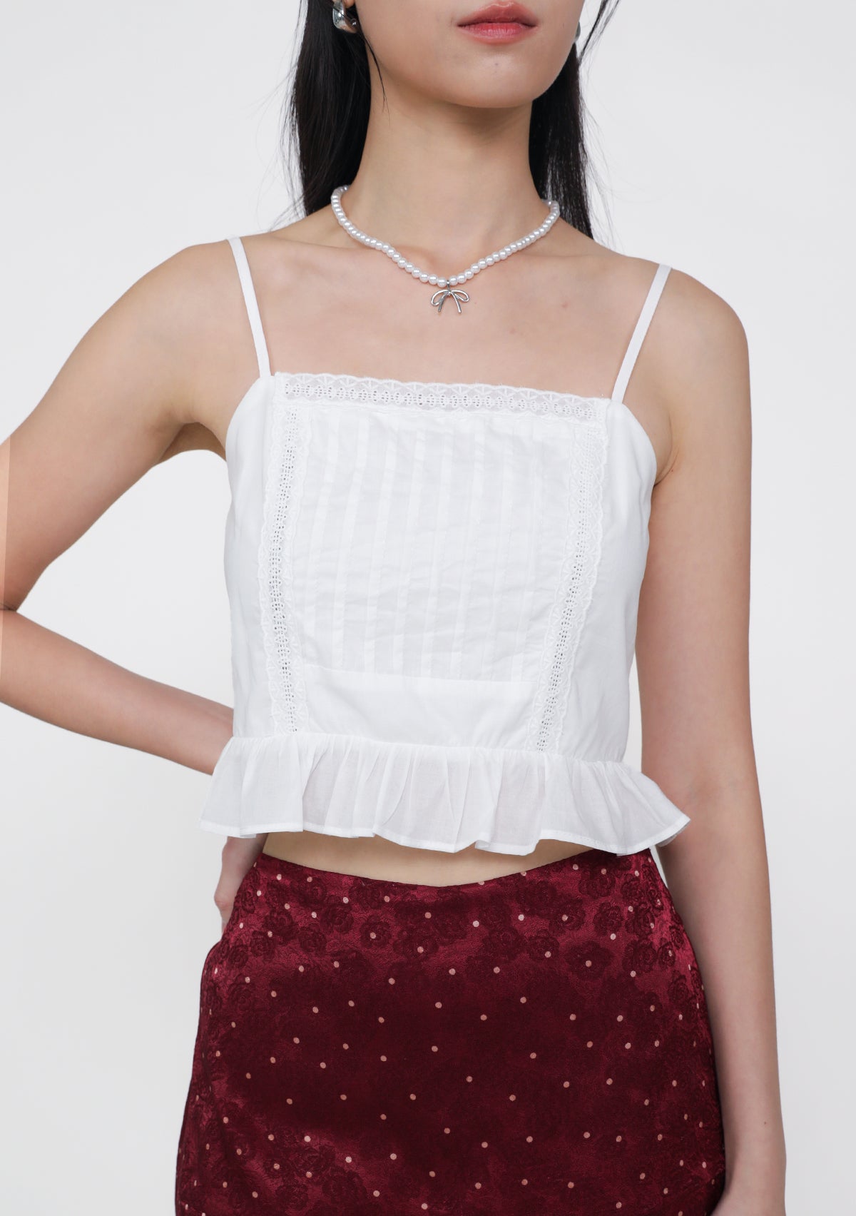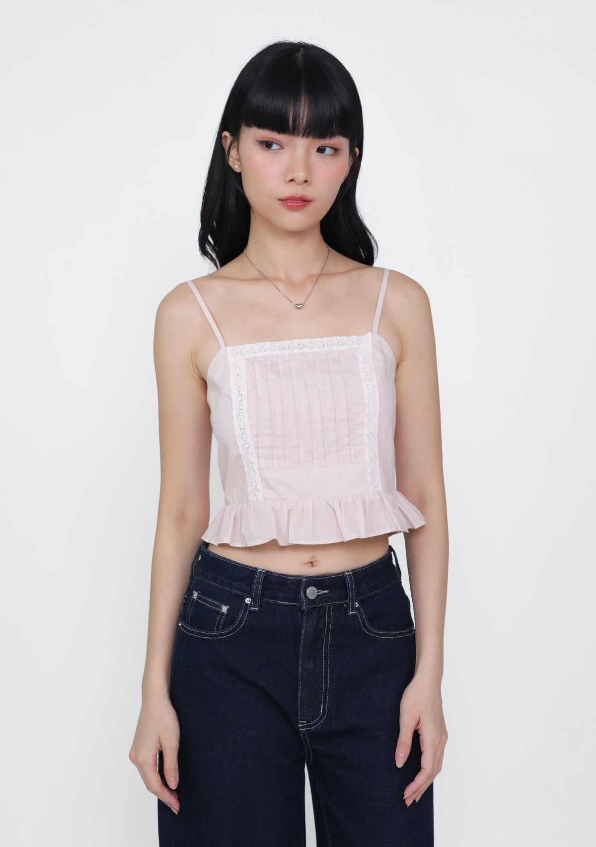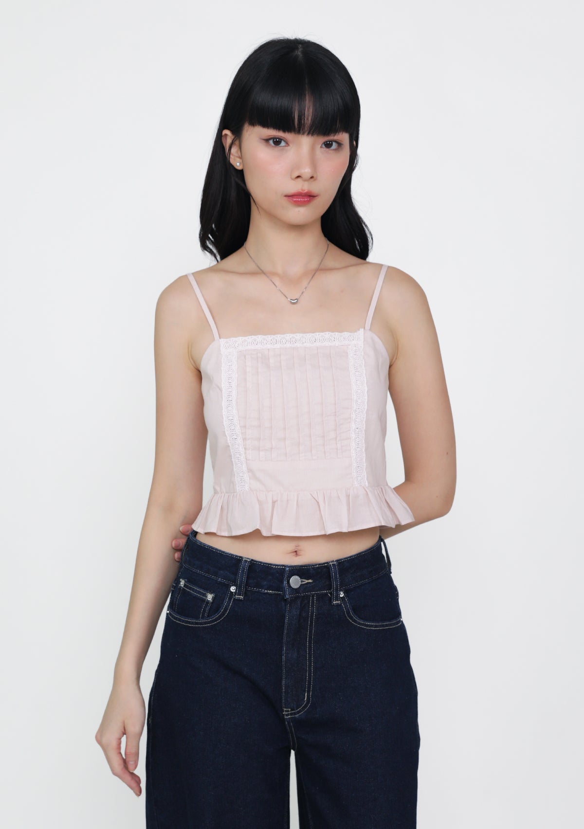 Audrey Lace Trim Panelled Top features delicate lace, adjustable straps, and a flattering panelled design—feminine, playful, and effortlessly chic.