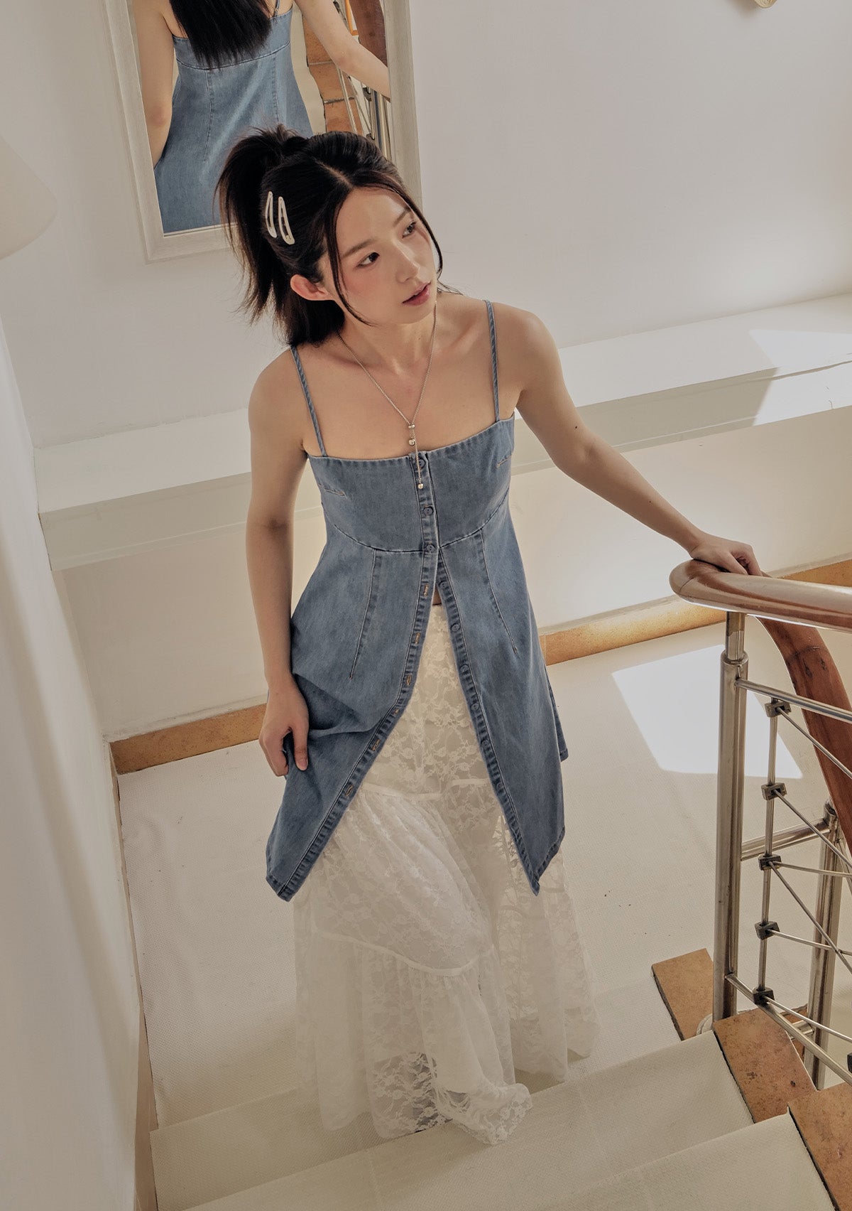 Juliana Two Way Longline Denim Top