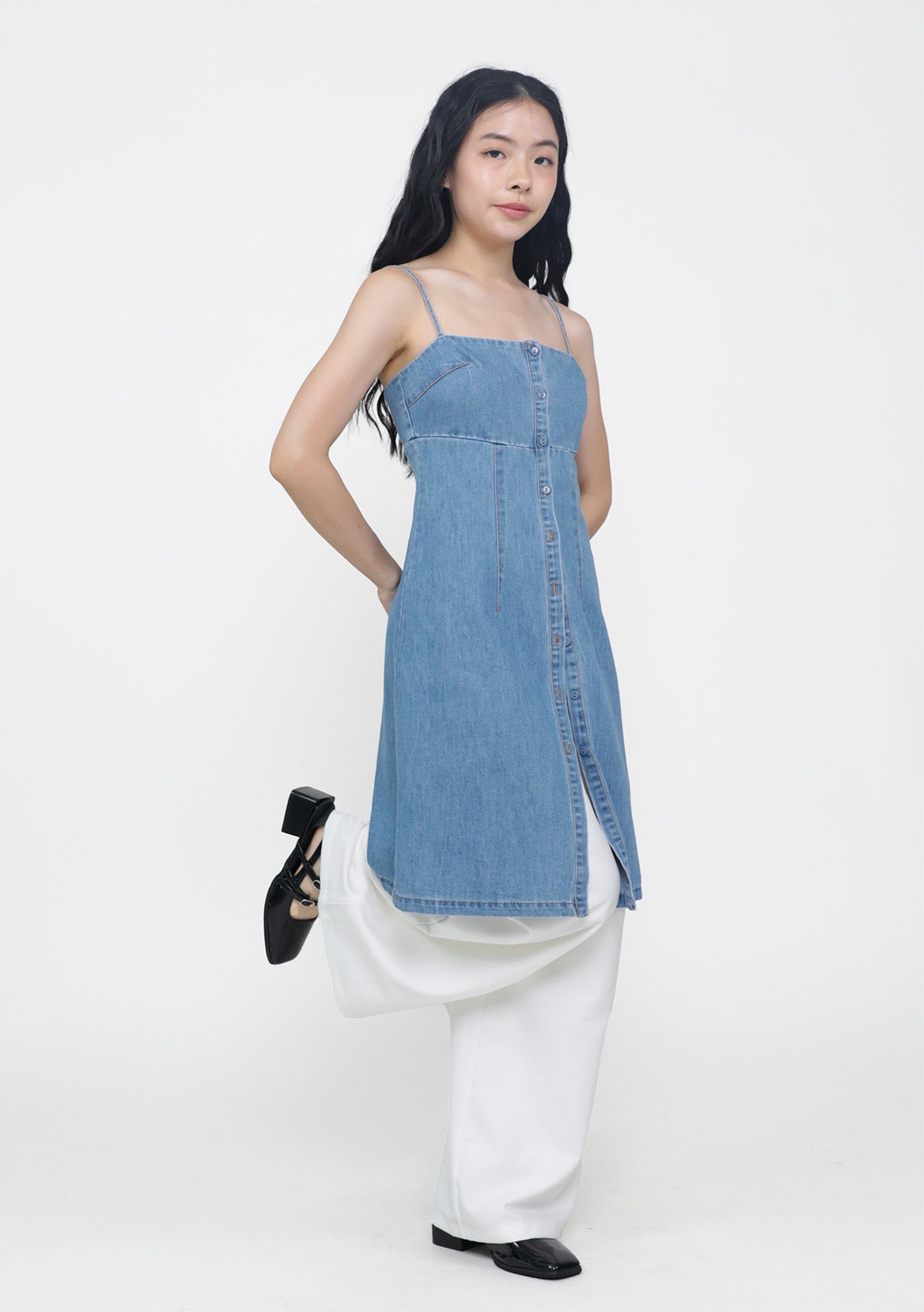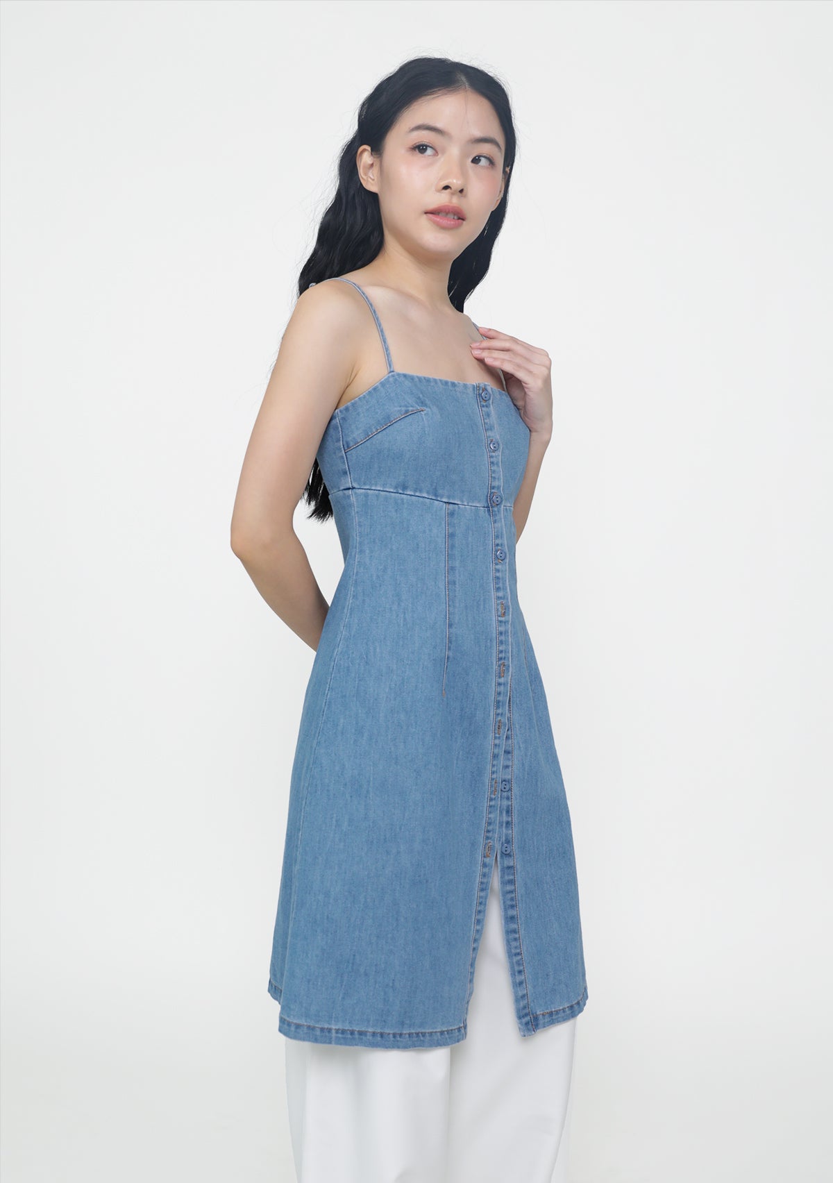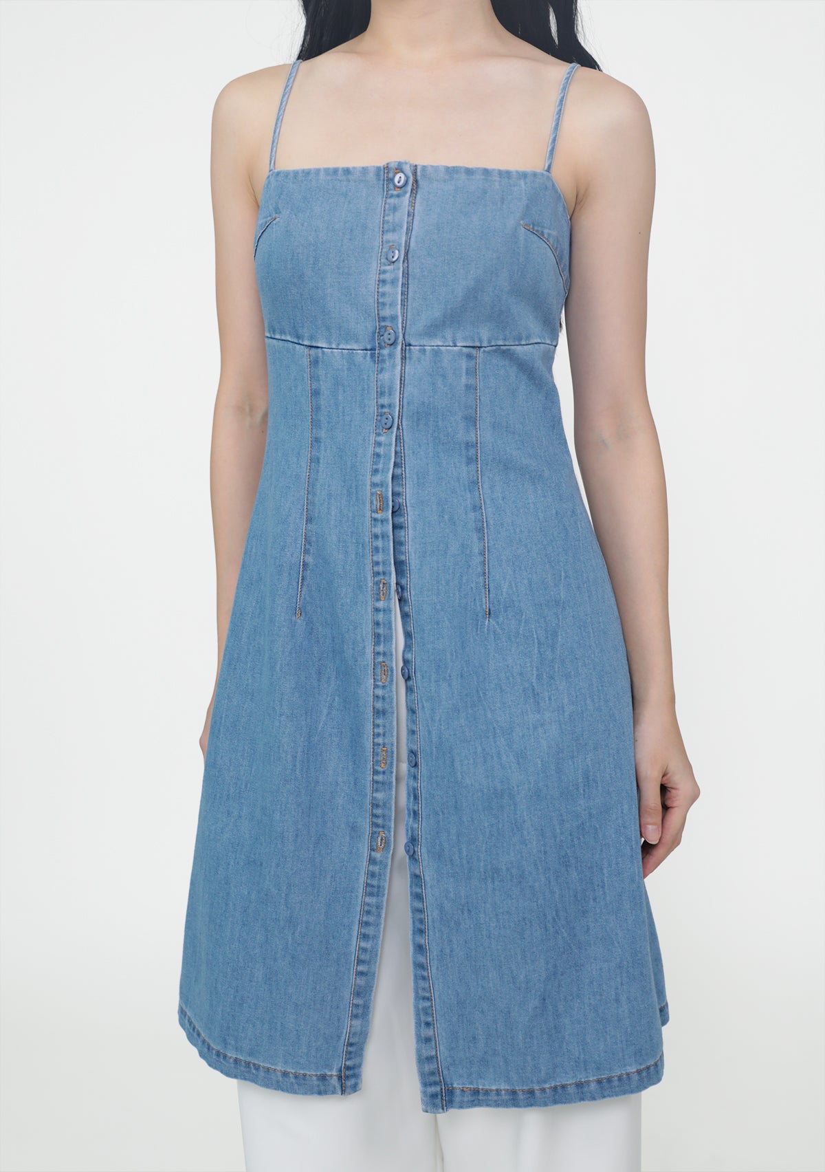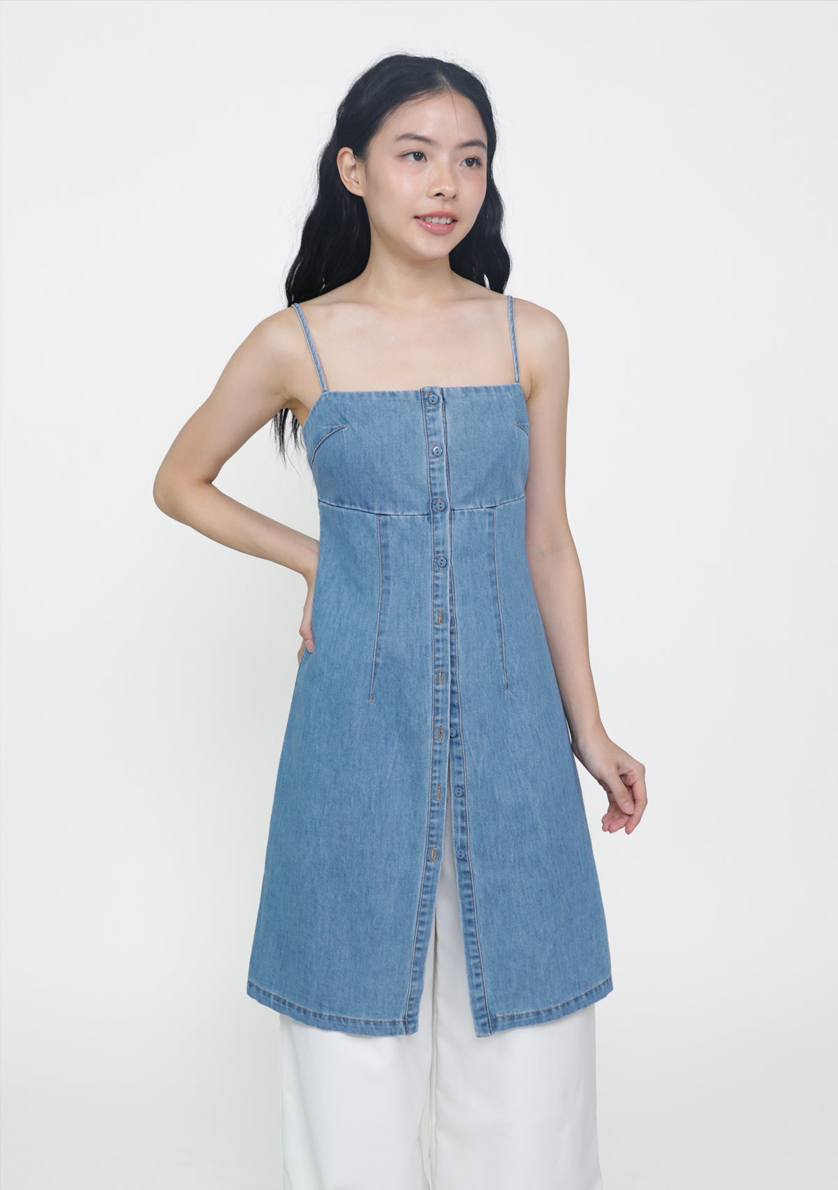 The Juliana Two Way Longline Denim Top works double duty as a top or casual dress. Designed with a tailored waist seam to subtly define your silhouette, and finished with full front buttons for flexible styling. Wear it your way.