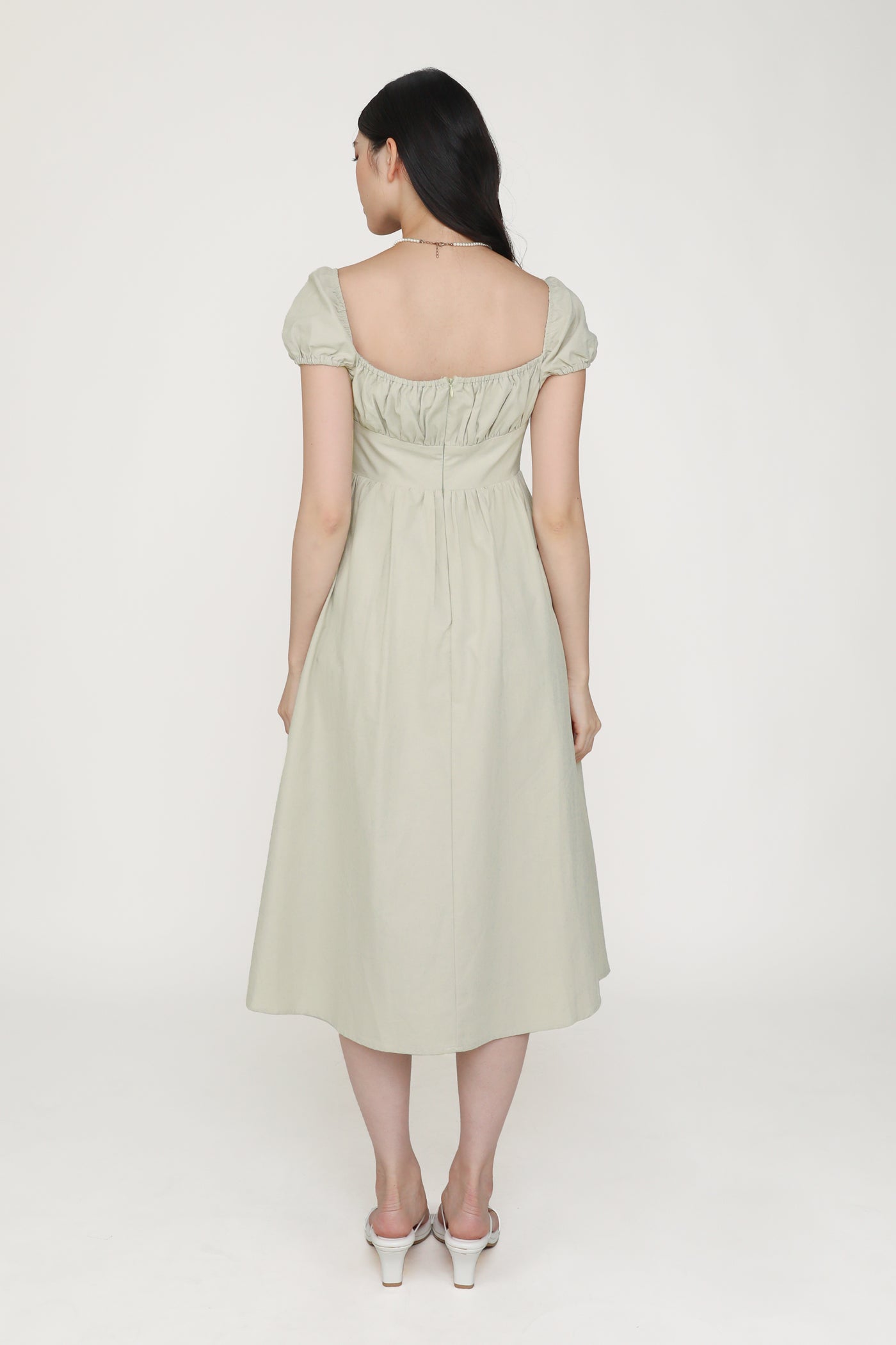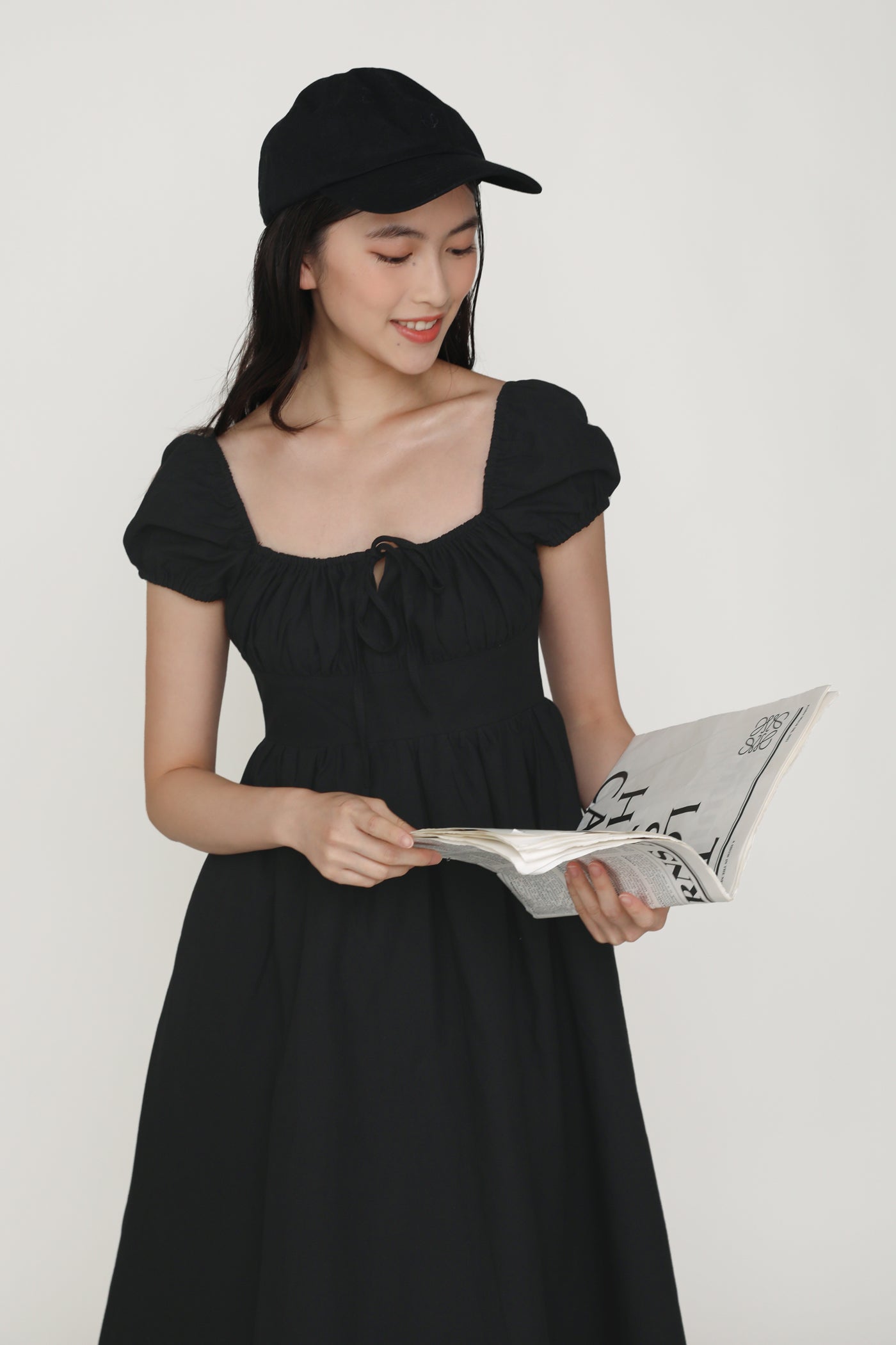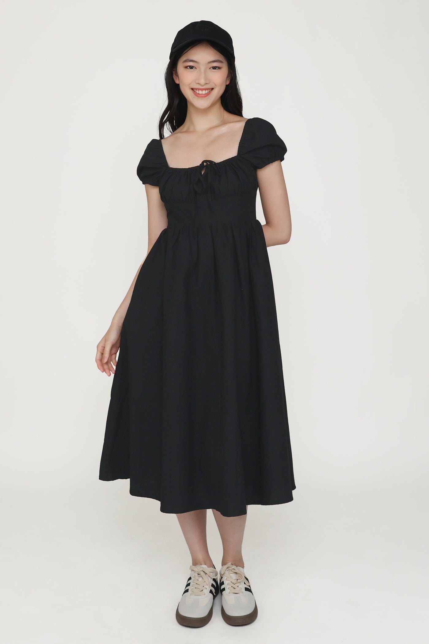 Slide into the weekends with Lanelle. Lanelle Puffy Sleeve Linen Midi Dress flaunts a gorgeous feminine silhouette decorated with chic puff sleeves and self tie details on the front. This dress is a cozy classic to throw on whenever you're in a rush. It is a versatile piece to own in your wardrobe.