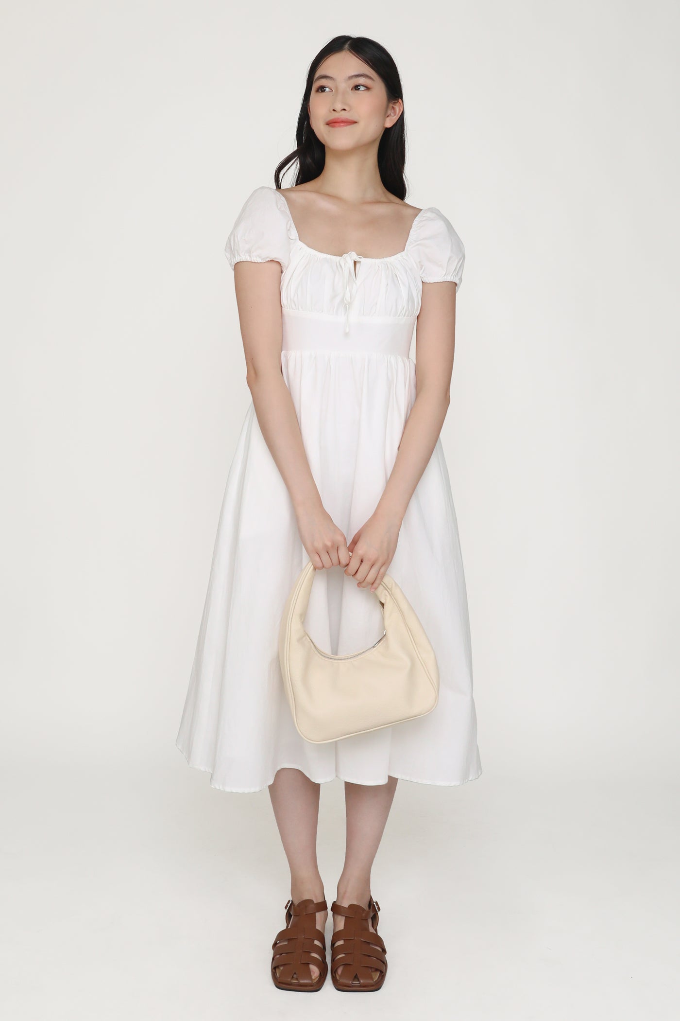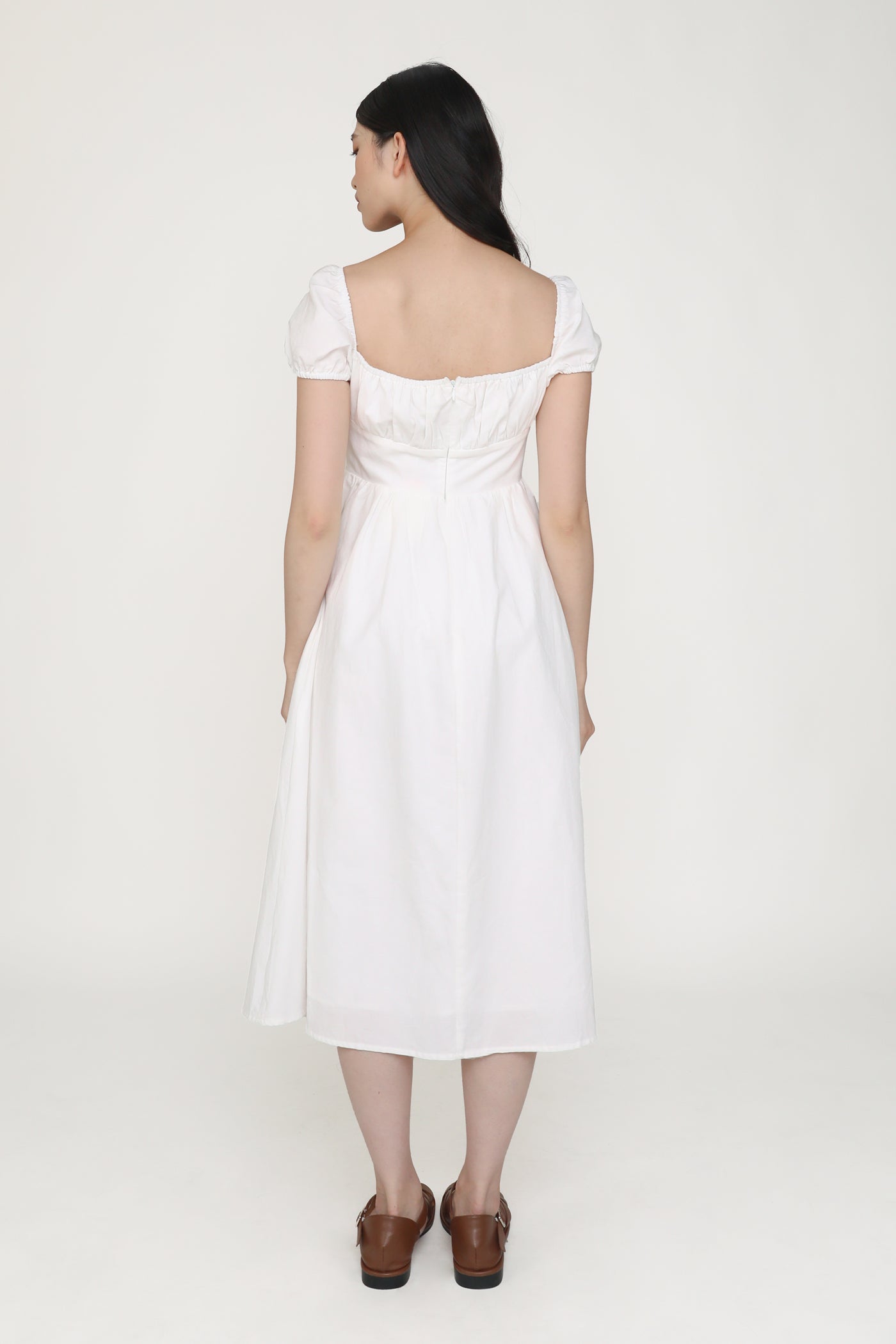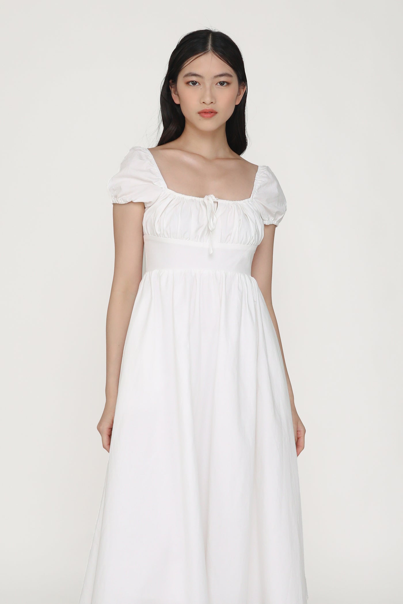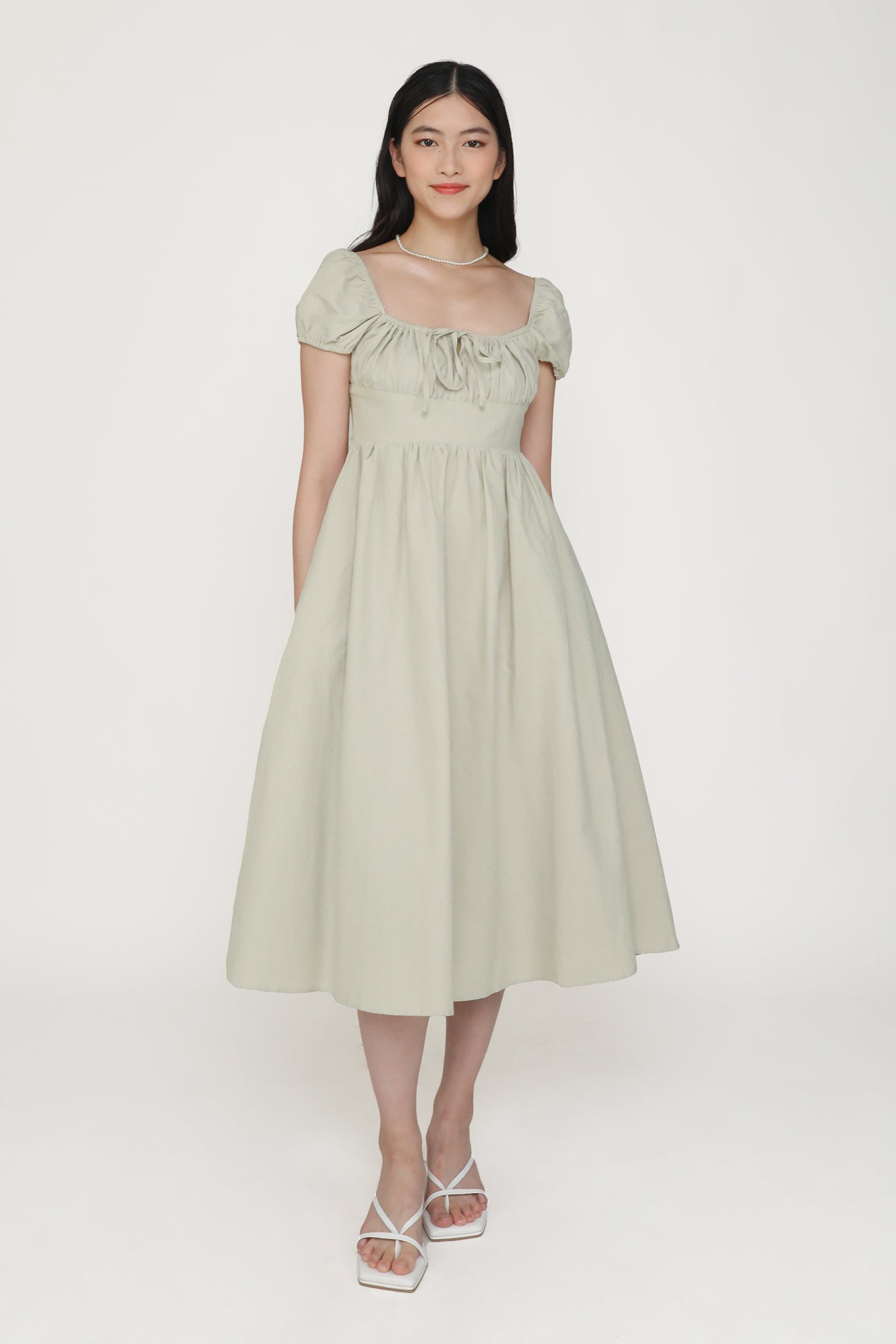 Slide into the weekends with Lanelle. Lanelle Puffy Sleeve Linen Midi Dress flaunts a gorgeous feminine silhouette decorated with chic puff sleeves and self tie details on the front. This dress is a cozy classic to throw on whenever you're in a rush. It is a versatile piece to own in your wardrobe.