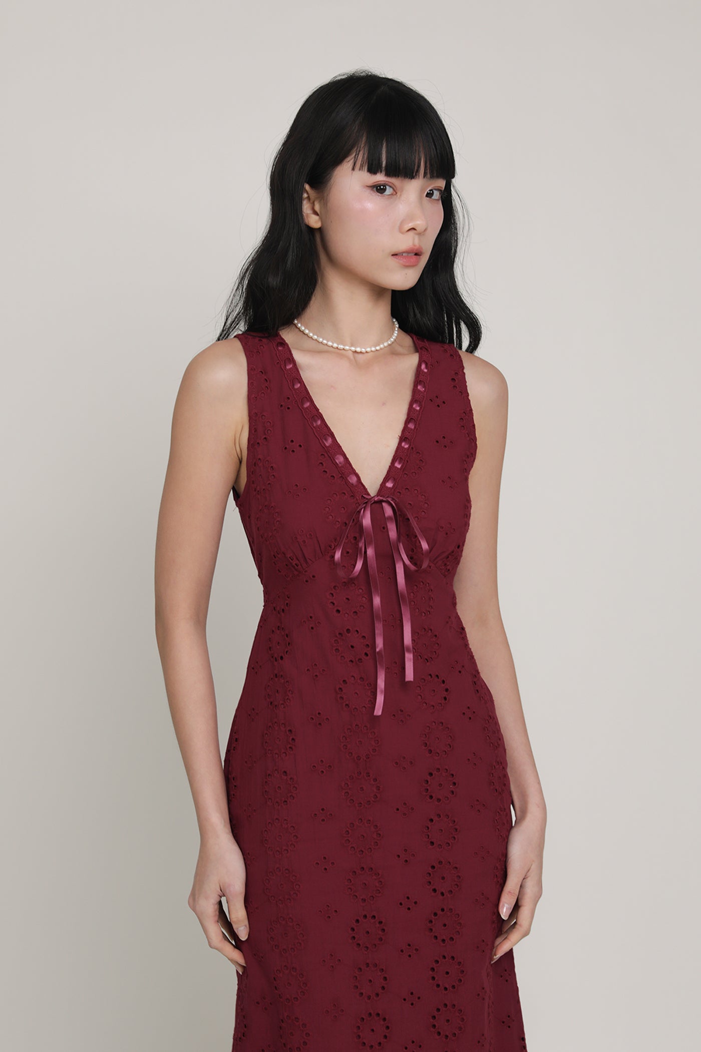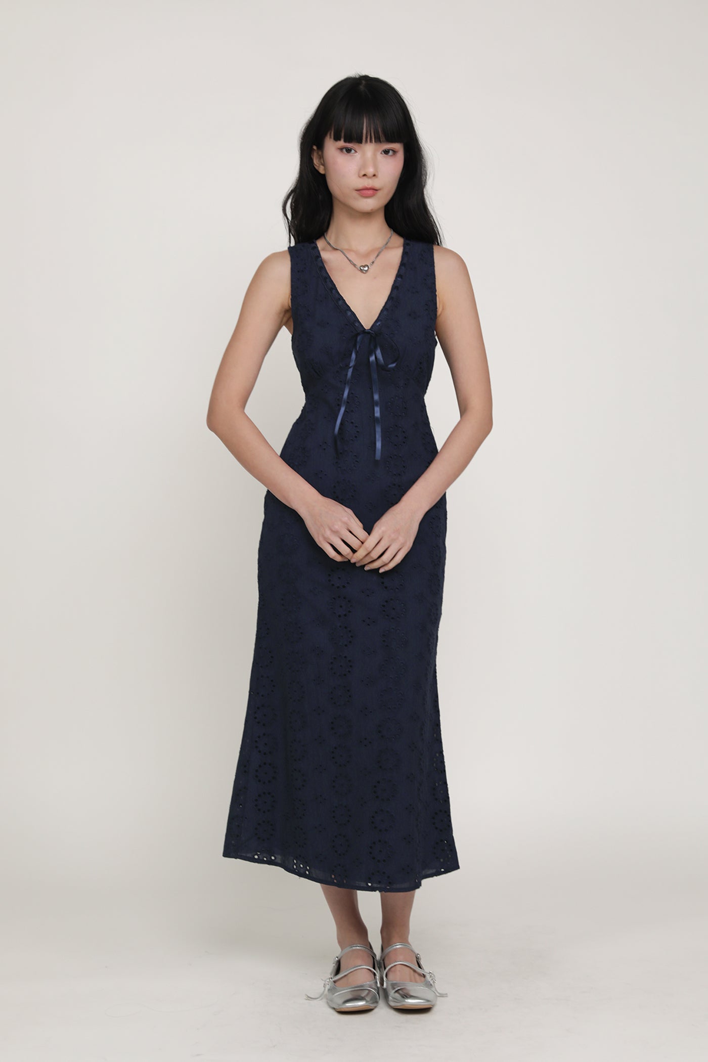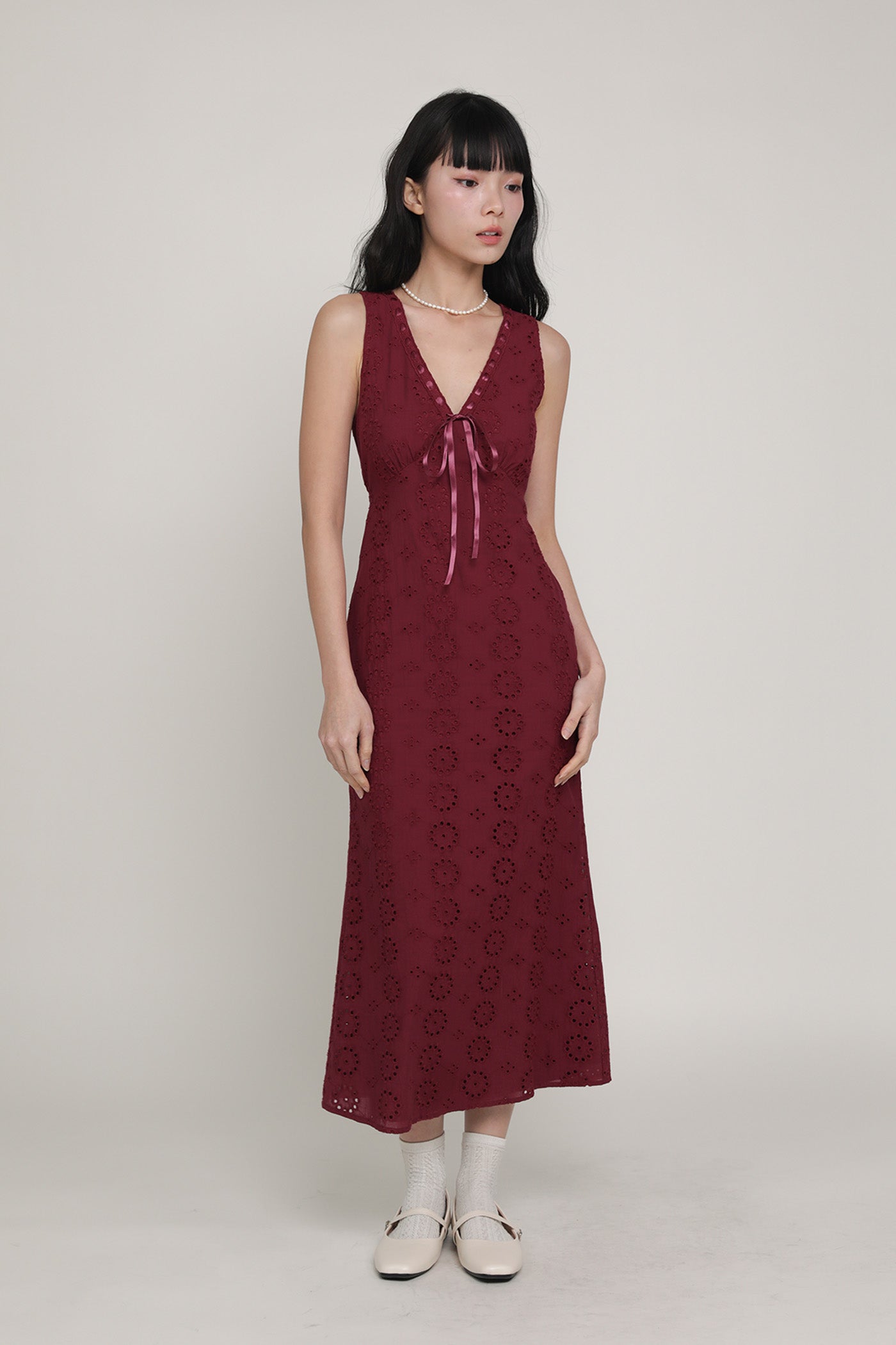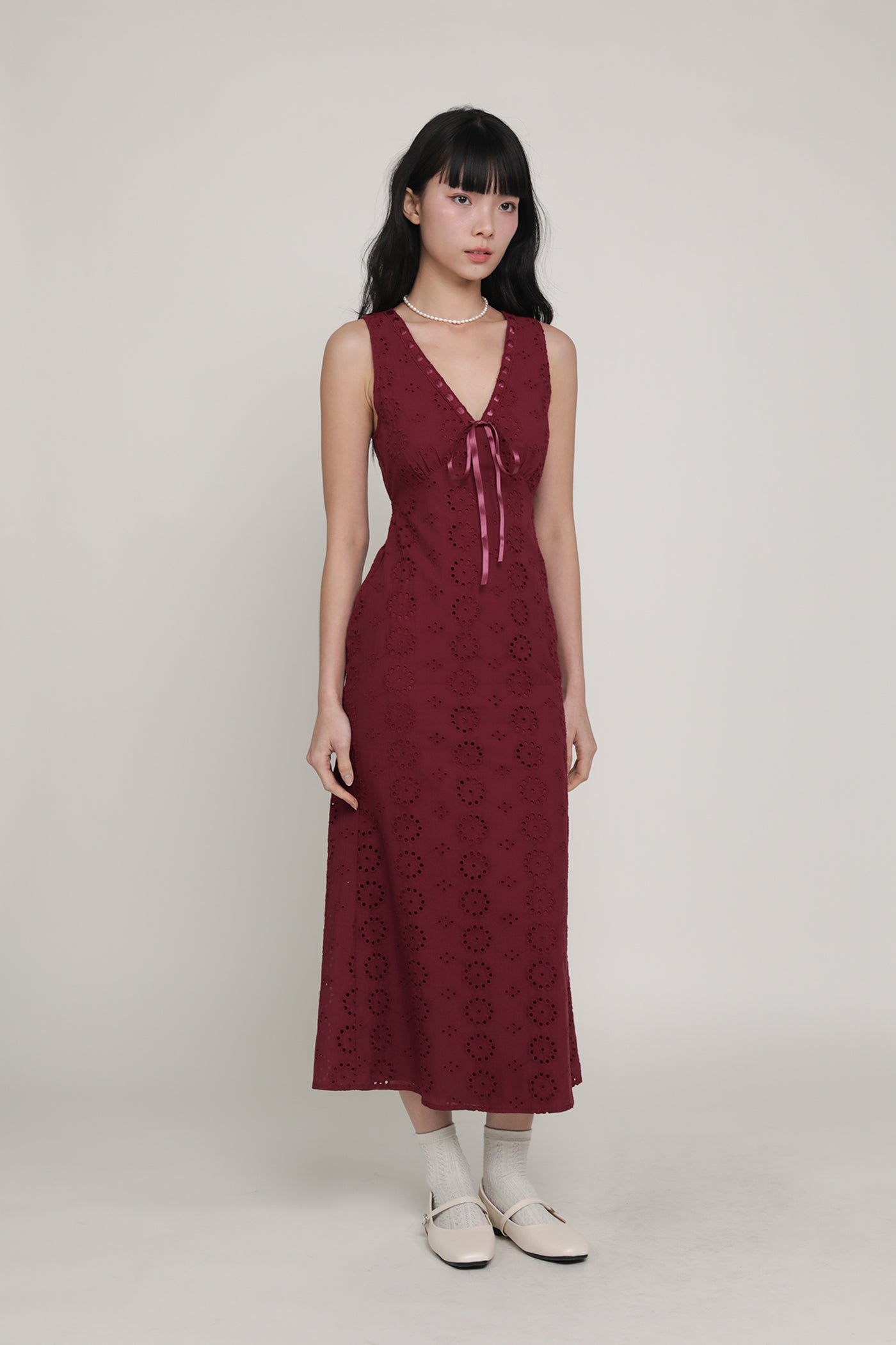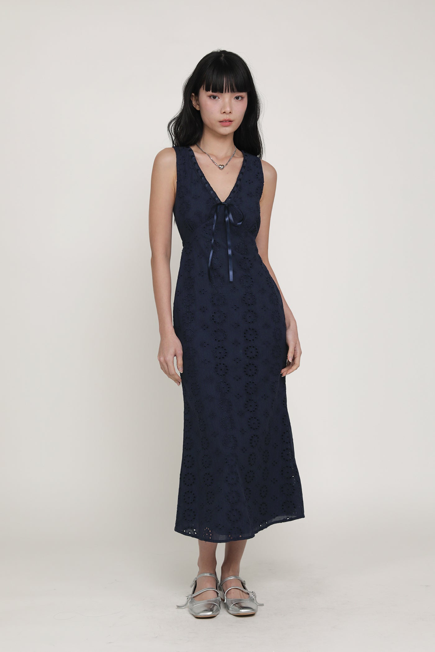 Step into sunshine with the Janice Eyelet Midi Dress. With its light, airy eyelet fabric, this dress is as breezy as it is beautiful. The flattering V-neckline enhances the feminine silhouette, while the self-tie ribbon adds a delicate accent to the dress. Let Janice be your ticket to a minimal yet elevated style.