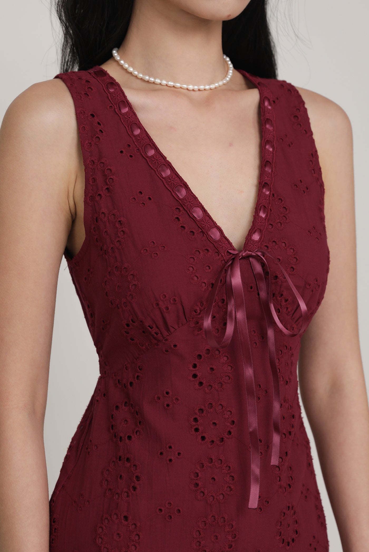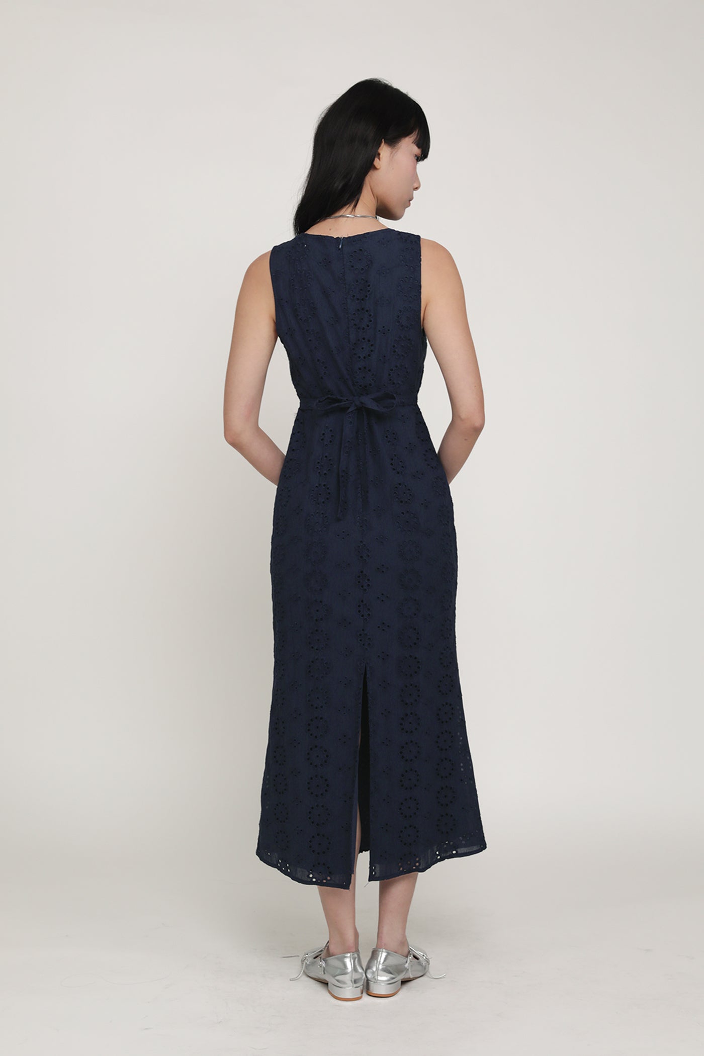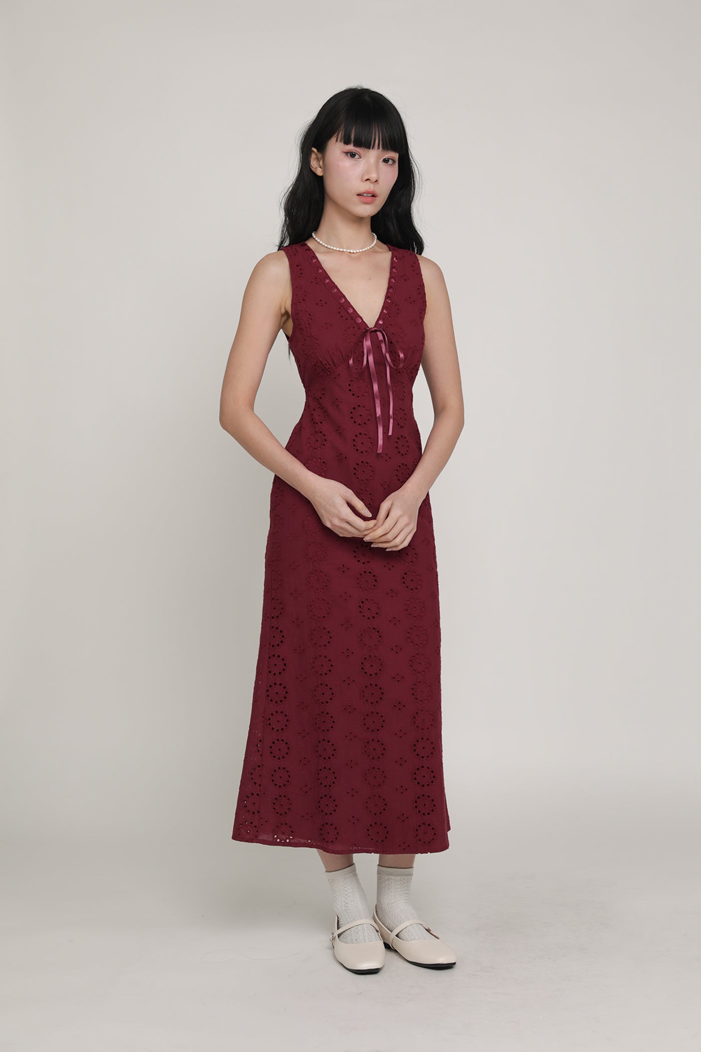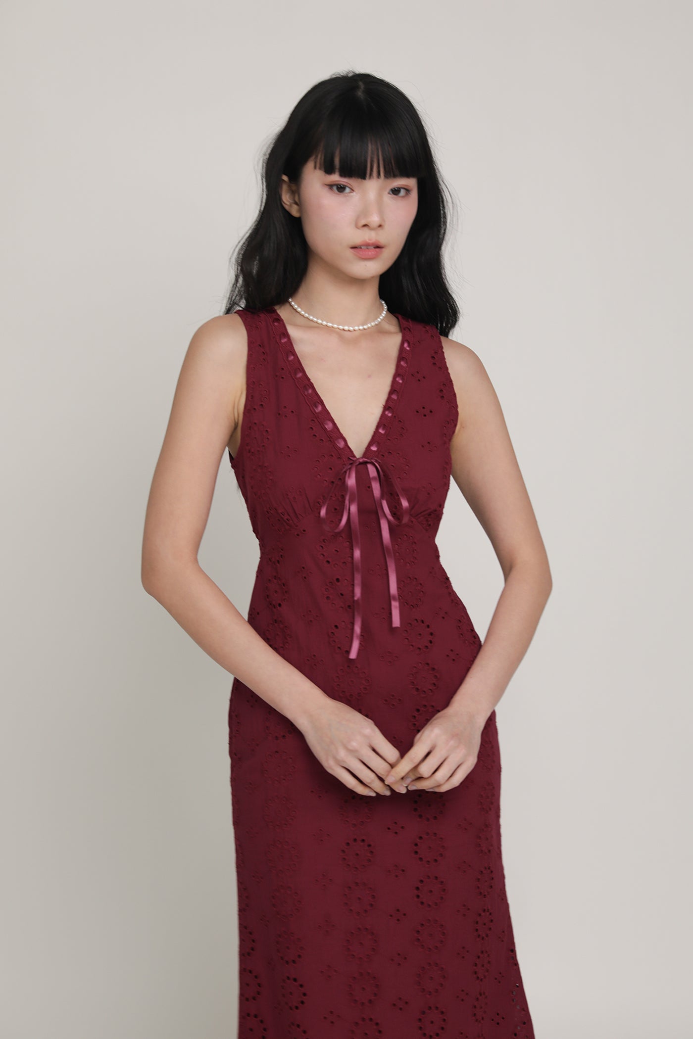 Step into sunshine with the Janice Eyelet Midi Dress. With its light, airy eyelet fabric, this dress is as breezy as it is beautiful. The flattering V-neckline enhances the feminine silhouette, while the self-tie ribbon adds a delicate accent to the dress. Let Janice be your ticket to a minimal yet elevated style.