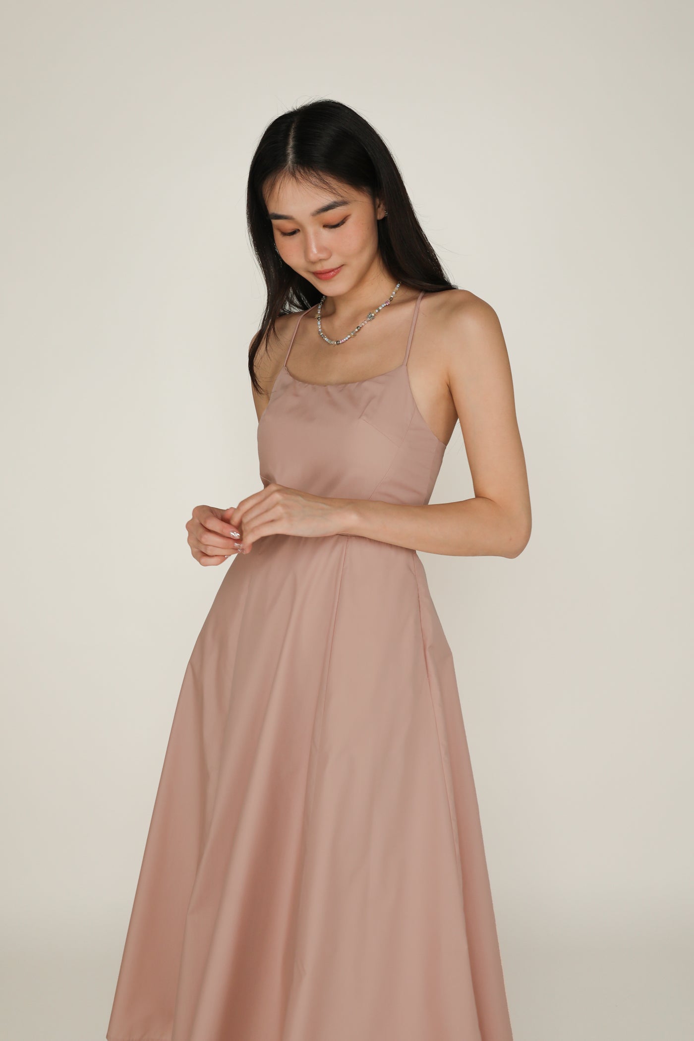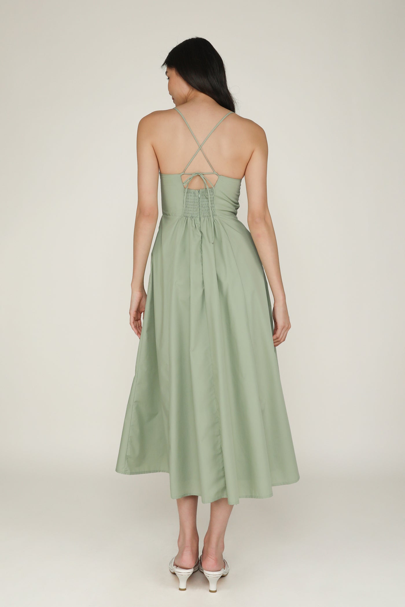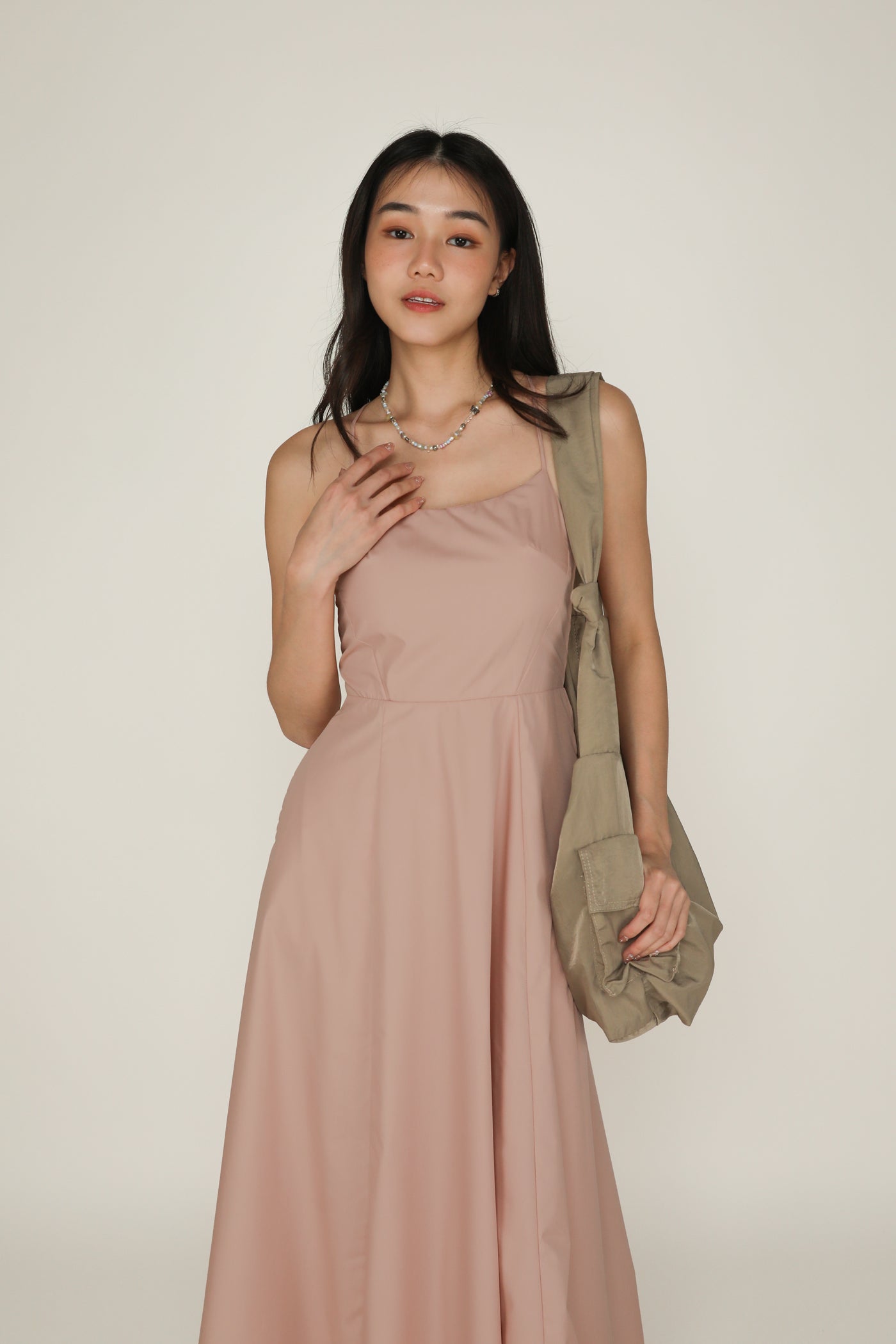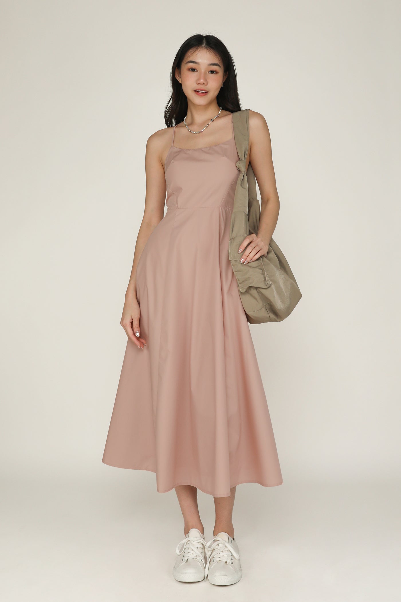 This dress is made of inner lined polyester cotton for a light and breathable fit. It is complete with removable paddings, self tie straps, smocked details at the back, and functional side pockets.