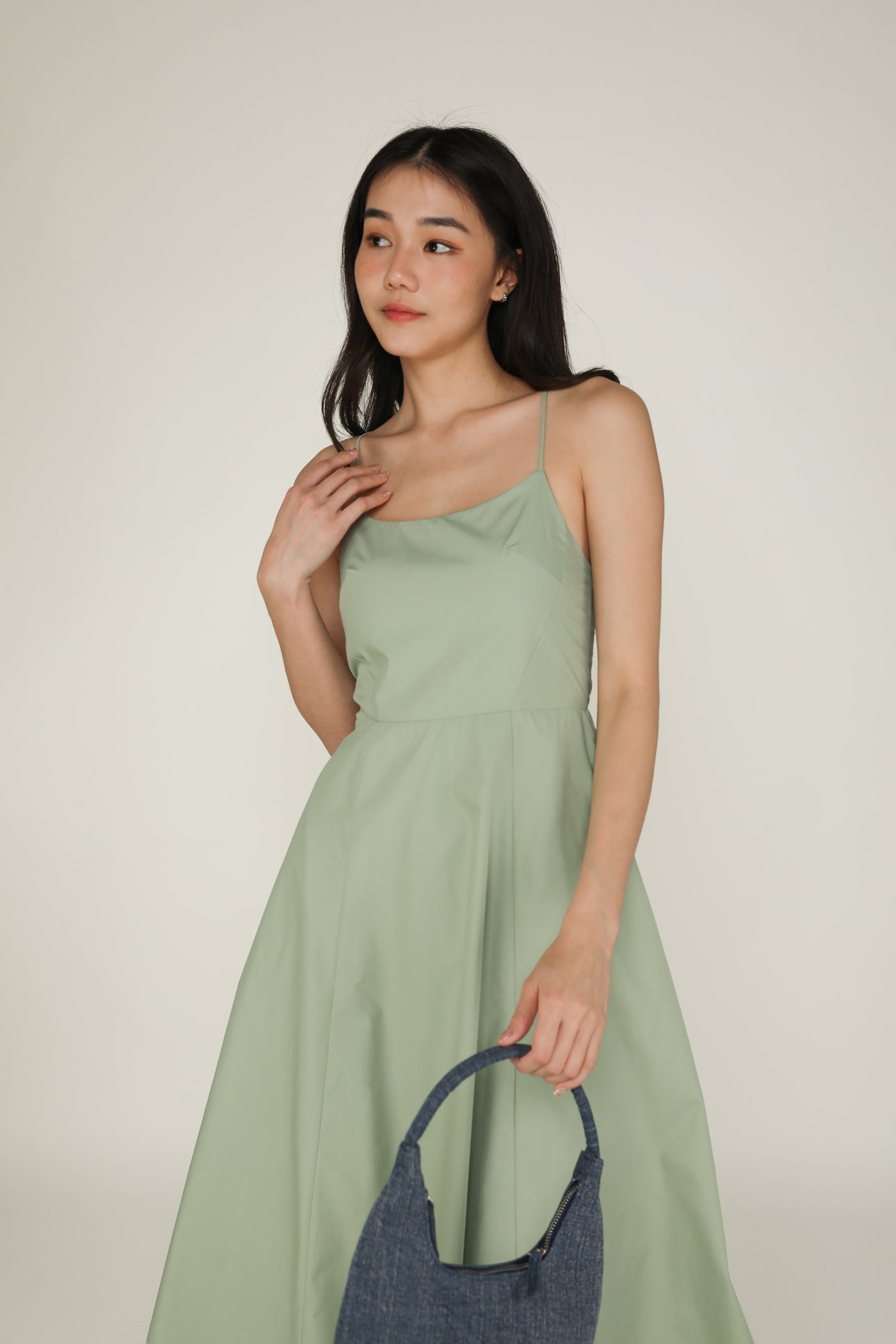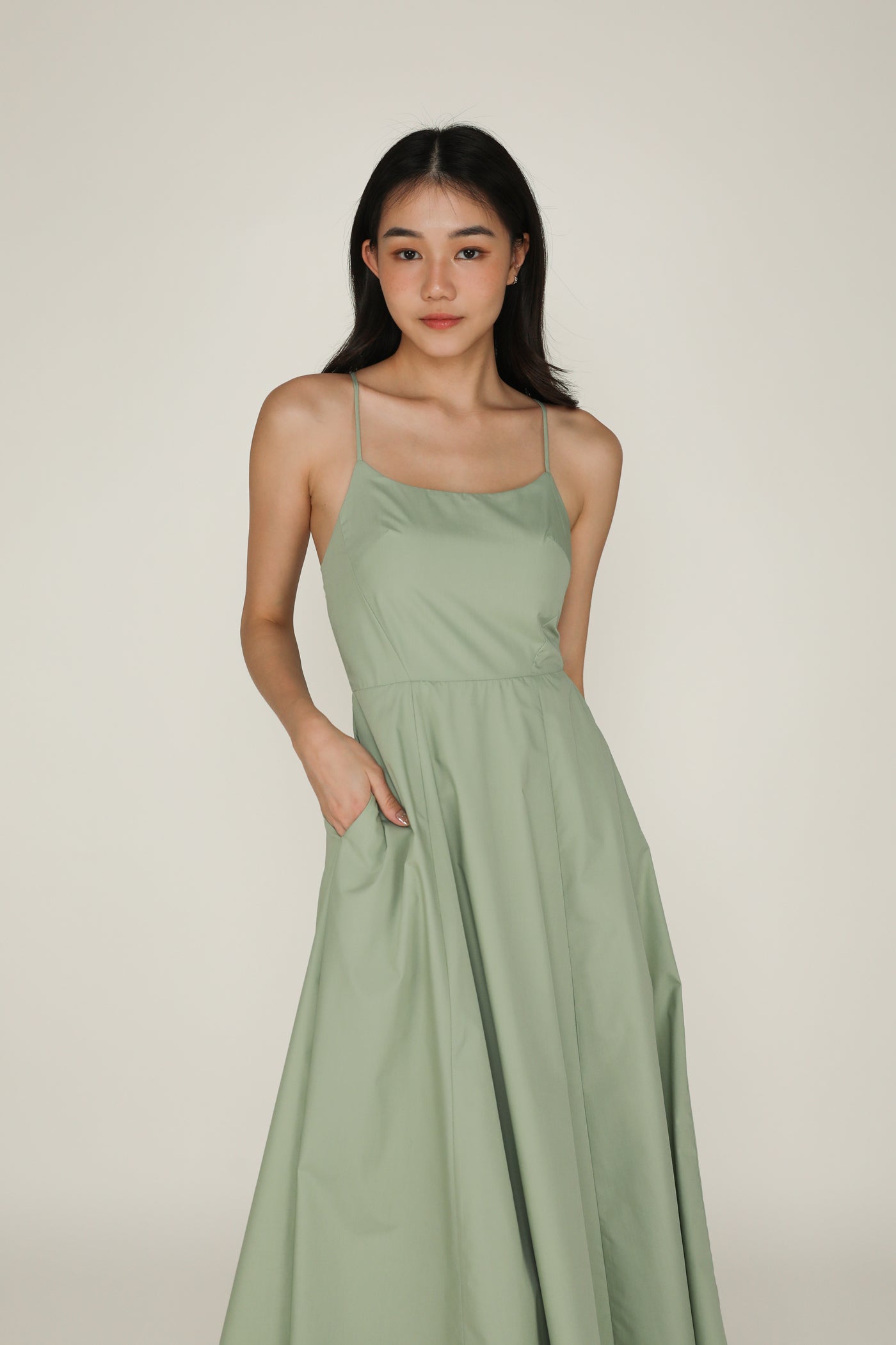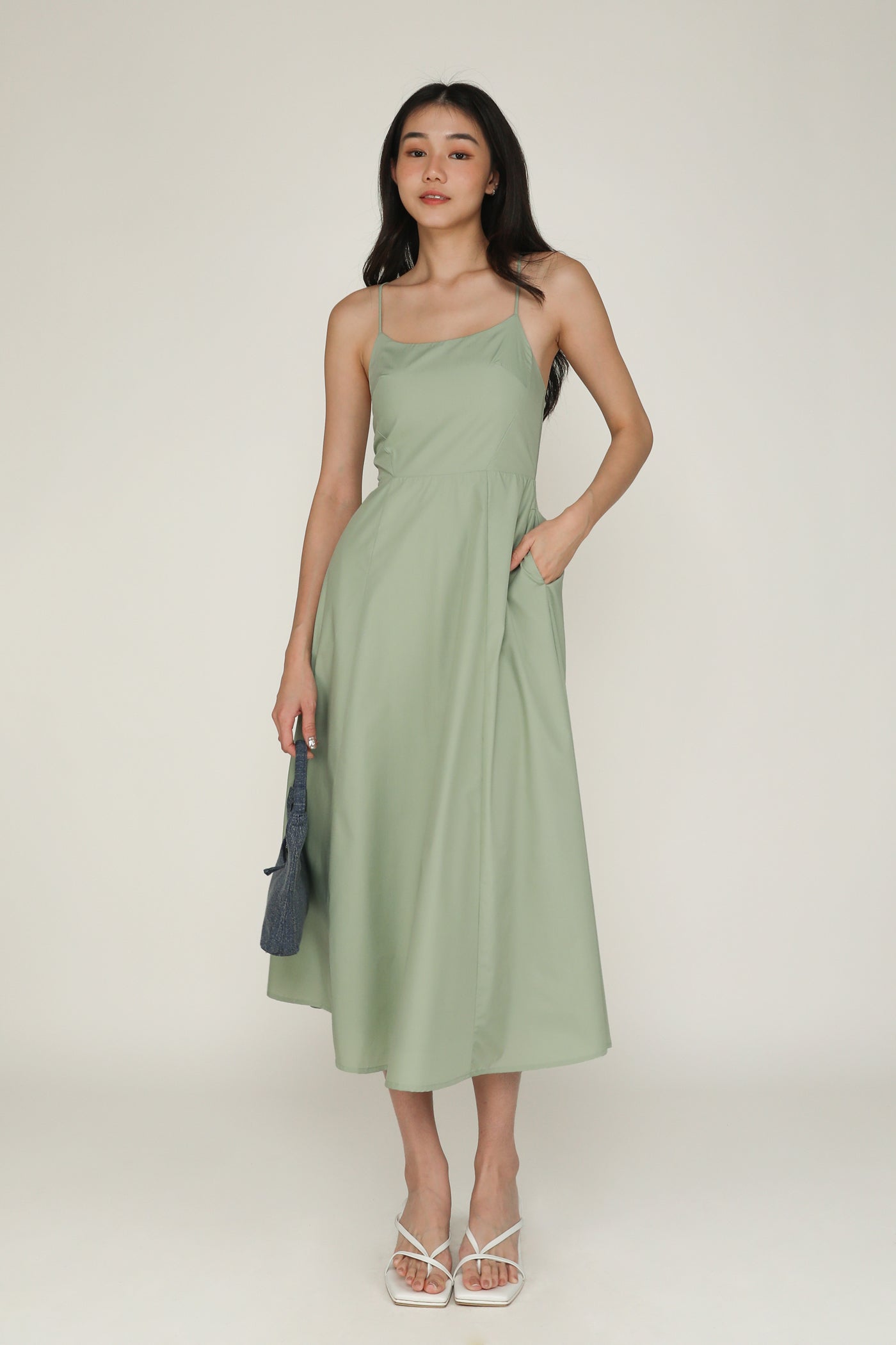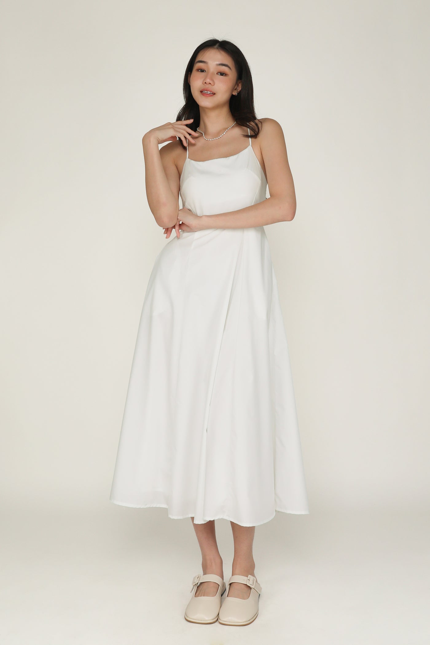 This dress is made of inner lined polyester cotton for a light and breathable fit. It is complete with removable paddings, self tie straps, smocked details at the back, and functional side pockets.