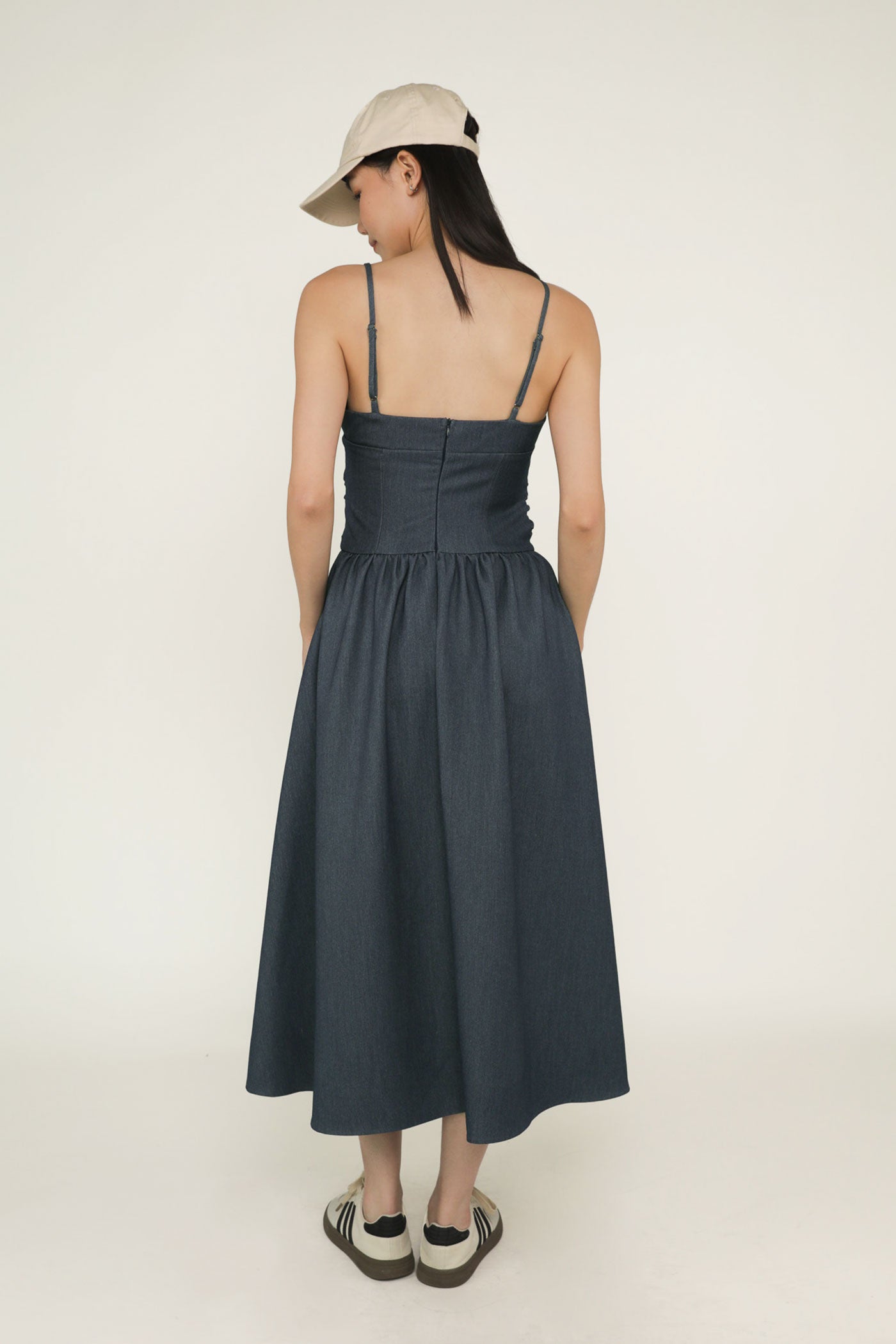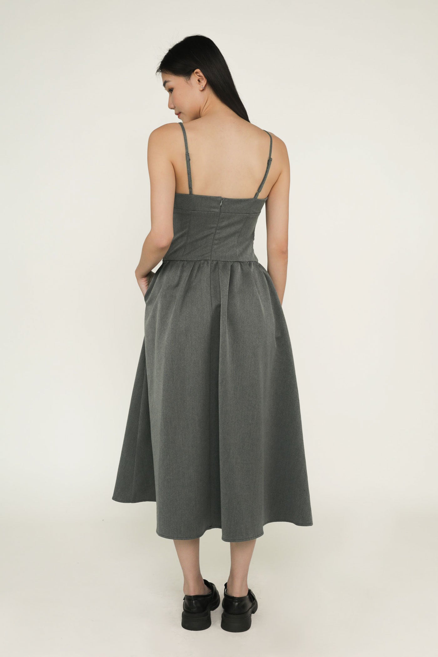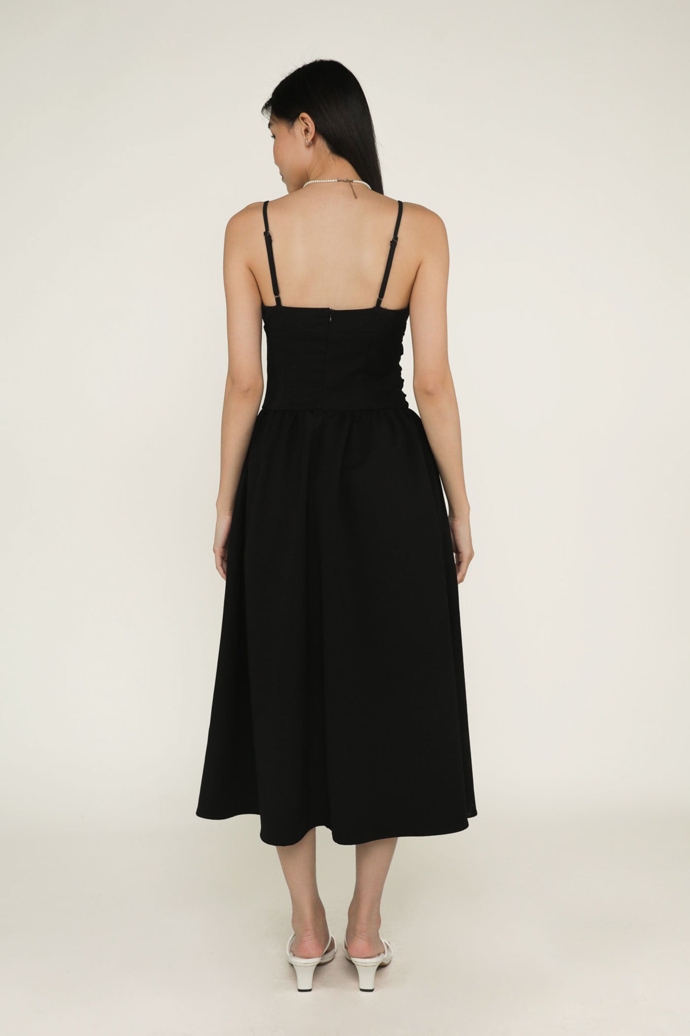 This dress is made of polyester rayon spandex for a comfortable and breathable fit. It is inner lined at the bodice and non lined at the bottom. It is complete with adjustable straps, functional pockets and a concealed back zip.