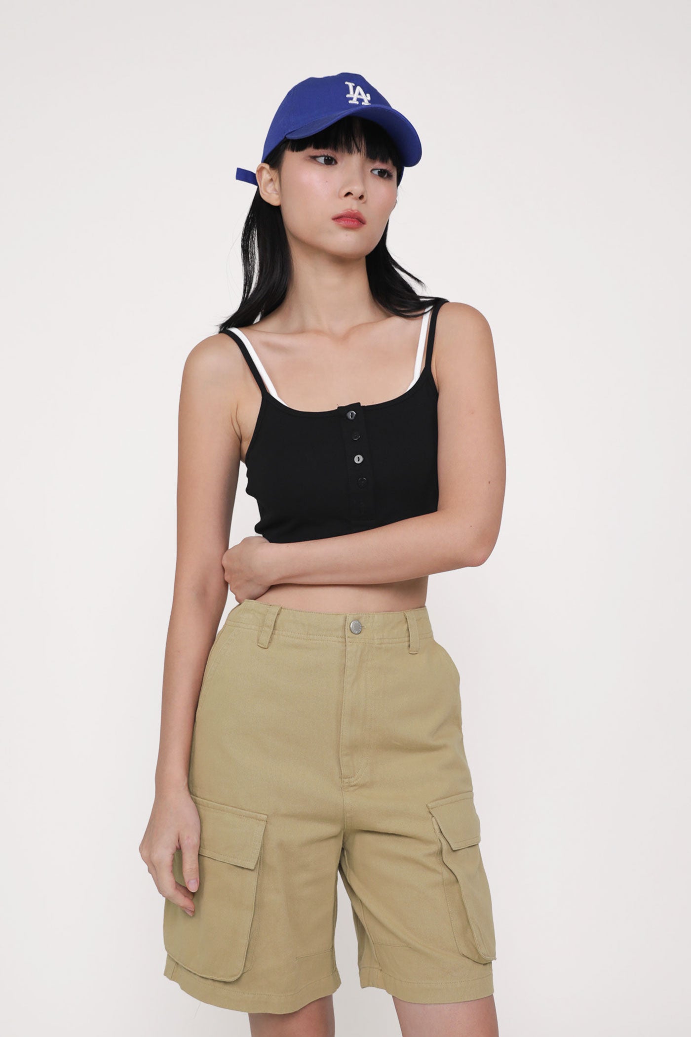 These jorts are made of non lined cotton for a comfortable and breathable fit. They are complete with a zip and button closure, and functional pockets.