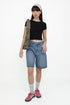 These jorts are made of non lined cotton denim for a comfortable and breathable fit. They are complete with a zip and button closure, and functional side and back pockets.