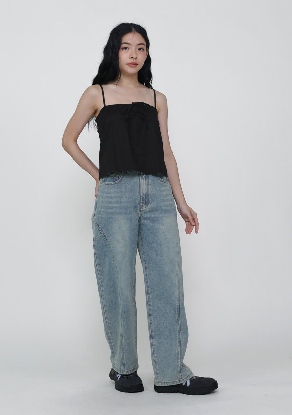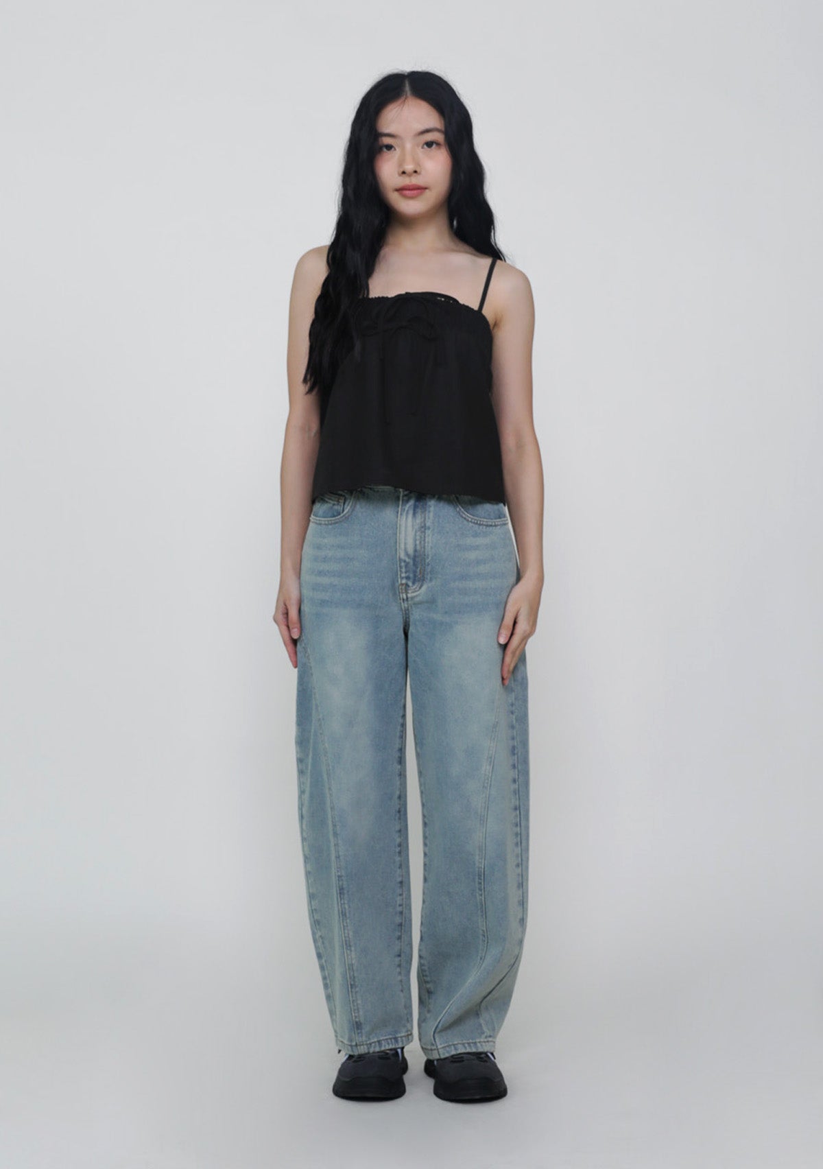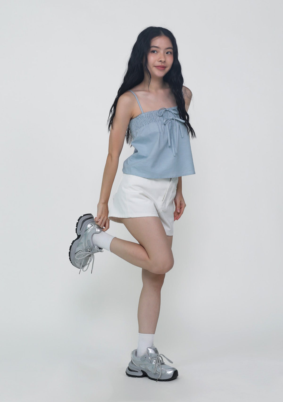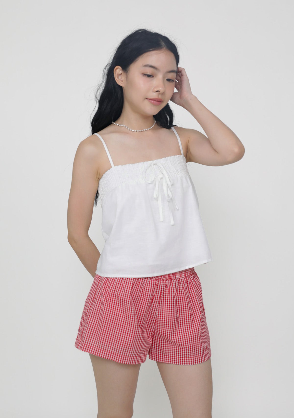 This top is made of cotton linen for a light and breathable fit. It has inner lining and complete with smocked details at the bust and adjustable straps.