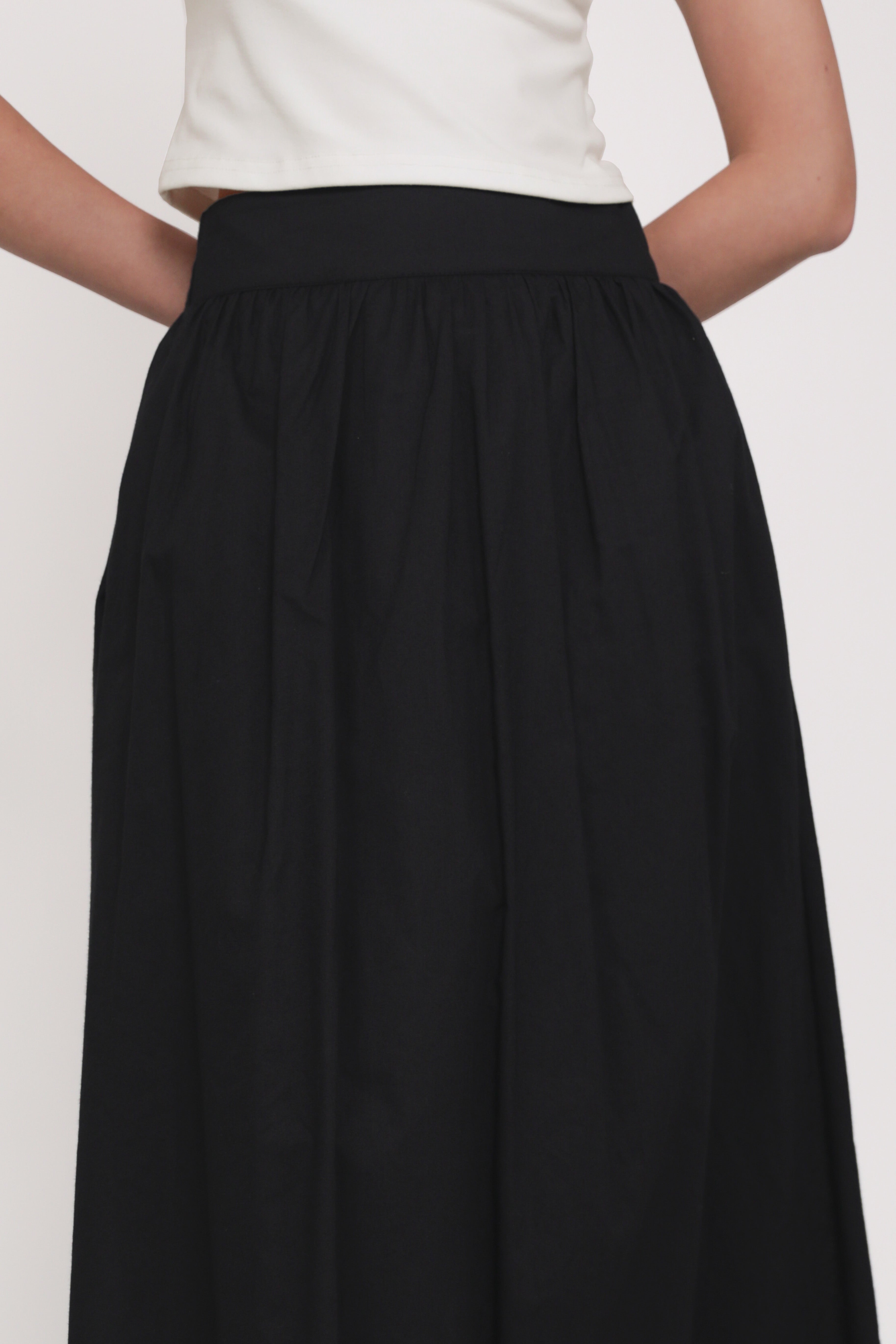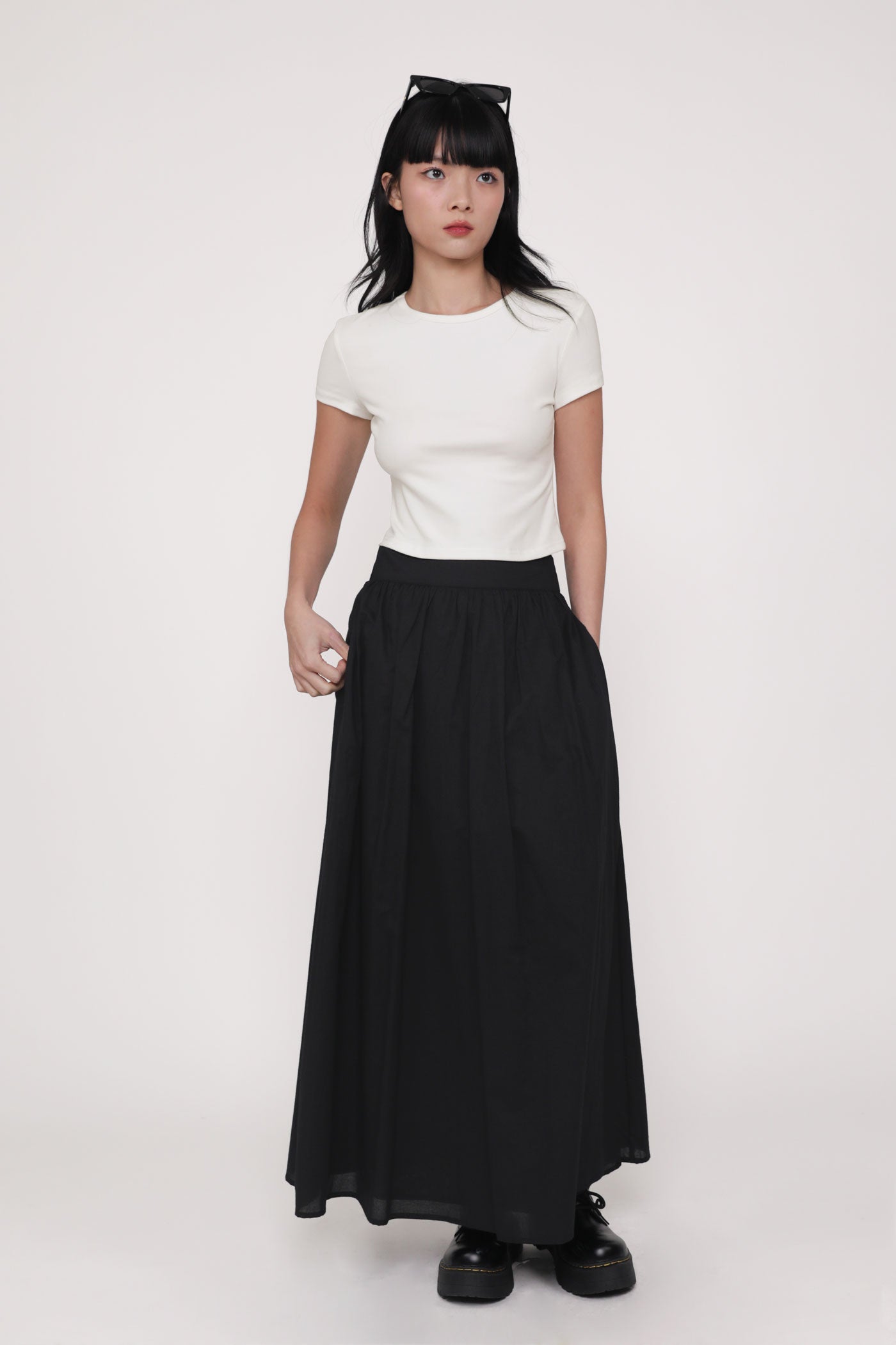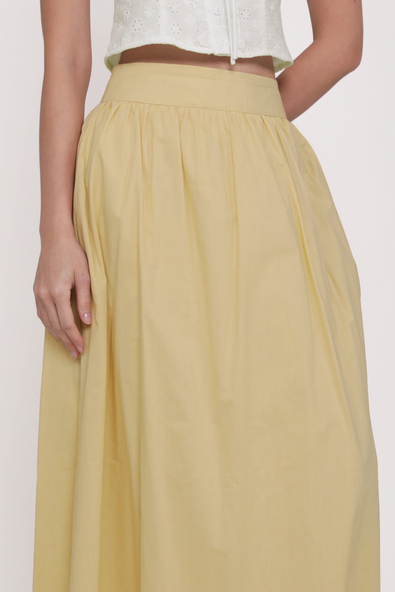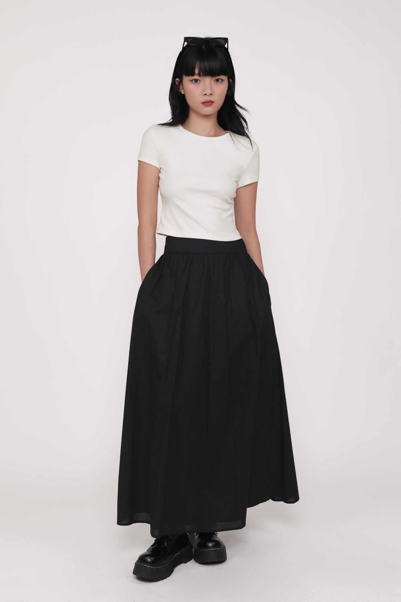 This skirt is made of cotton material. This skirt is complete with an inner lining and concealed back zip. All colourways except White has functional side pockets.