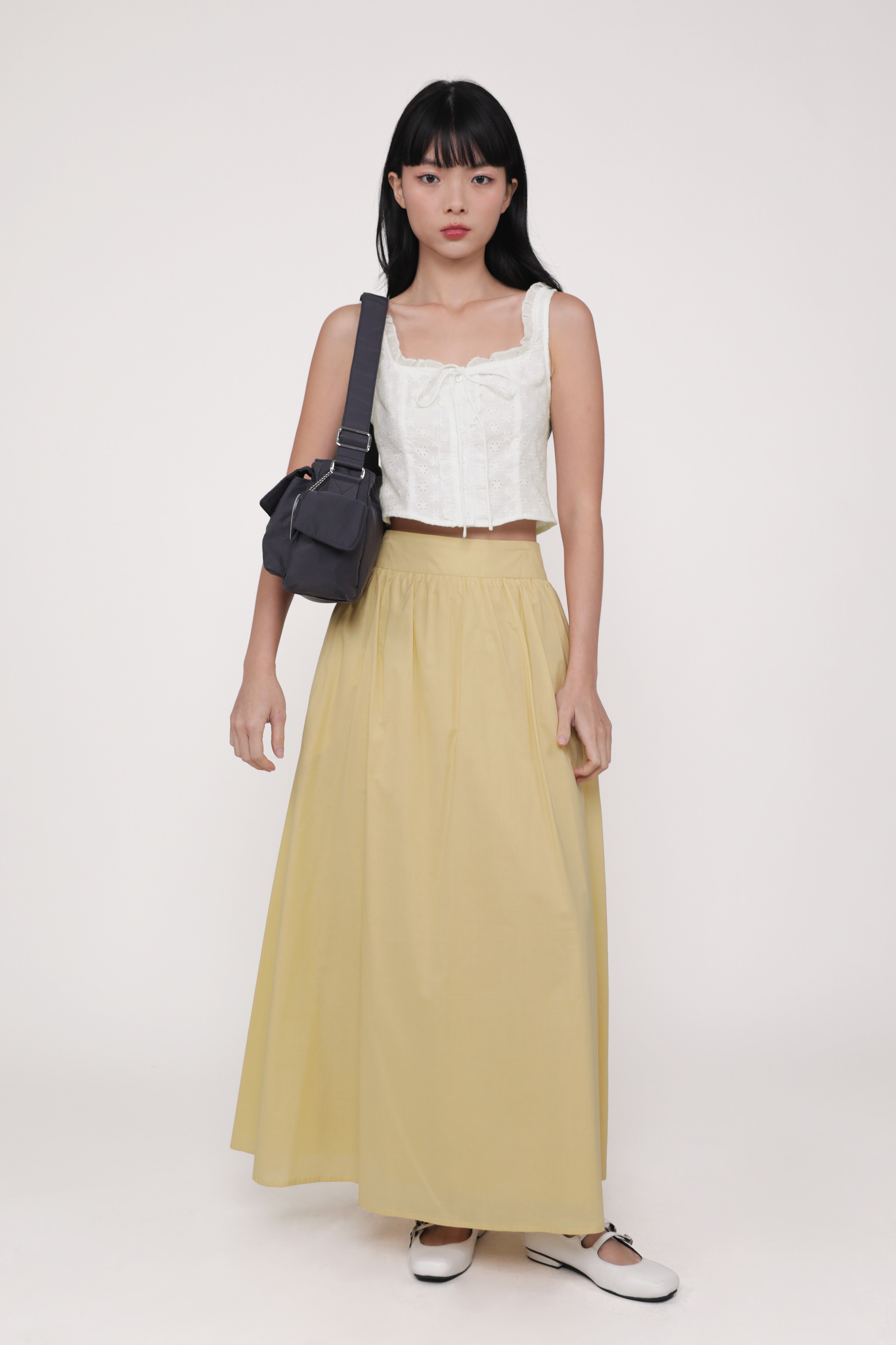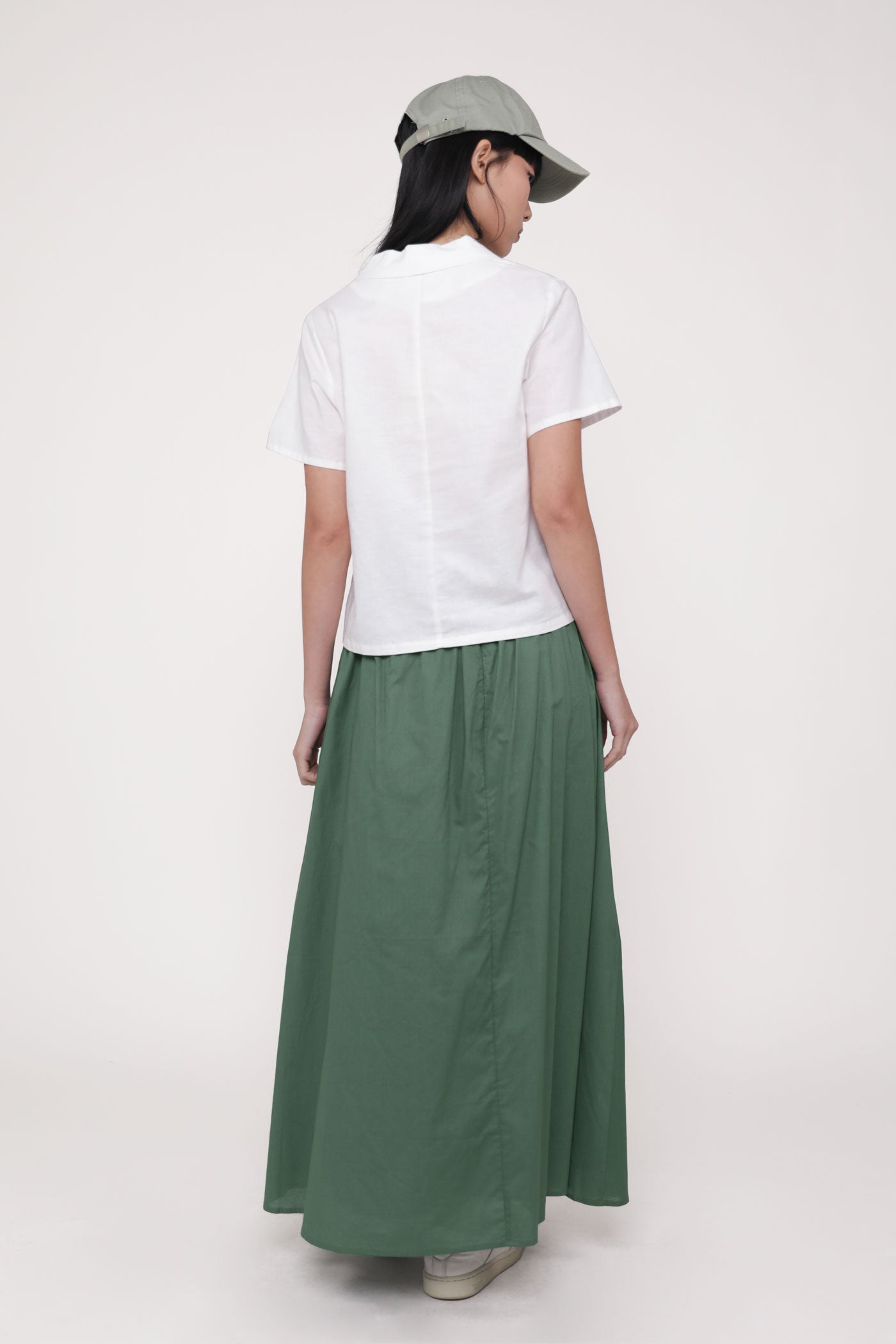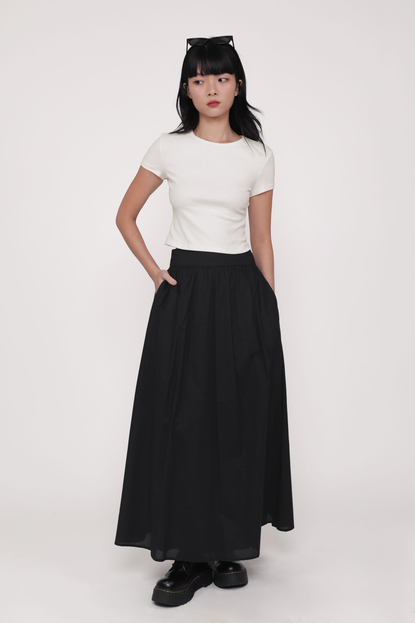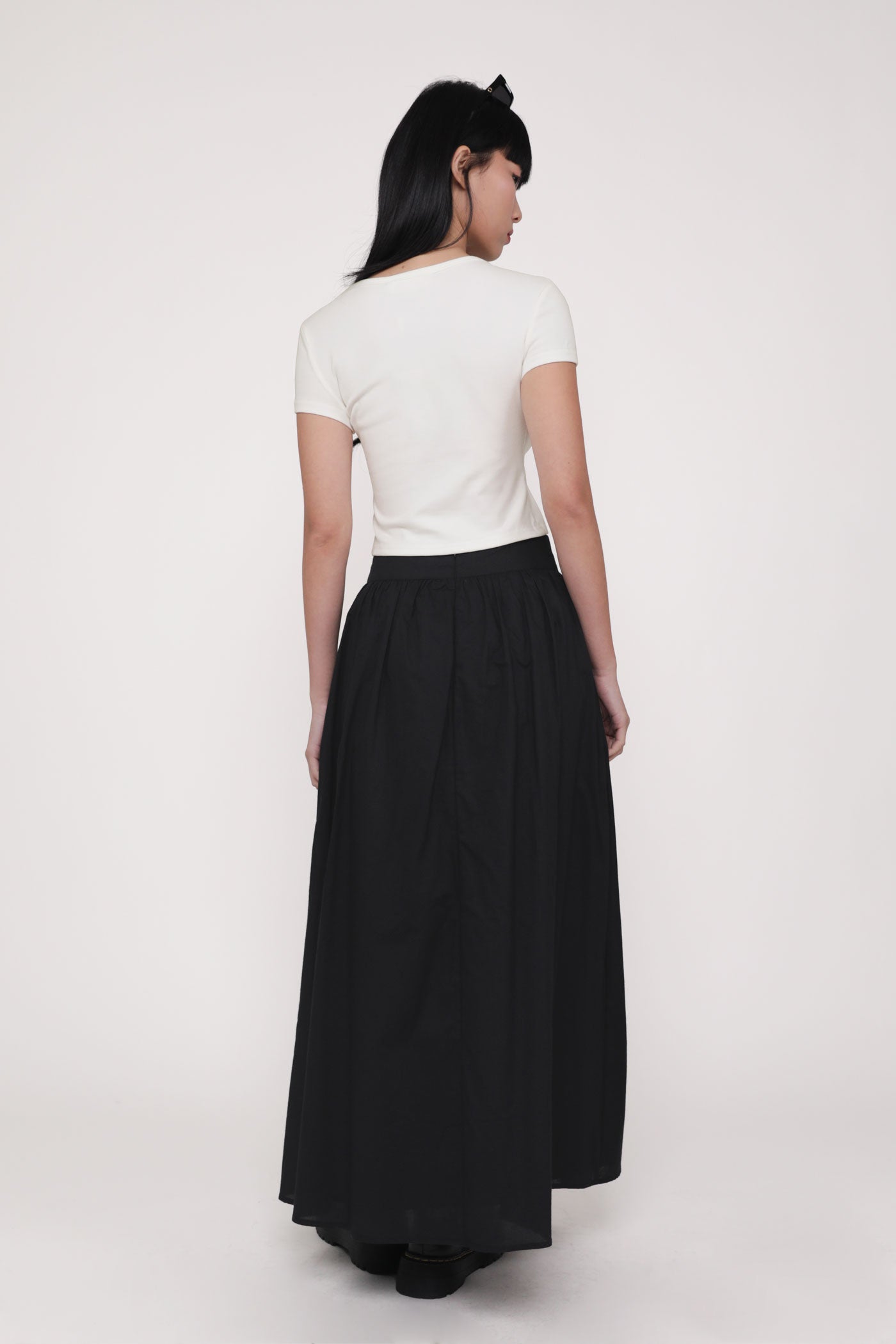This skirt is made of cotton material. This skirt is complete with an inner lining and concealed back zip. All colourways except White has functional side pockets.