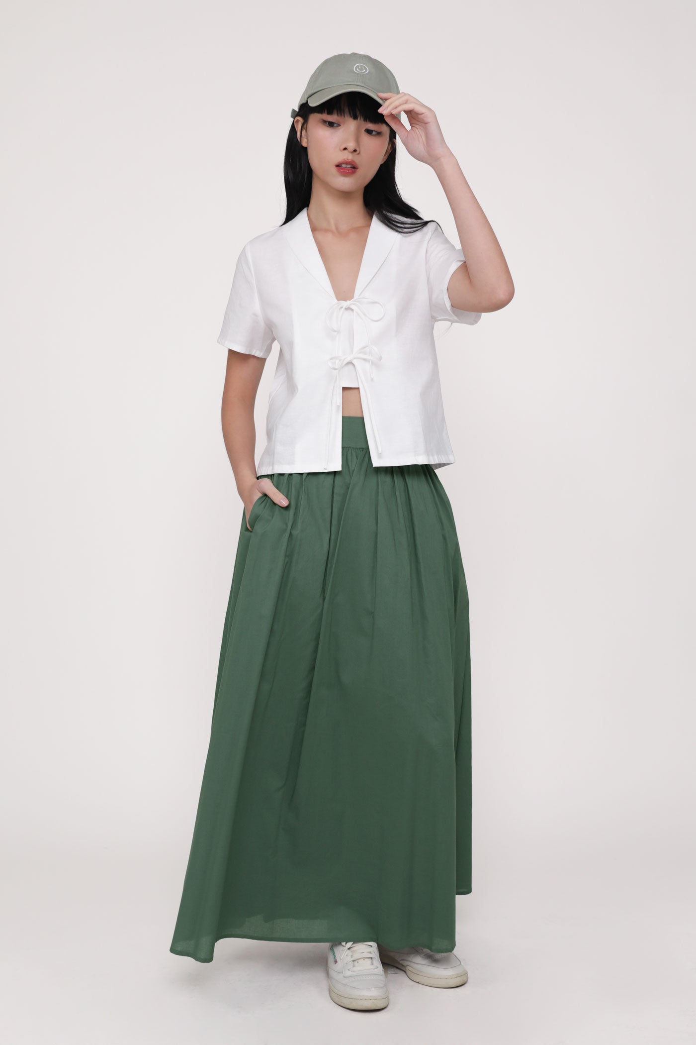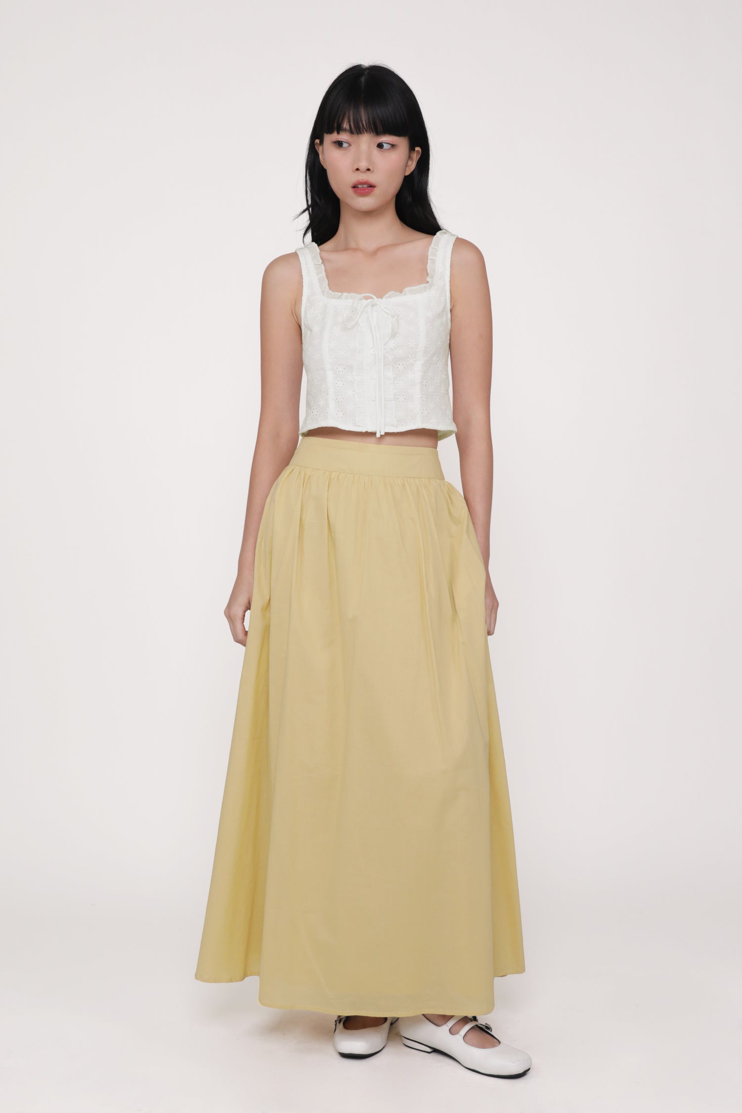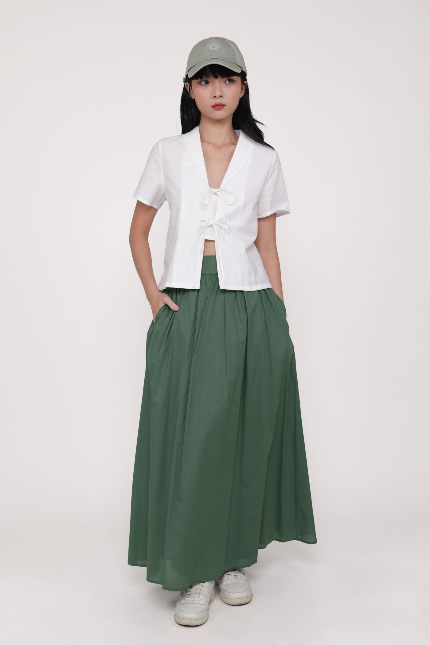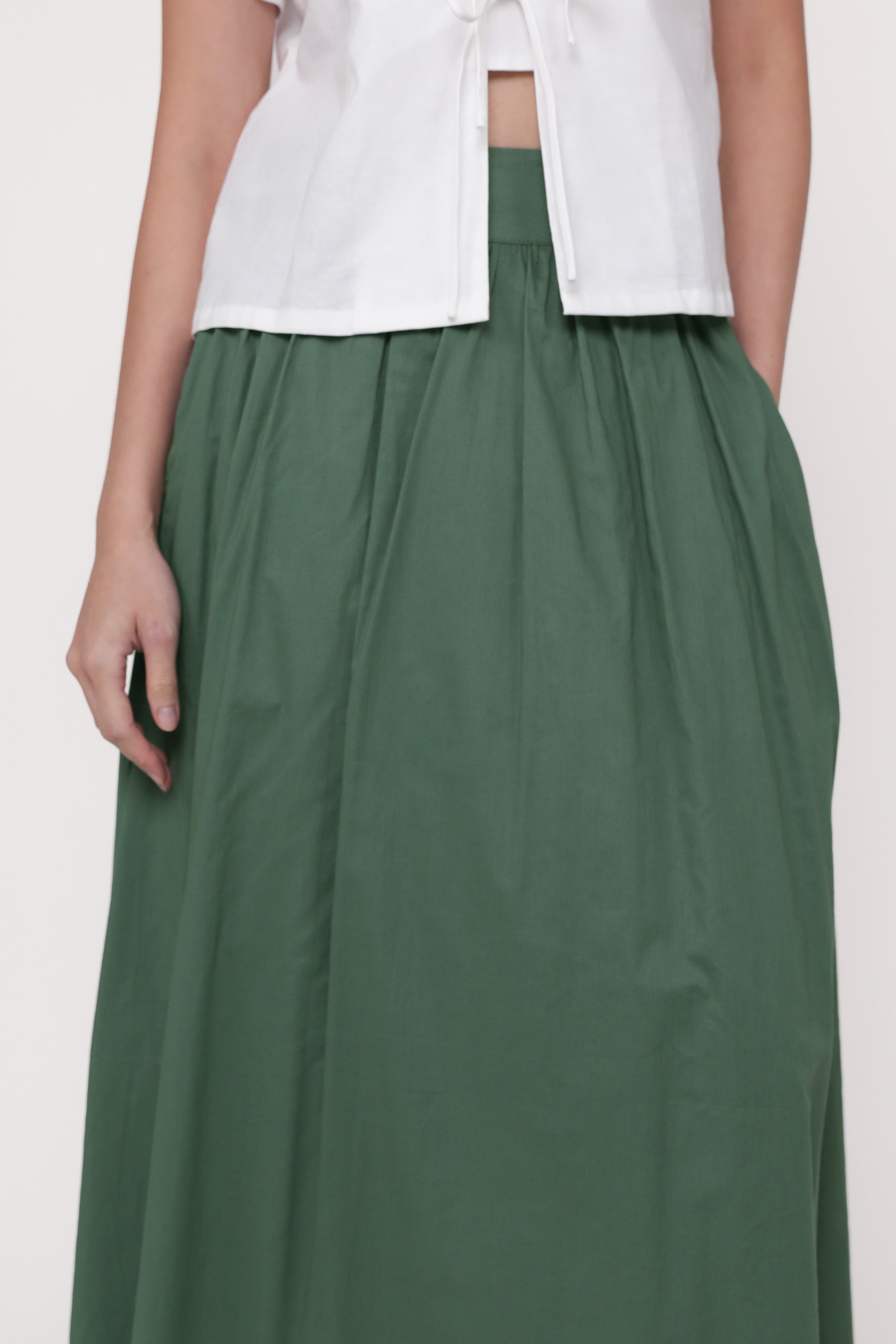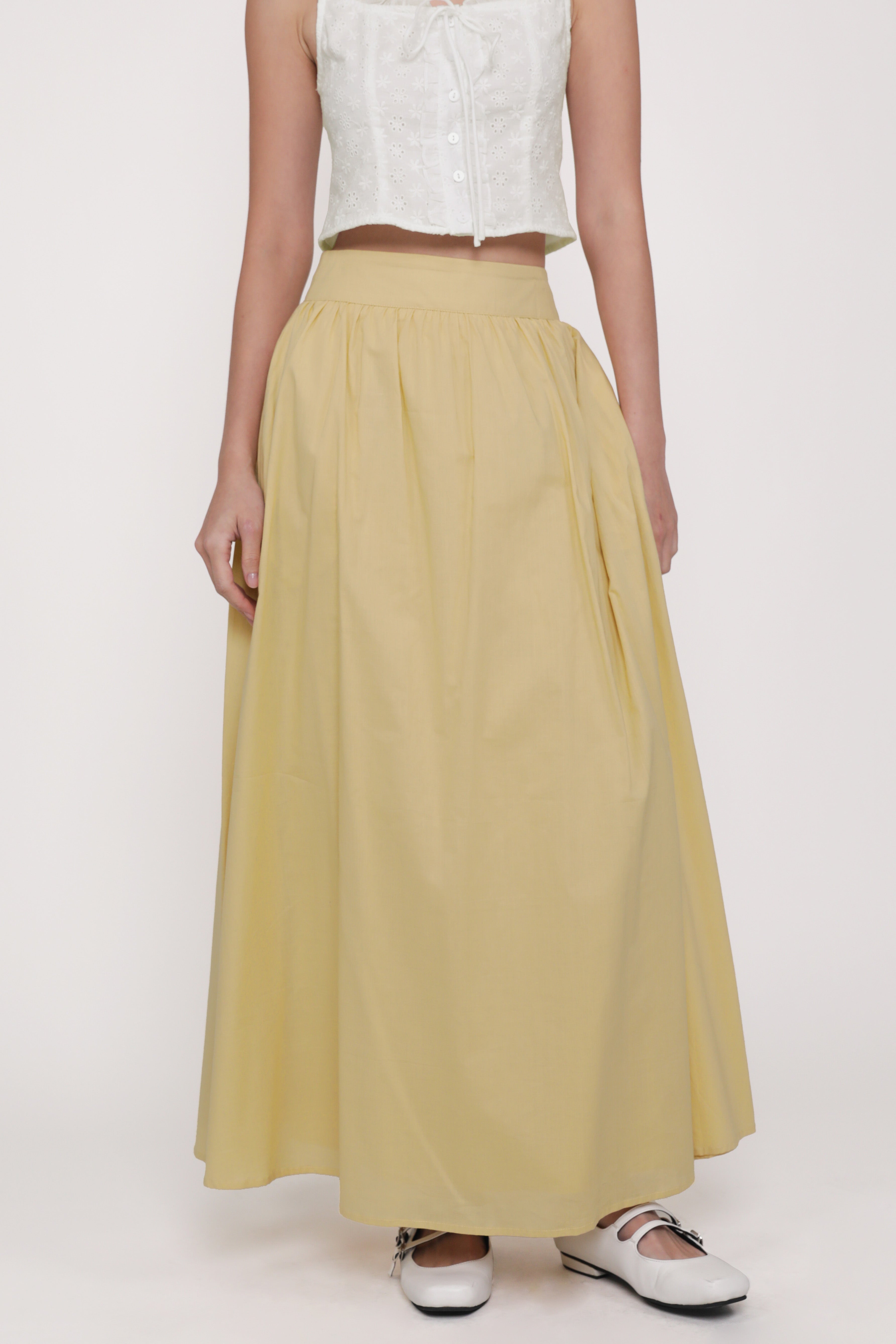 This skirt is made of cotton material. This skirt is complete with an inner lining and concealed back zip. All colourways except White has functional side pockets.