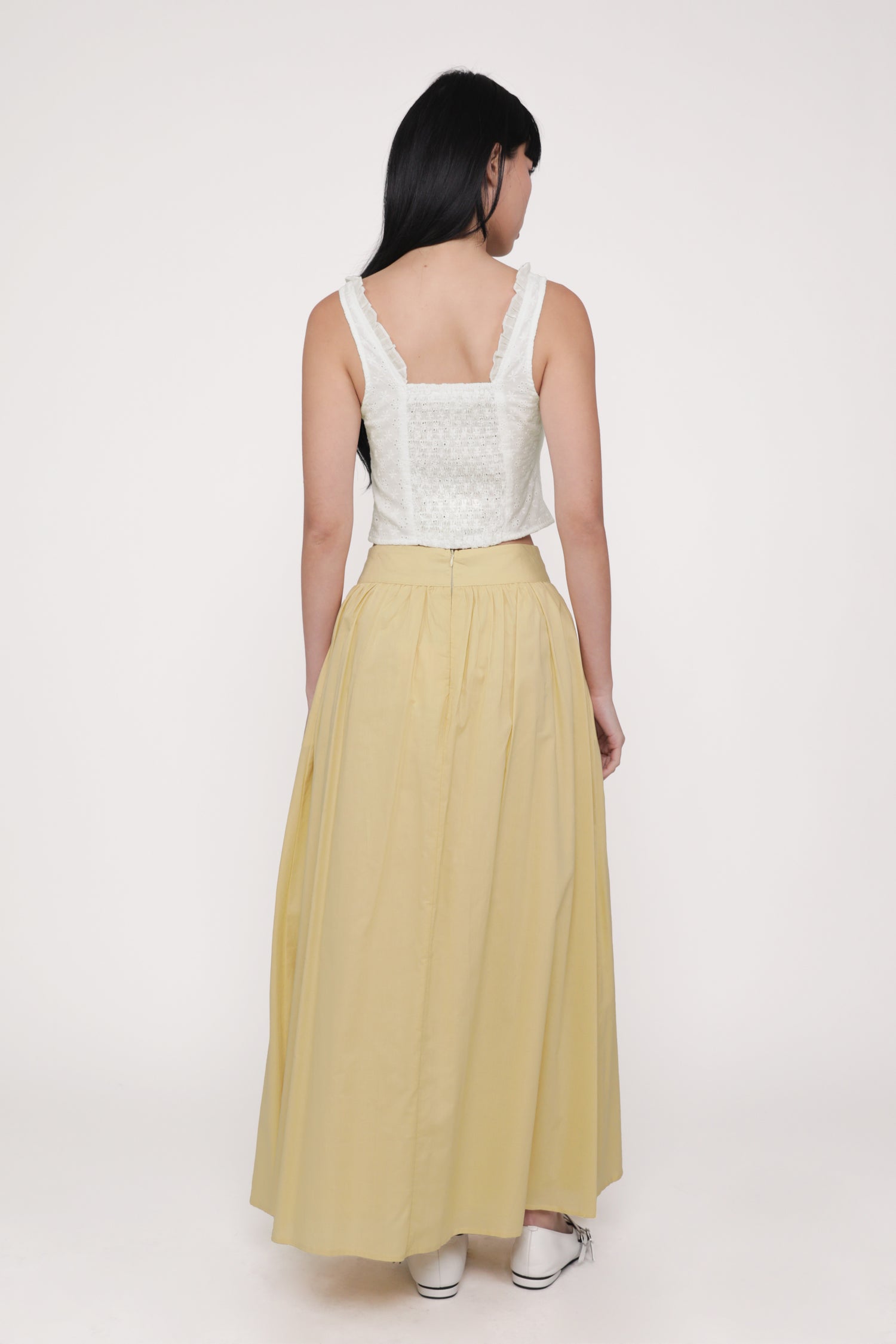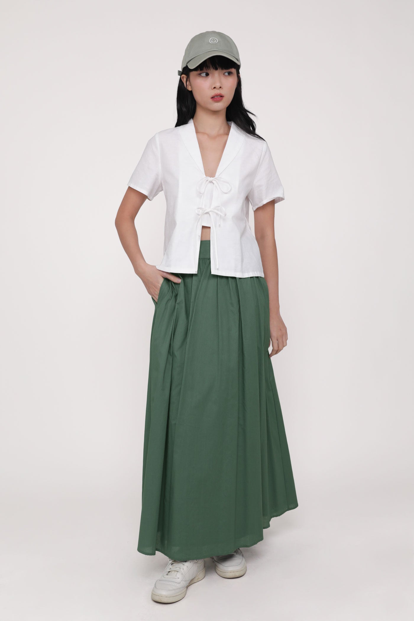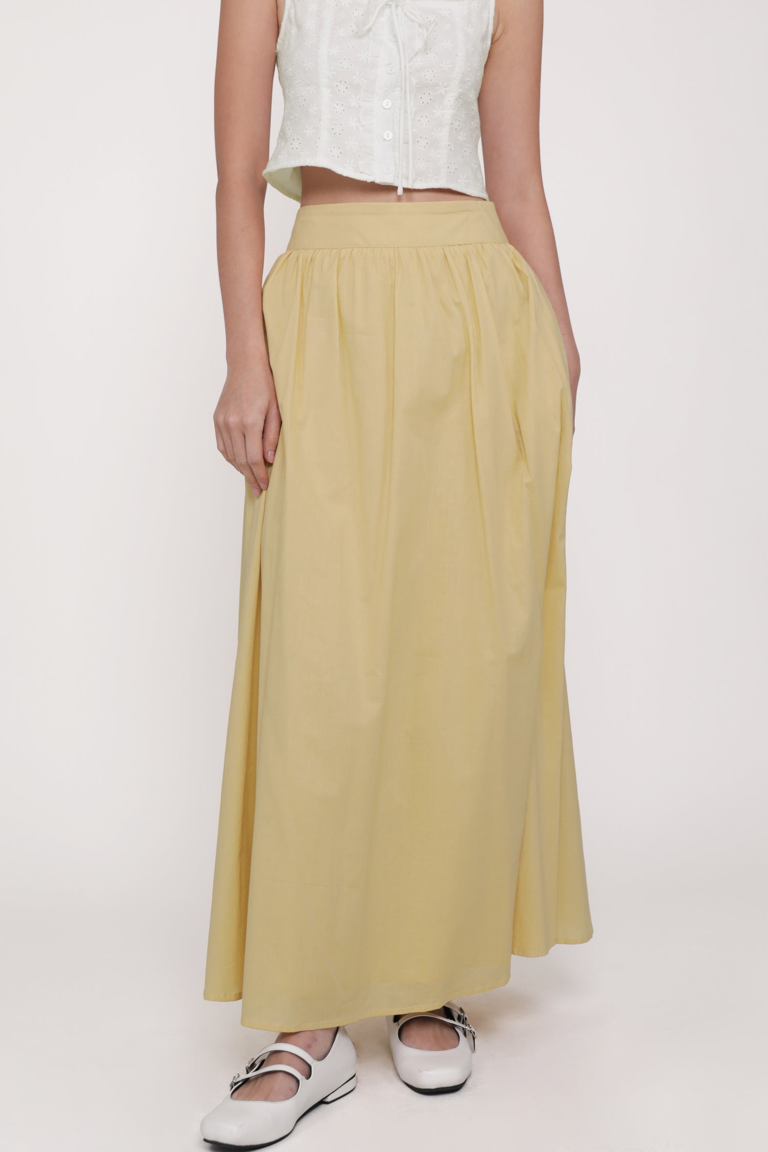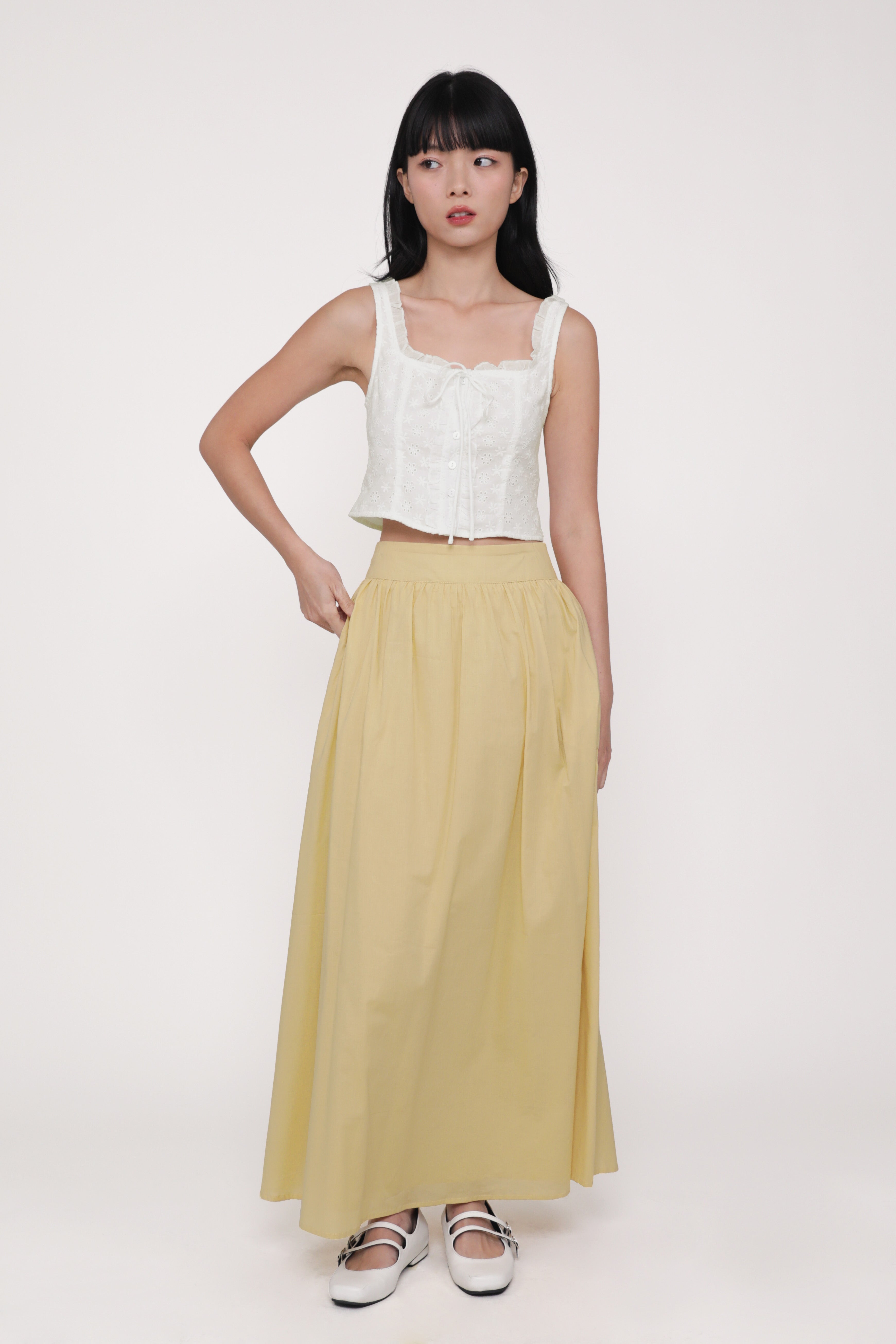 This skirt is made of cotton material. This skirt is complete with an inner lining and concealed back zip. All colourways except White has functional side pockets.