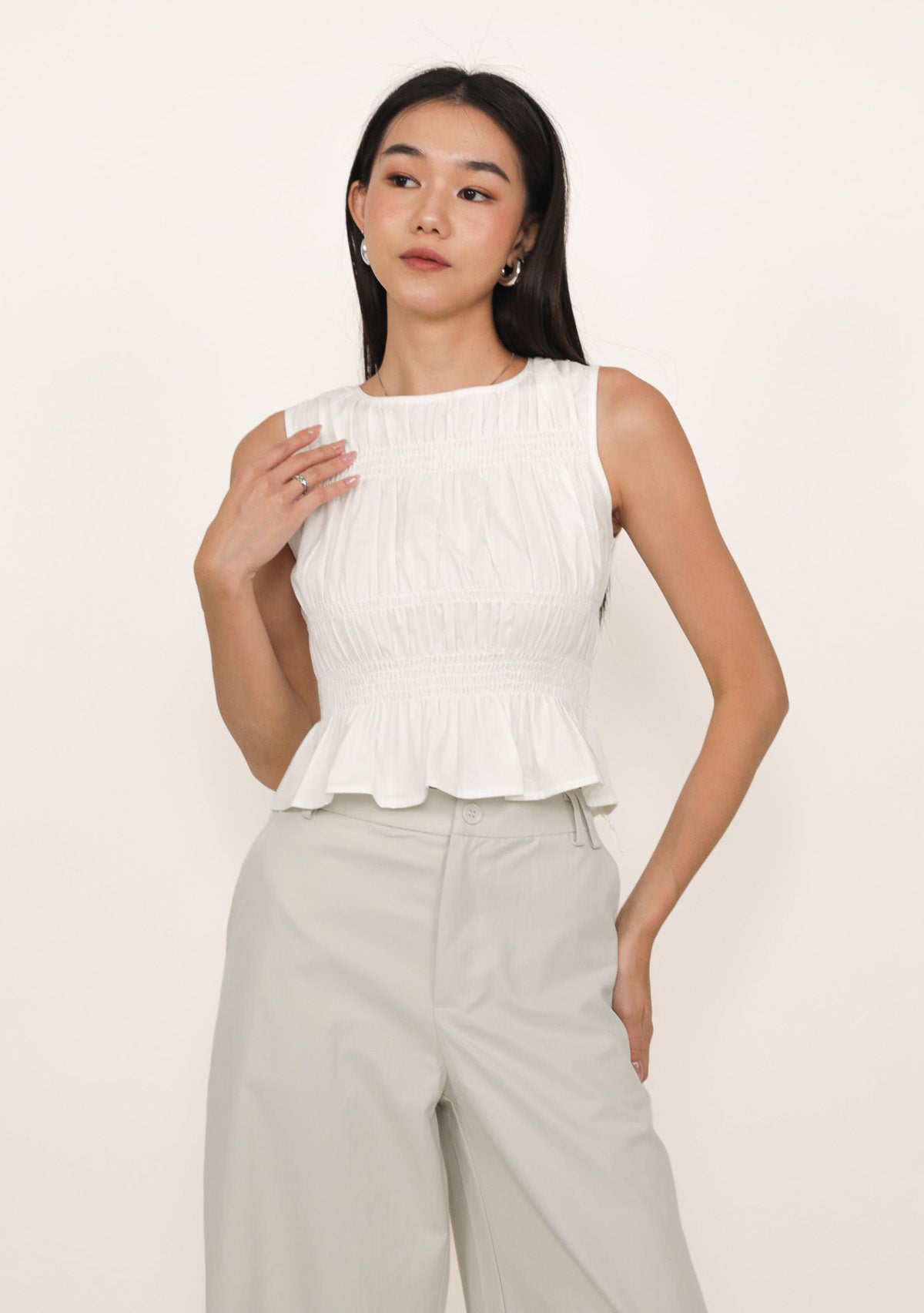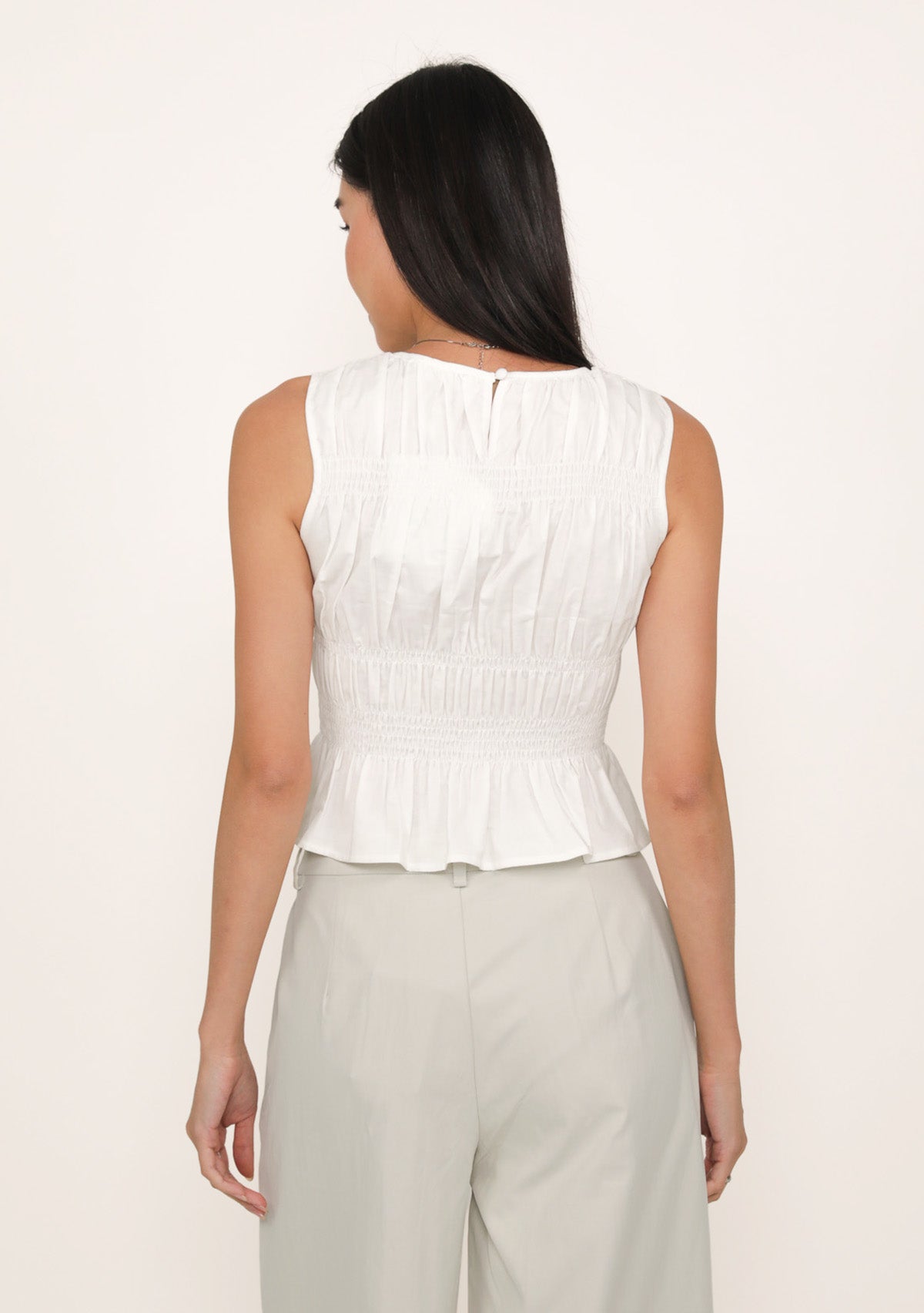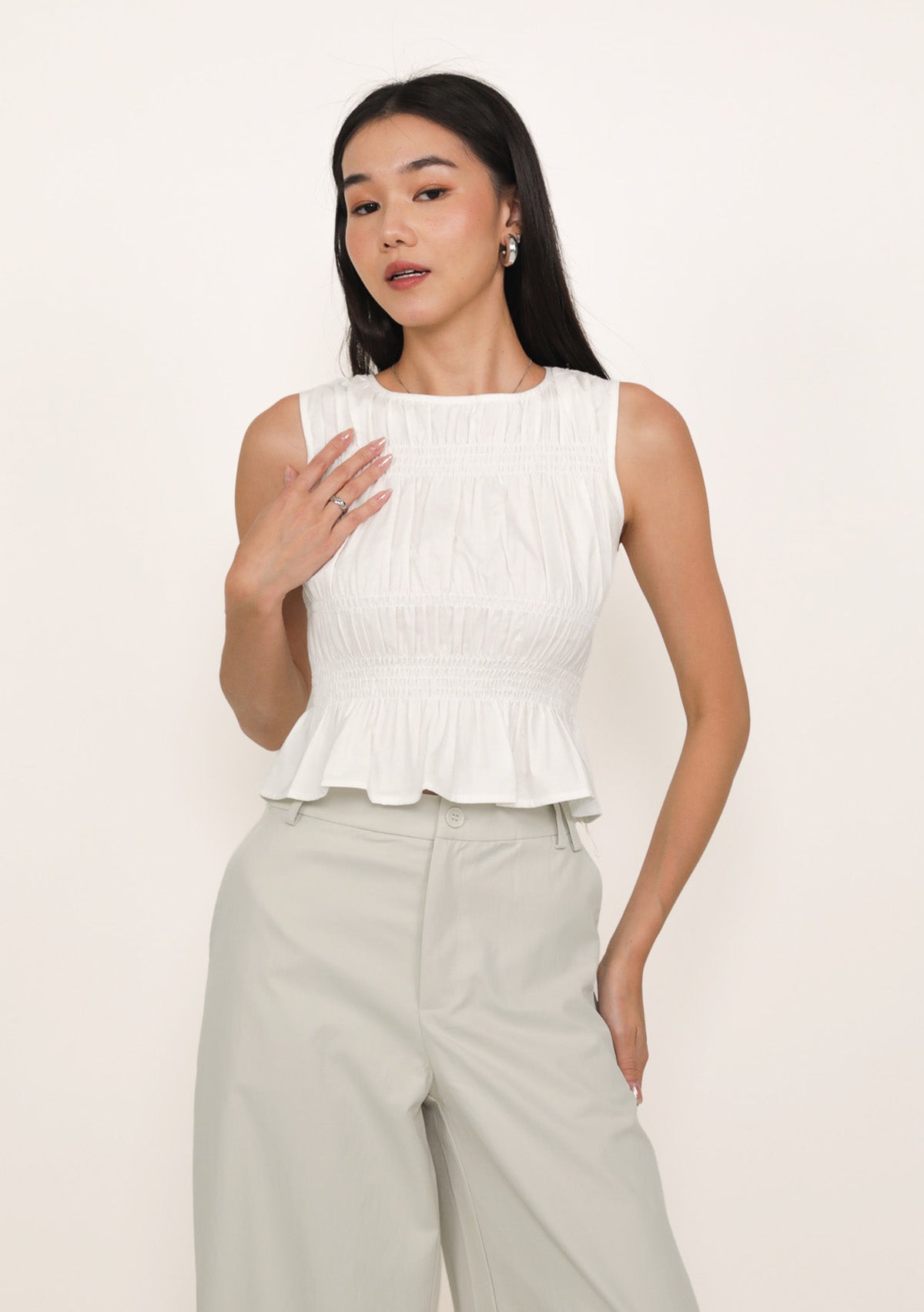 Della is designed with a softly gathered neckline and a fully shirred bodice that hugs the body in all the right places while allowing ease of movement. The subtle texture adds visual interest, while the slightly flared hem creates a gentle, feminine shape that sits beautifully on the waist. Crafted from lightweight cotton, it feels breathable and easy on the skin - perfect for warm, everyday wear. With its clean sleeveless cut and versatile silhouette, Della pairs effortlessly with everything from tailored bottoms to casual denim.