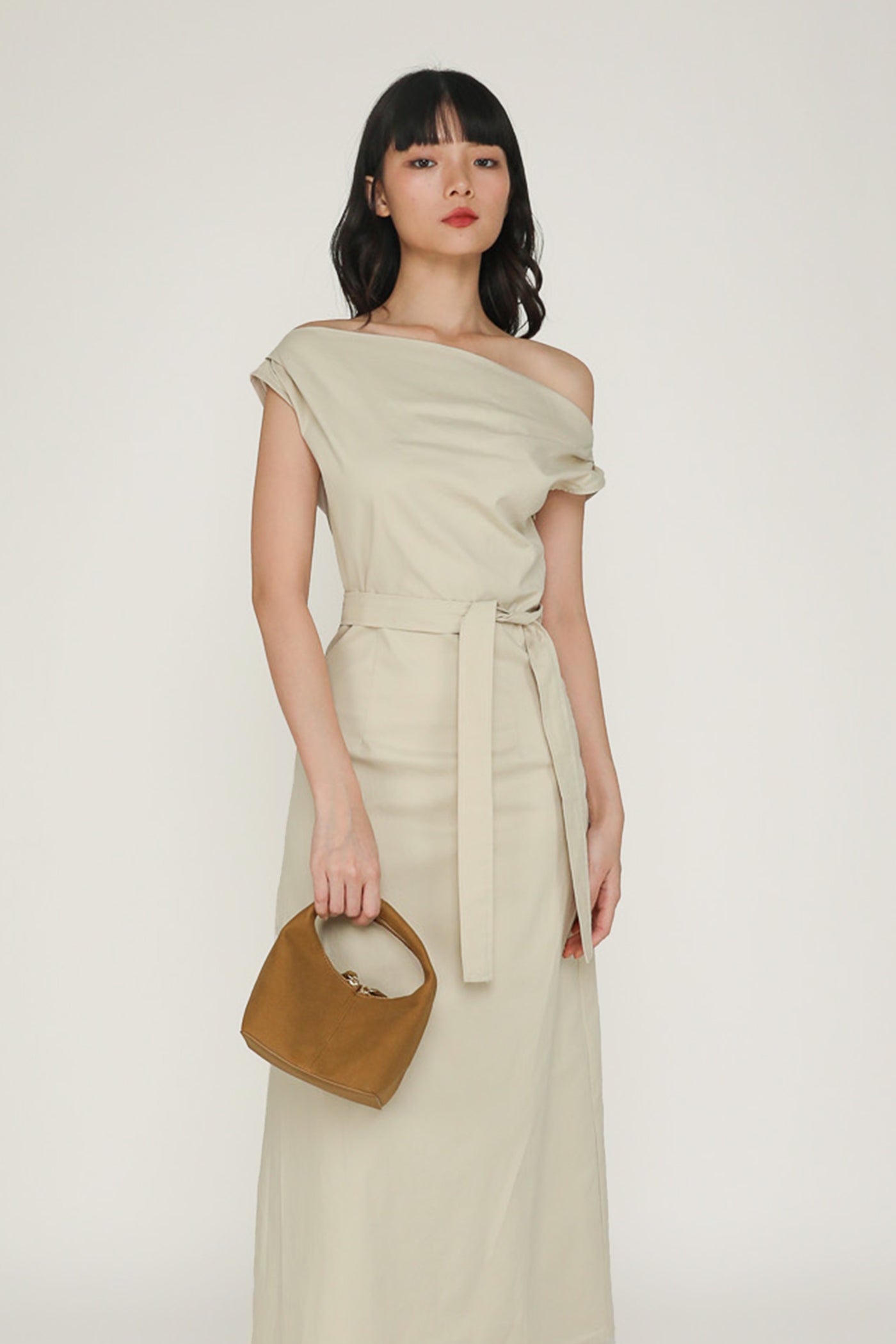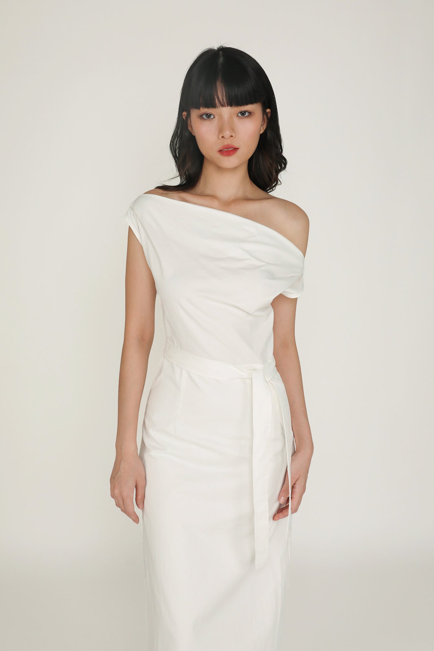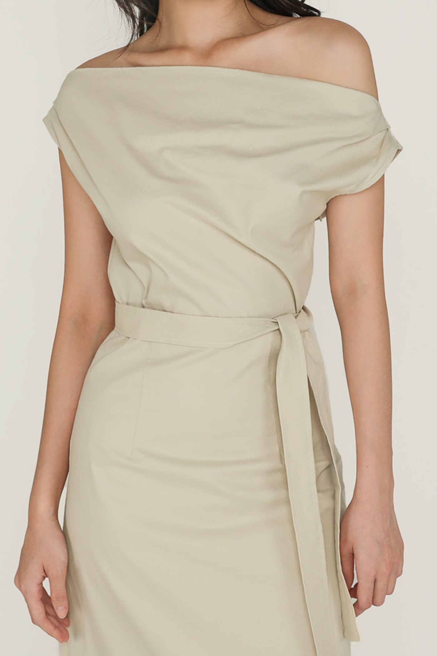Make your mark with Kael. Kael Asymmetrical Shoulder Maxi Dress is an elegant one-piece with a chic tailored fit. This dress flaunts an off shoulder neckline and self-tie sash to cinch in the waist. Mature, simple, and timeless, Kael is the go-to outfit for a sophisticated mood. Whether you're going to the office or hanging out on the weekend, this versatile maxi dress is always a charming pick.