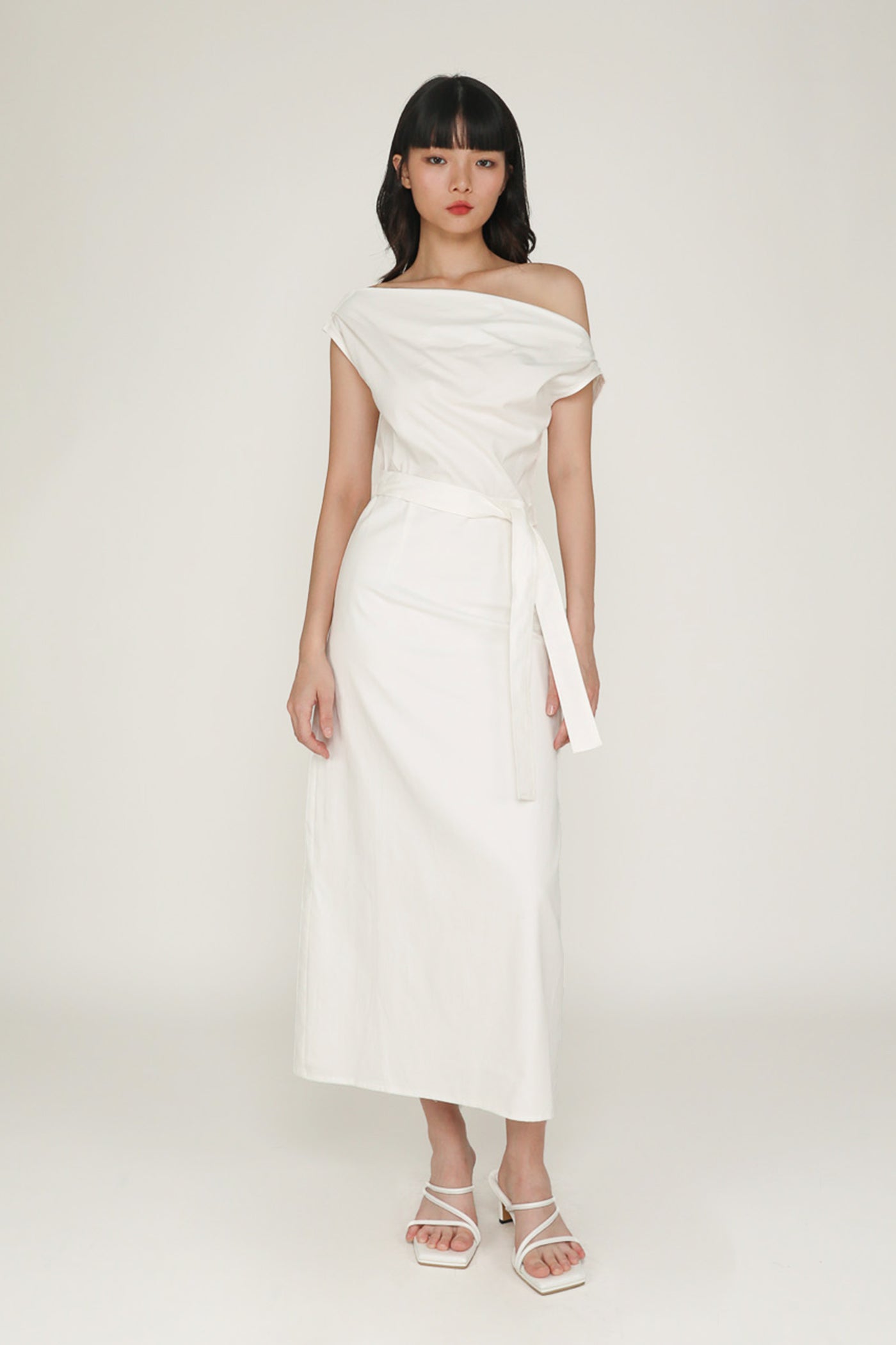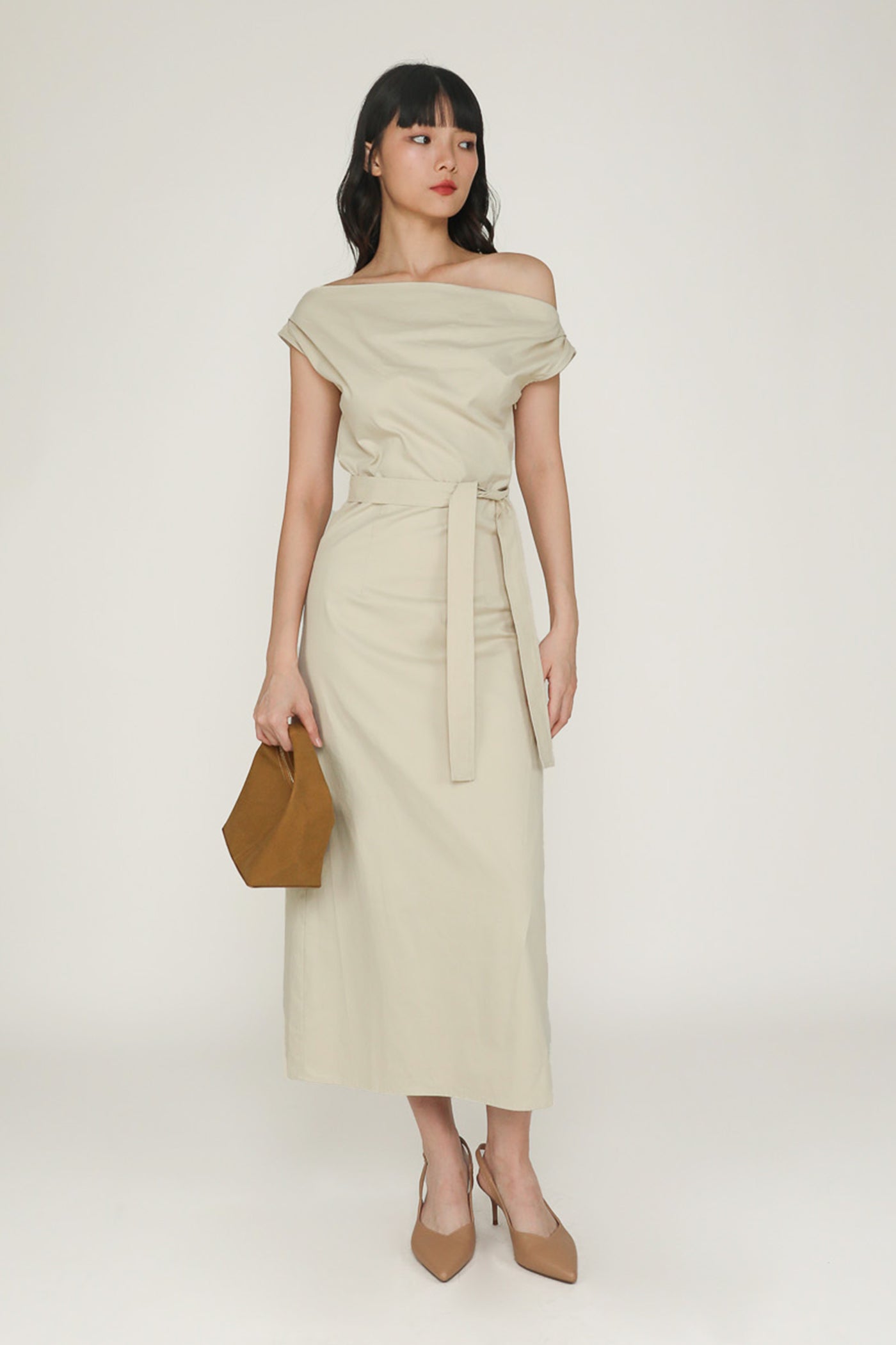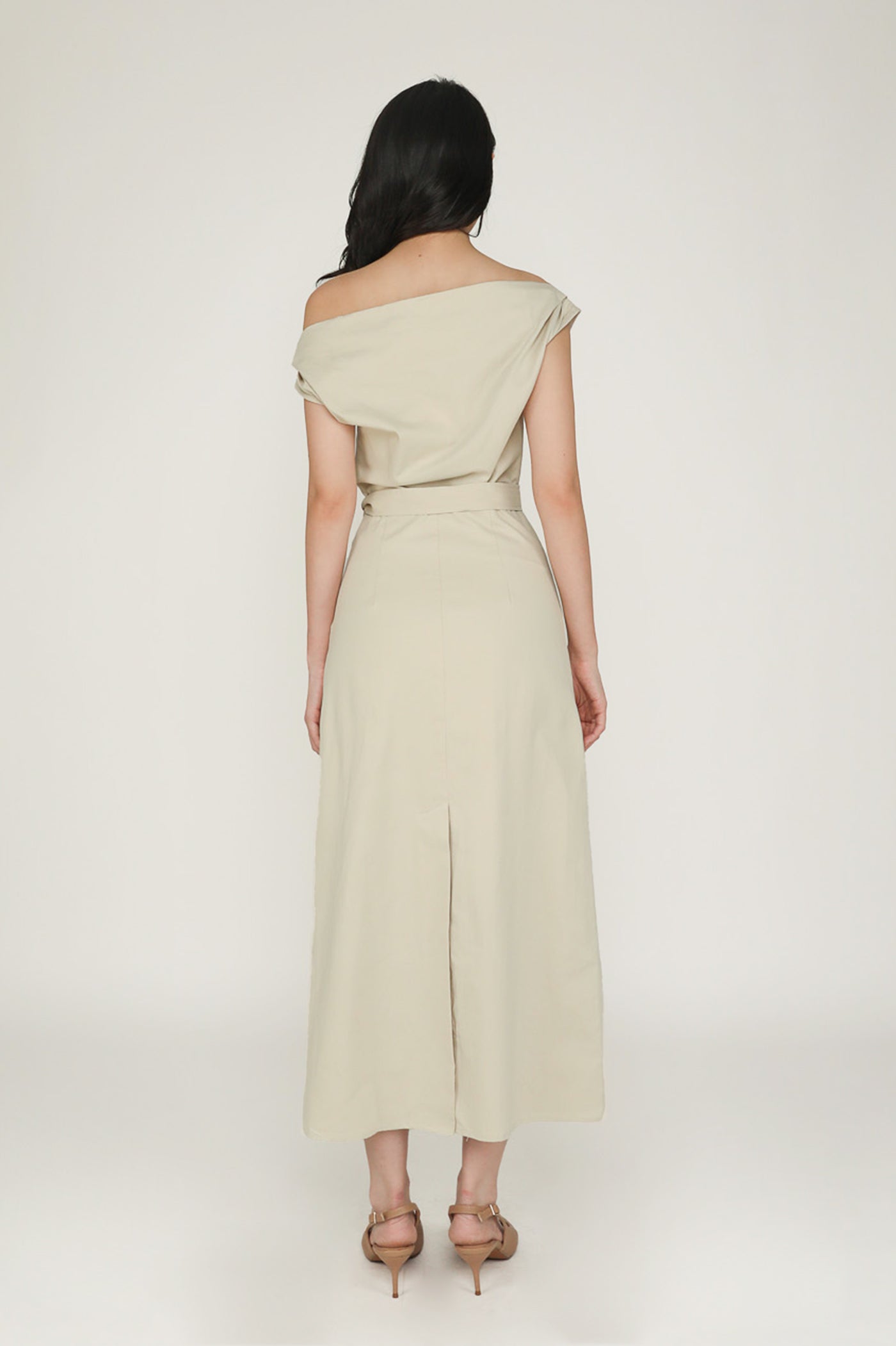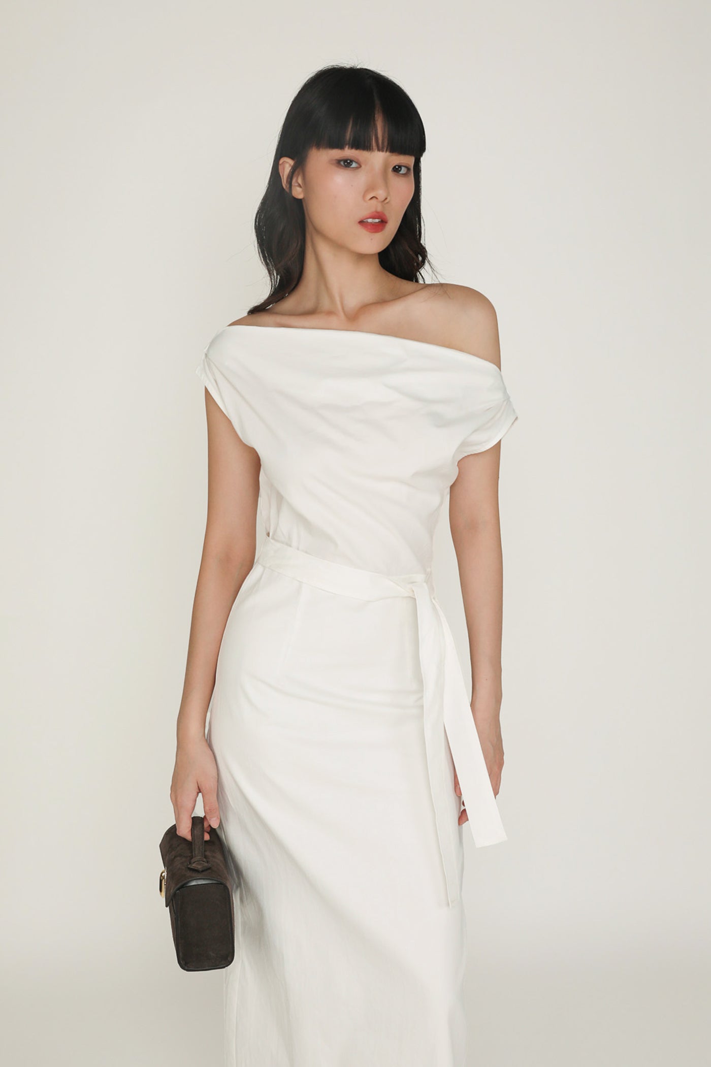 Make your mark with Kael. Kael Asymmetrical Shoulder Maxi Dress is an elegant one-piece with a chic tailored fit. This dress flaunts an off shoulder neckline and self-tie sash to cinch in the waist. Mature, simple, and timeless, Kael is the go-to outfit for a sophisticated mood. Whether you're going to the office or hanging out on the weekend, this versatile maxi dress is always a charming pick.