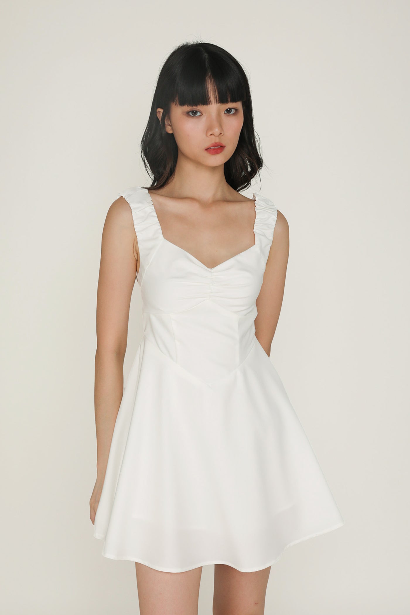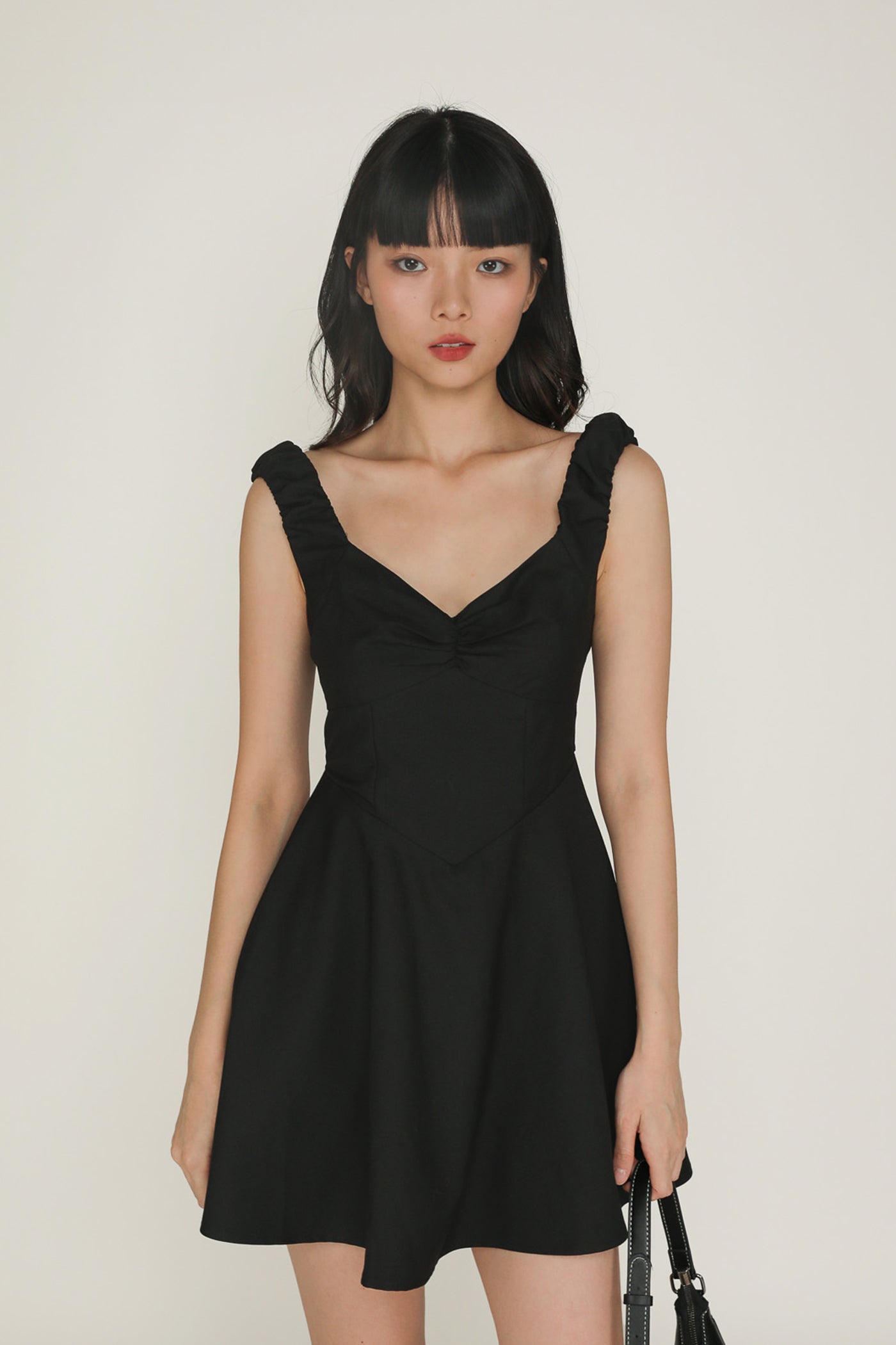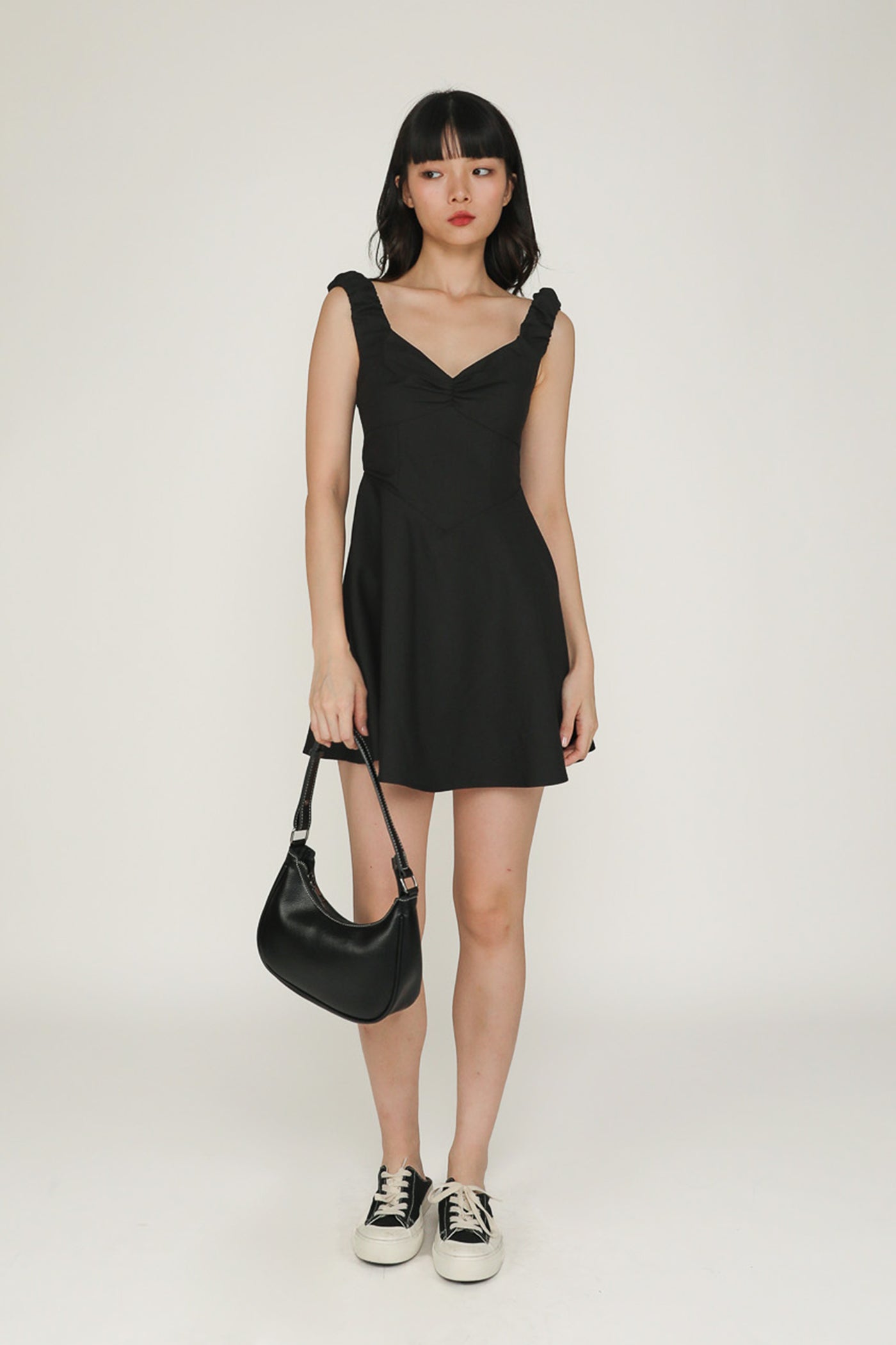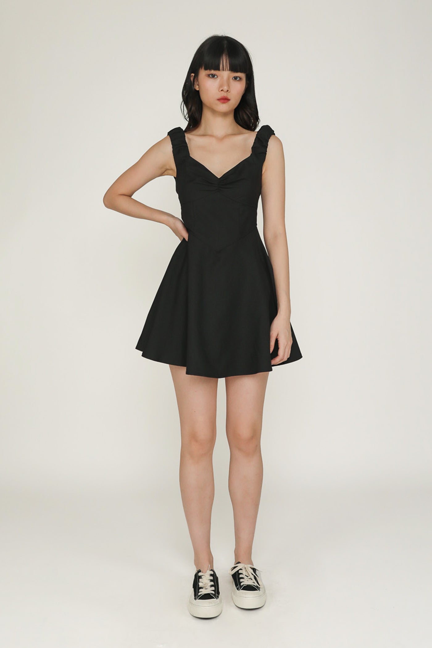 Set the tone right this season with Shanie. Shanie Ruched Strap Romper is a fresh and feminine ensemble for the hot summer days. The romper features a sweetheart neckline and a ruched statement on the front and ruching along the straps. It also has a flowy skirt for a dreamy finish. Comfortable and chic, Shanie is the go-to casual look for all your fun weekend plans.