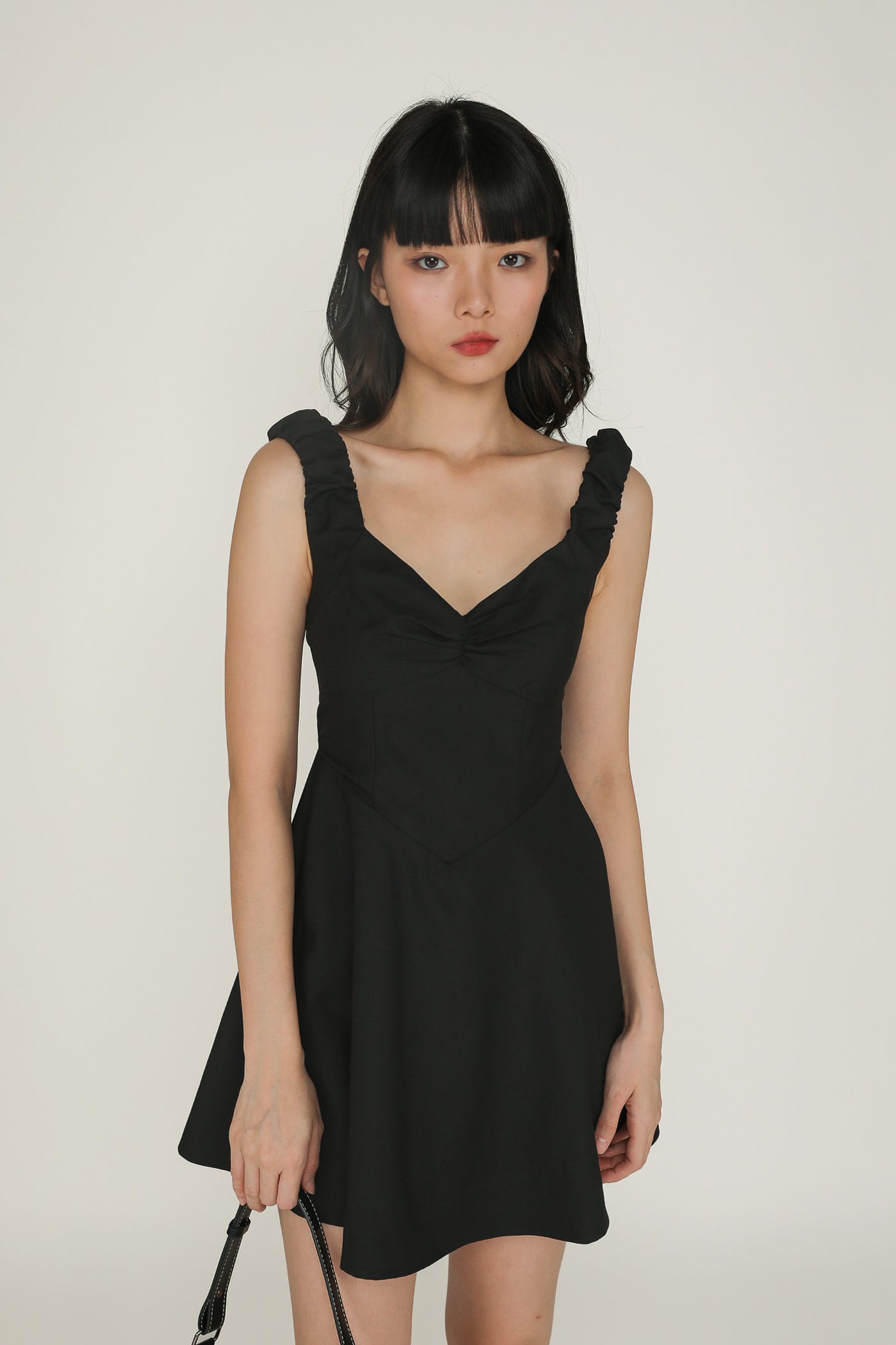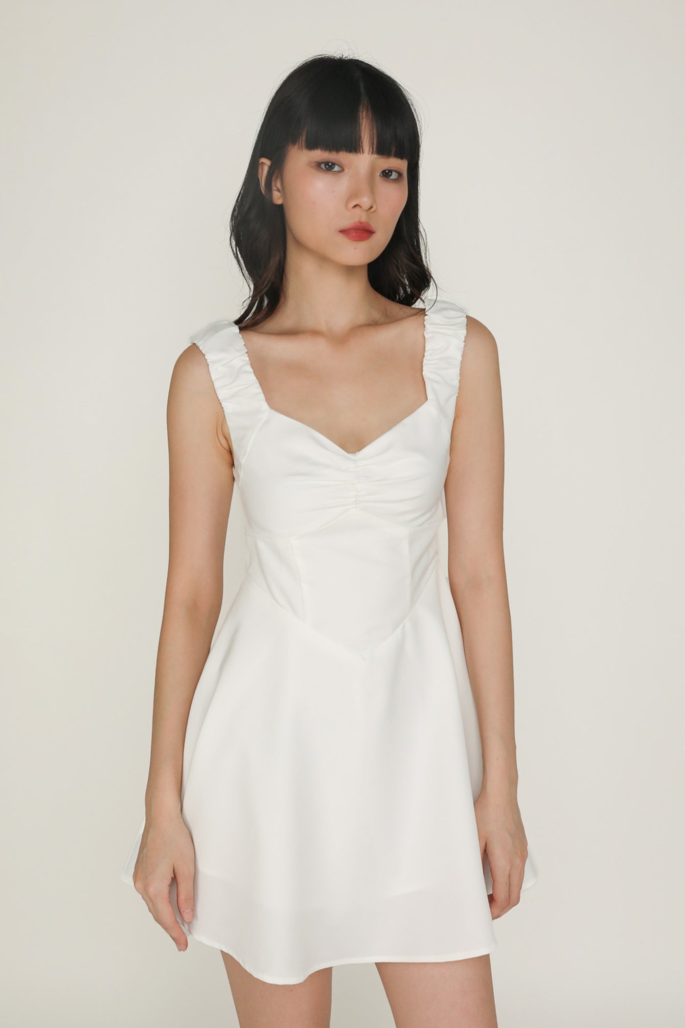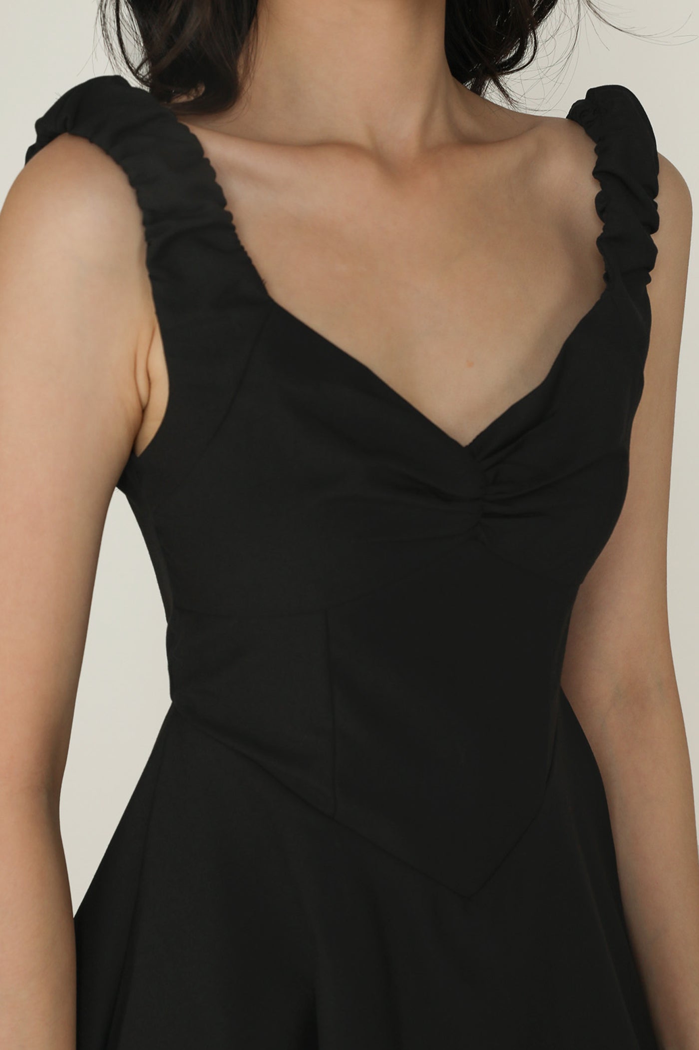 Set the tone right this season with Shanie. Shanie Ruched Strap Romper is a fresh and feminine ensemble for the hot summer days. The romper features a sweetheart neckline and a ruched statement on the front and ruching along the straps. It also has a flowy skirt for a dreamy finish. Comfortable and chic, Shanie is the go-to casual look for all your fun weekend plans.