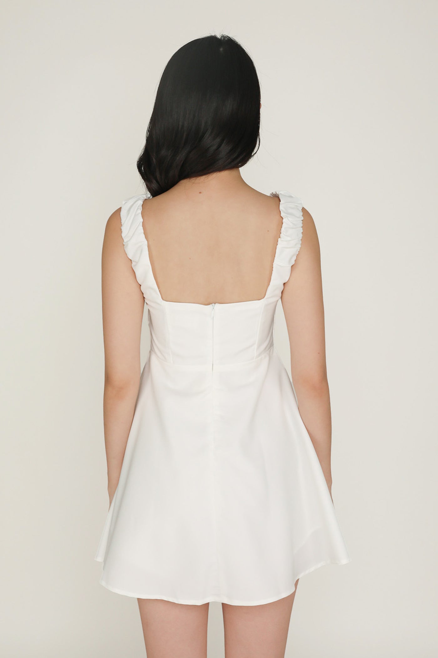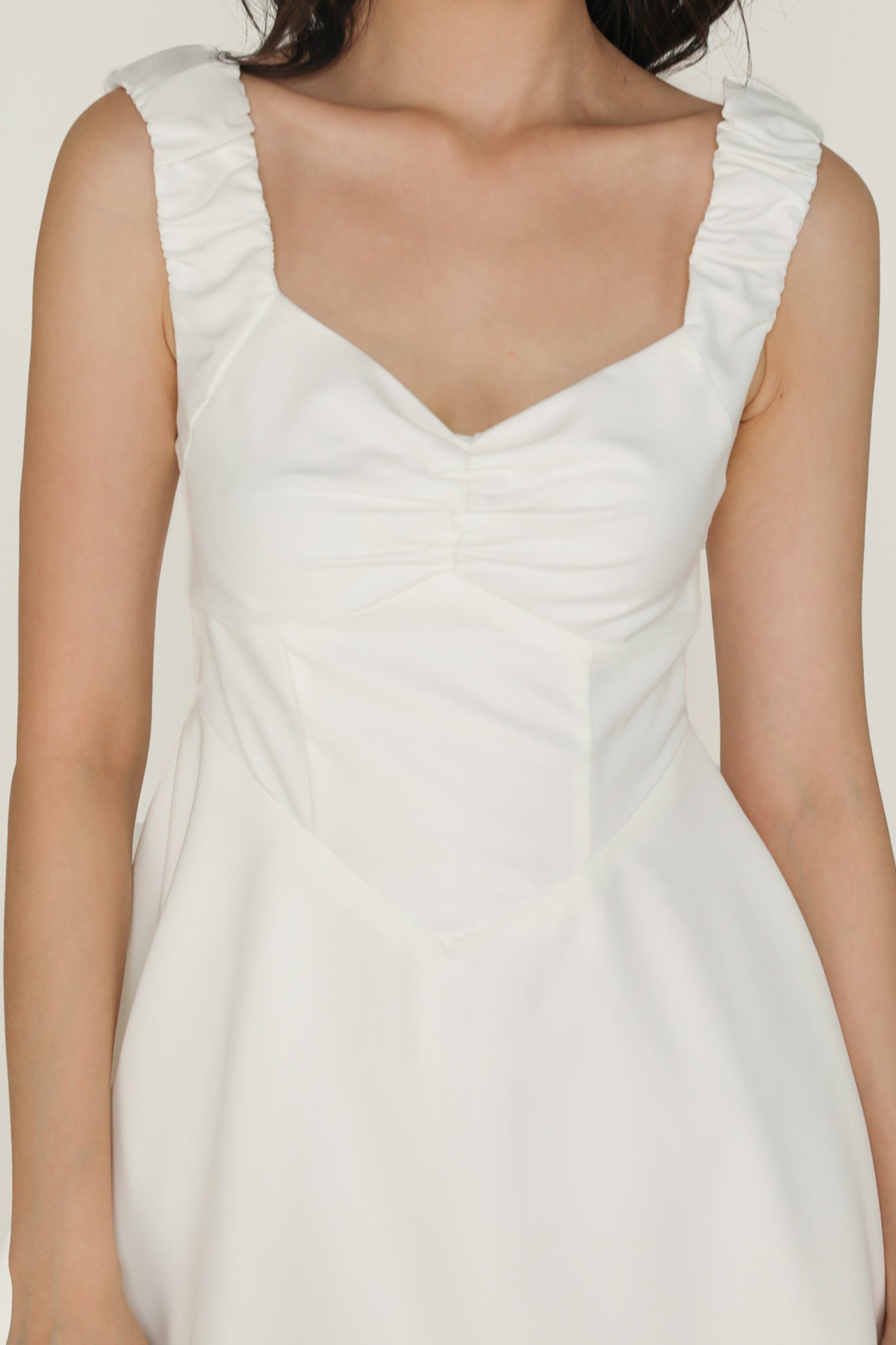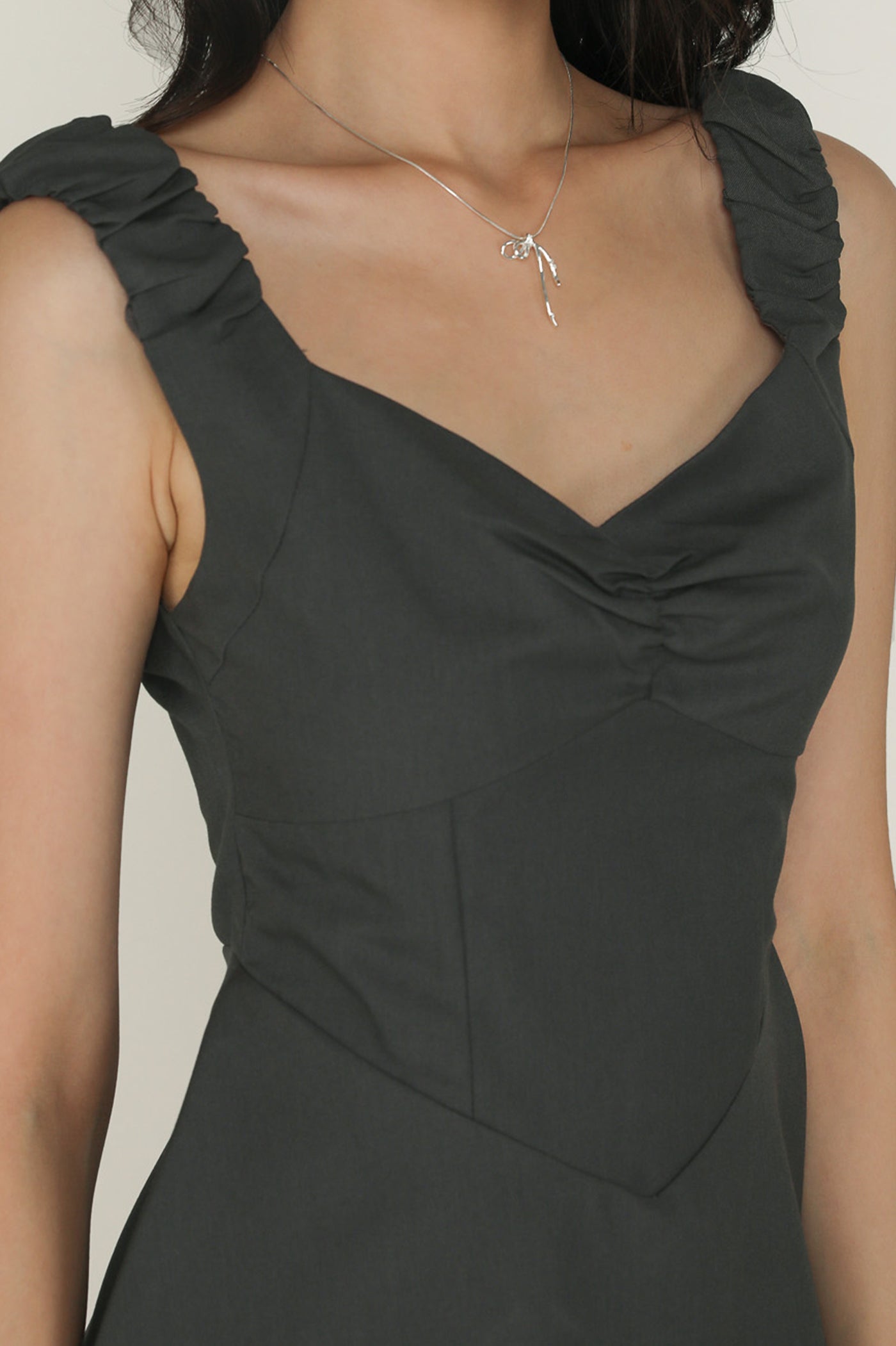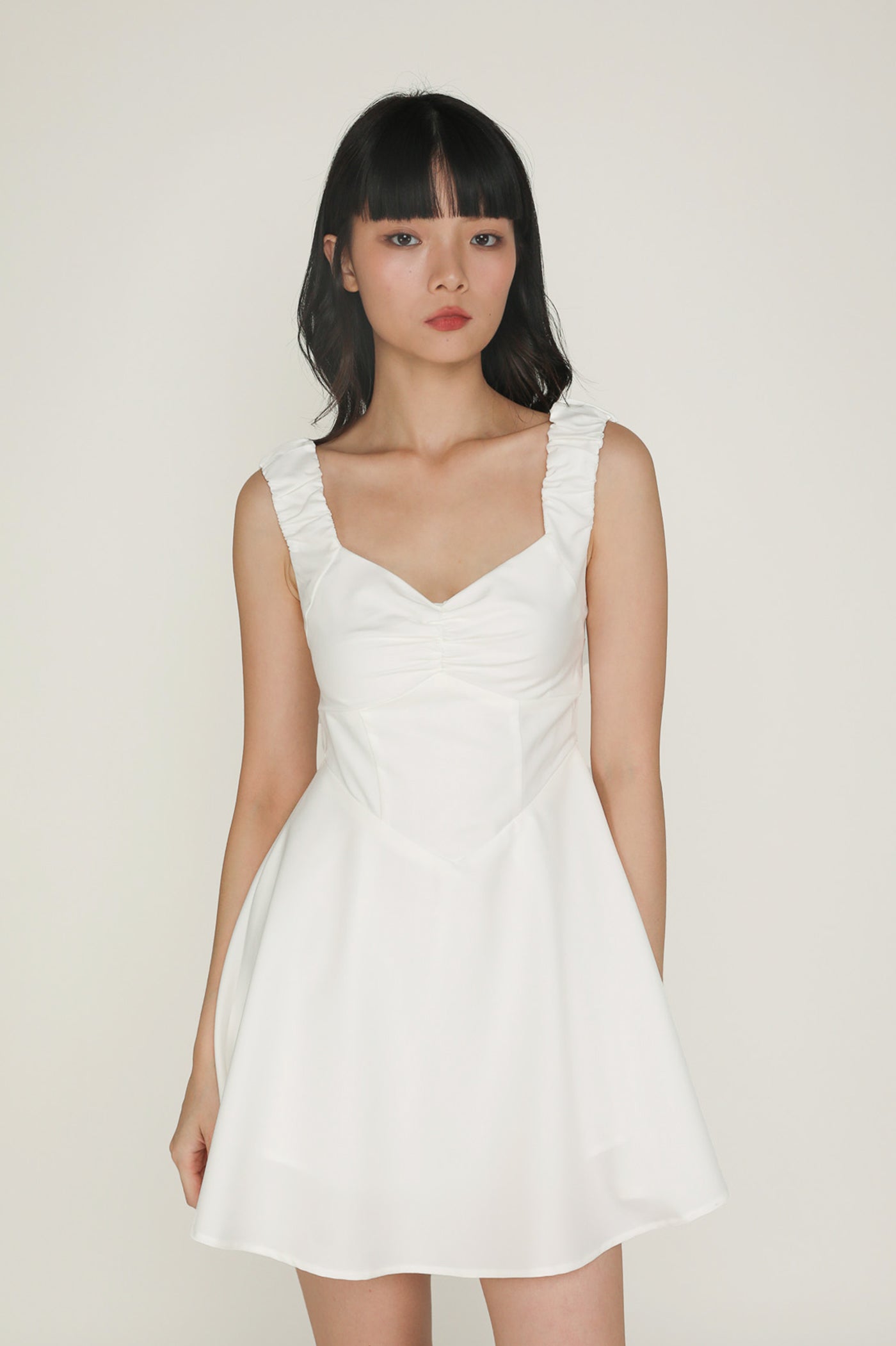 Set the tone right this season with Shanie. Shanie Ruched Strap Romper is a fresh and feminine ensemble for the hot summer days. The romper features a sweetheart neckline and a ruched statement on the front and ruching along the straps. It also has a flowy skirt for a dreamy finish. Comfortable and chic, Shanie is the go-to casual look for all your fun weekend plans.