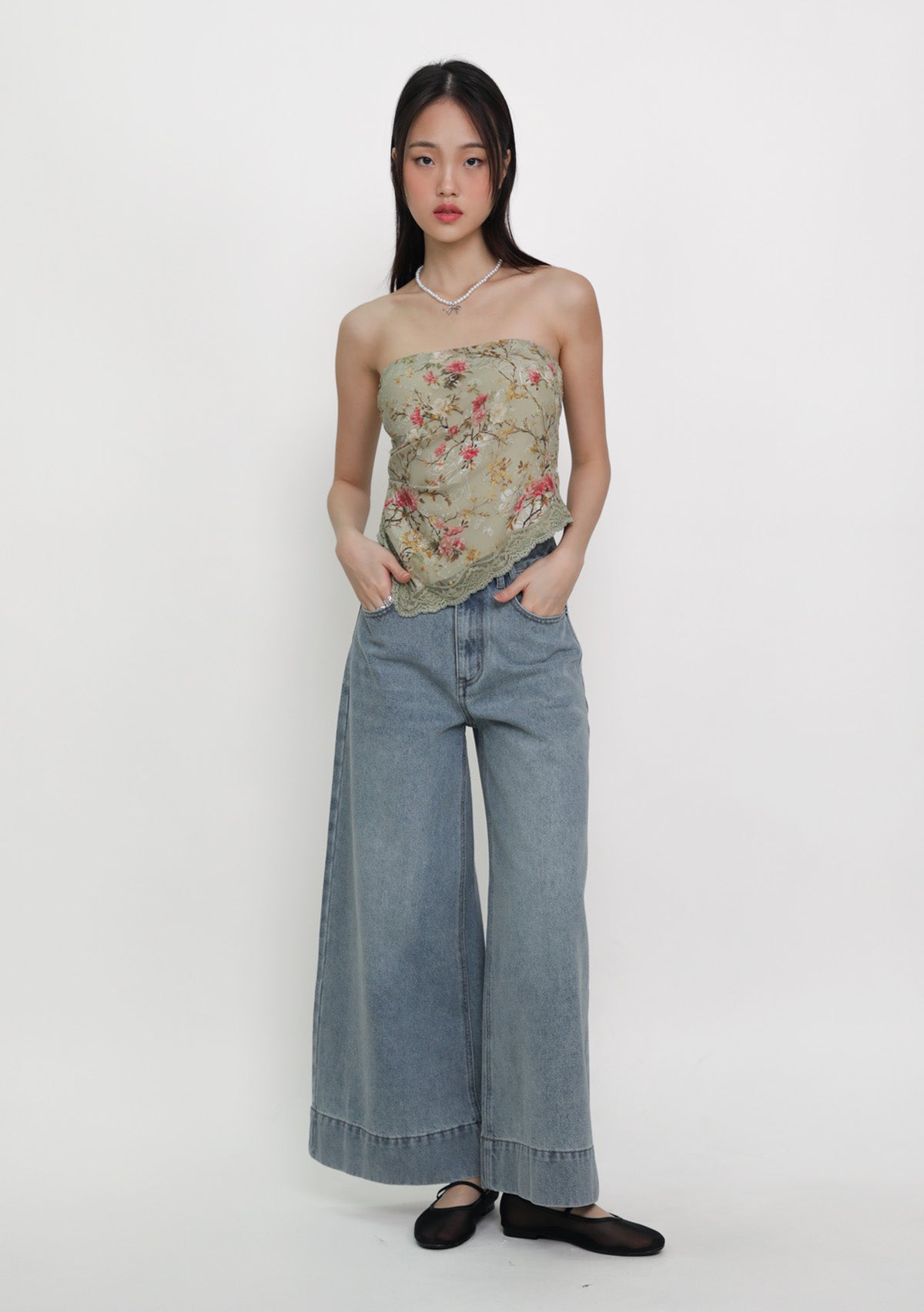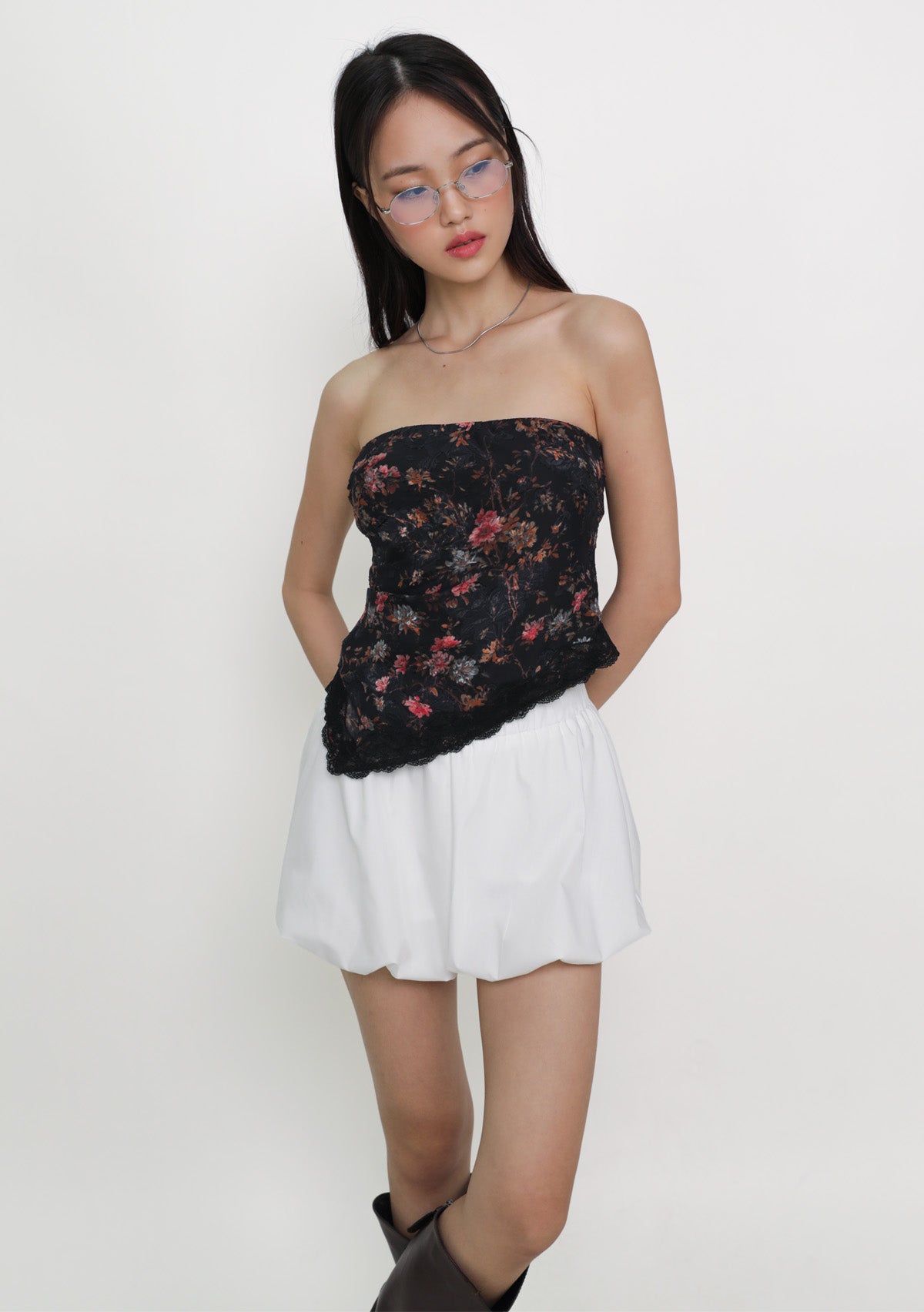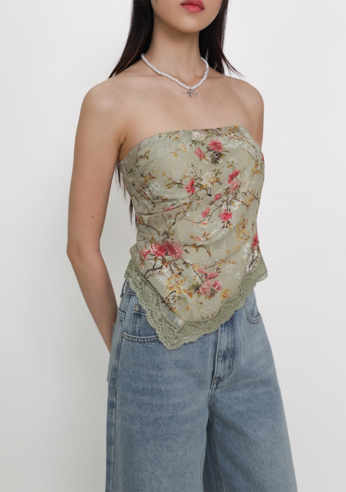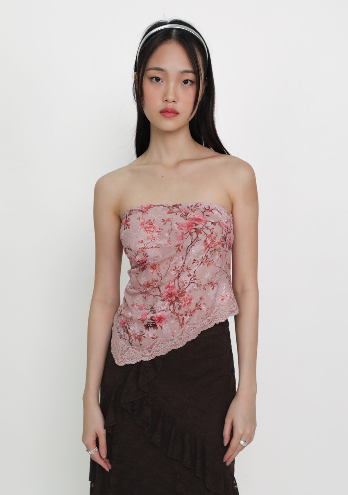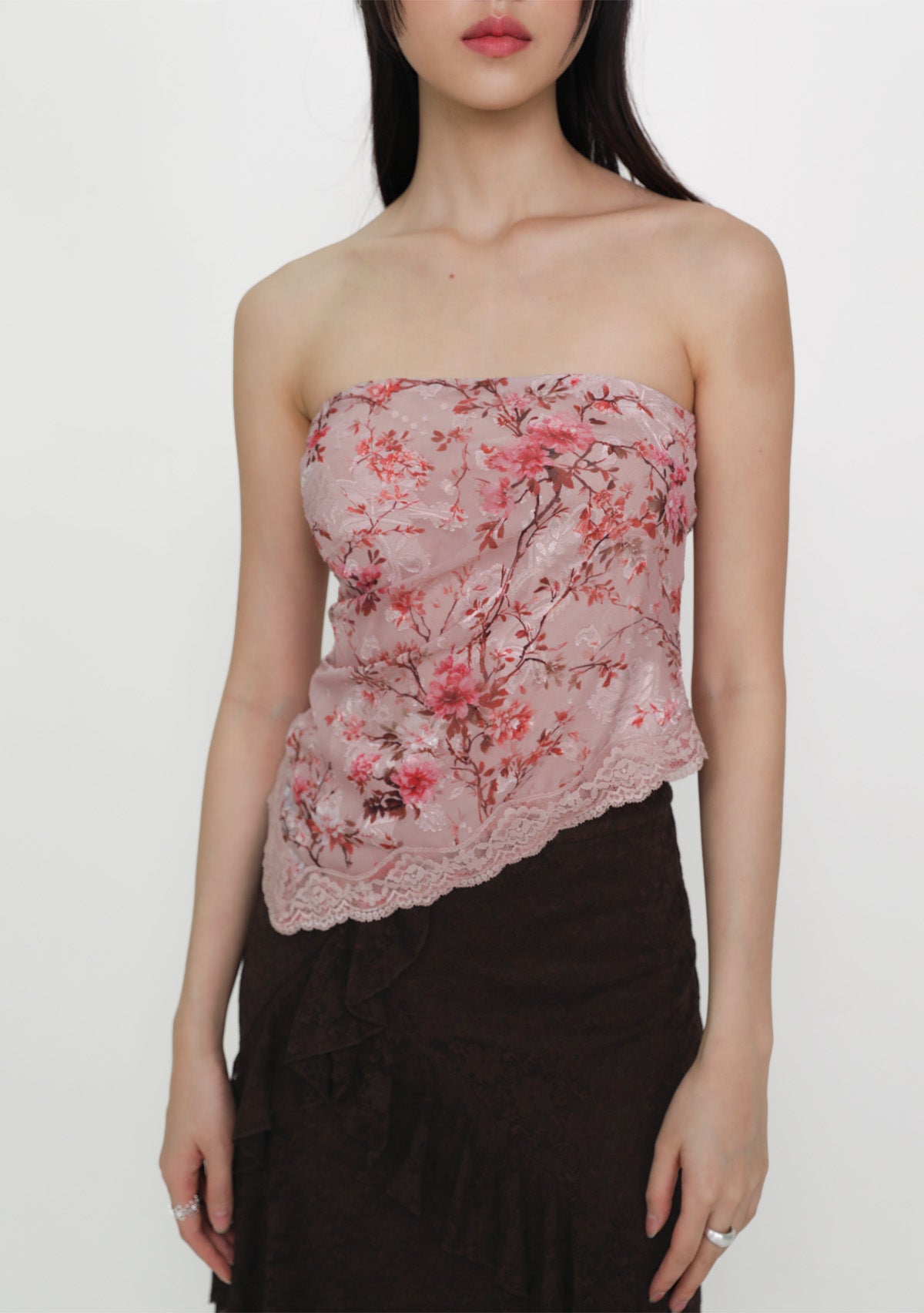 Aretha Lace Hem Padded Tube Top is a floral tube top with a delicate lace hem, designed for a secure, flattering, and effortless fit.