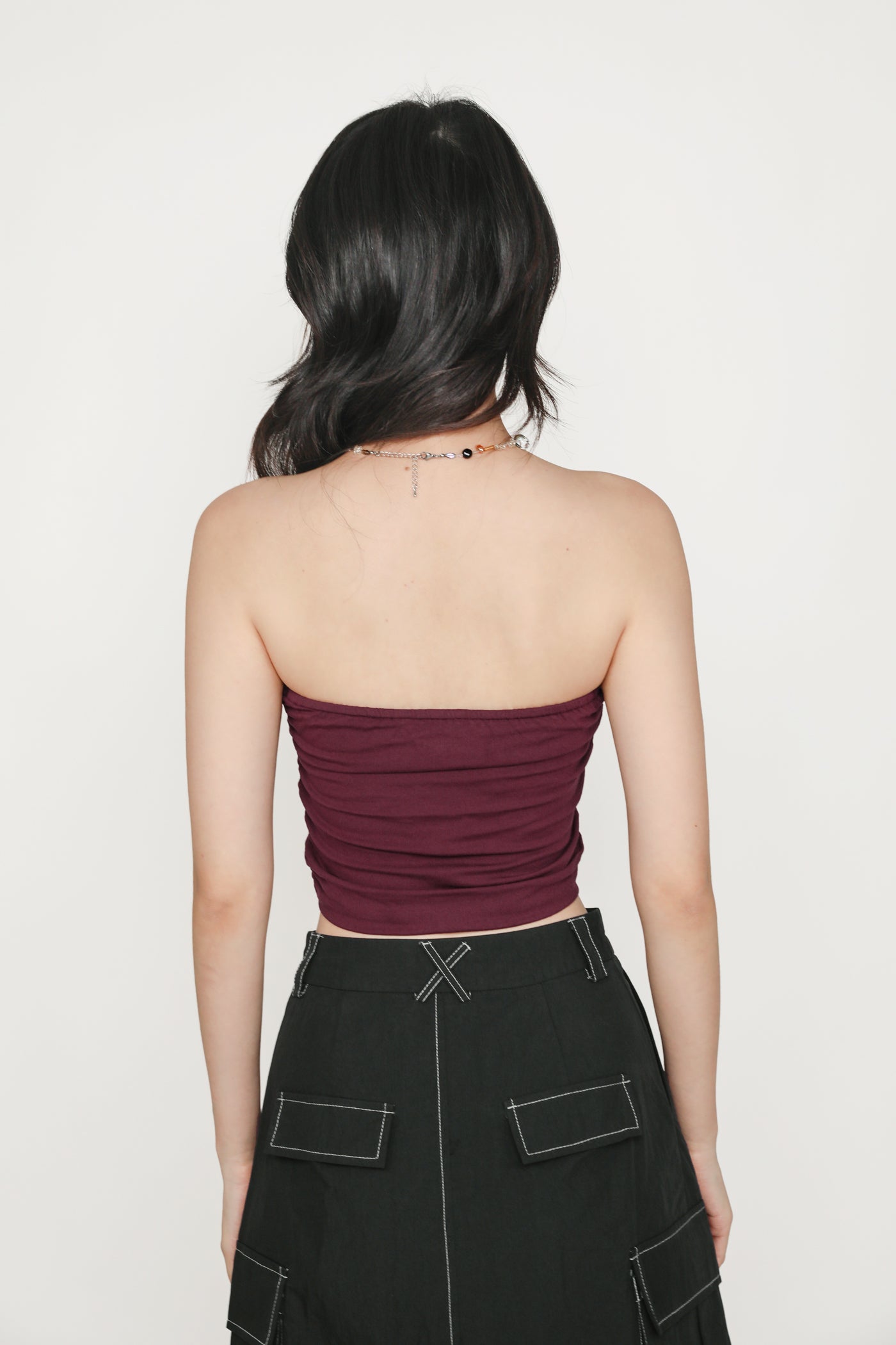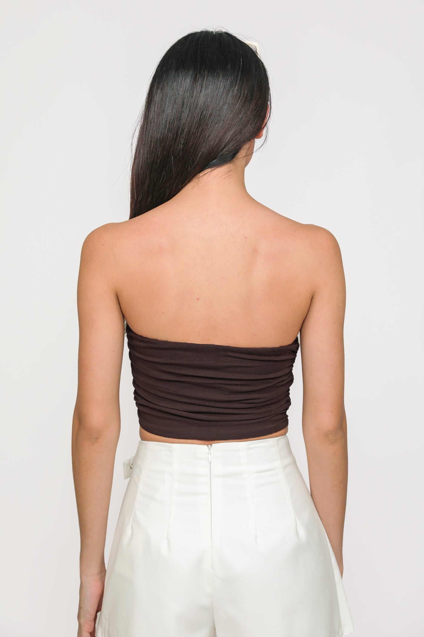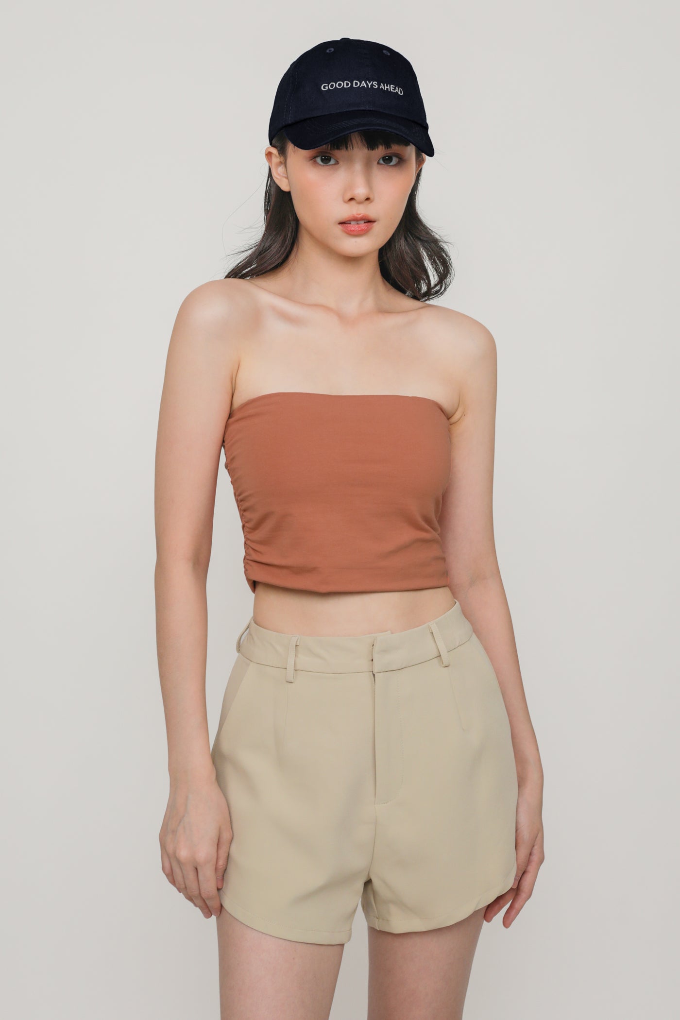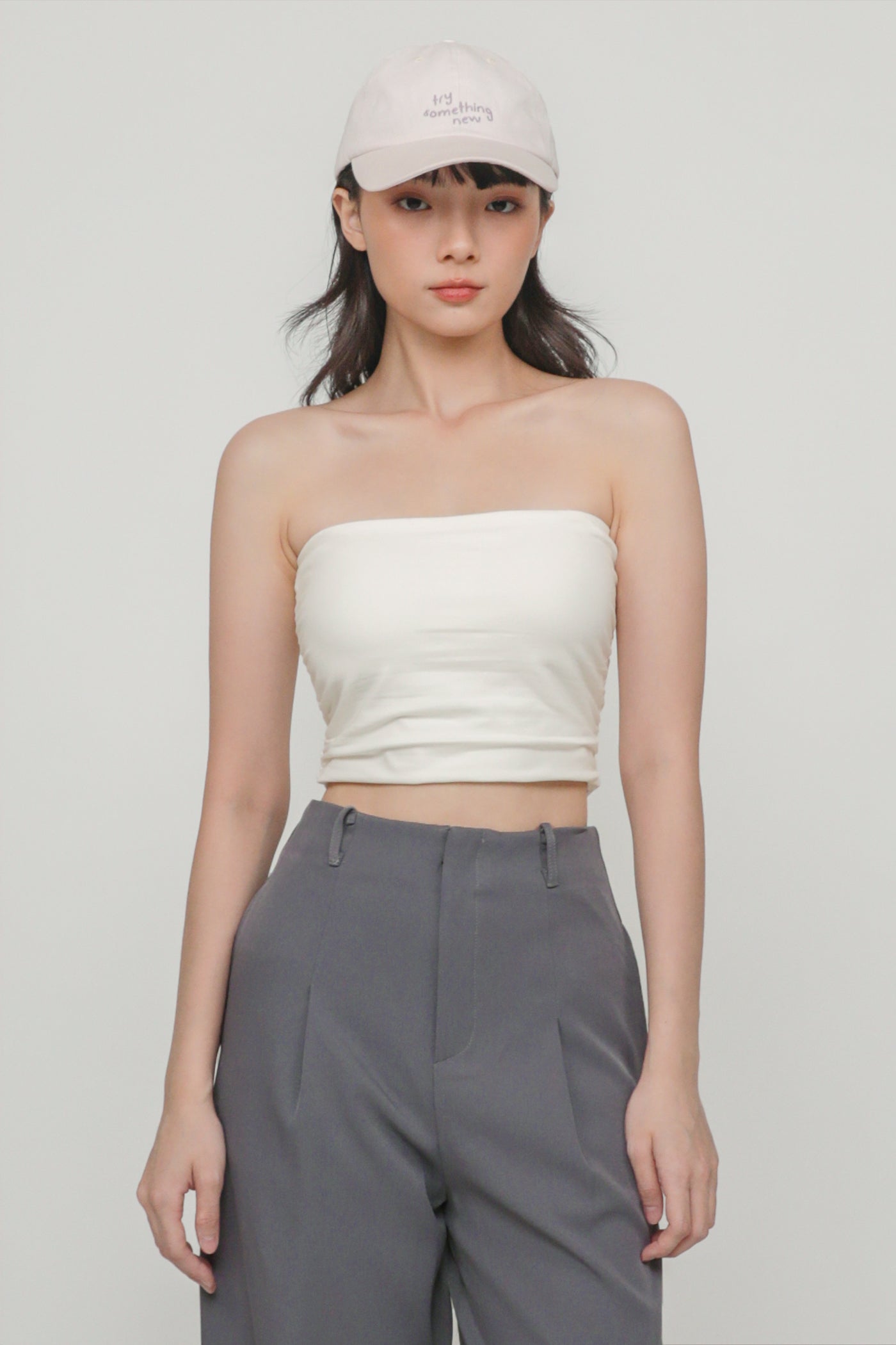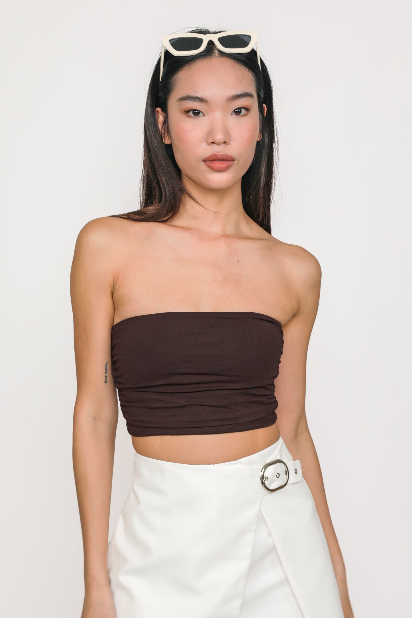Ines Ruched Tube Padded Top is your next wardrobe must-have. Ines has a classic tube top cut enhanced with ruching details on the sides to create a feminine and flattering silhouette. The top is padded at the bust for comfortable all day wear. This piece is a fuss-free option for your weekend looks.
