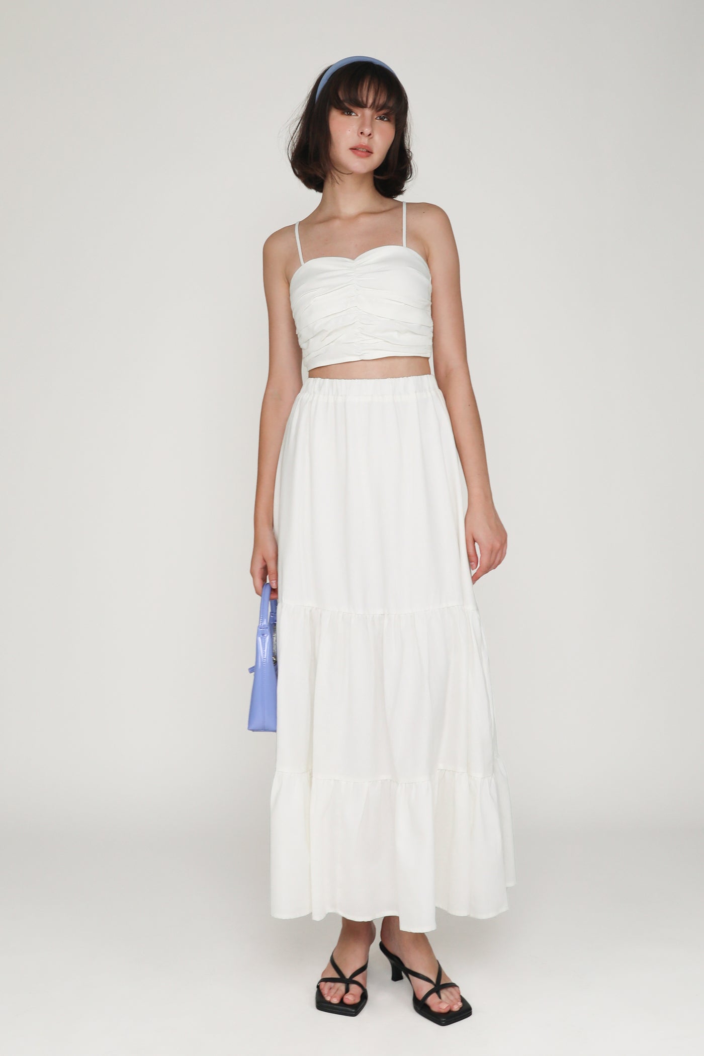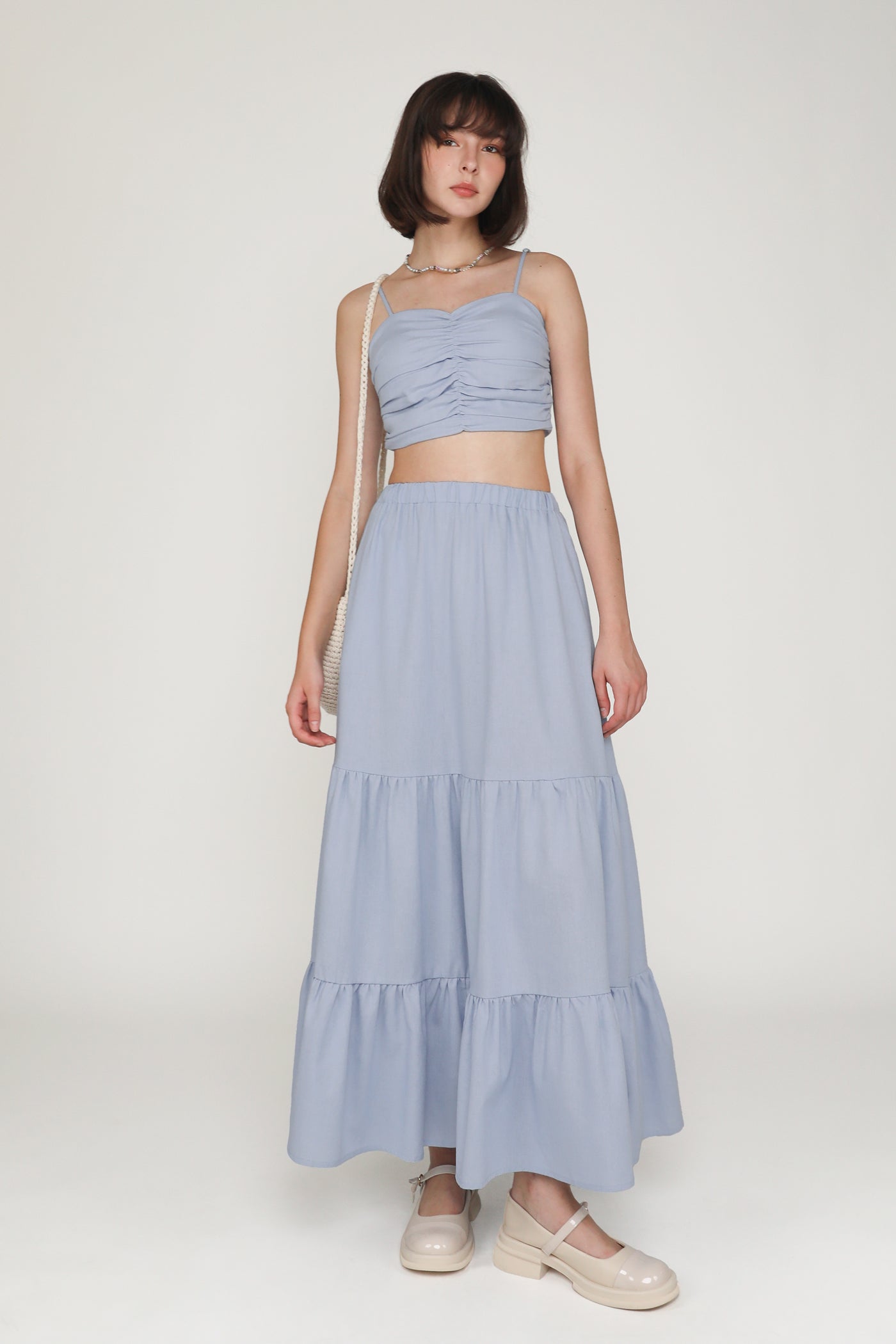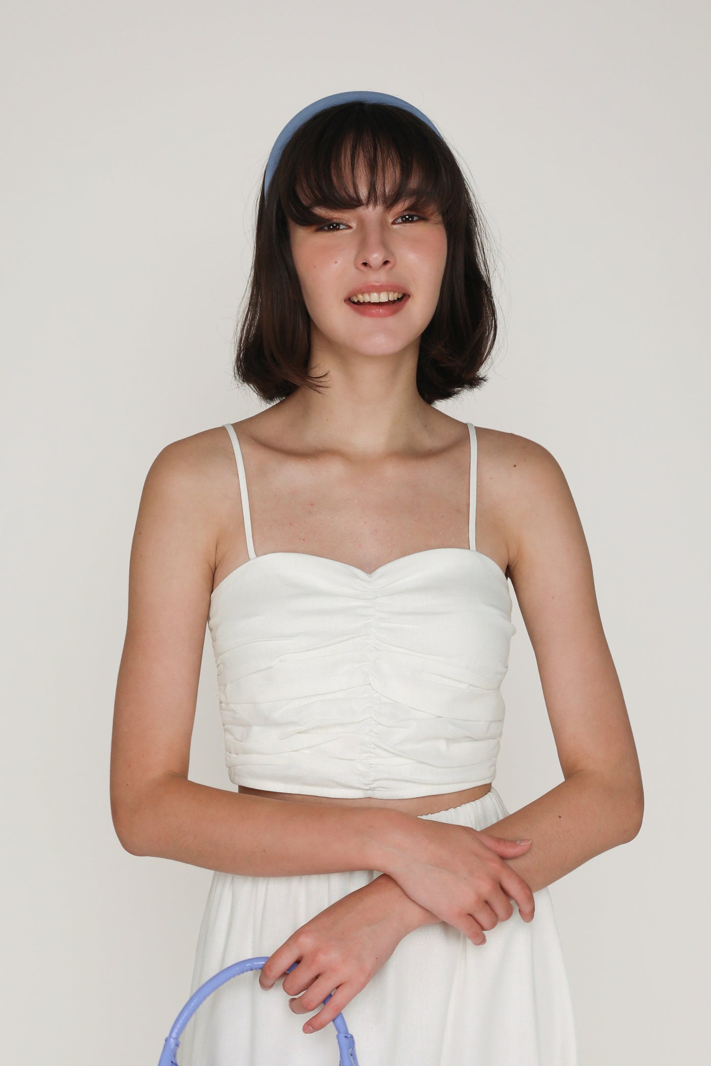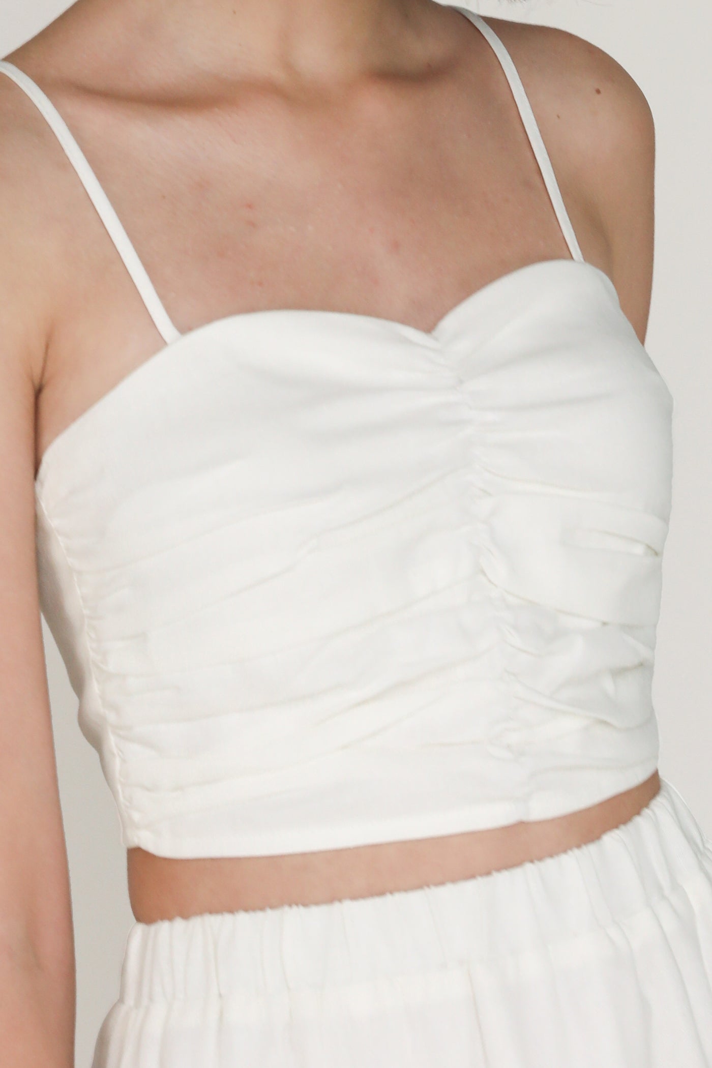 Dress your best with Polina. This linen padded crop top flaunts a fitted silhouette, sweetheart neckline, and statement ruching at the front. It is feminine and charming piece to elevate your springtime outfits. From brunch dates to high tea, this refreshing ruched top invites an elegant touch to every occasion.