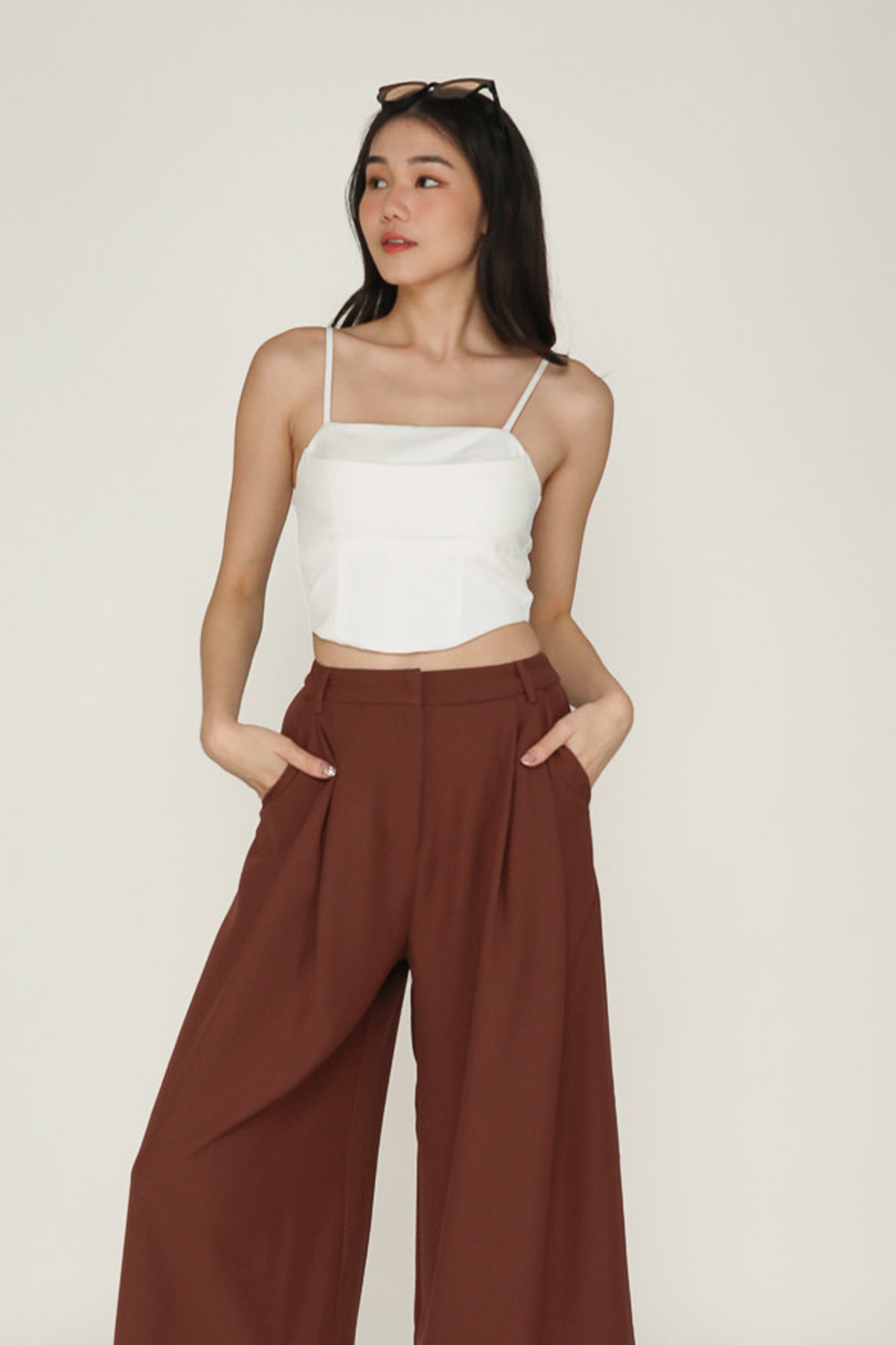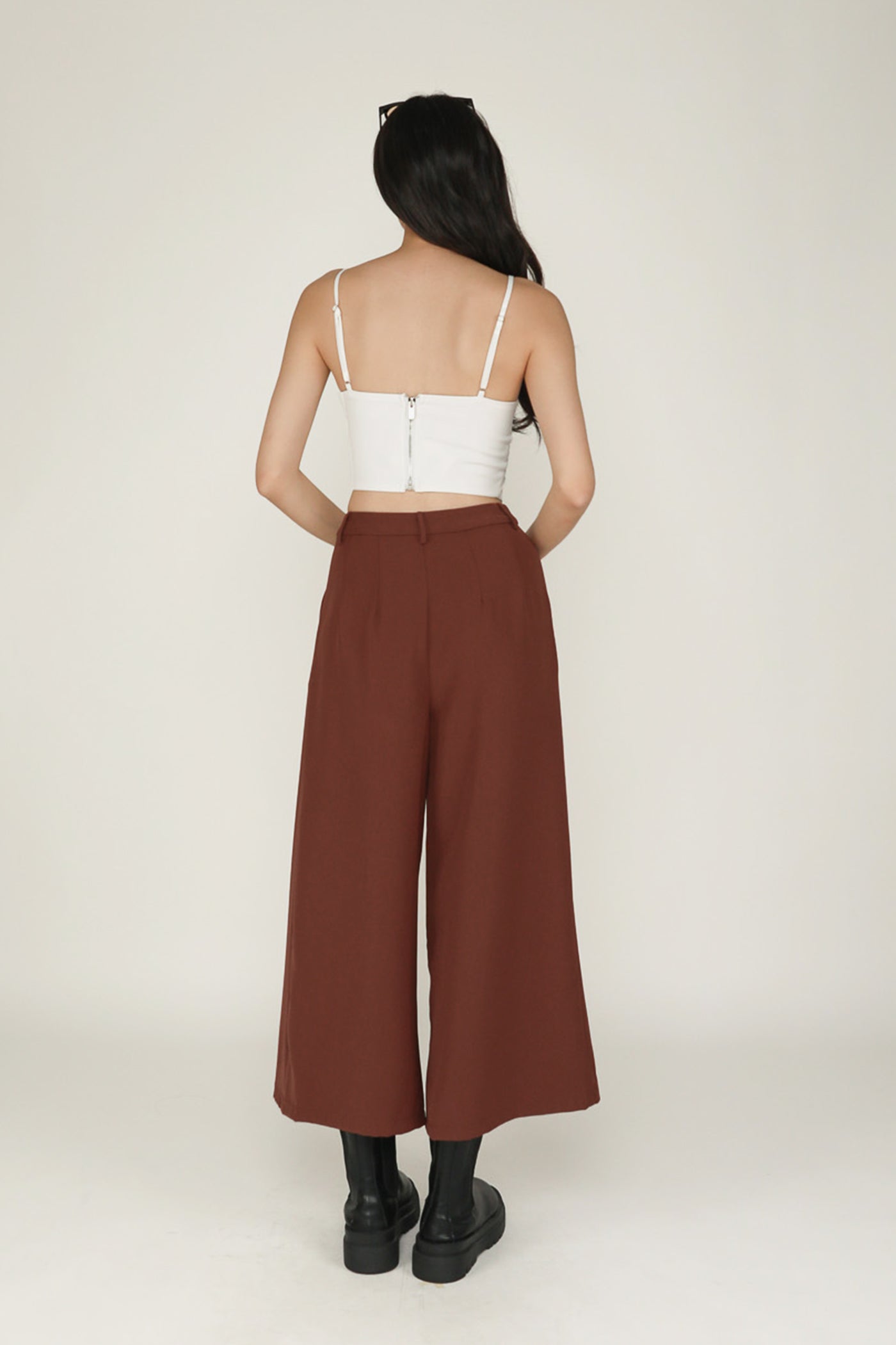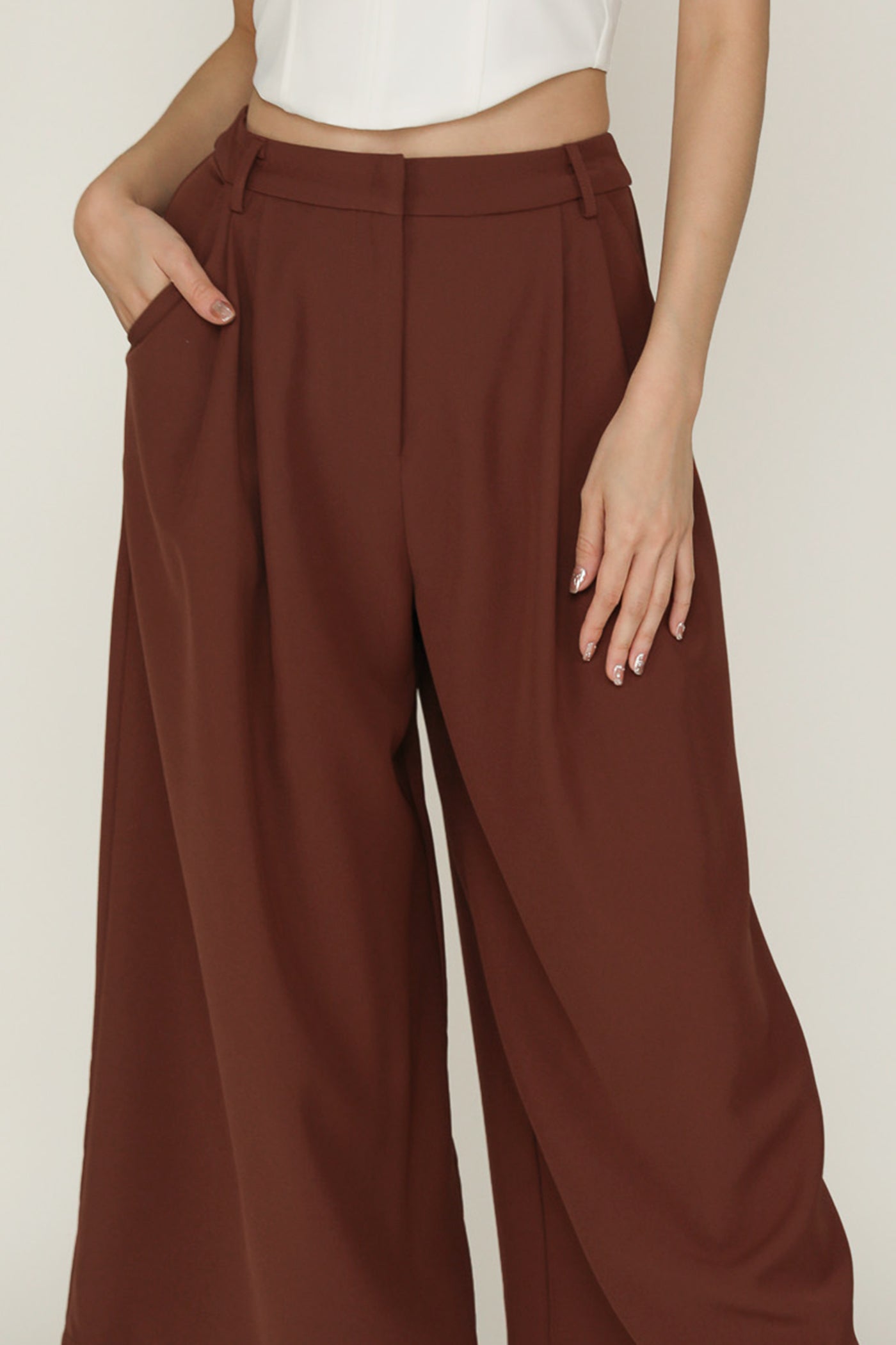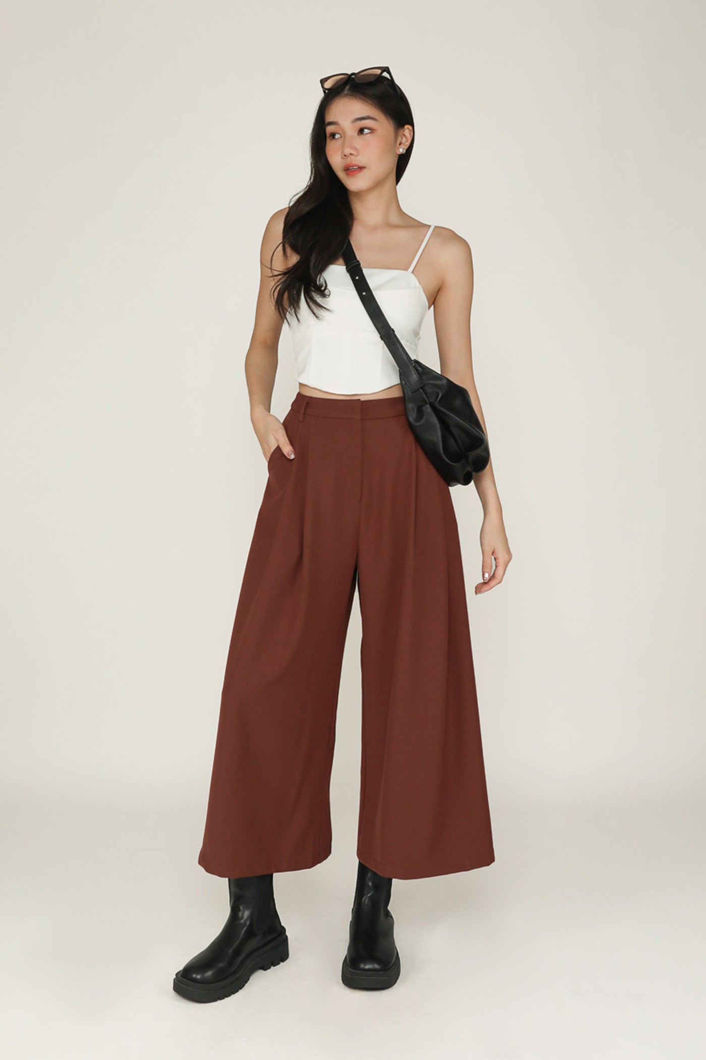 Simone is the smart and sleek pair of bottoms for your everyday looks. This pair of pants feature a wide leg silhouette and a pleated front. From crop tops to chic blouses, Simone complements every outfit effortlessly. This is a versatile piece for your collection of style staples.