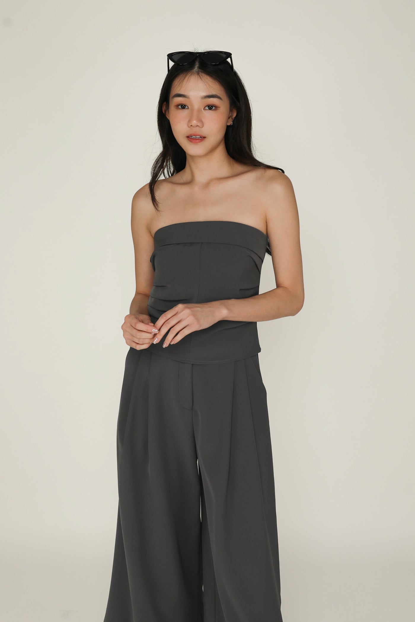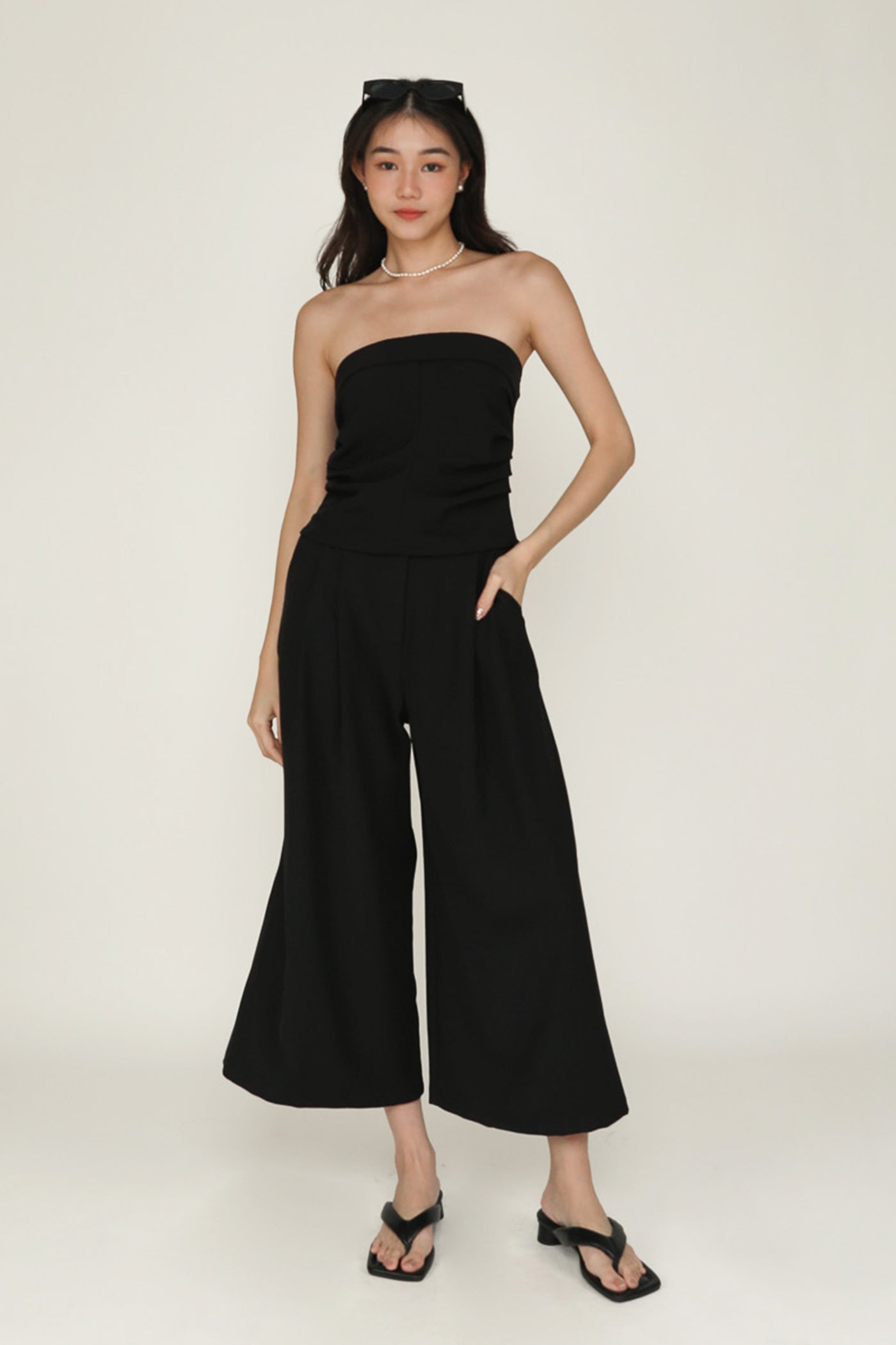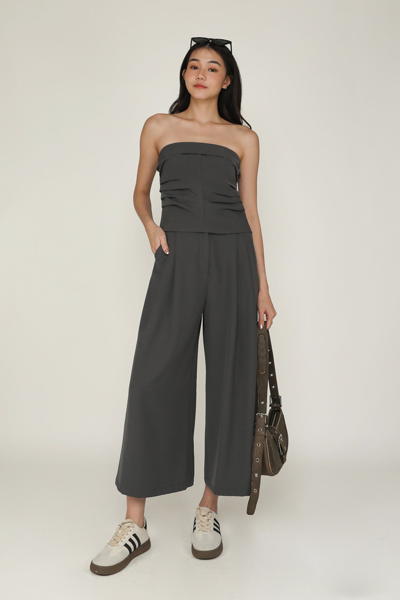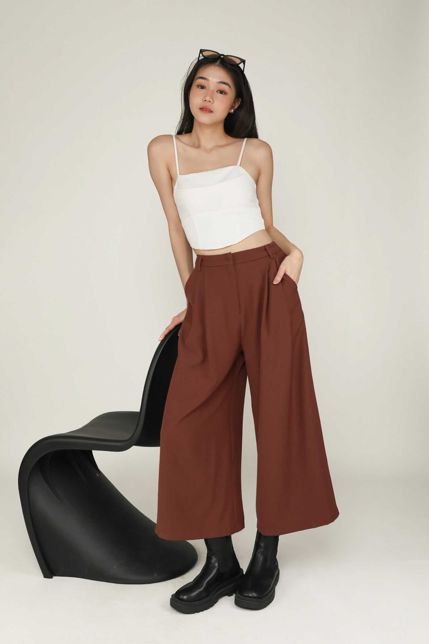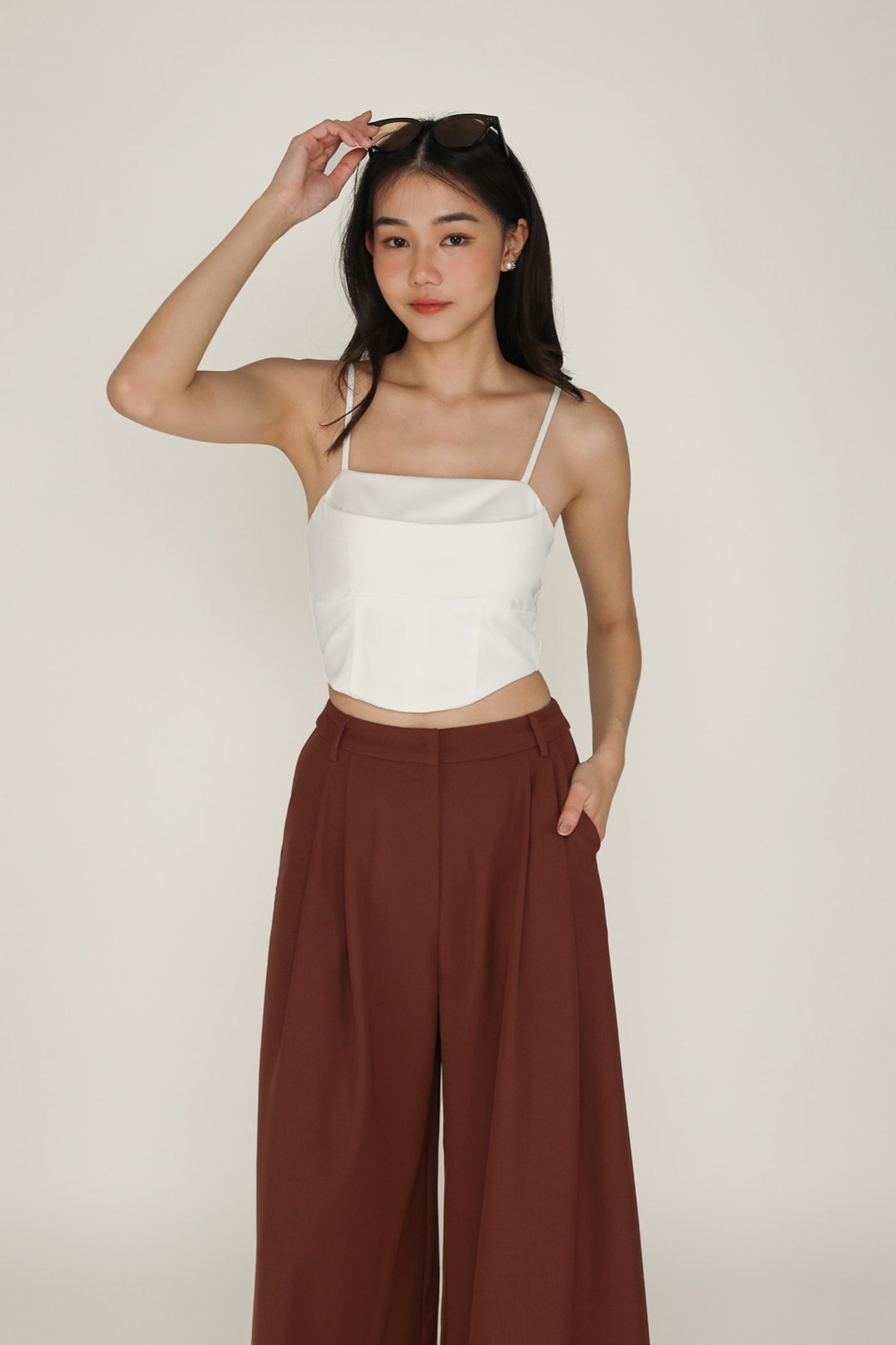 Simone is the smart and sleek pair of bottoms for your everyday looks. This pair of pants feature a wide leg silhouette and a pleated front. From crop tops to chic blouses, Simone complements every outfit effortlessly. This is a versatile piece for your collection of style staples.
