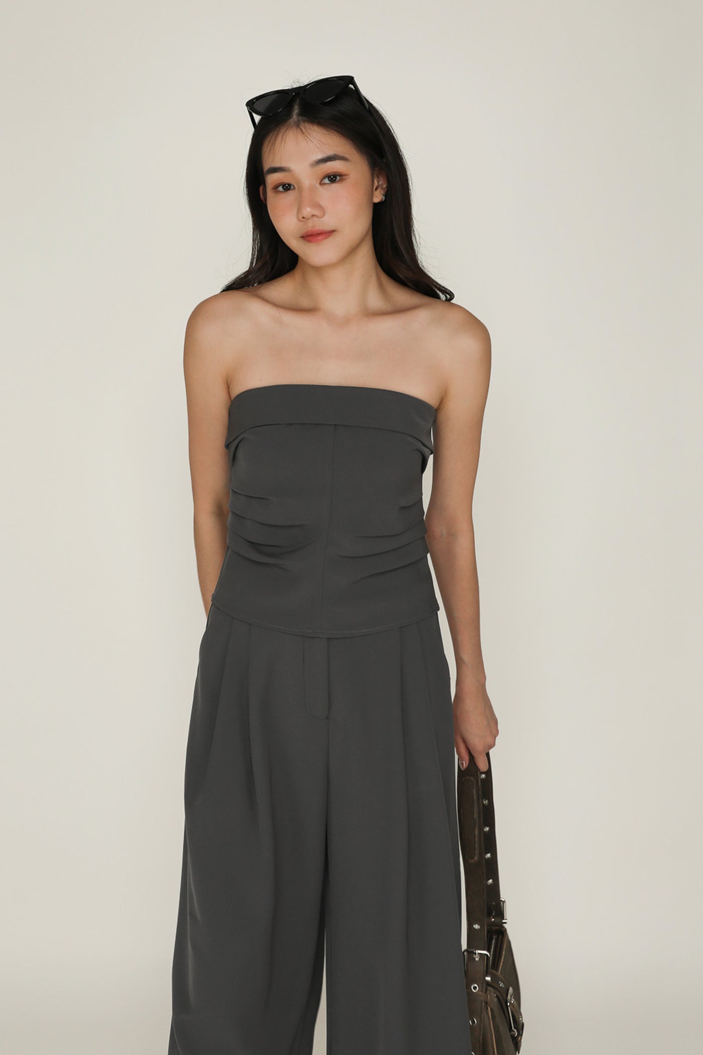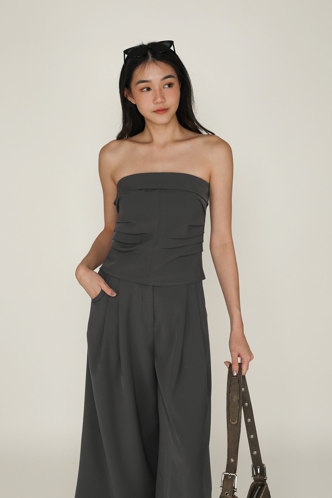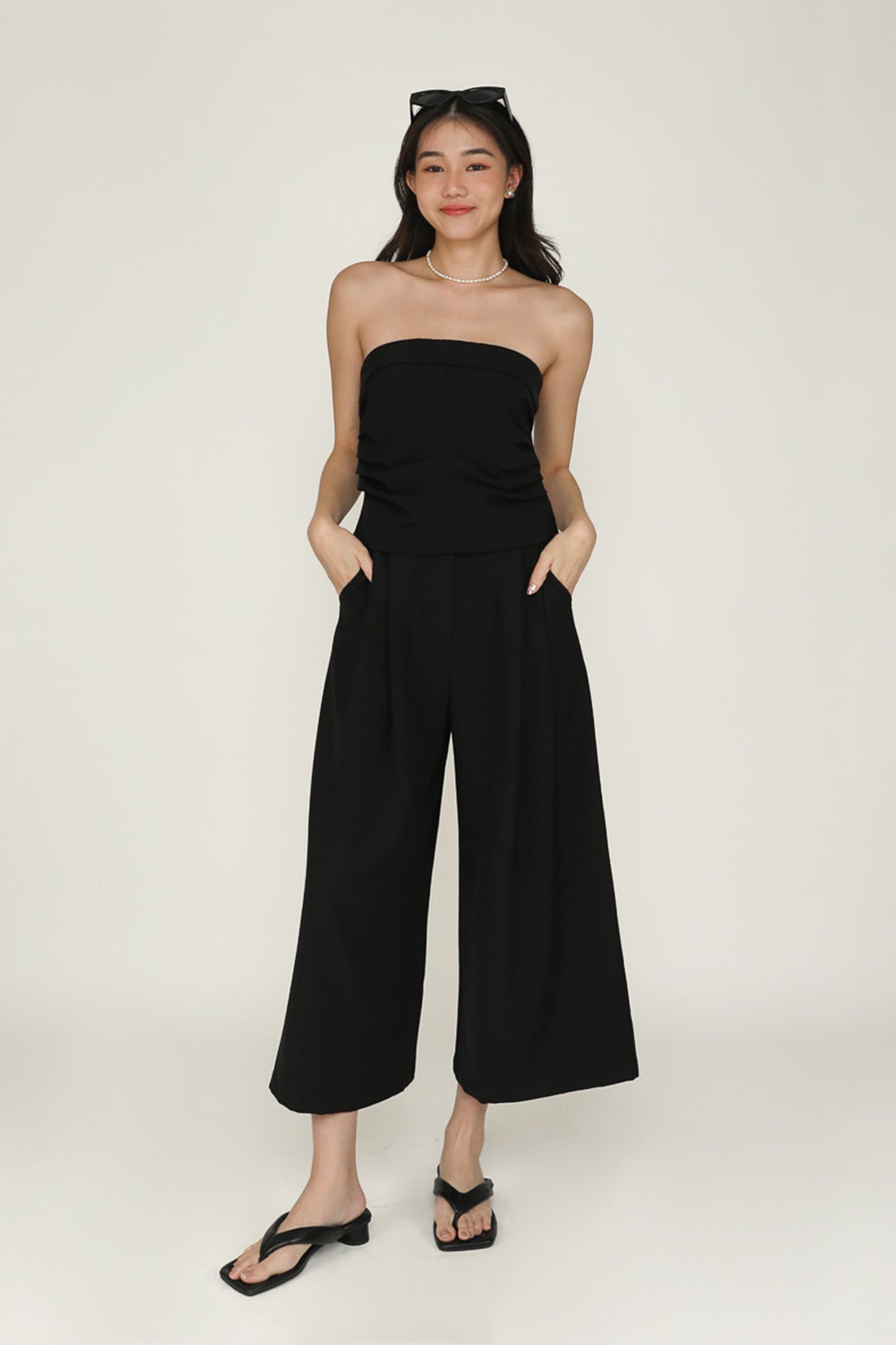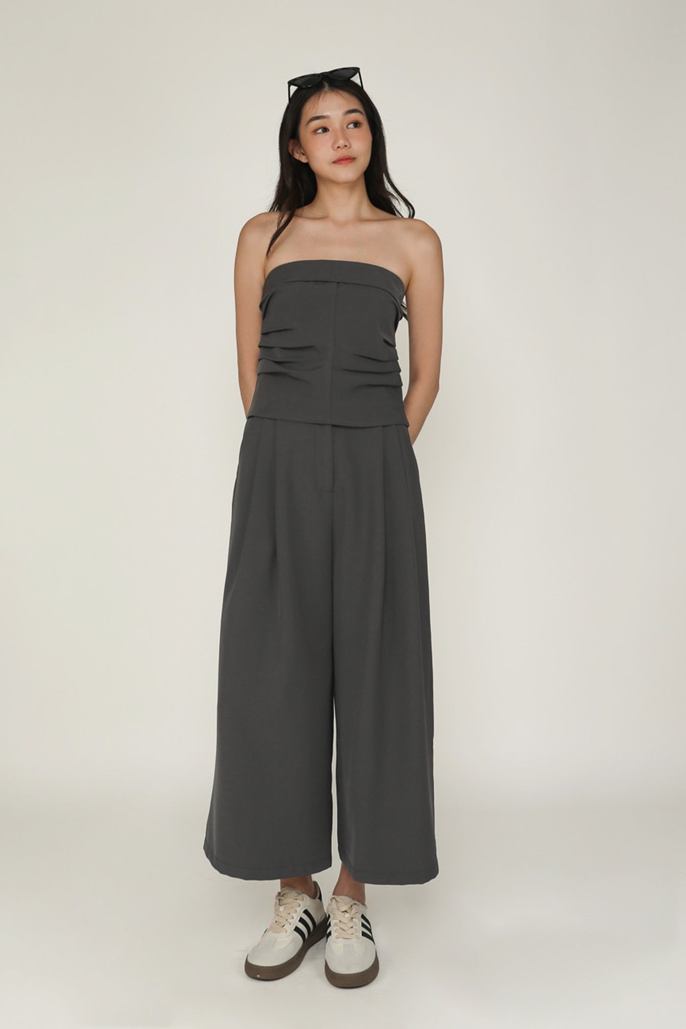 Simone is the smart and sleek pair of bottoms for your everyday looks. This pair of pants feature a wide leg silhouette and a pleated front. From crop tops to chic blouses, Simone complements every outfit effortlessly. This is a versatile piece for your collection of style staples.