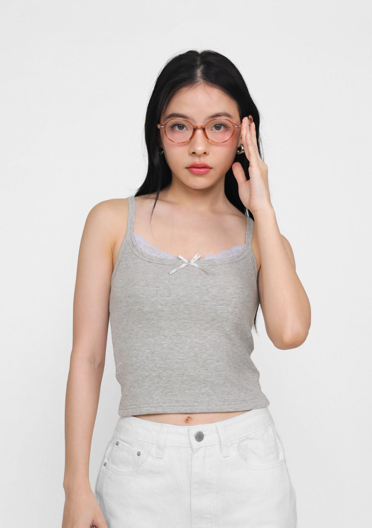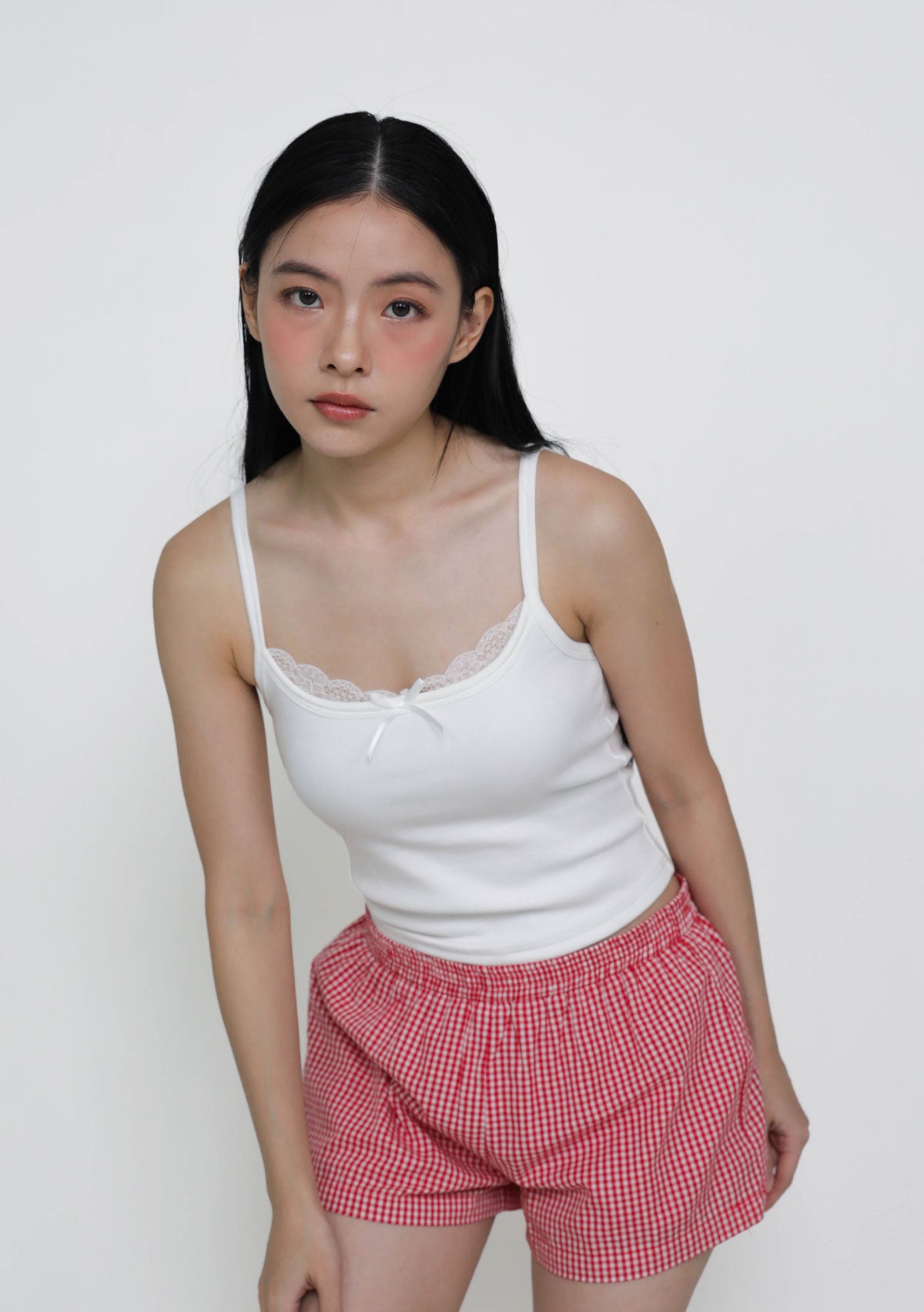 Soft details meet everyday ease with Uma Lace Layered Padded Top. Designed with a curved lace layer at the neckline and a dainty ribbon at the bust, it brings just the right amount of charm to your basics. The stretchy fabric hugs comfortably, making it perfect for layering or lounging.